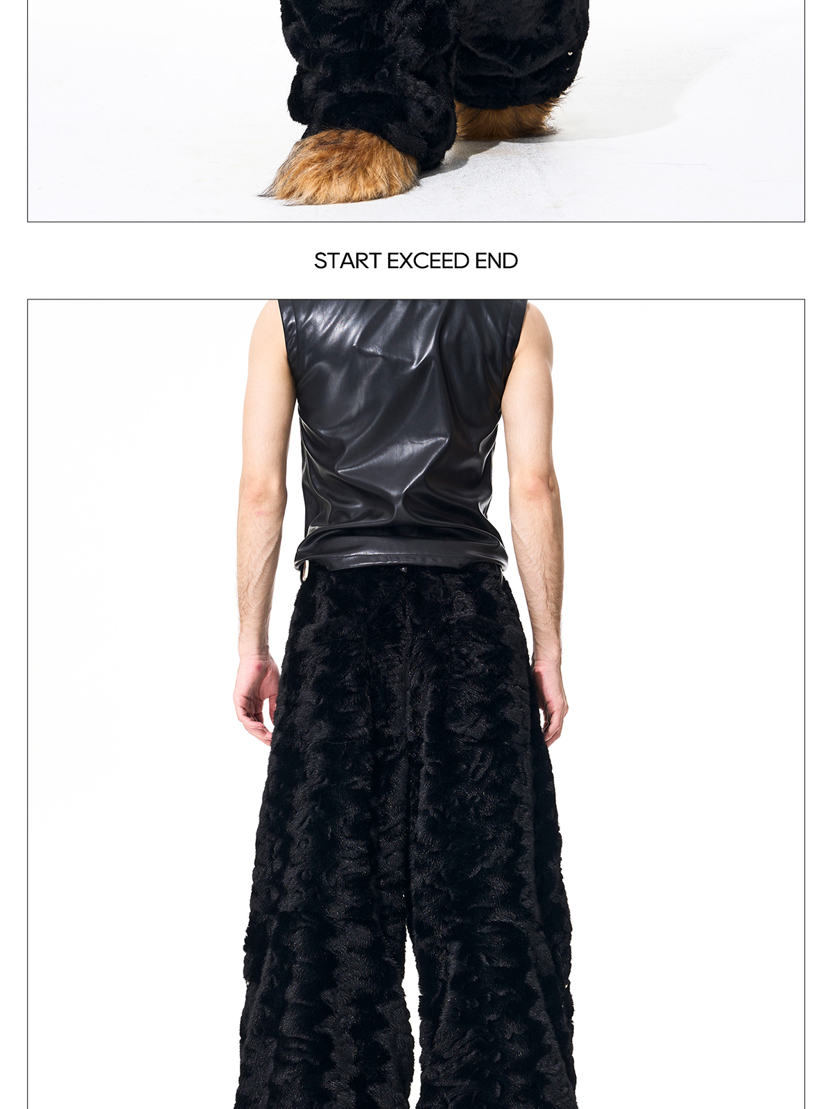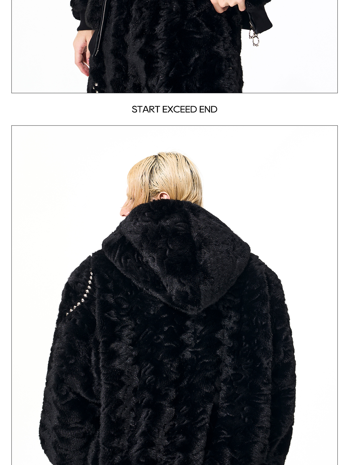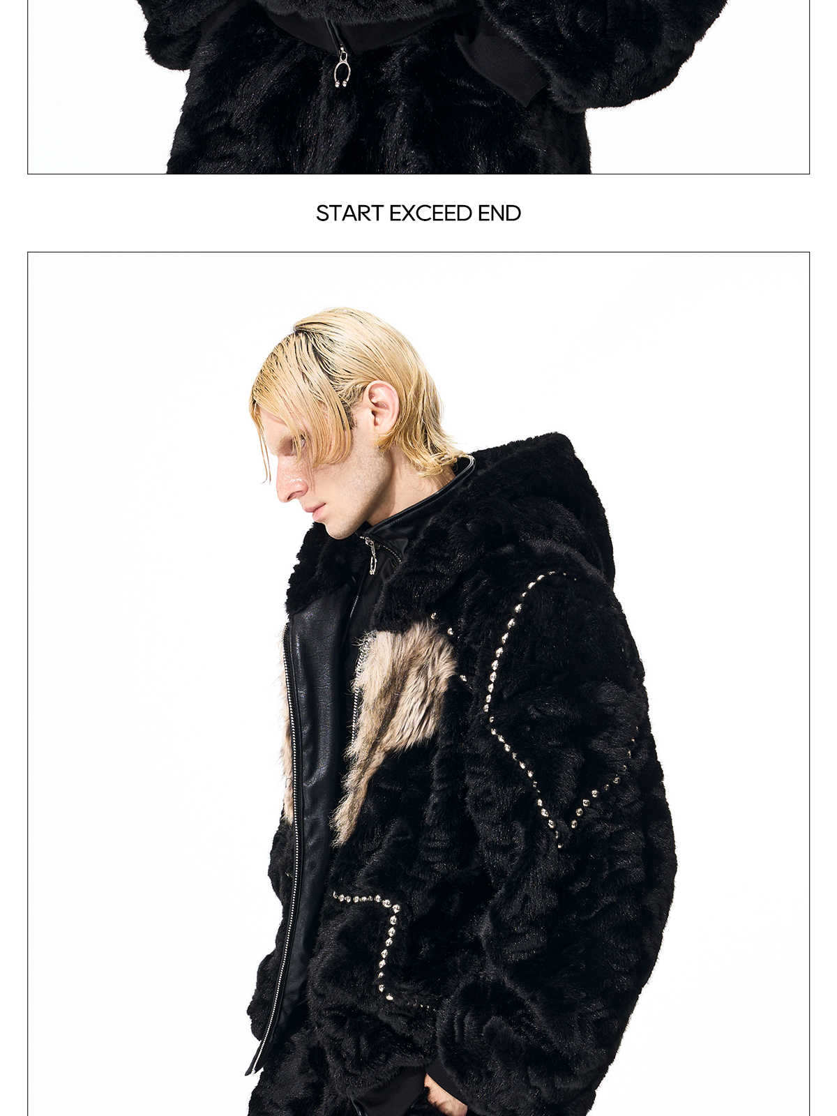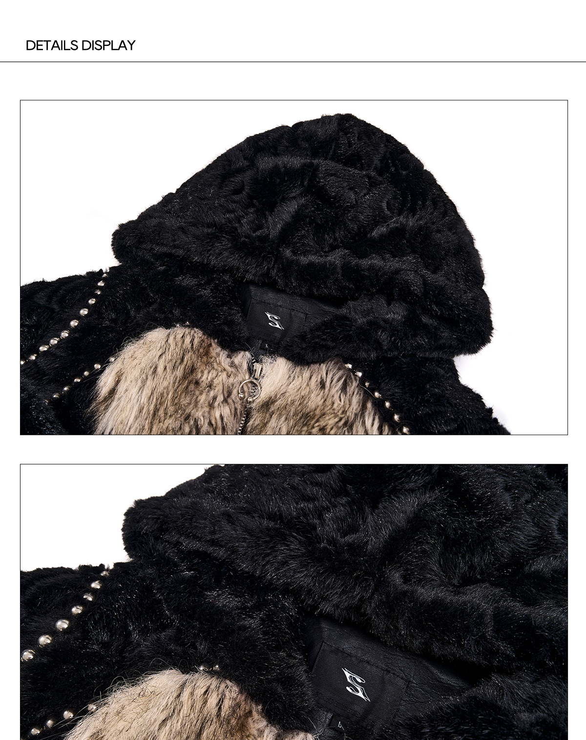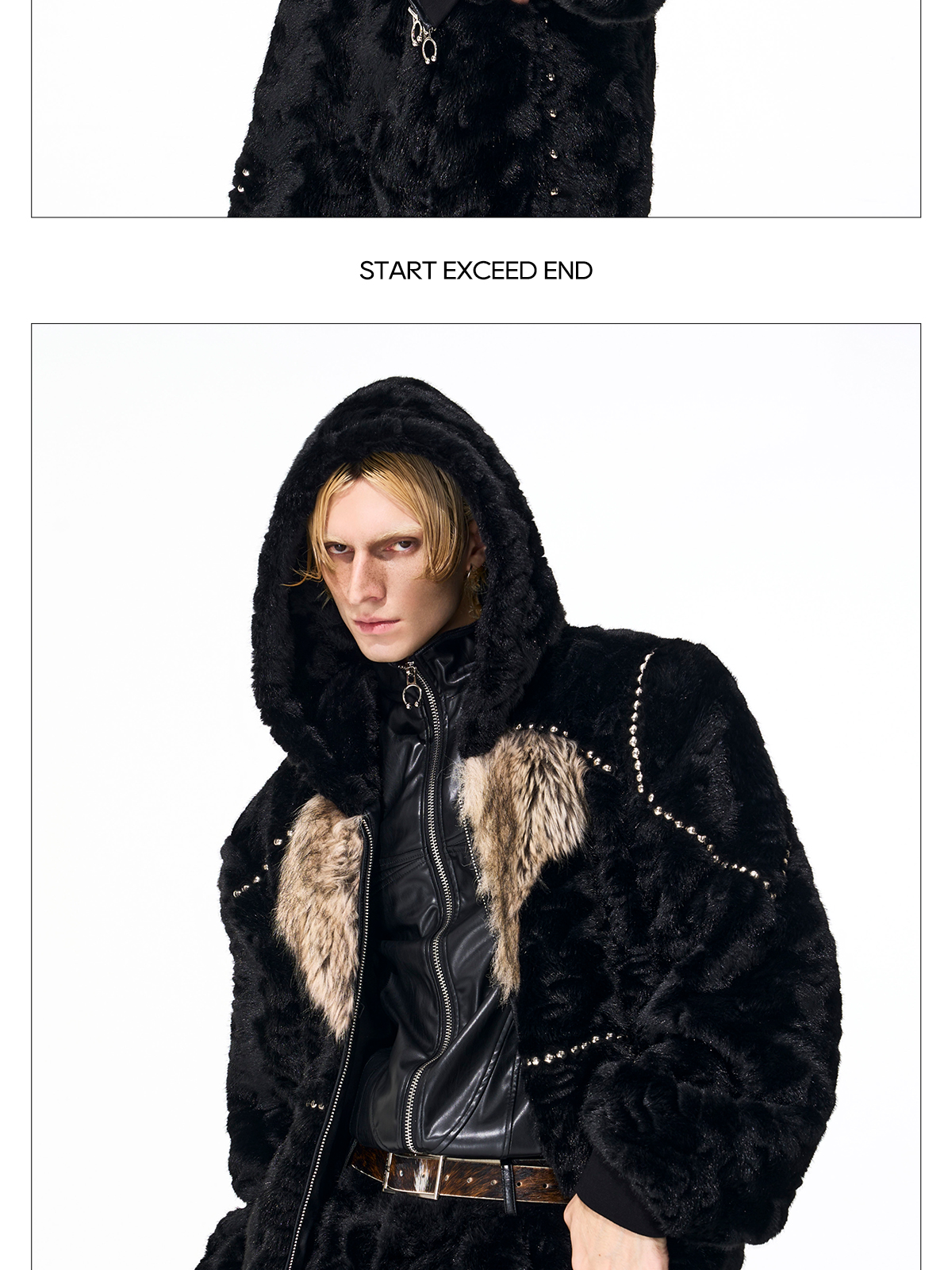 Colorblock Heart Thick Fake Mink Fur Hooded Jacket & Straight Wide Leg Pants Setup WN21838