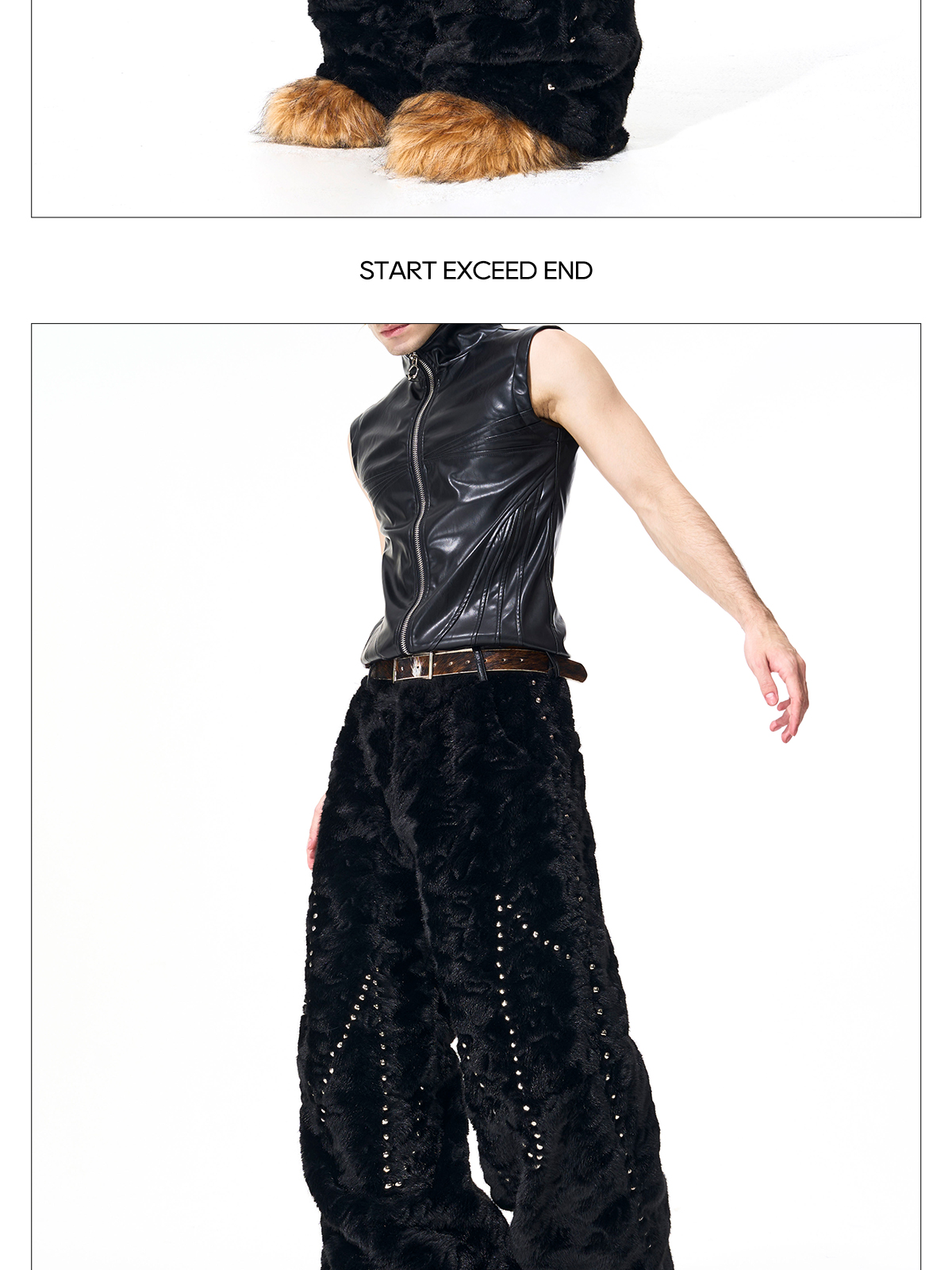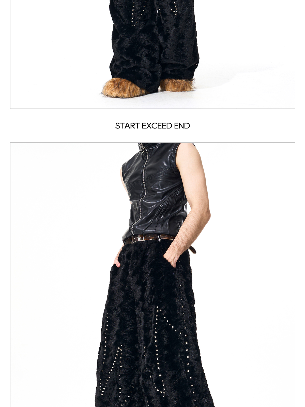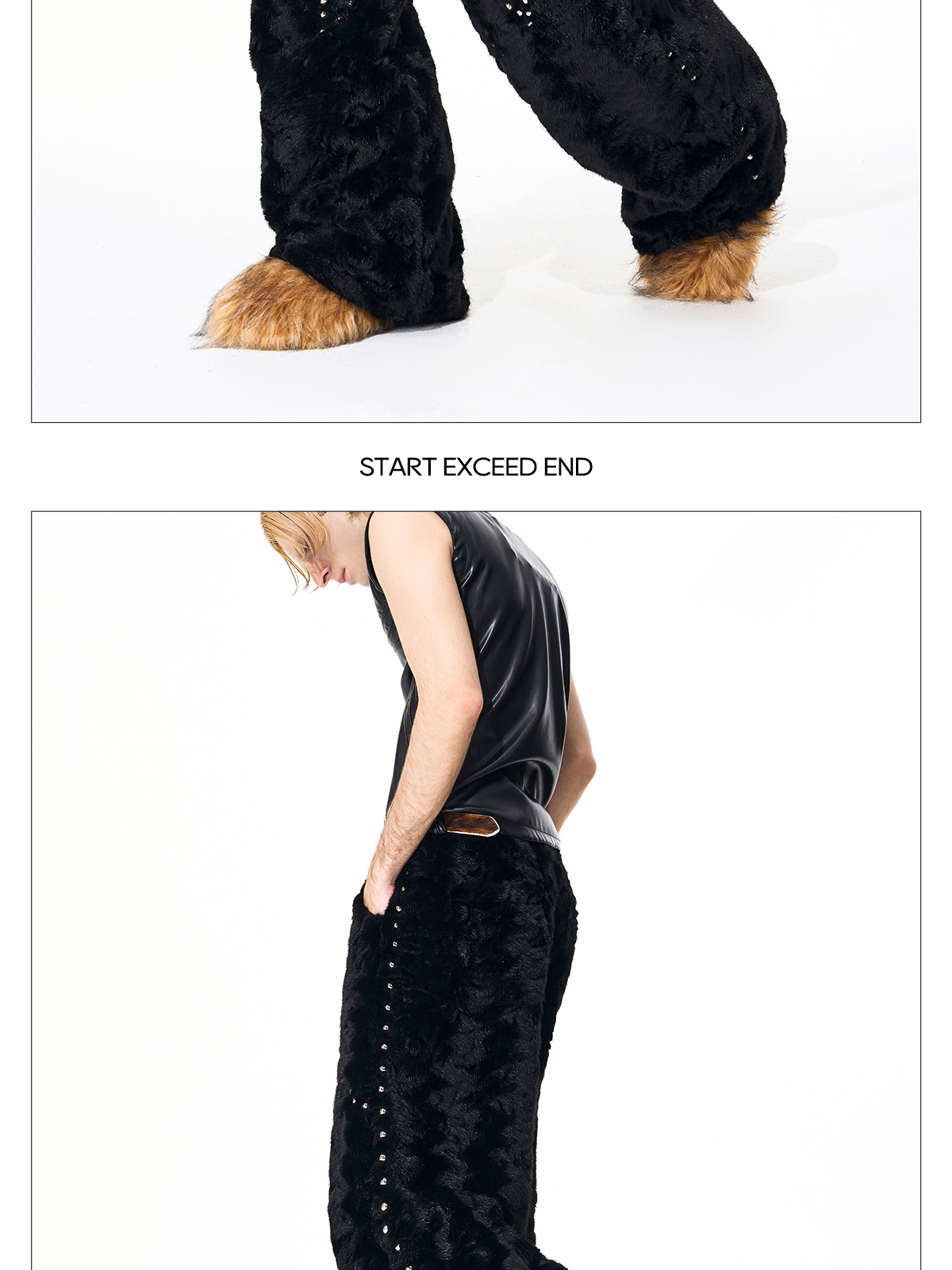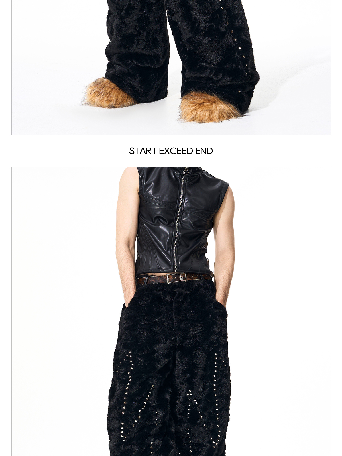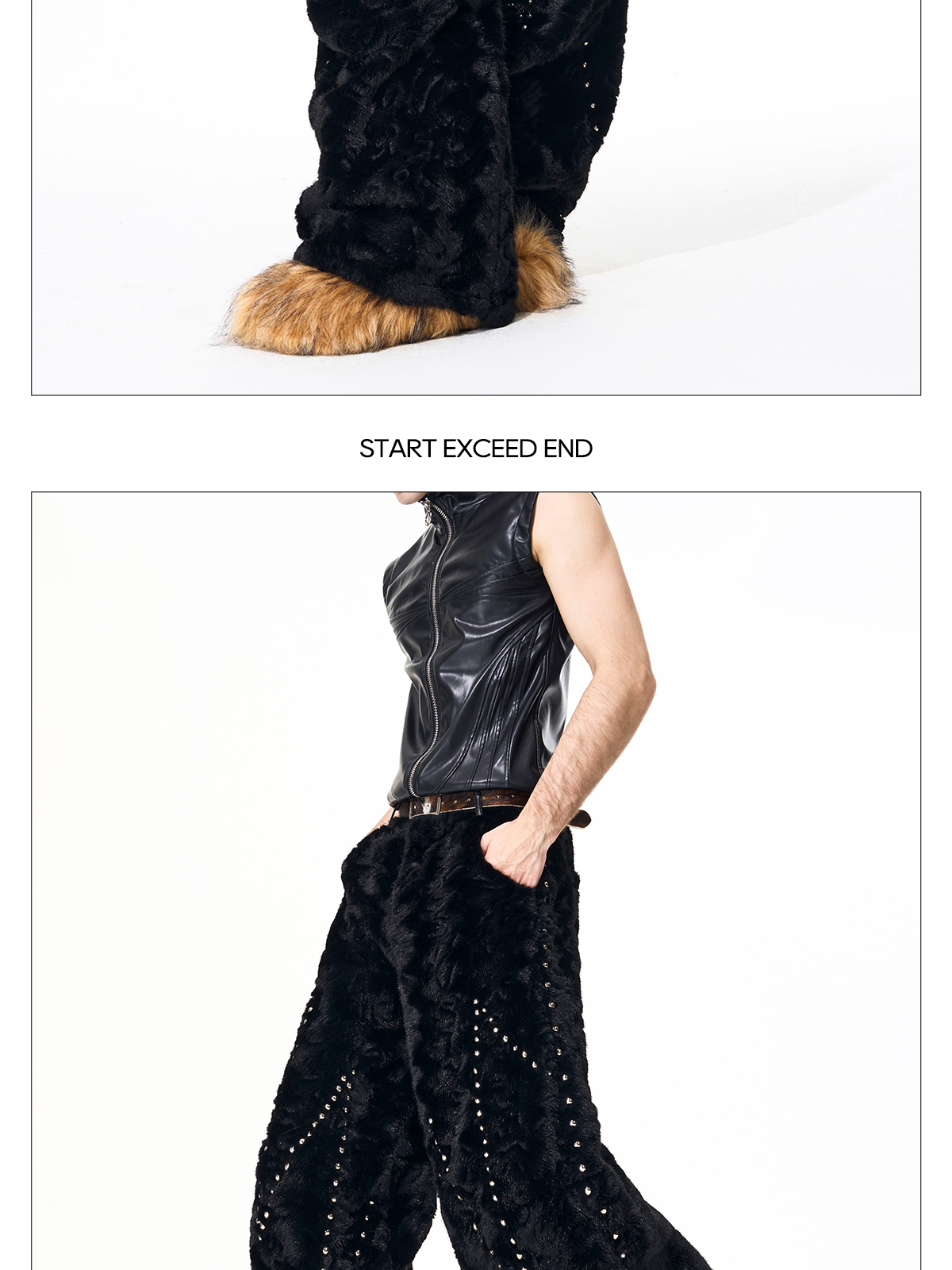 Colorblock Heart Thick Fake Mink Fur Hooded Jacket & Straight Wide Leg Pants Setup WN21838