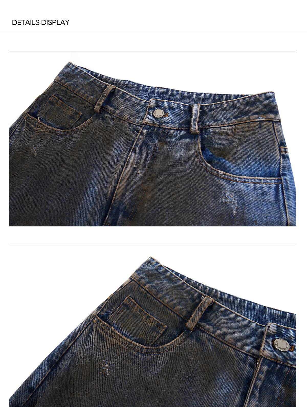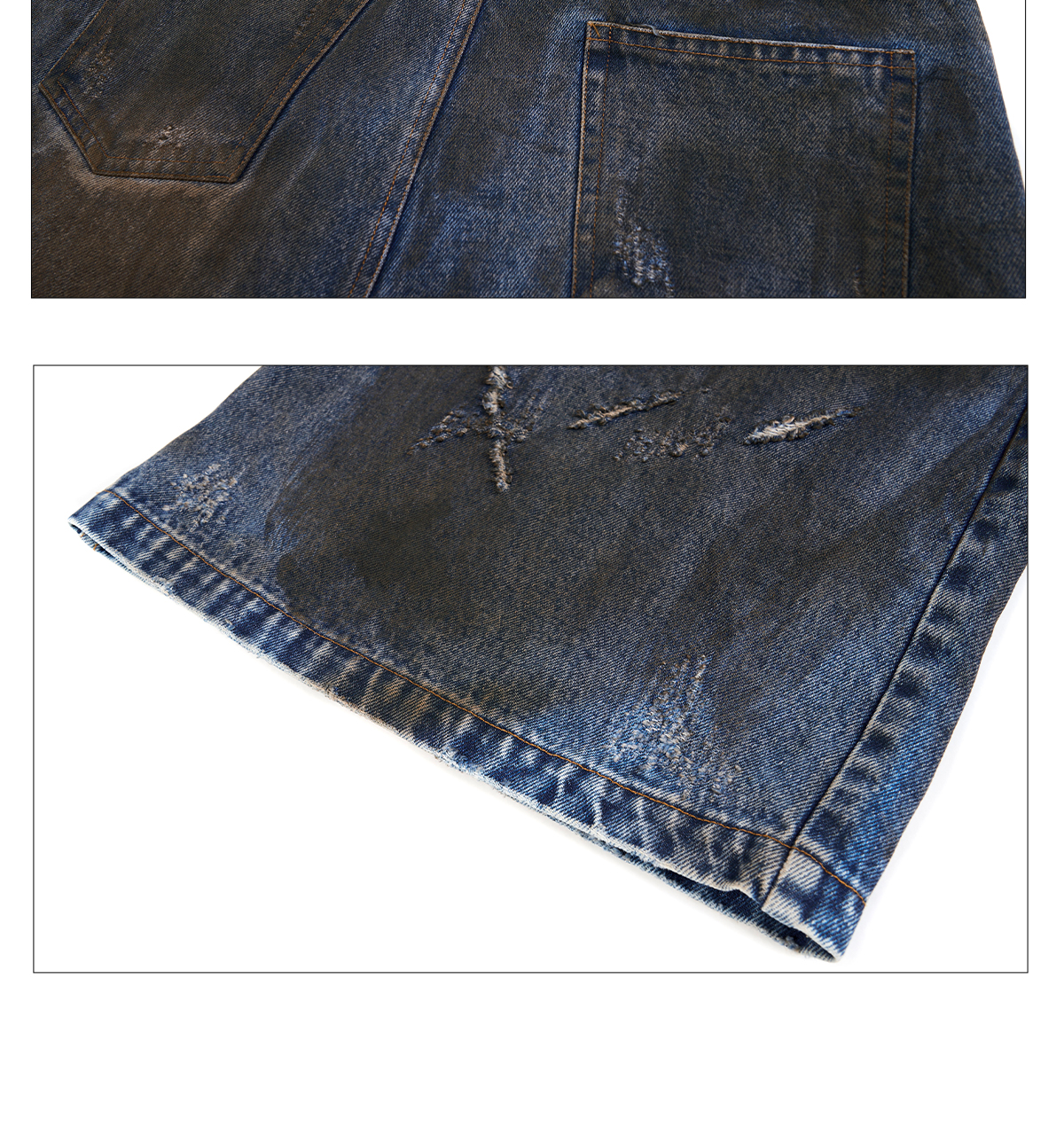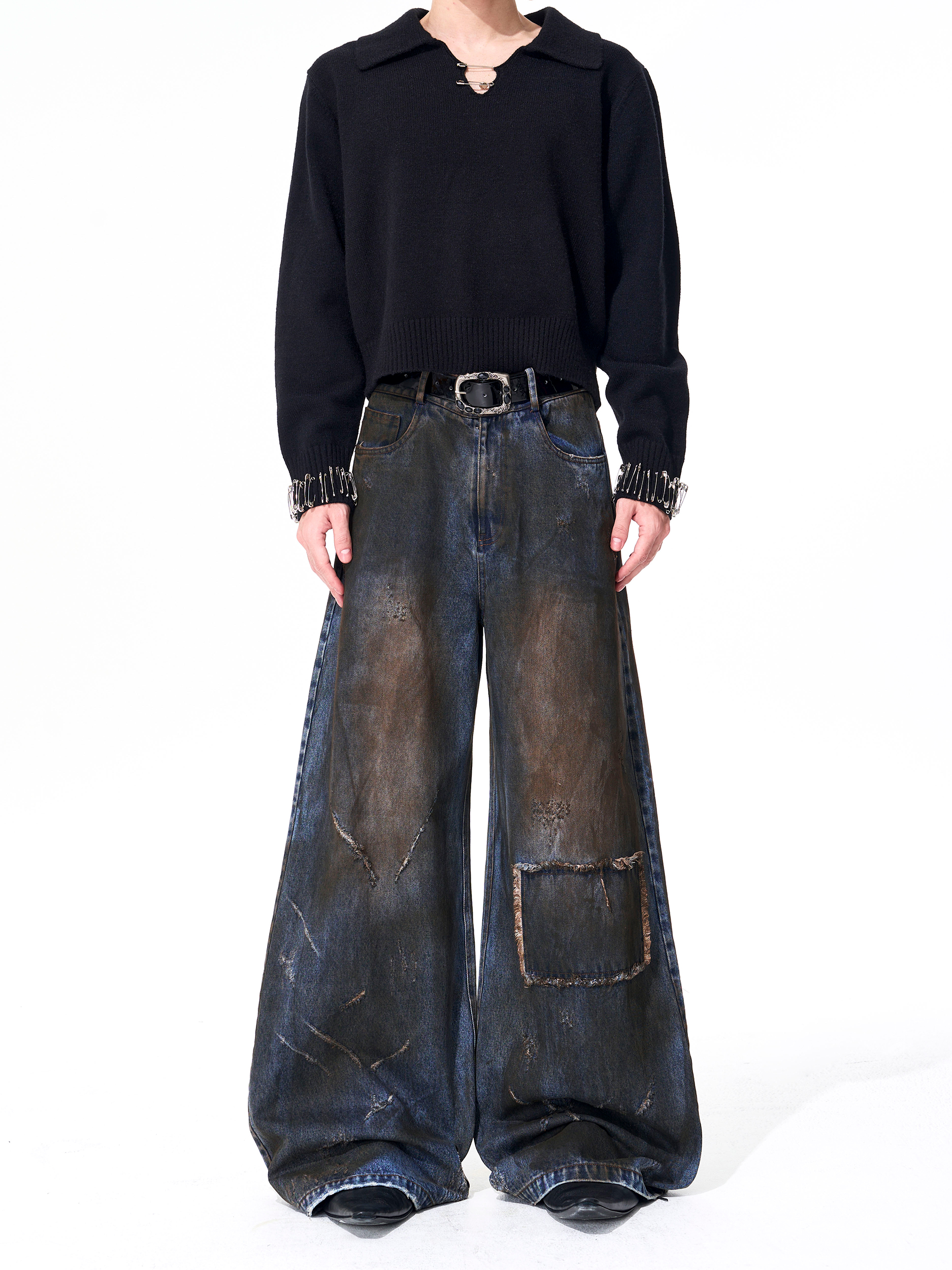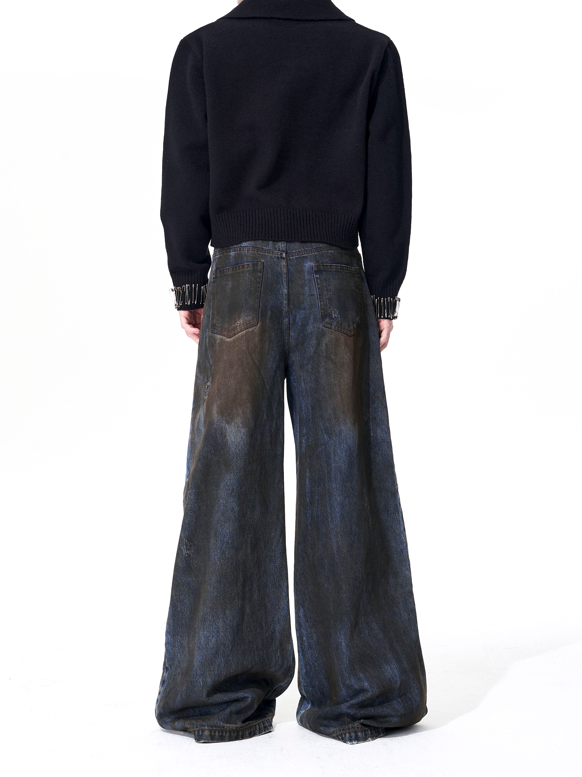 Dyed Damage Wide Leg Denim Jeans WN21843