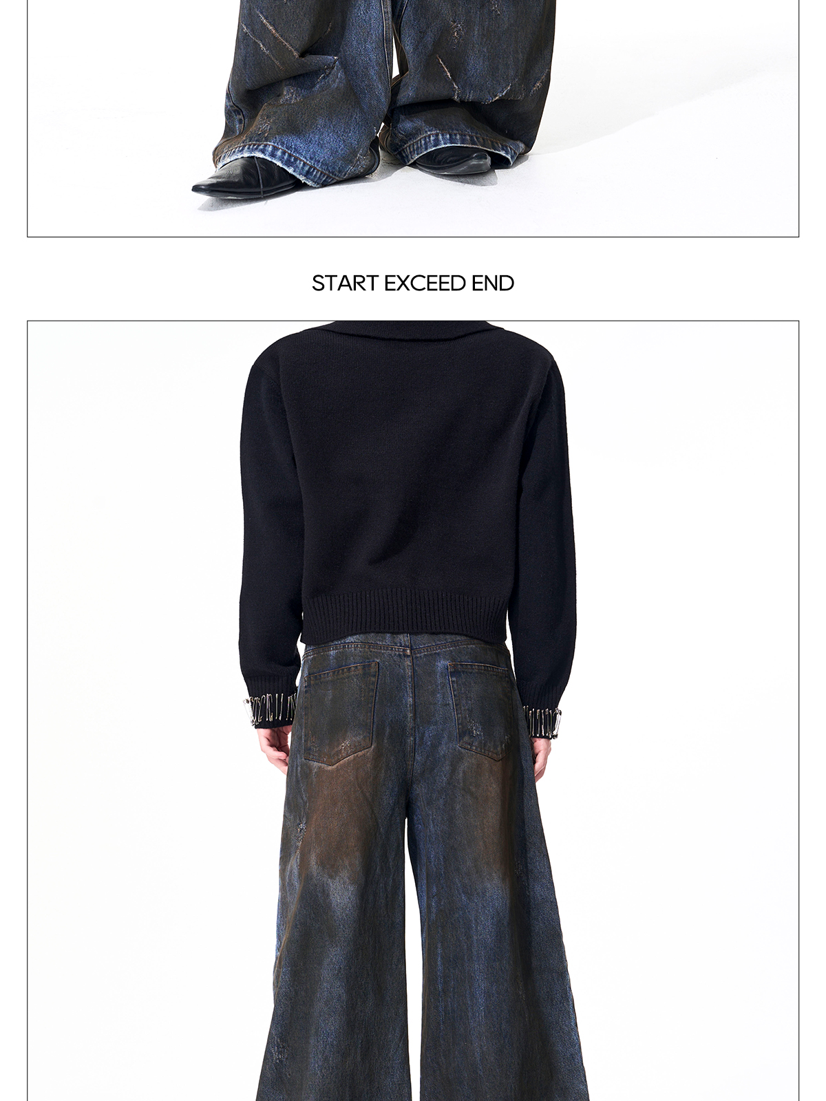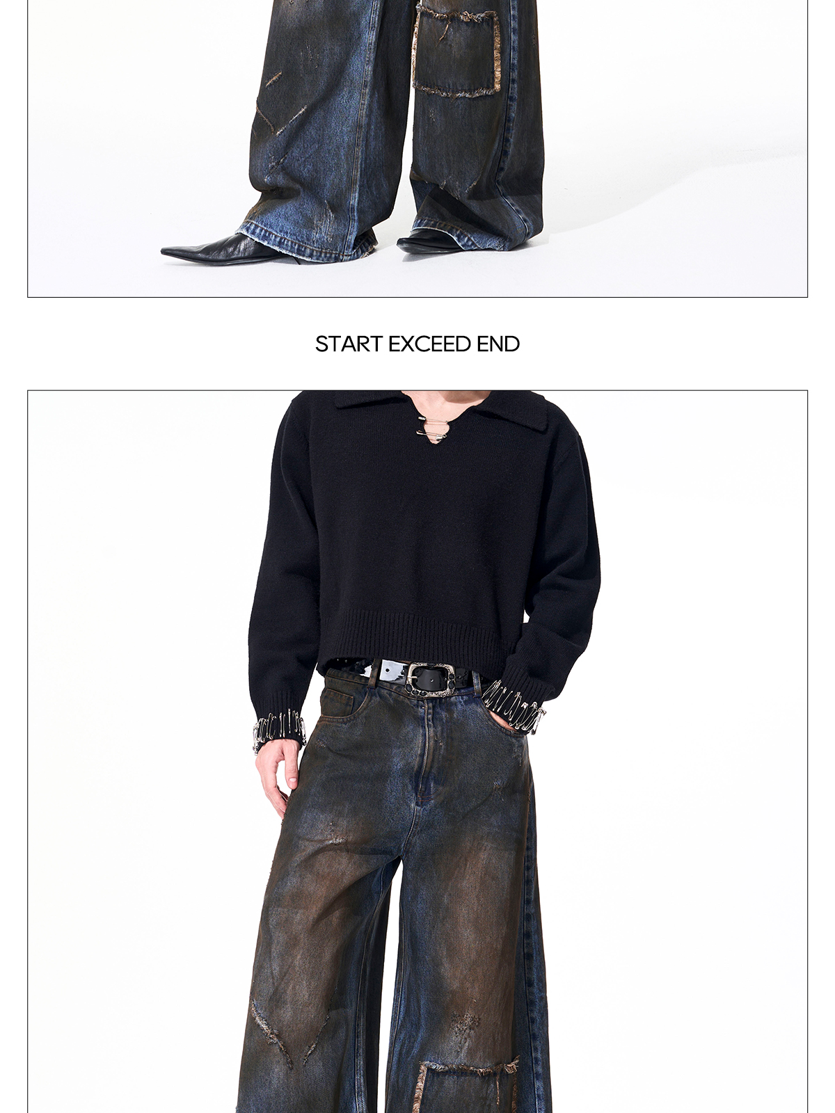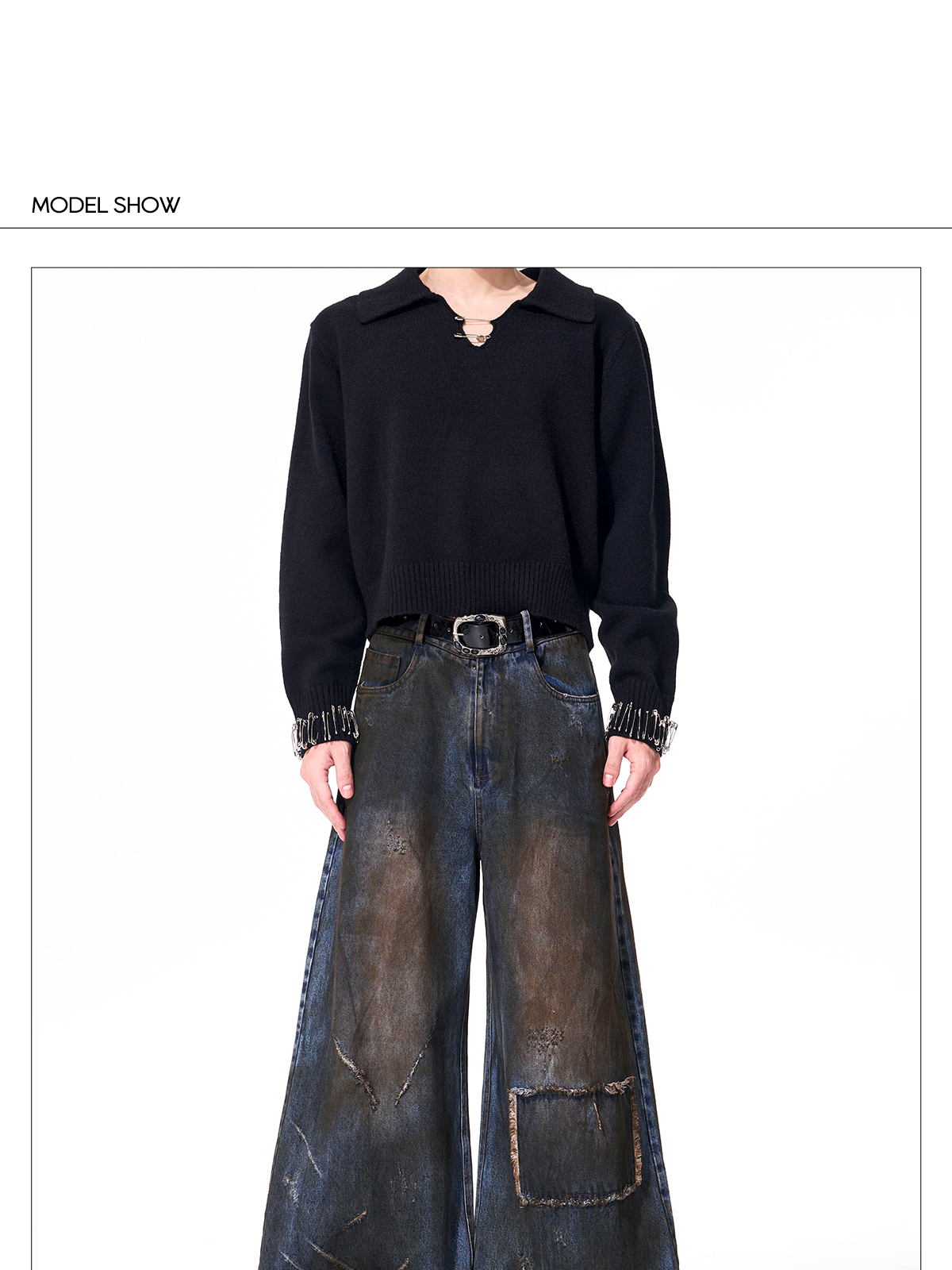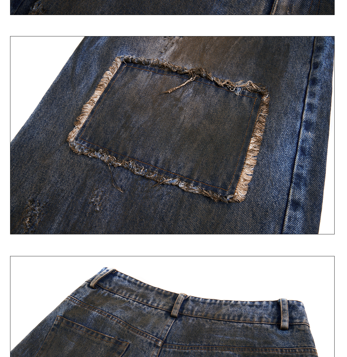 Dyed Damage Wide Leg Denim Jeans WN21843
