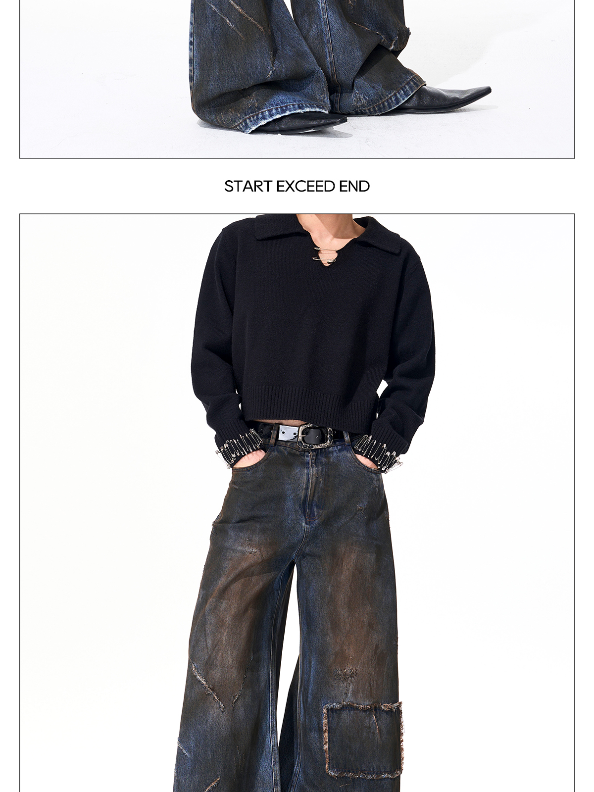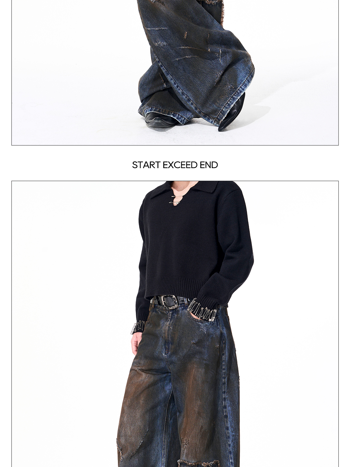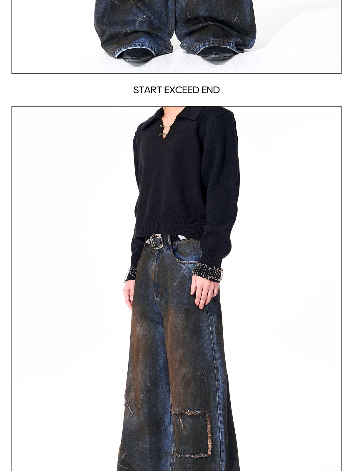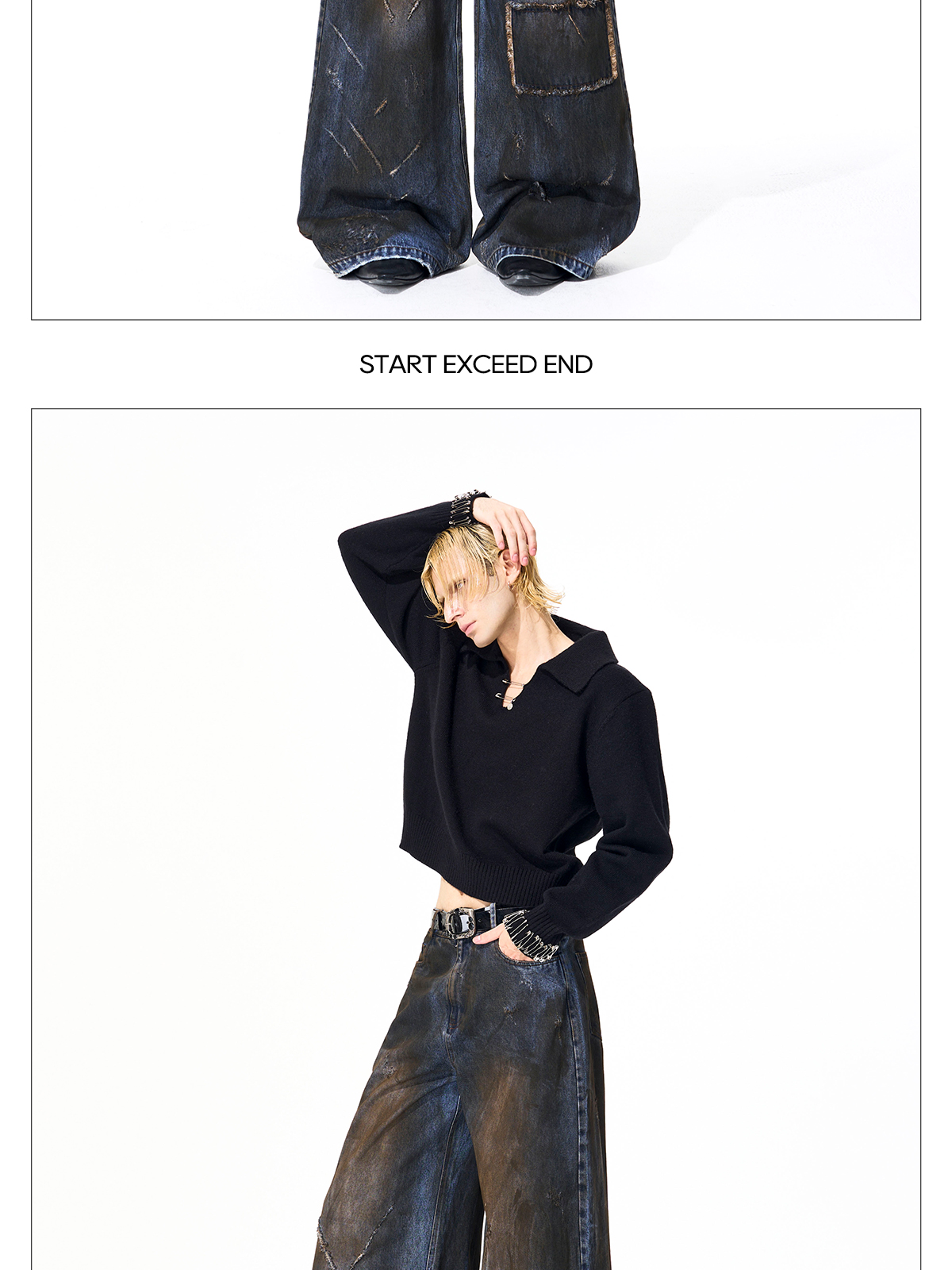 Dyed Damage Wide Leg Denim Jeans WN21843
