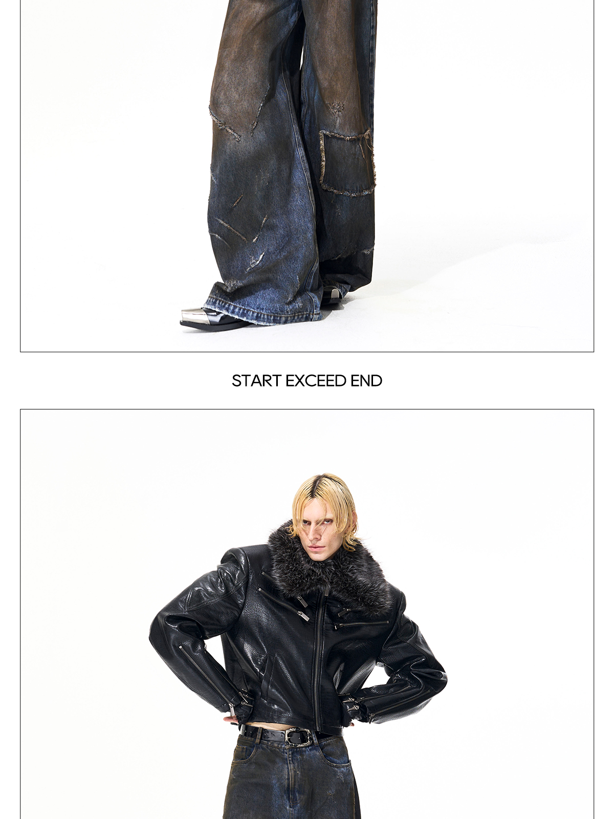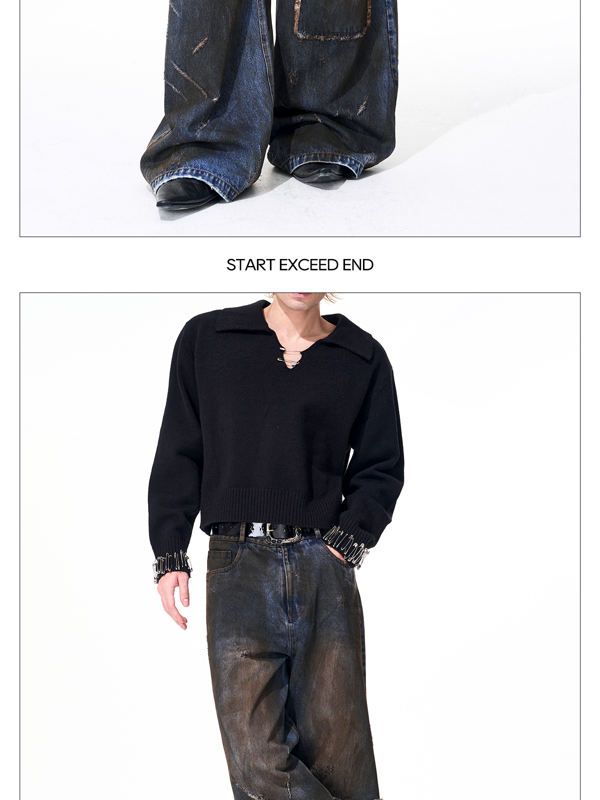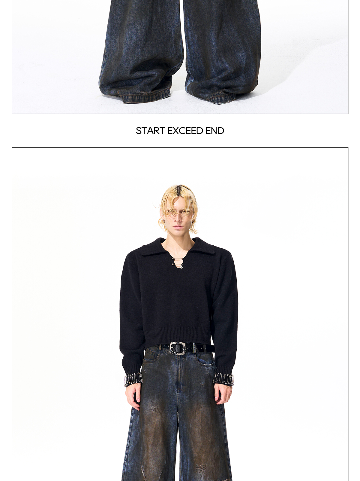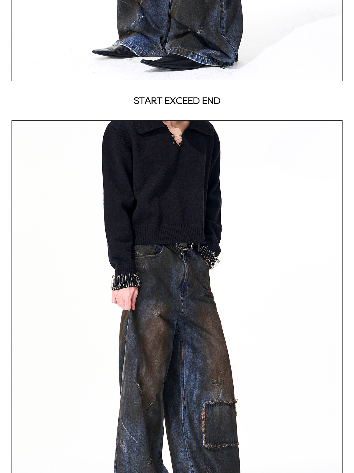 Dyed Damage Wide Leg Denim Jeans WN21843