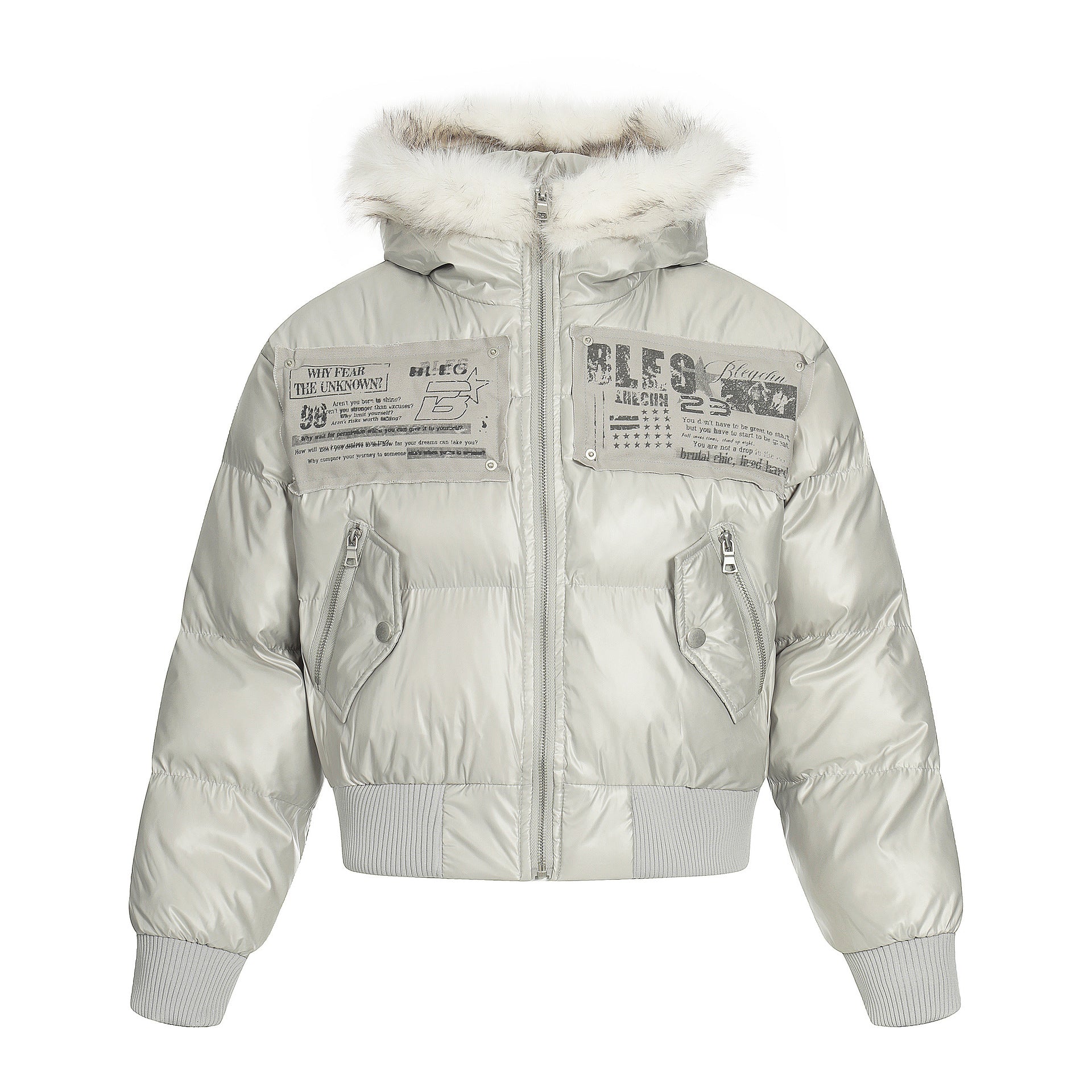 Hooded Fake Fur Collar Pockets Short Puffer Jacket WN21887