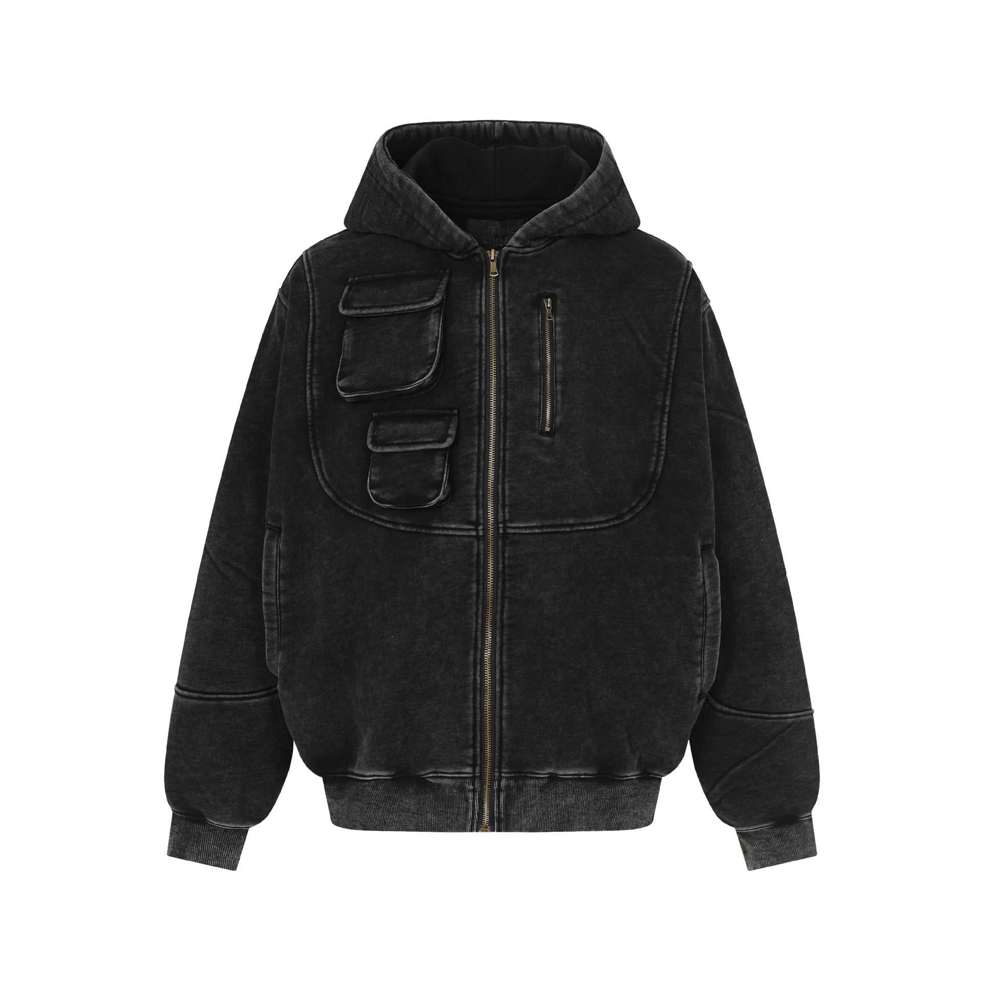 Heavyweight Dirty-Dye Pocket Design Zipper Hoodie WN21914