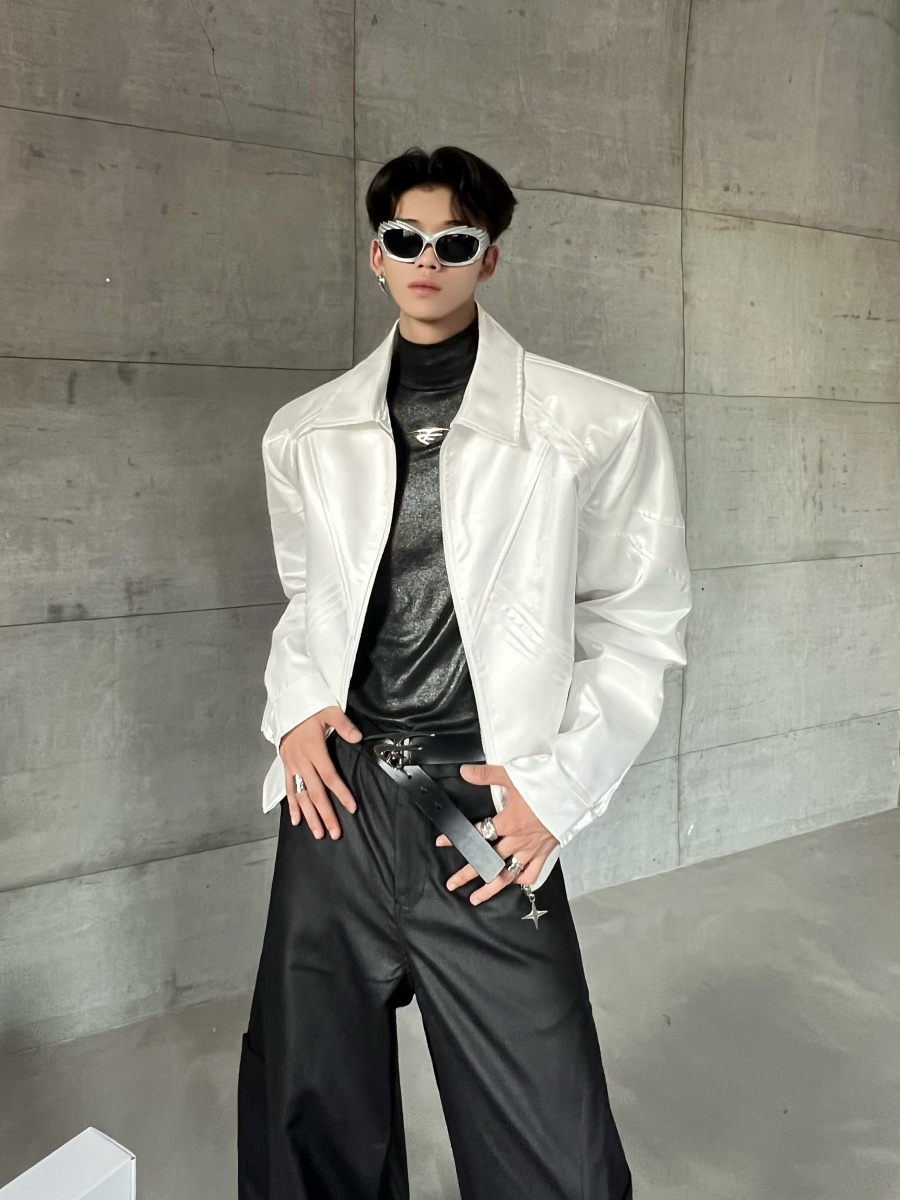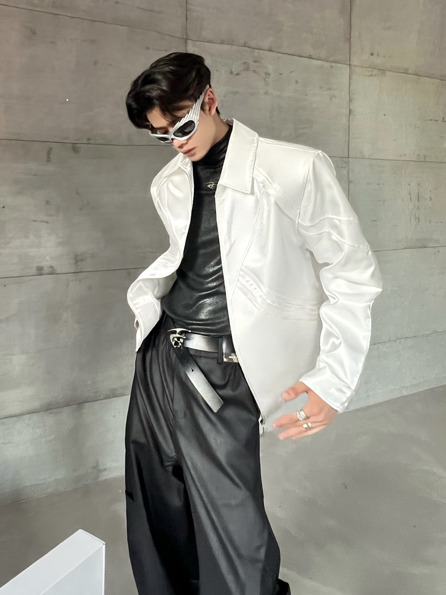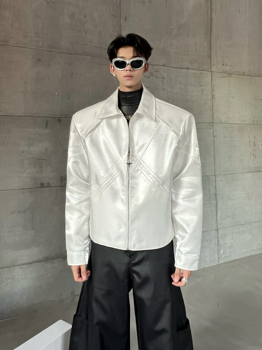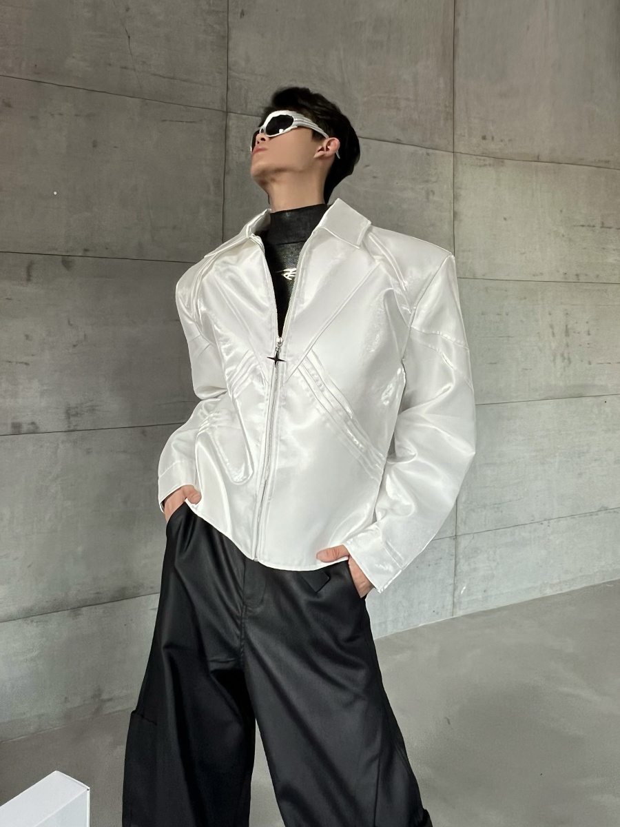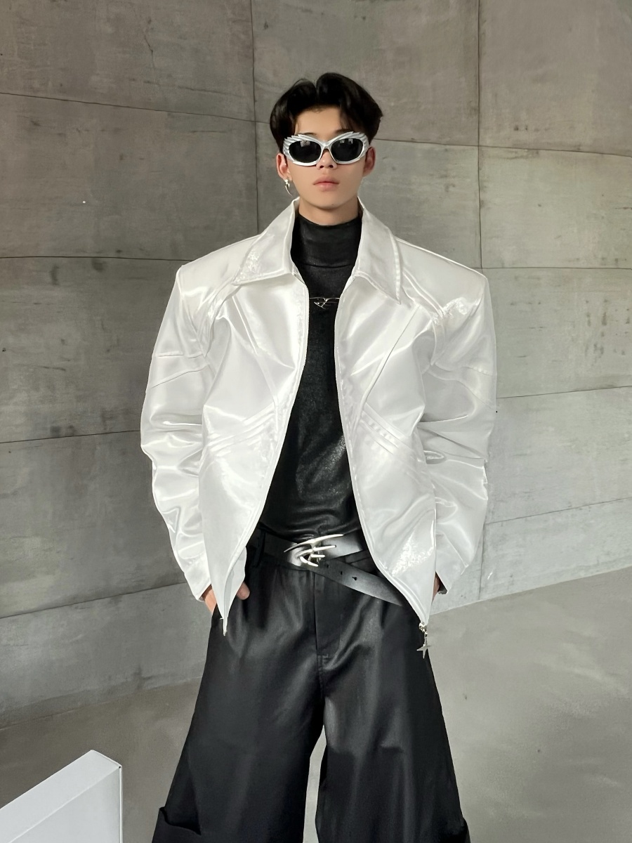 Shoulder-Pad Silky Glossy Tailored Jacket WN21938