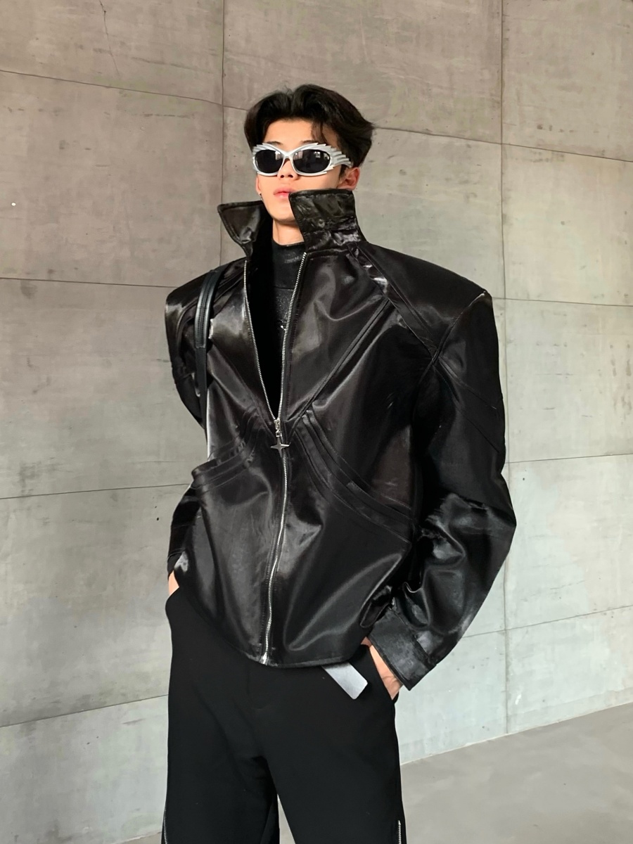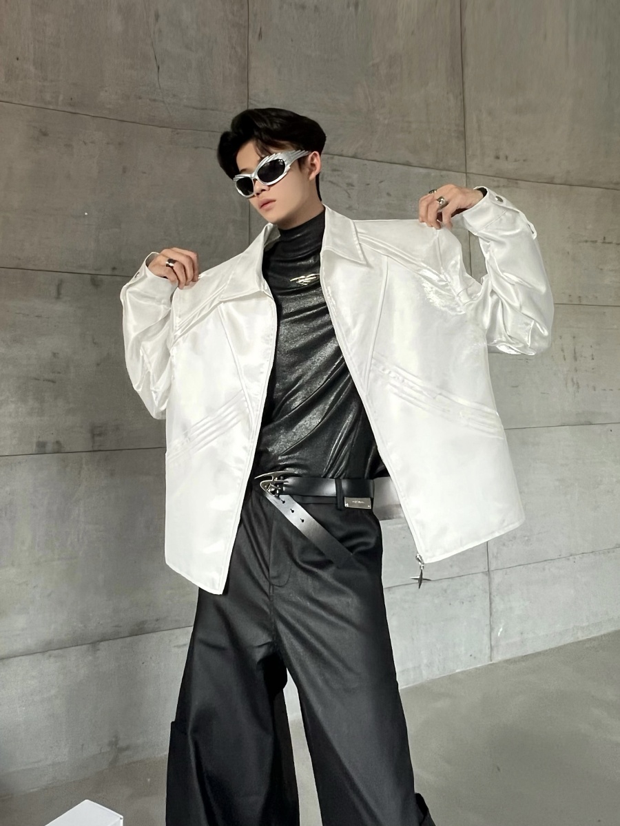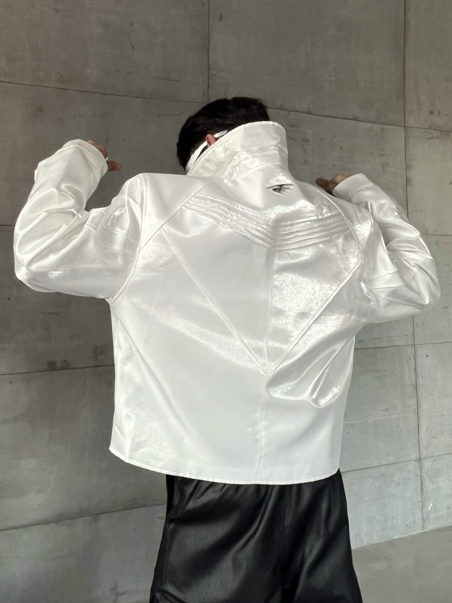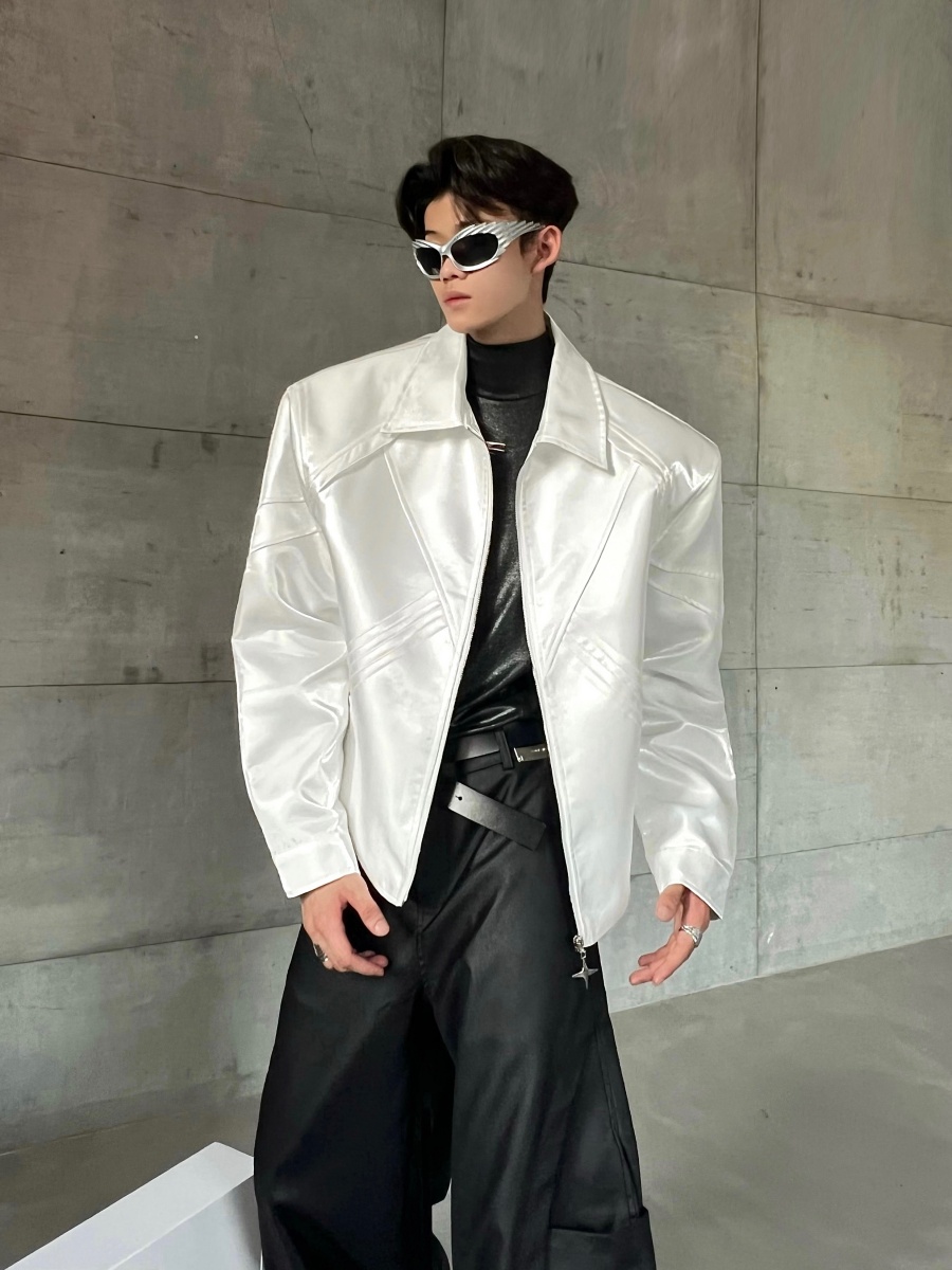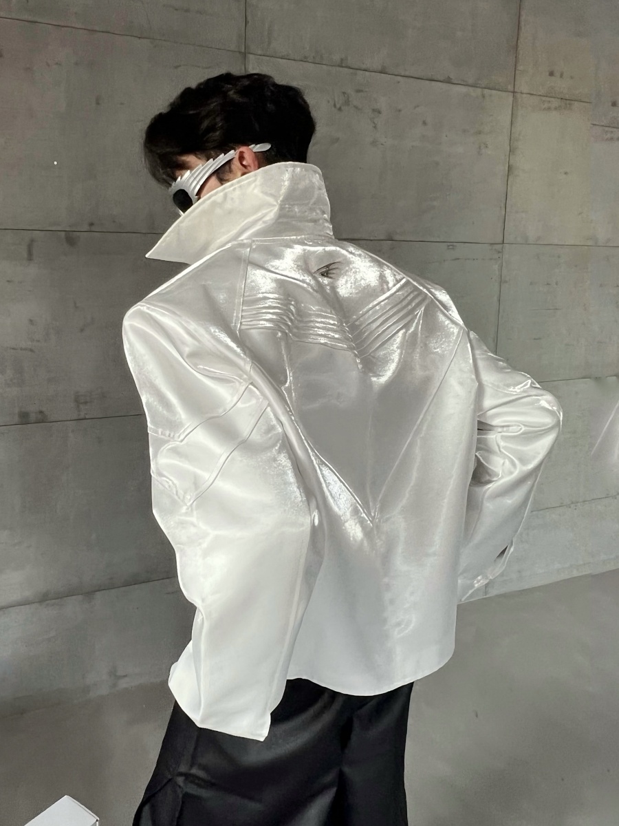 Shoulder-Pad Silky Glossy Tailored Jacket WN21938