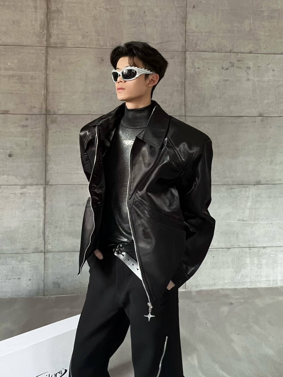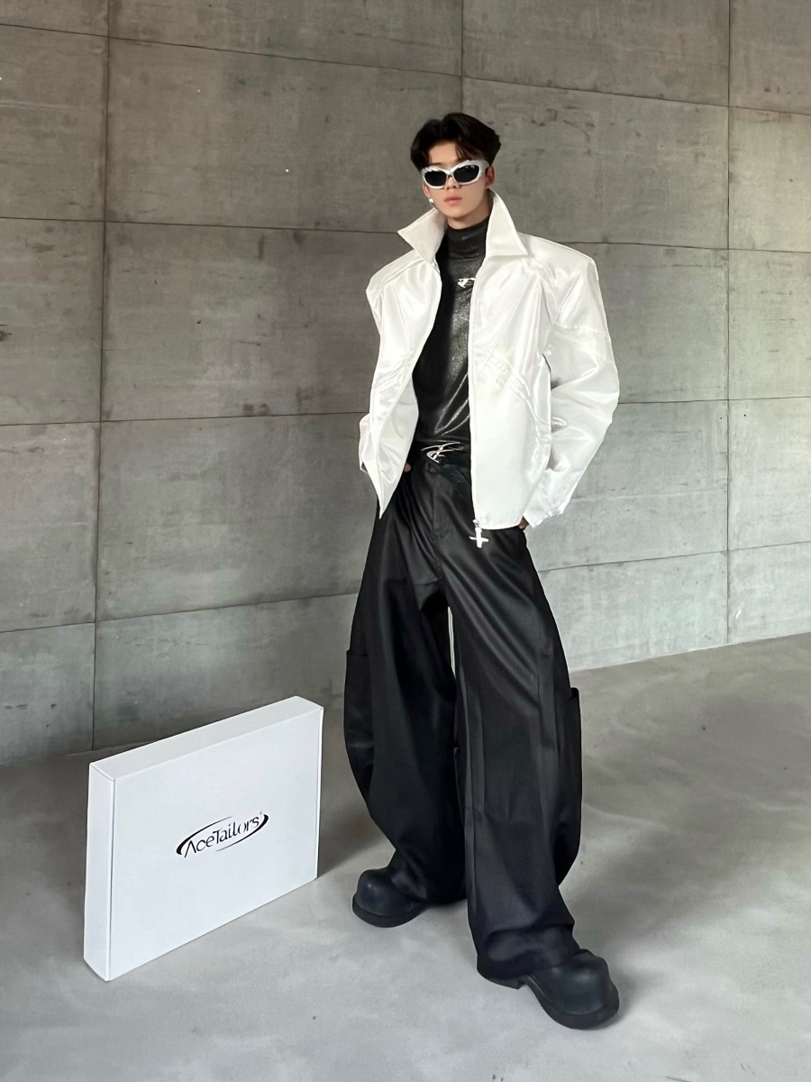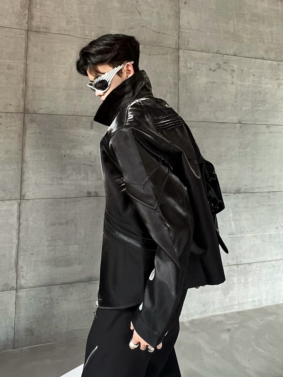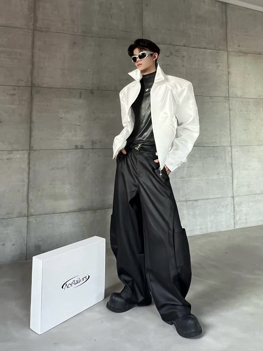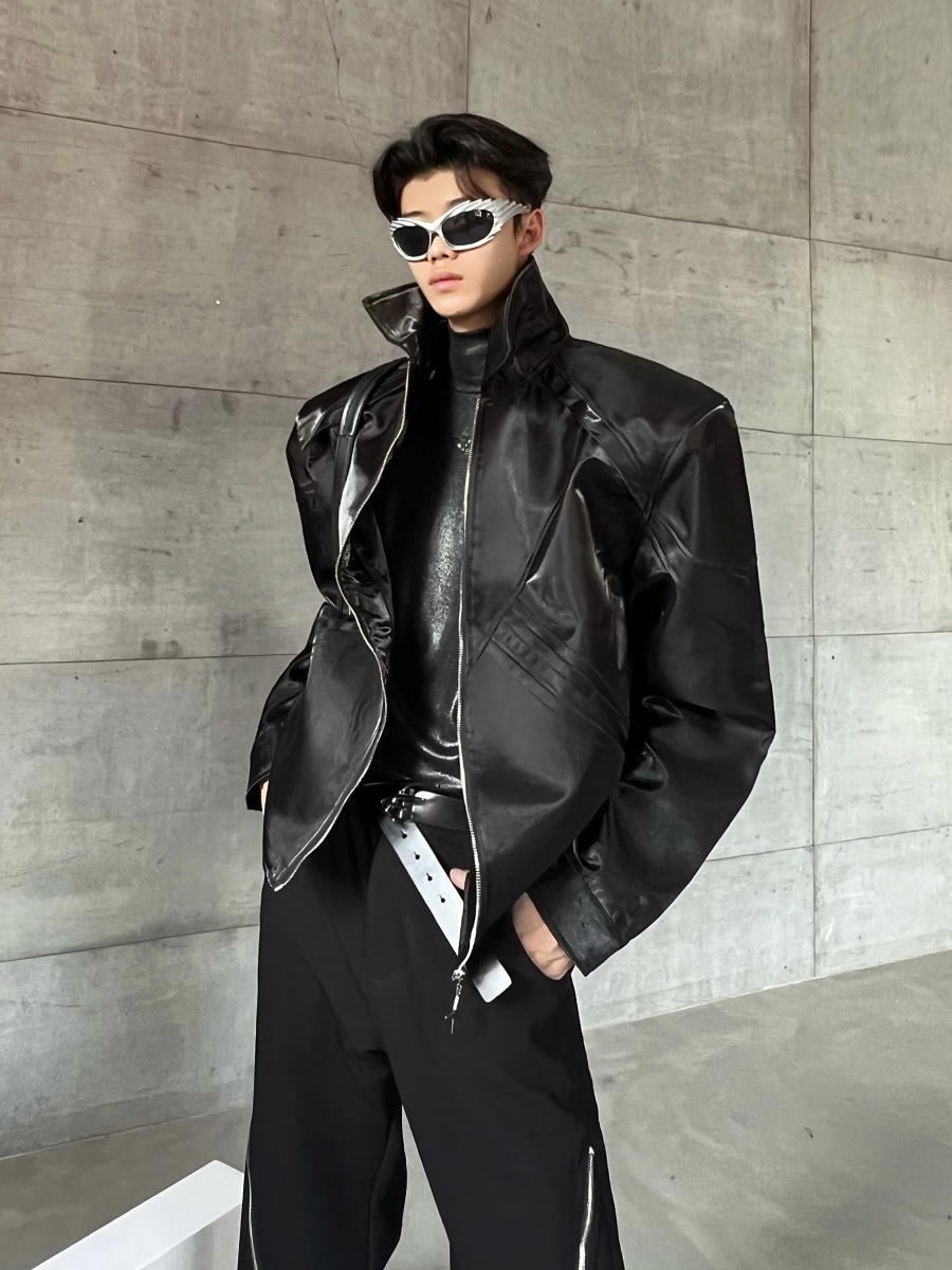 Shoulder-Pad Silky Glossy Tailored Jacket WN21938