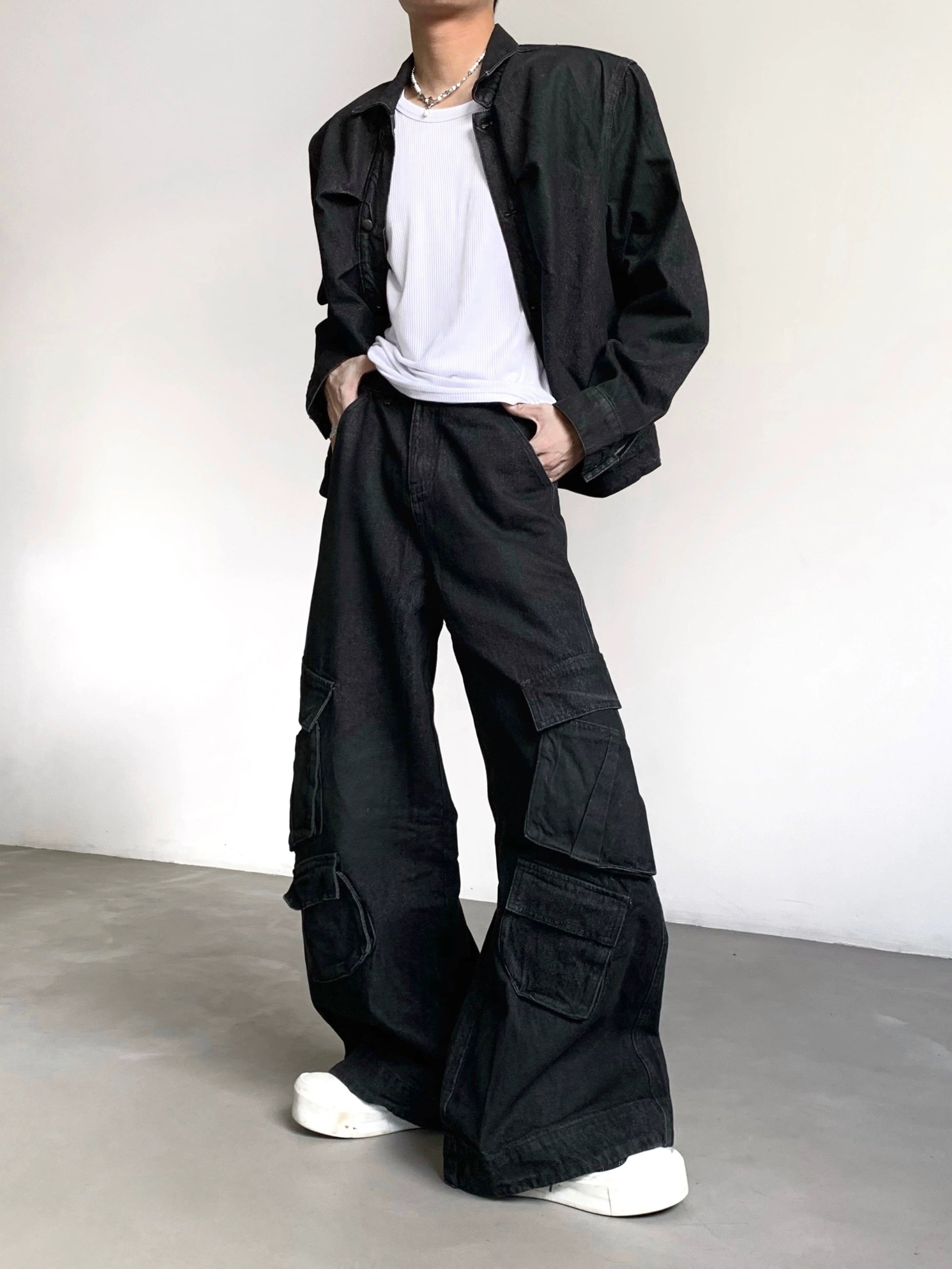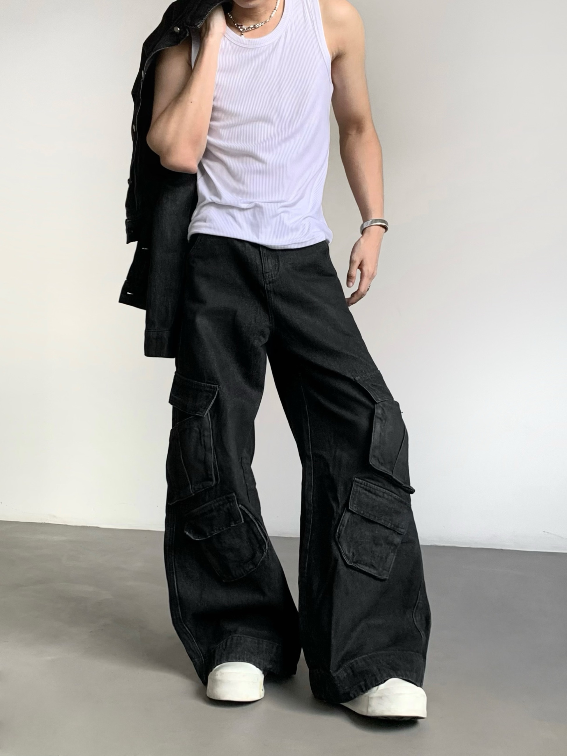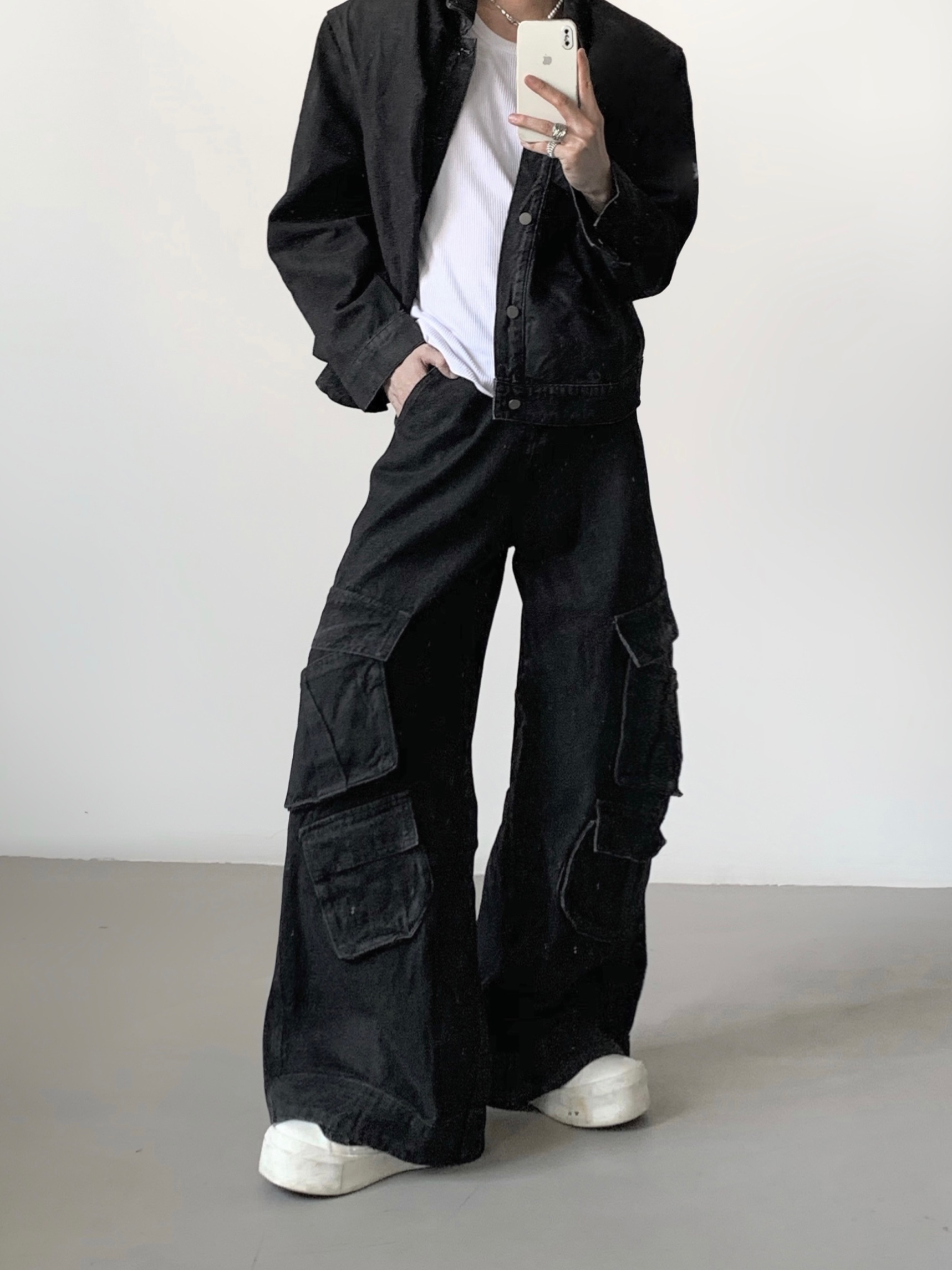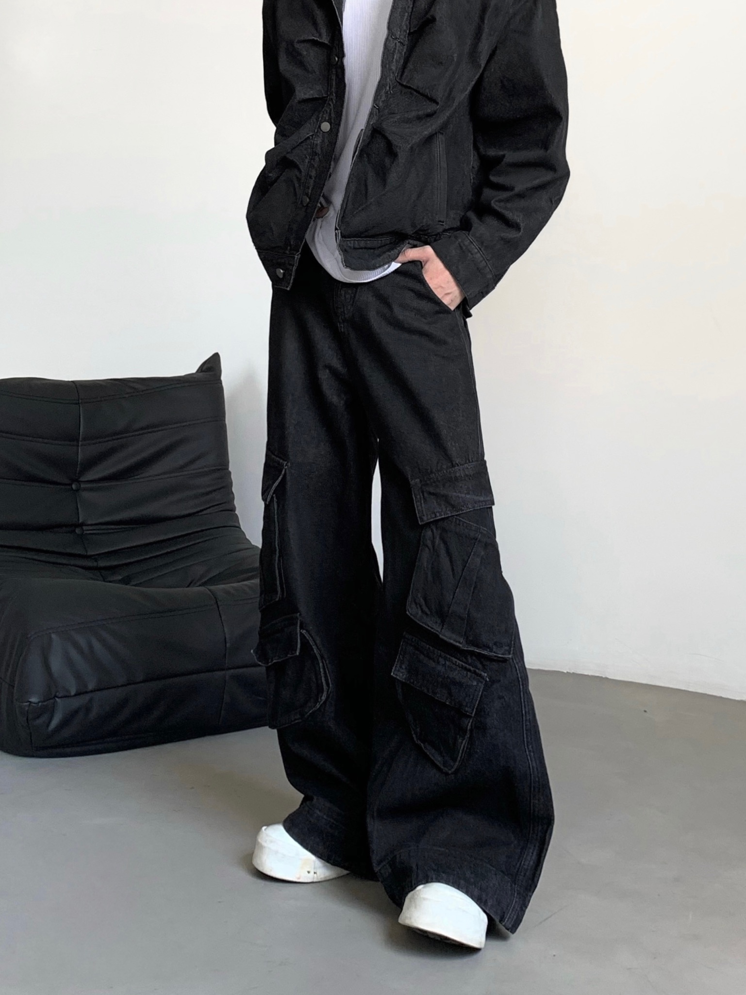 Washed Pockets Design Curved Flare Denim Jeans WN21957