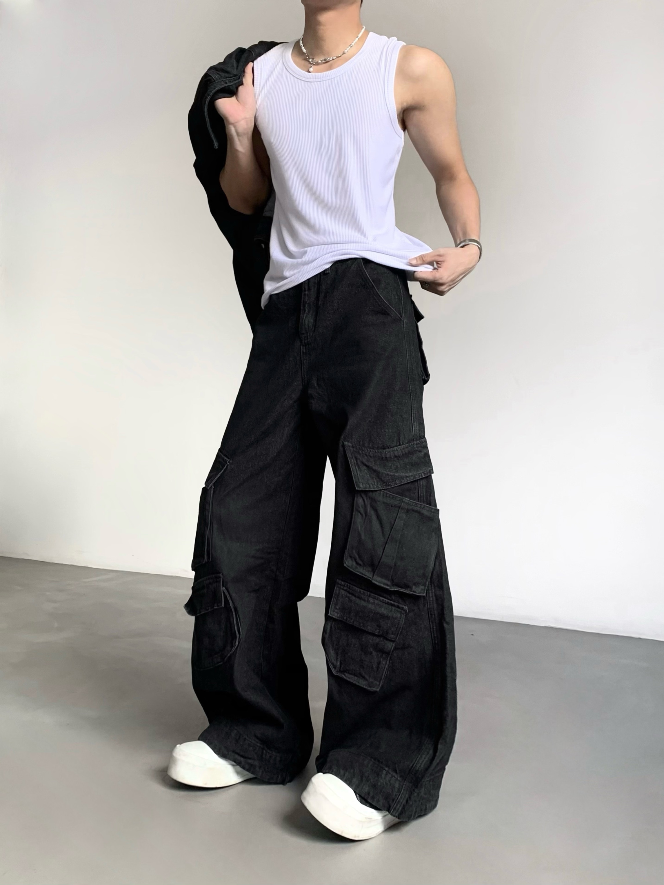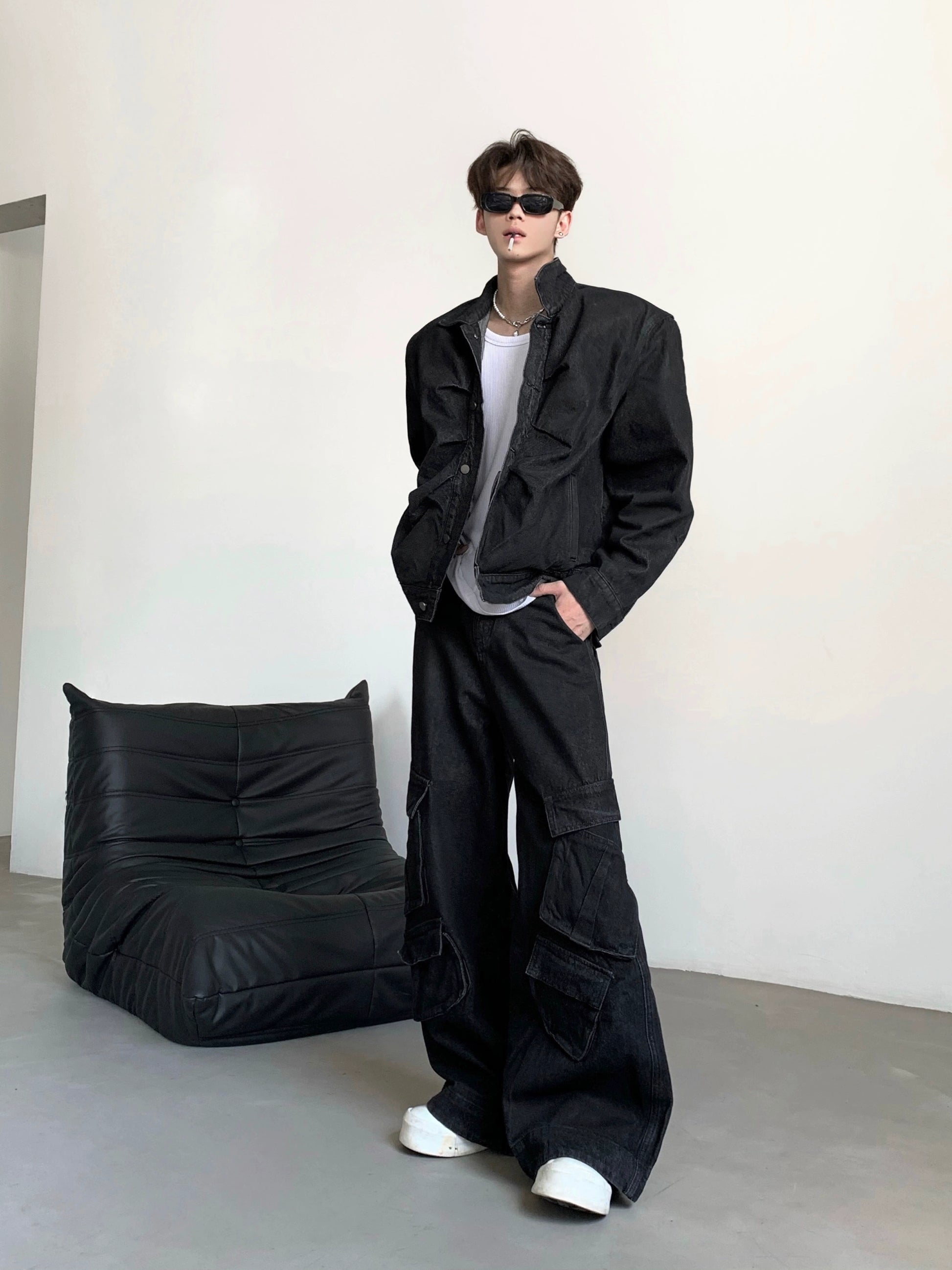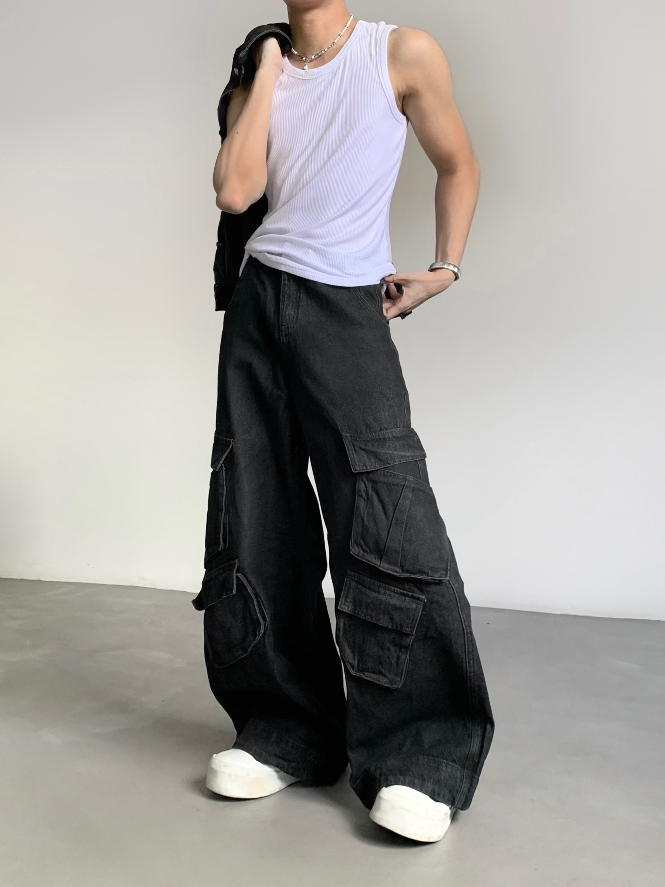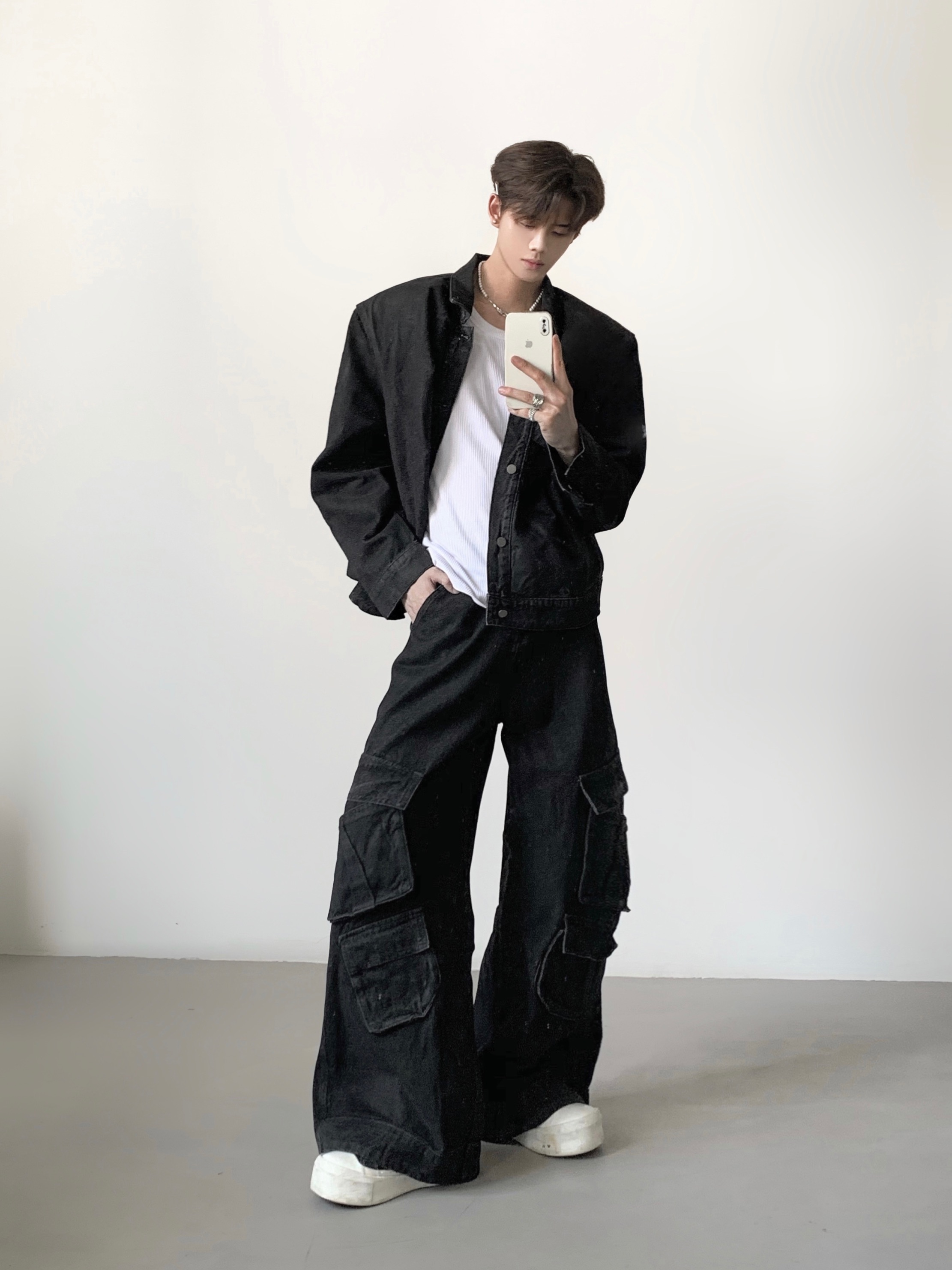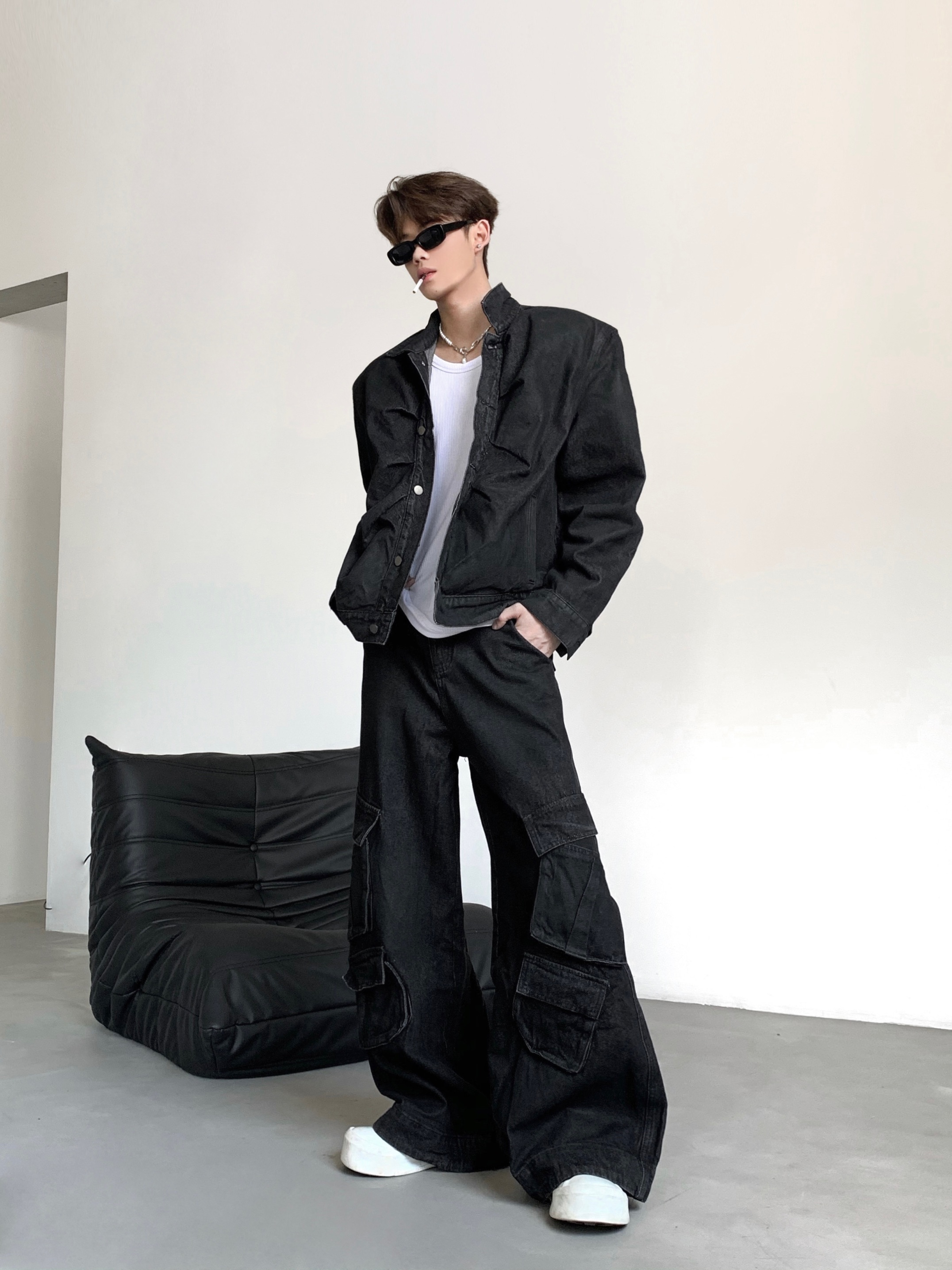 Washed Pockets Design Curved Flare Denim Jeans WN21957