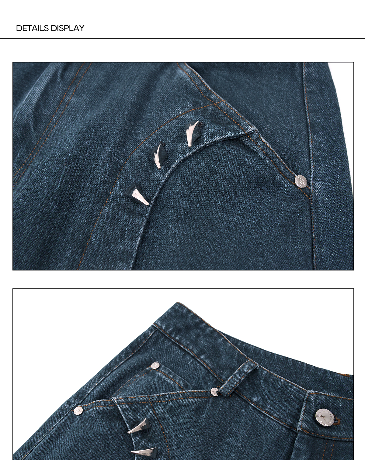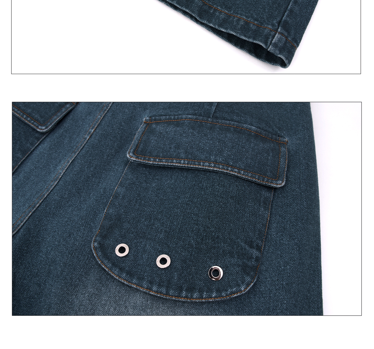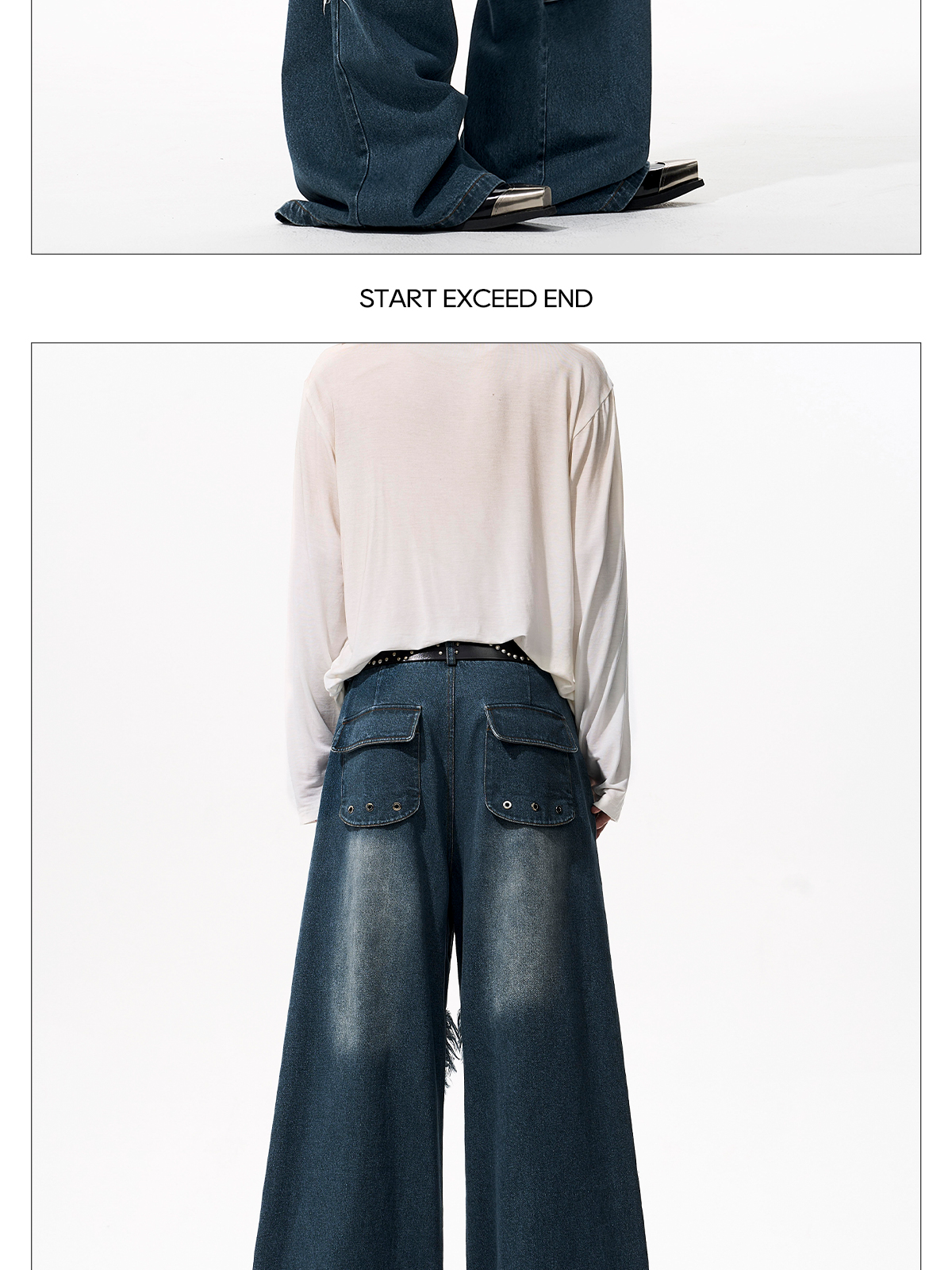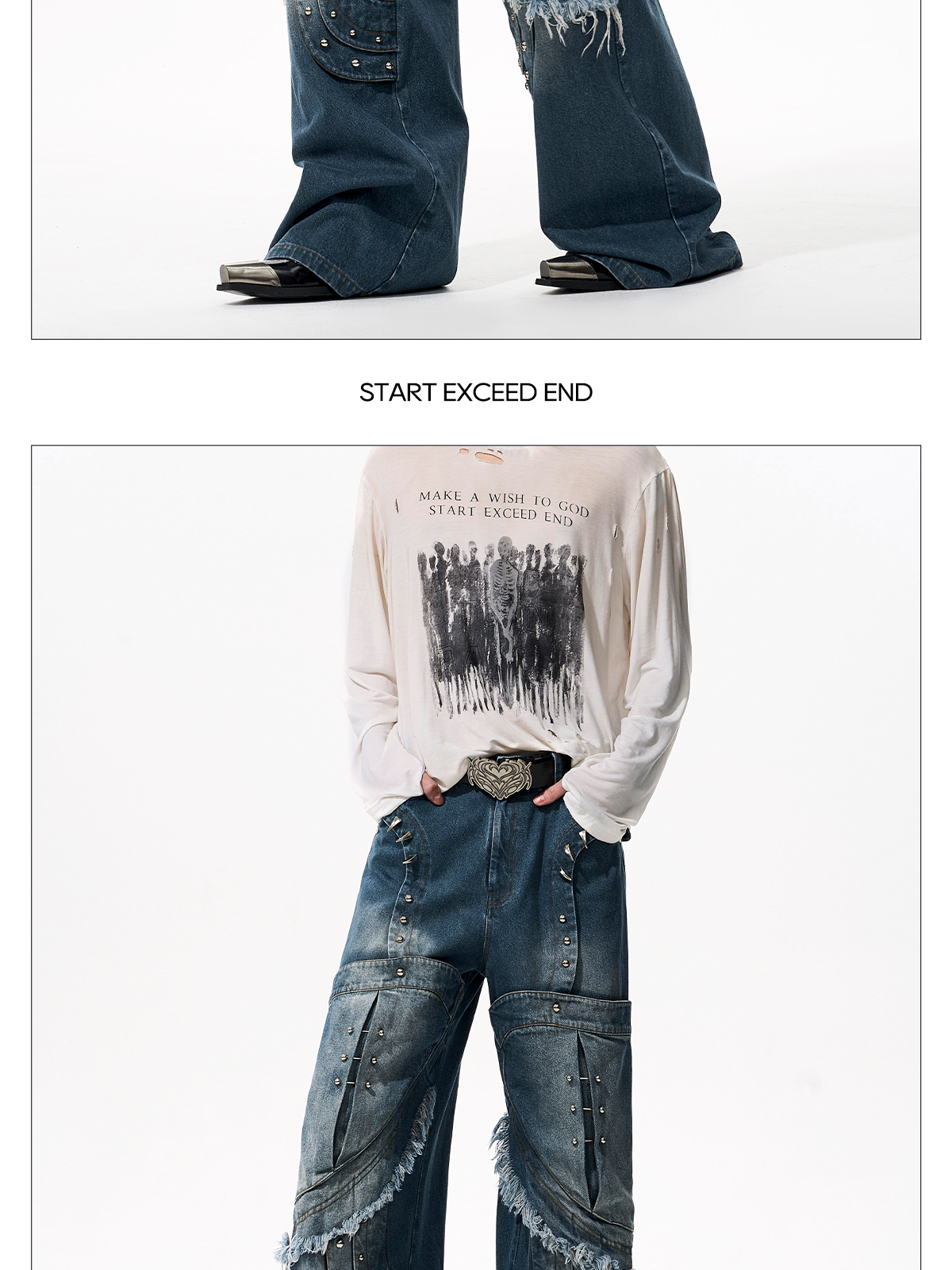 Deconstructed Metal Rivet Washed Damage Straight Denim Jeans & Denim Jacket Setup WN21968