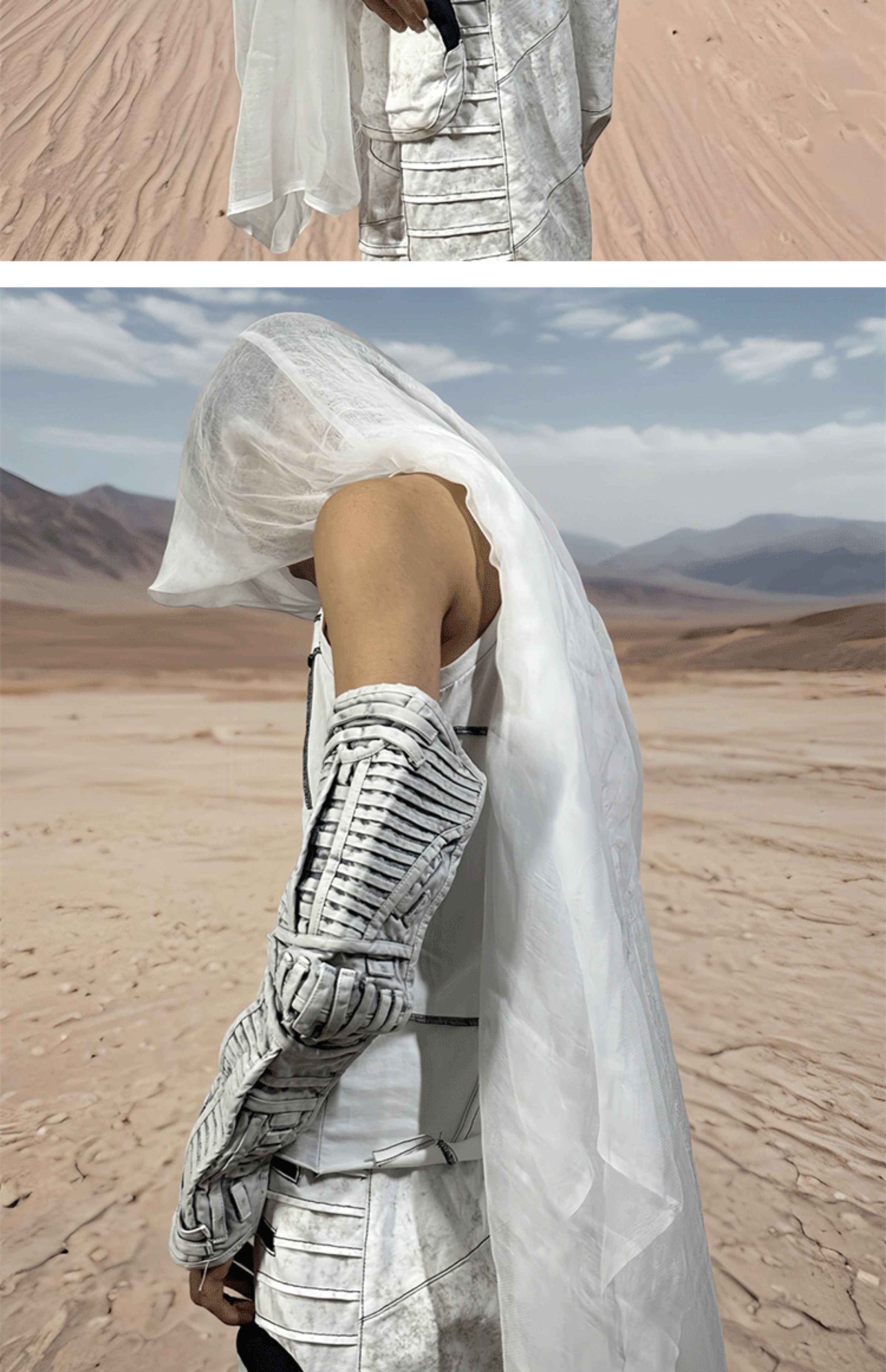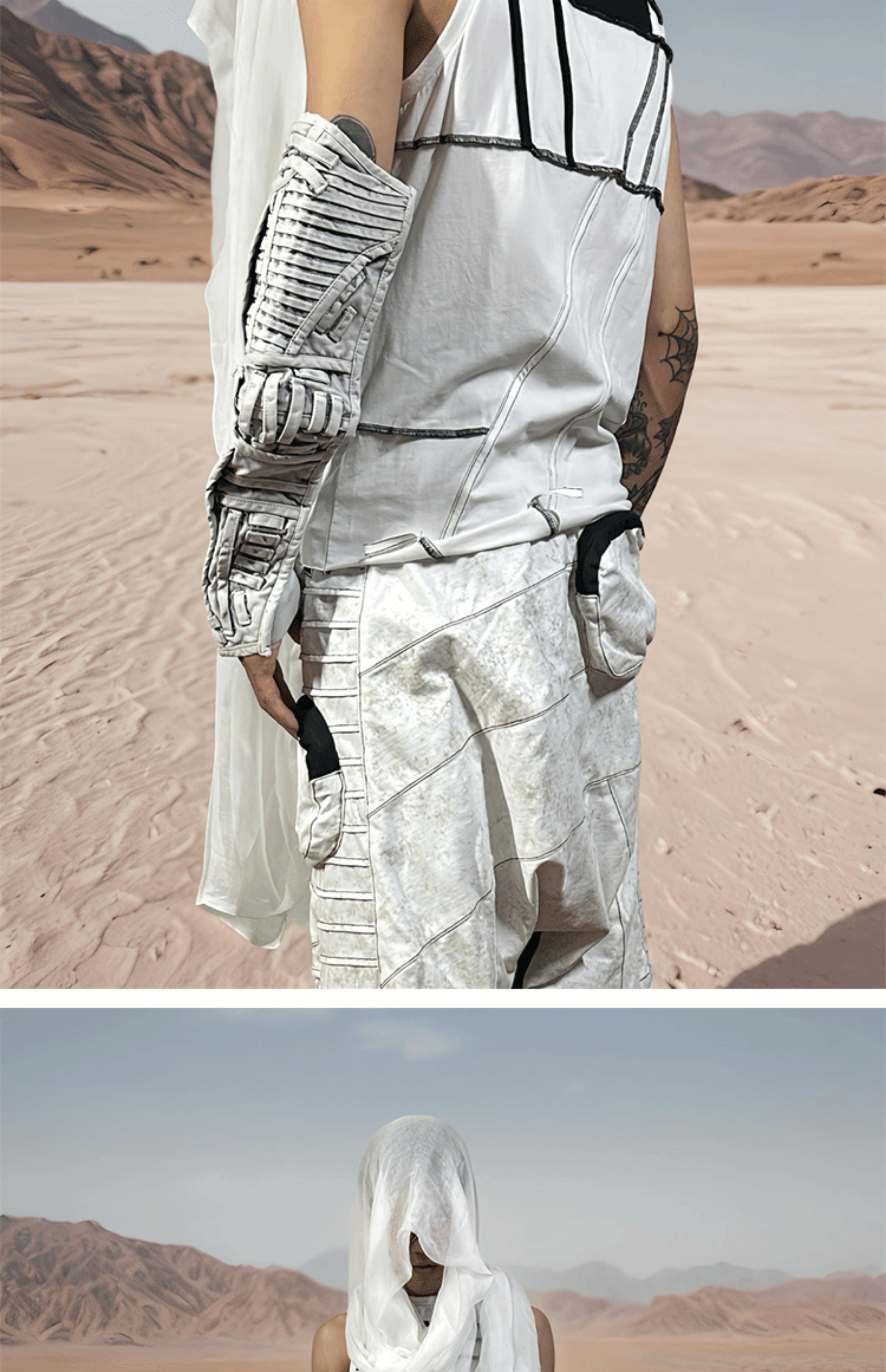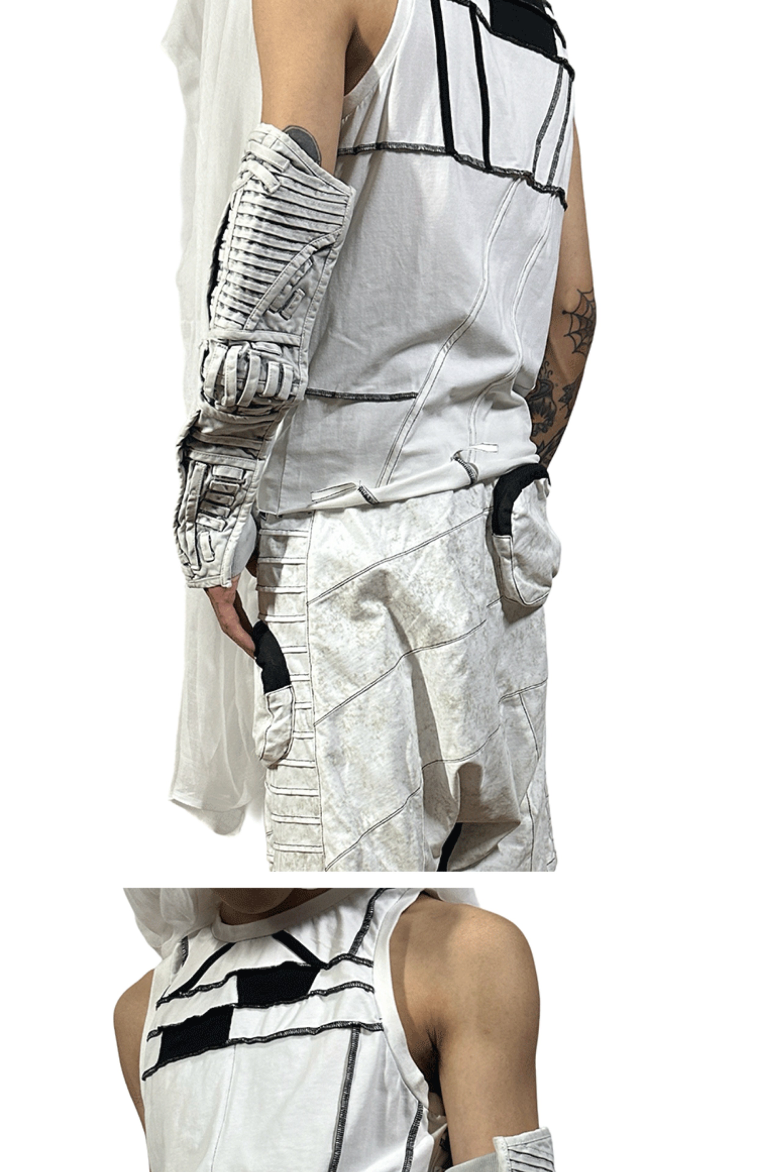 Faded Washed Hollow-Out Strap Mecha Long Fingerless Gloves WN21981