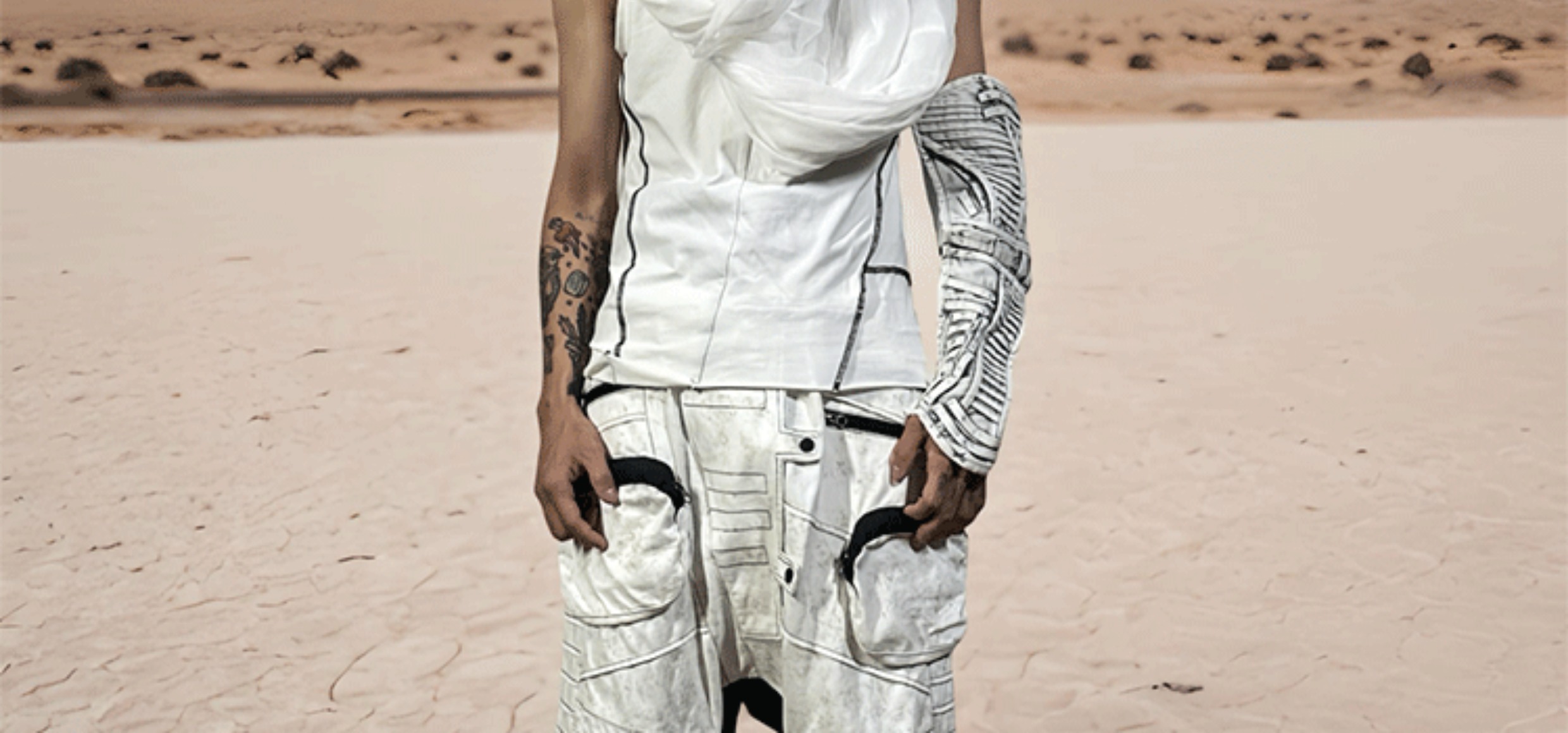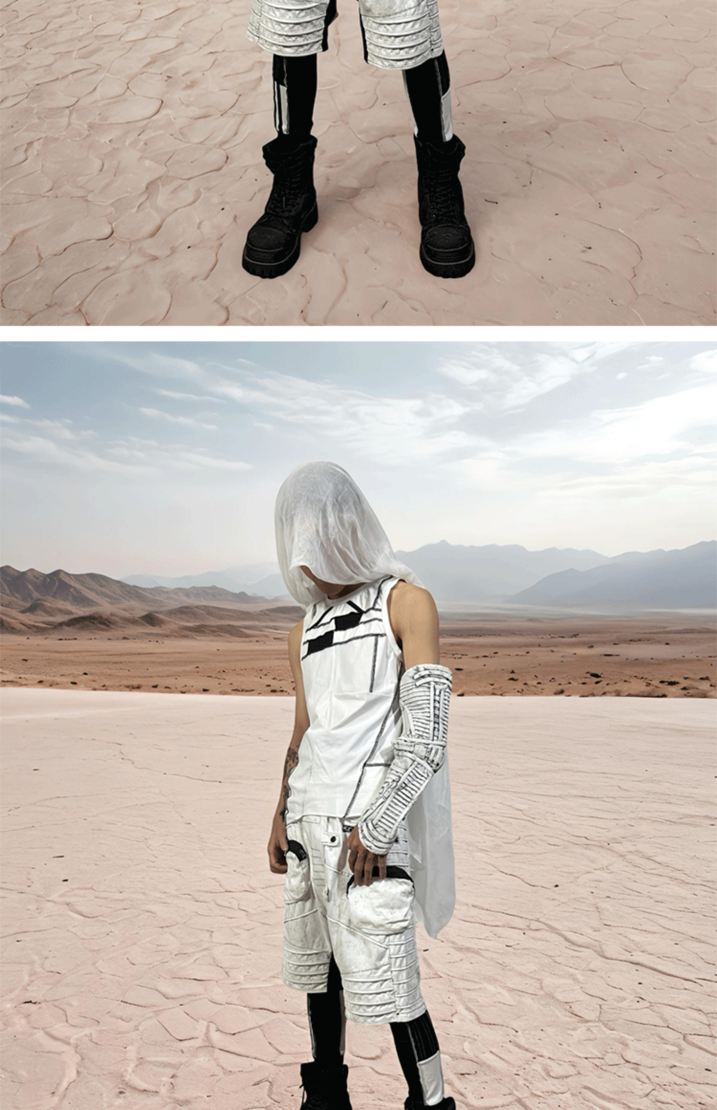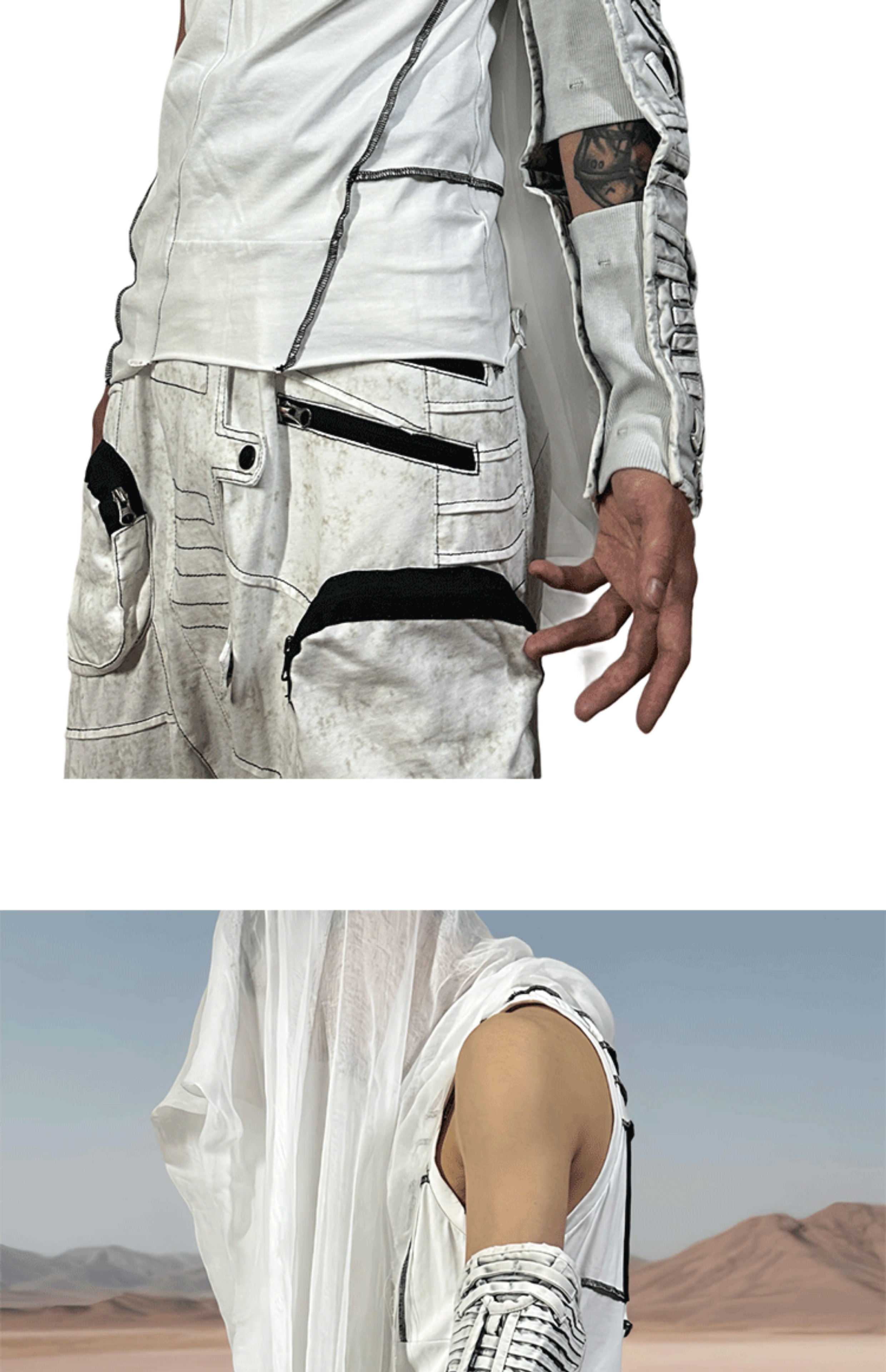 Faded Washed Hollow-Out Strap Mecha Long Fingerless Gloves WN21981