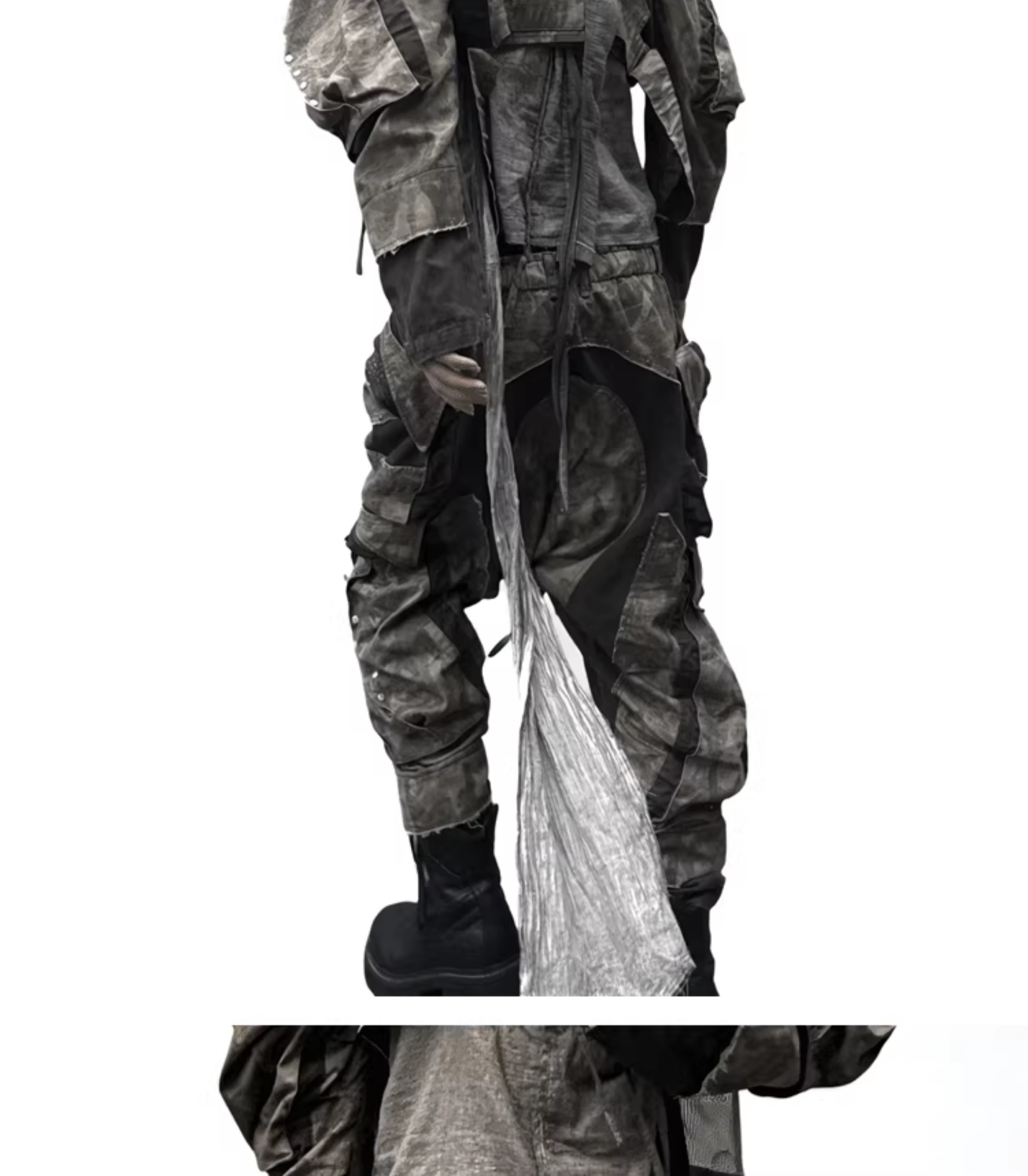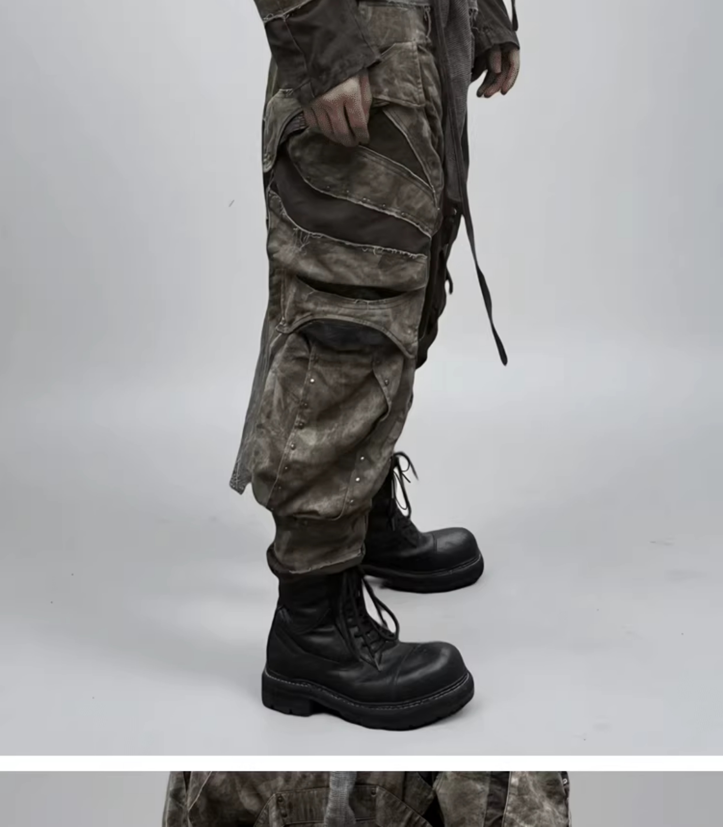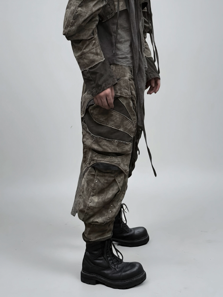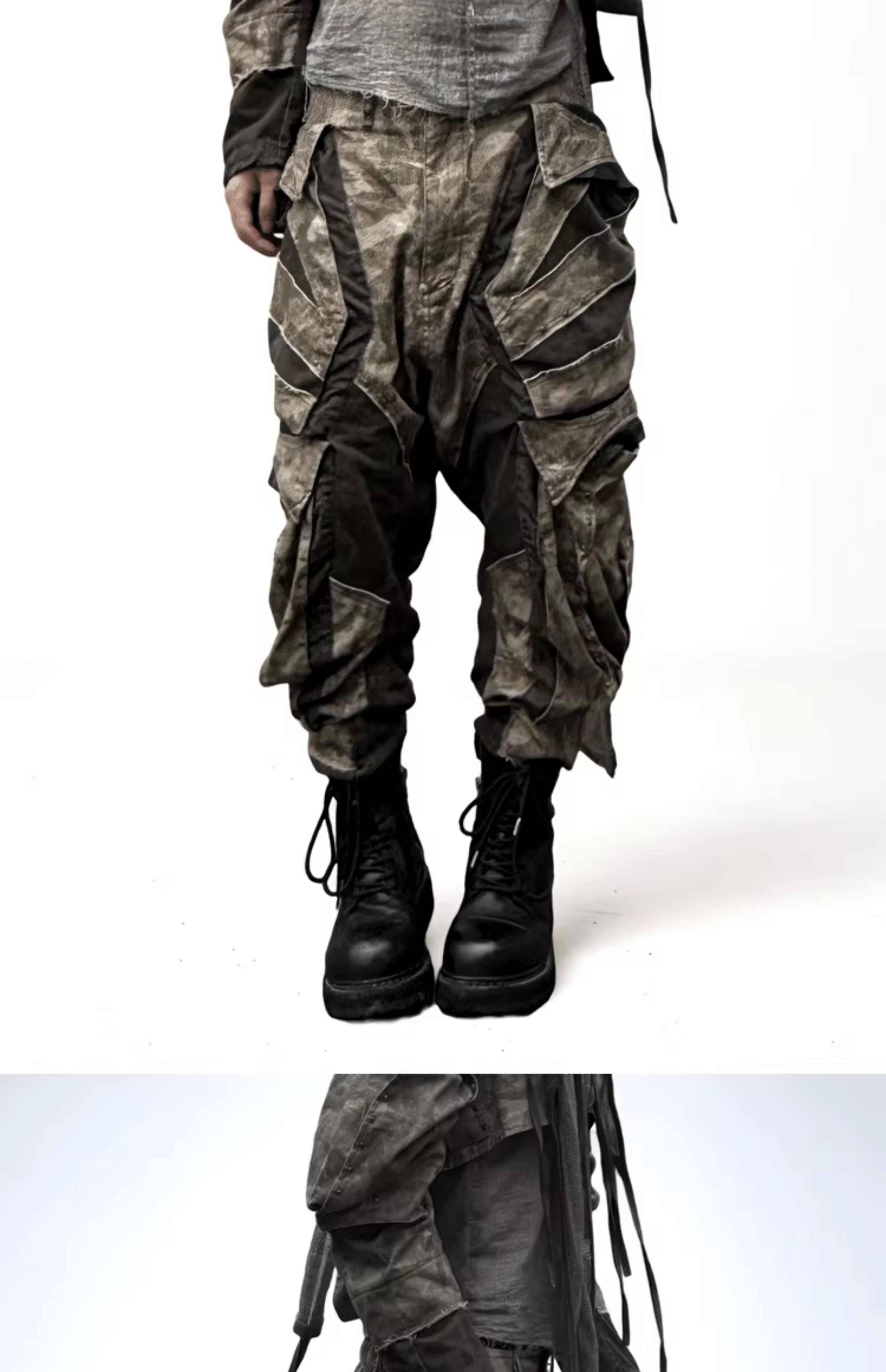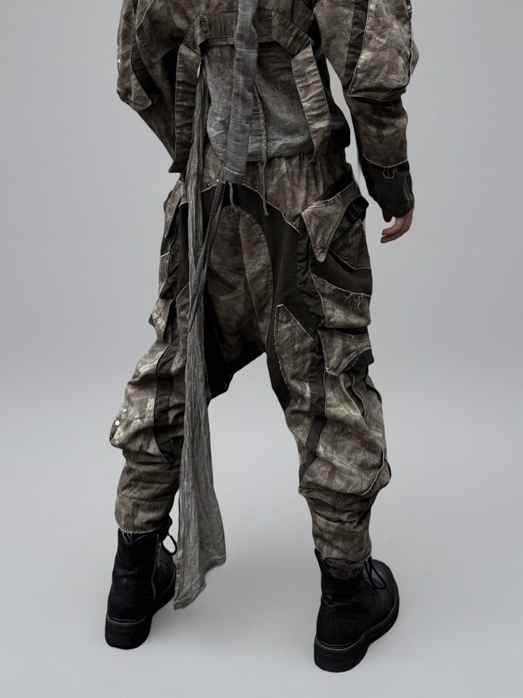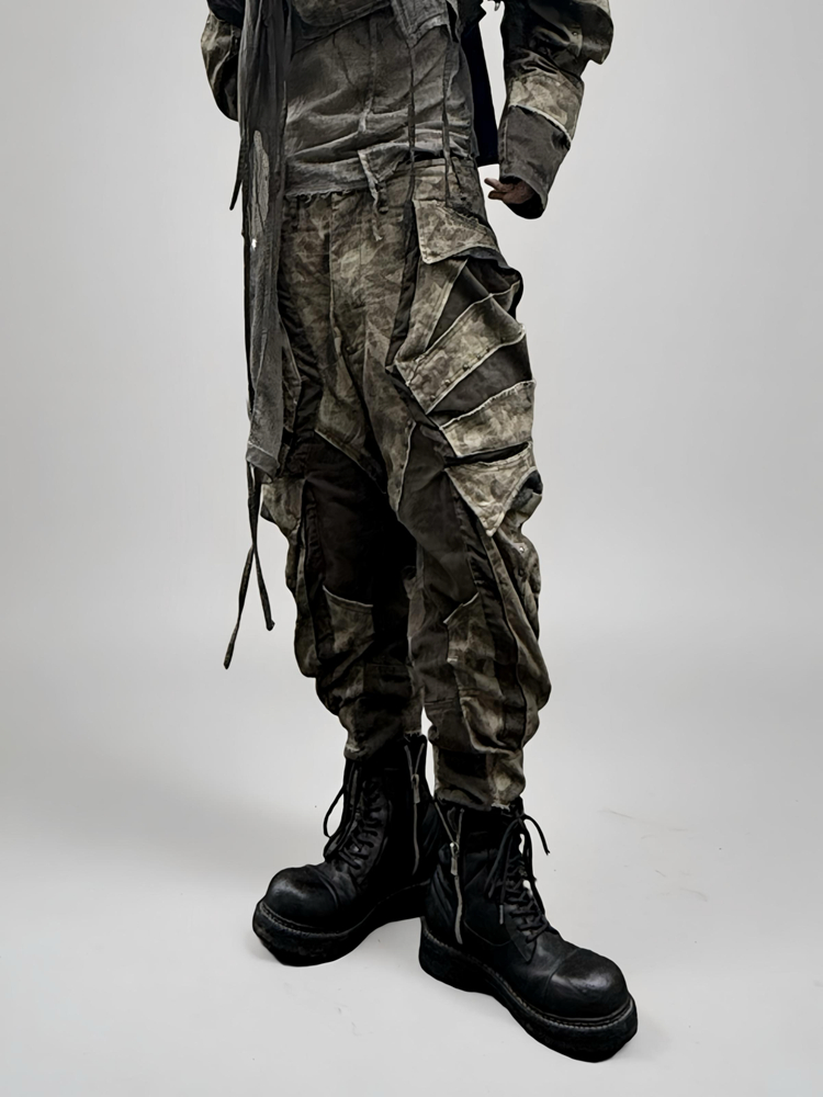 Colorblock Camo Washed Deconstructed Cargo Pants WN21986