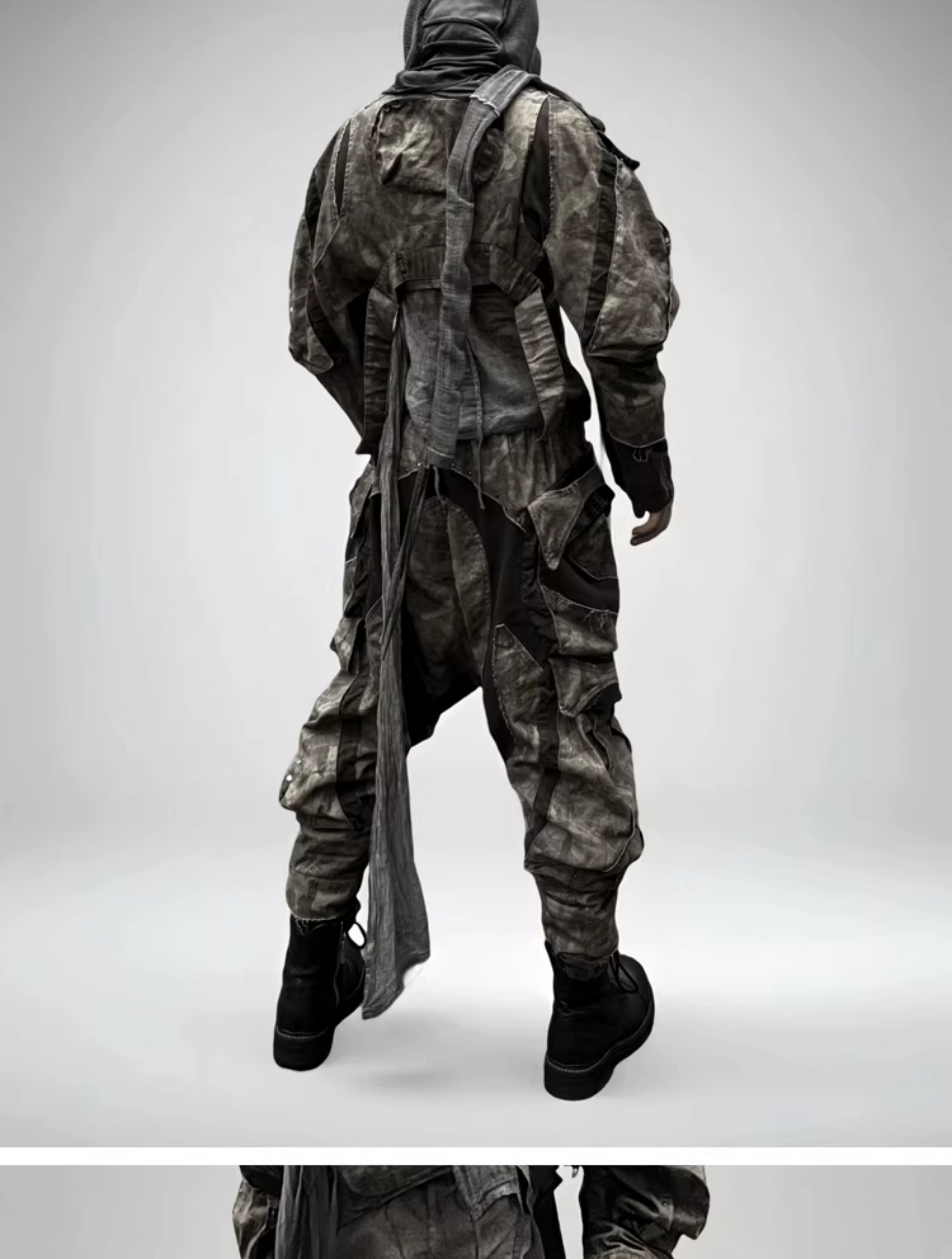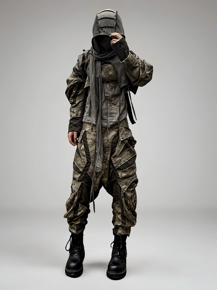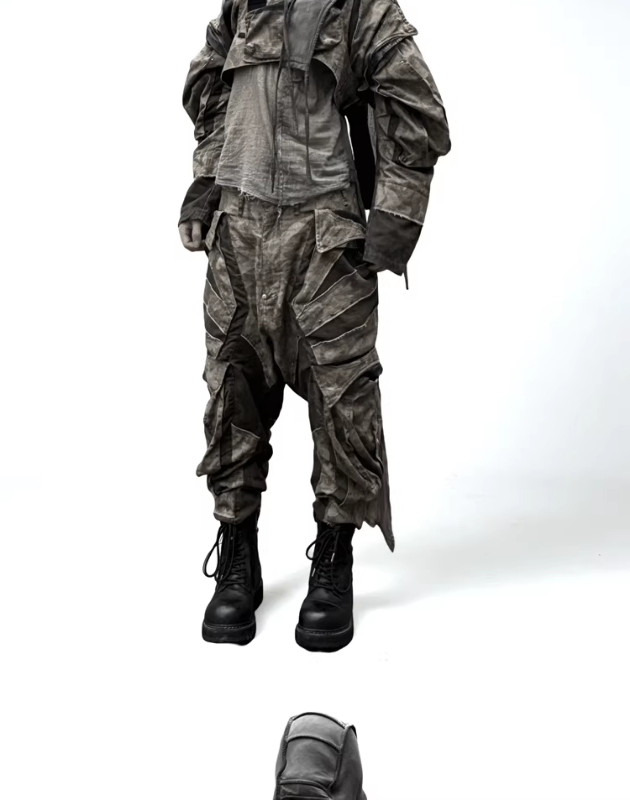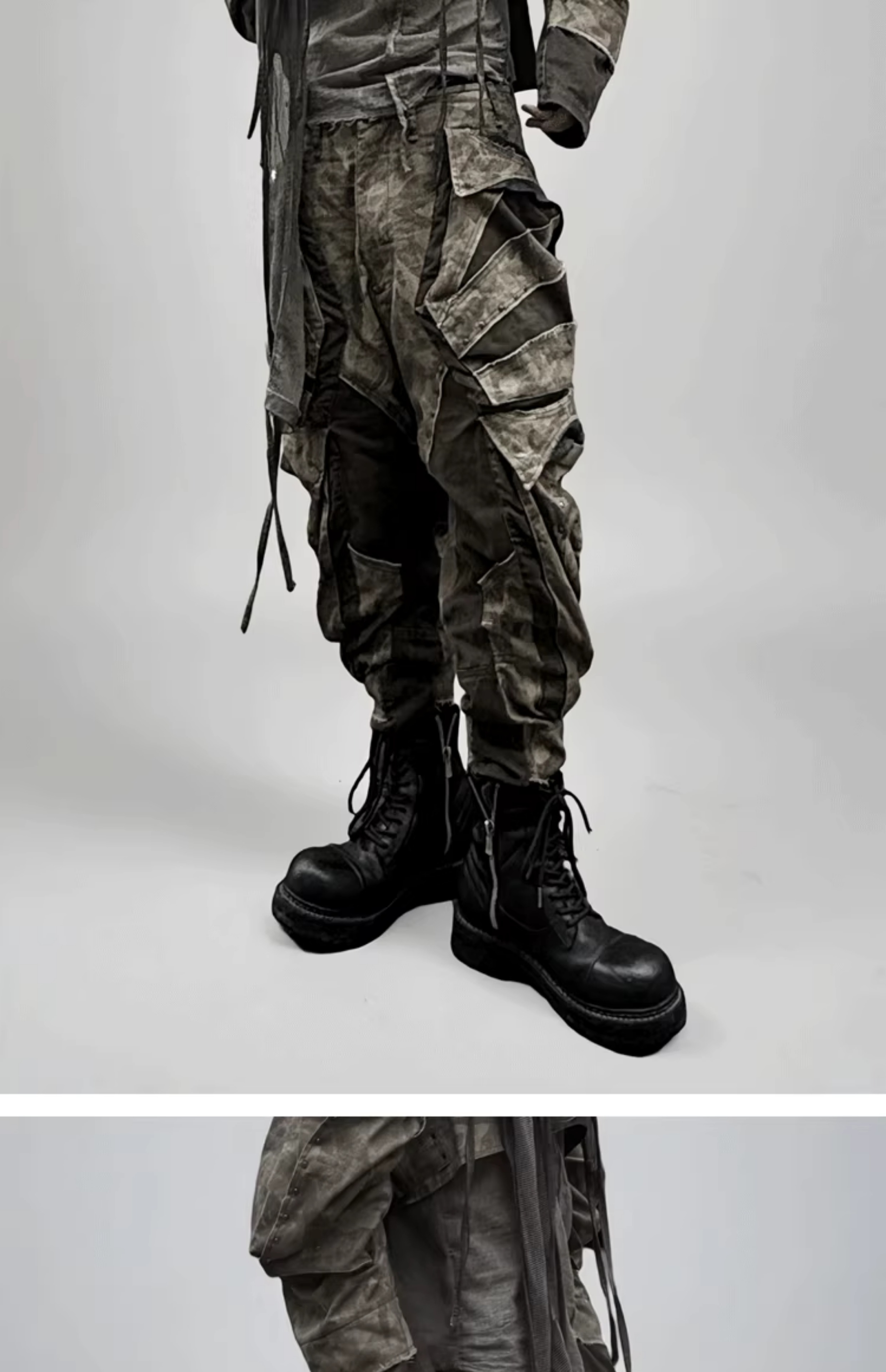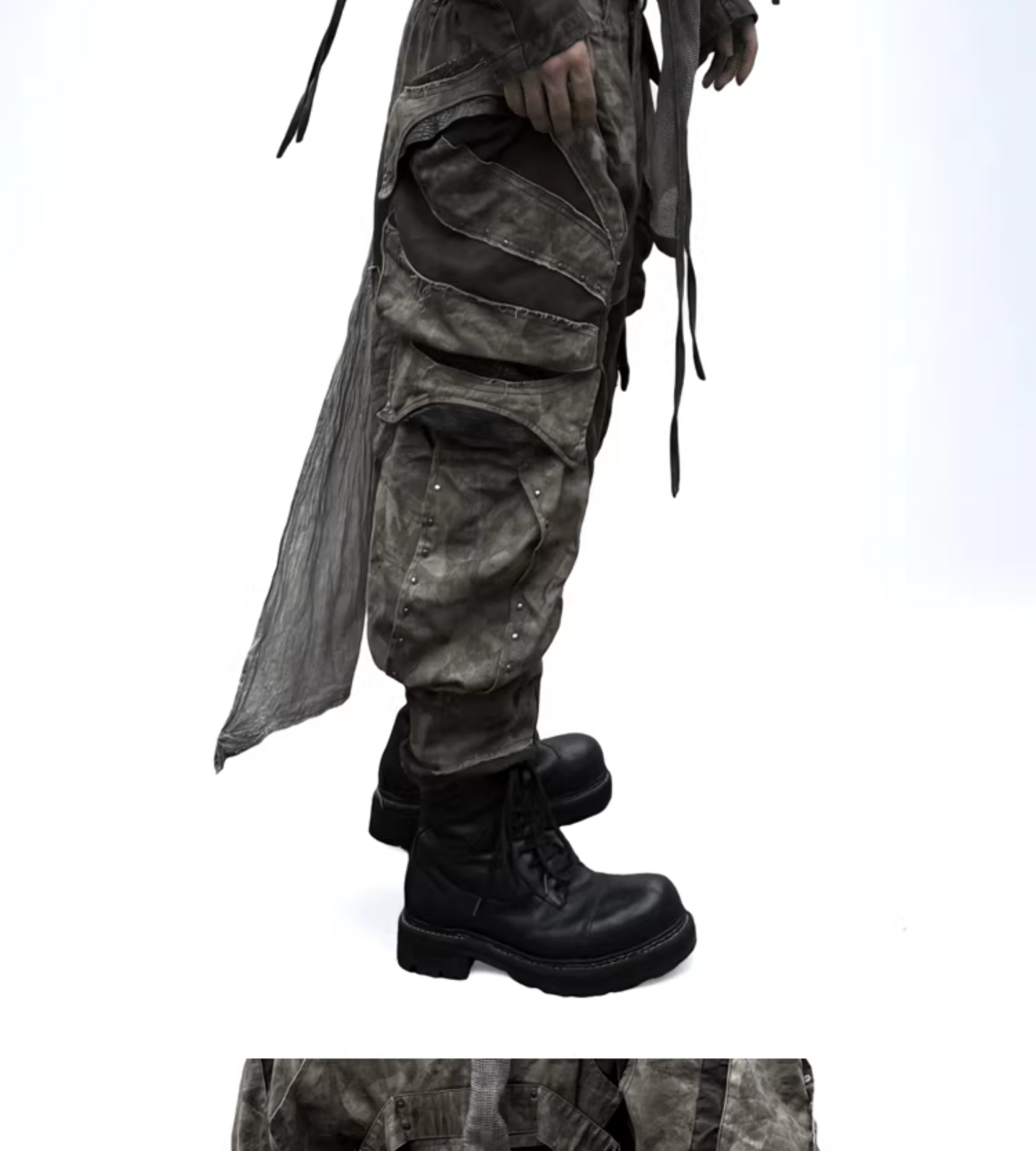 Colorblock Camo Washed Deconstructed Cargo Pants WN21986