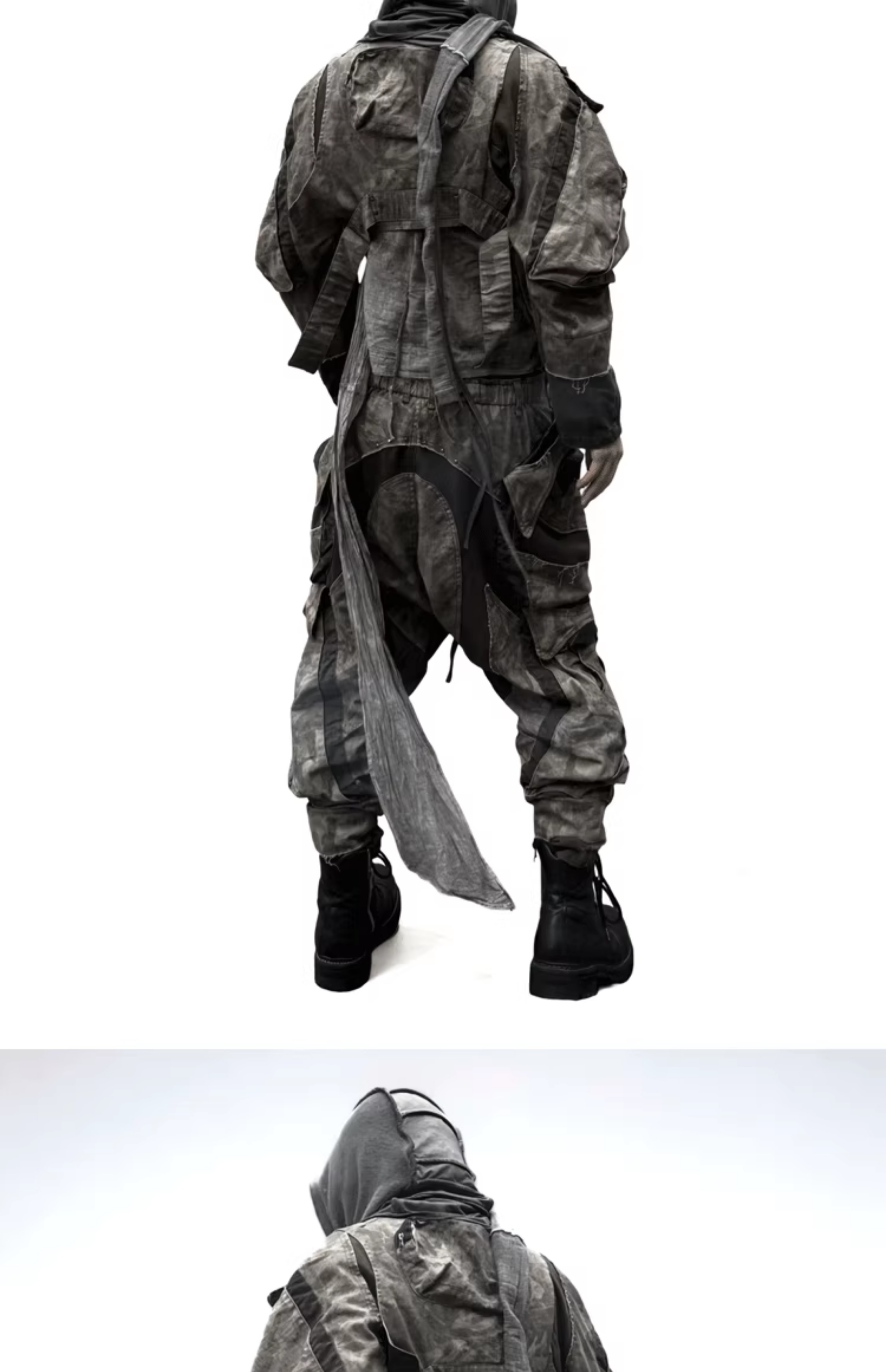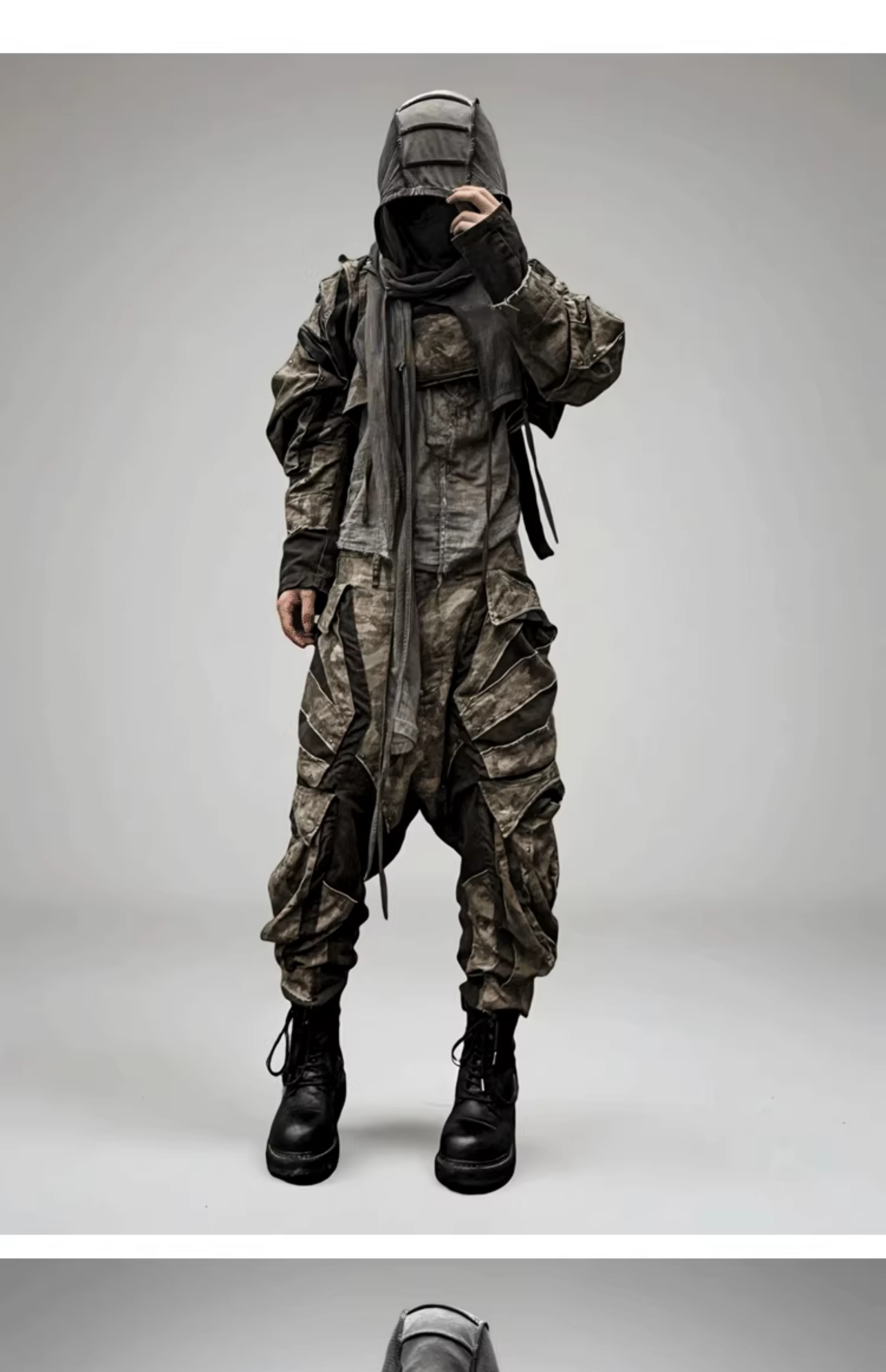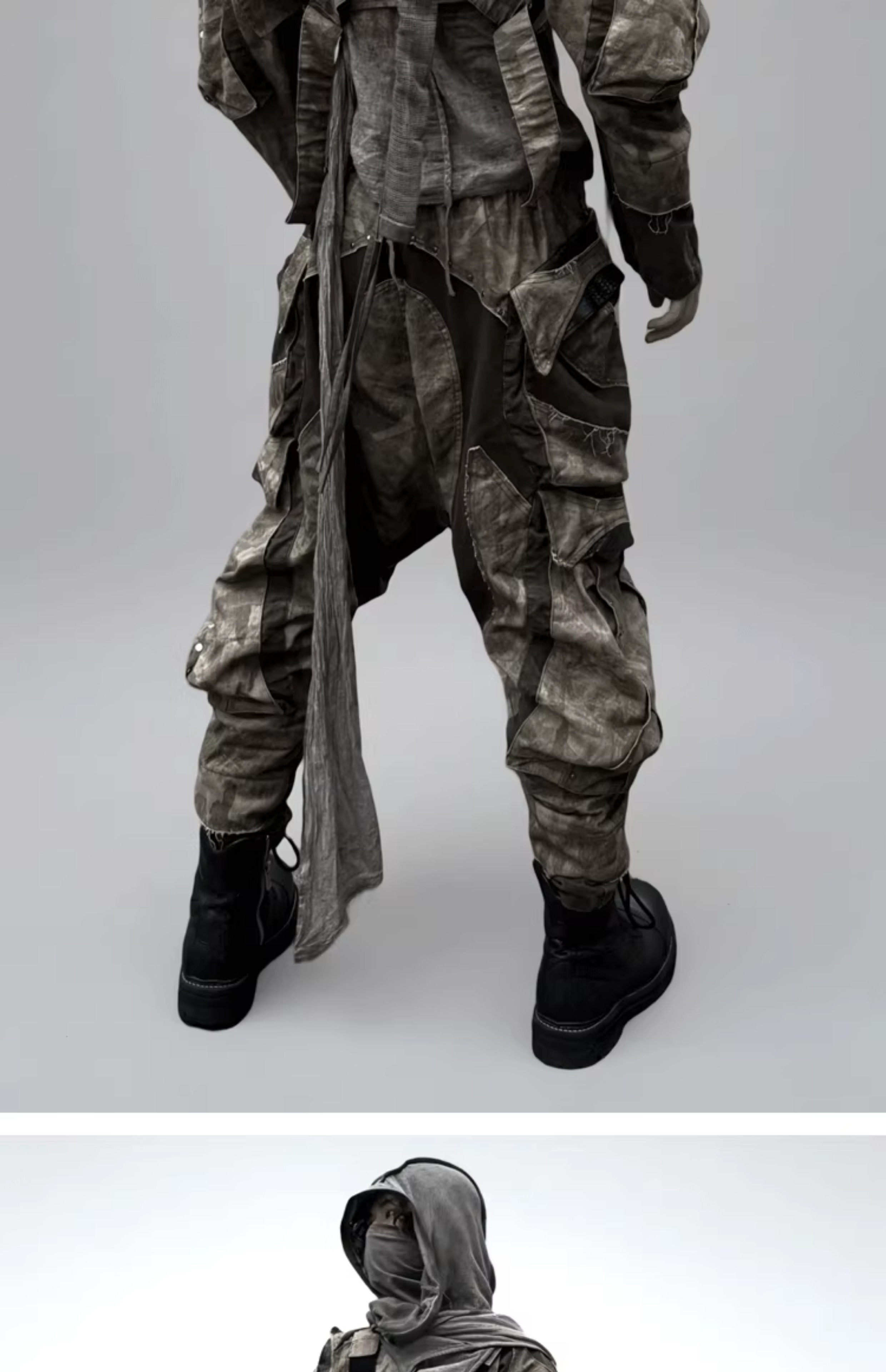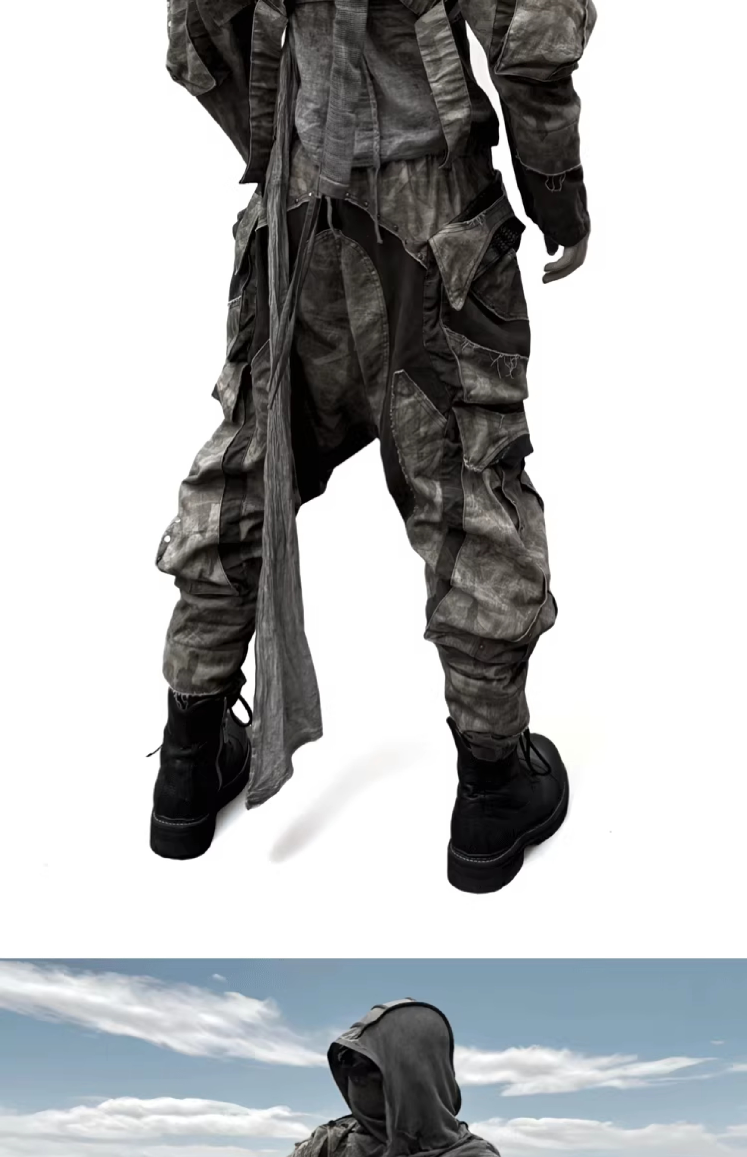 Colorblock Camo Washed Deconstructed Cargo Pants WN21986