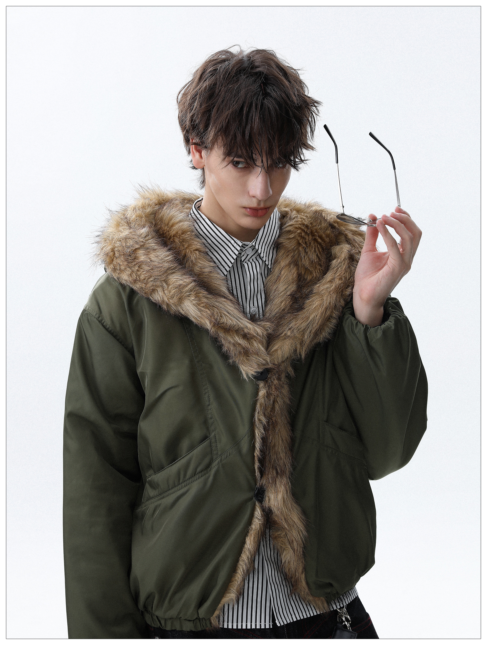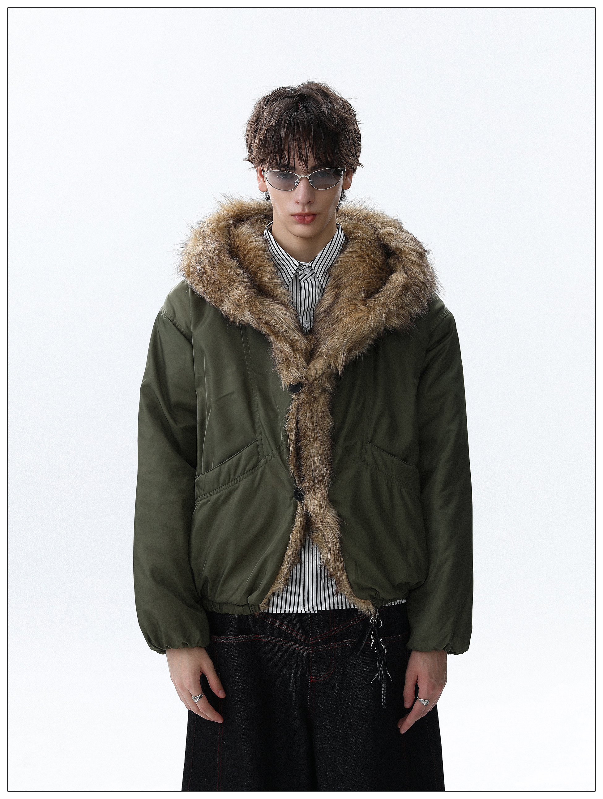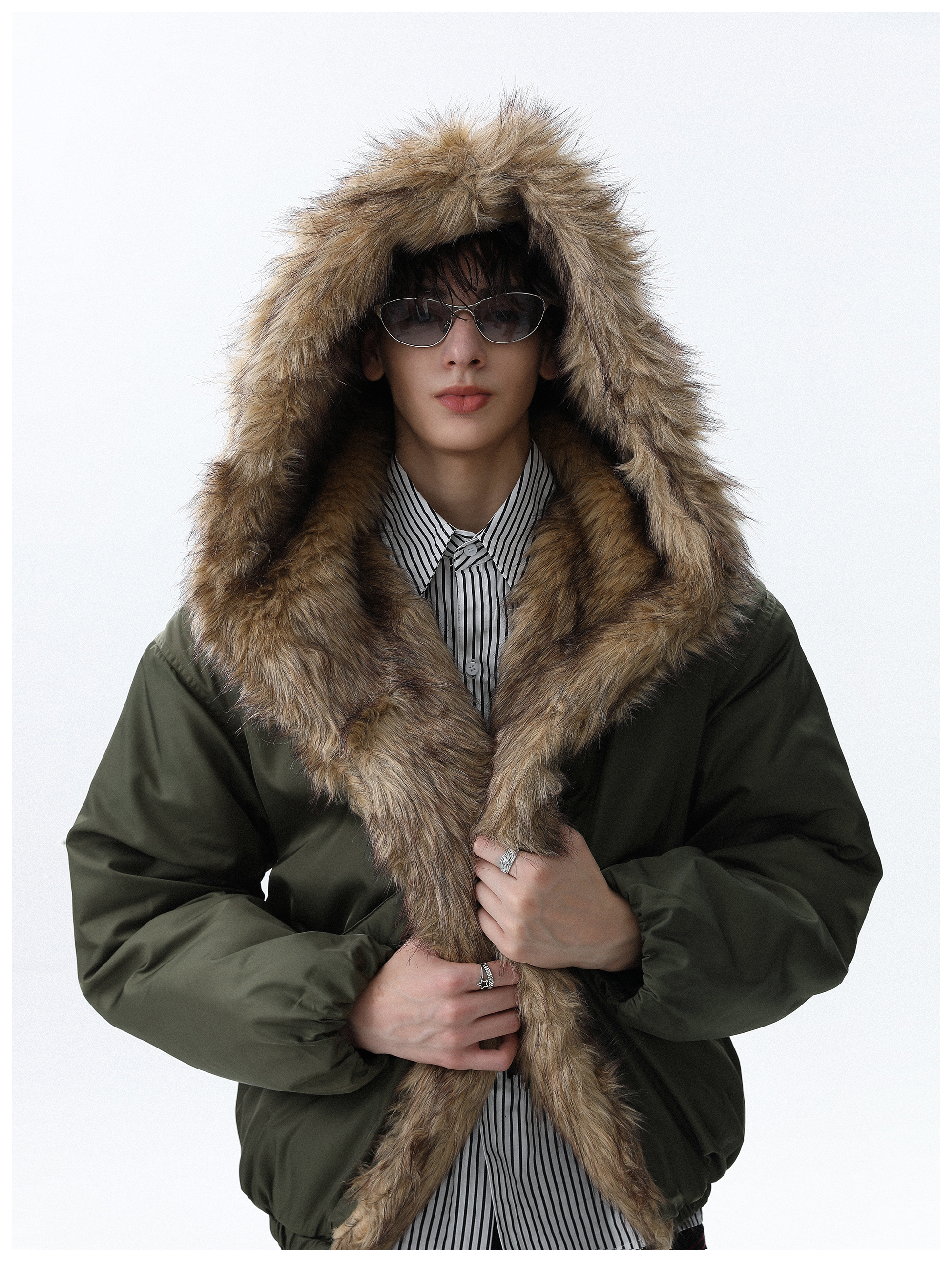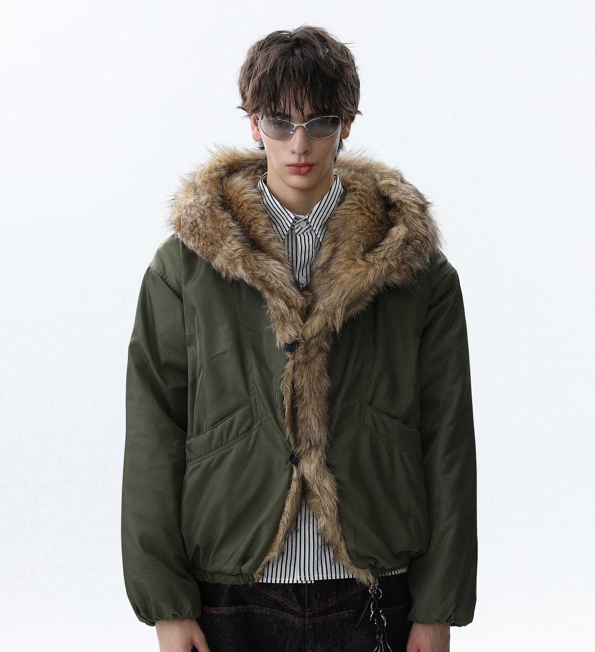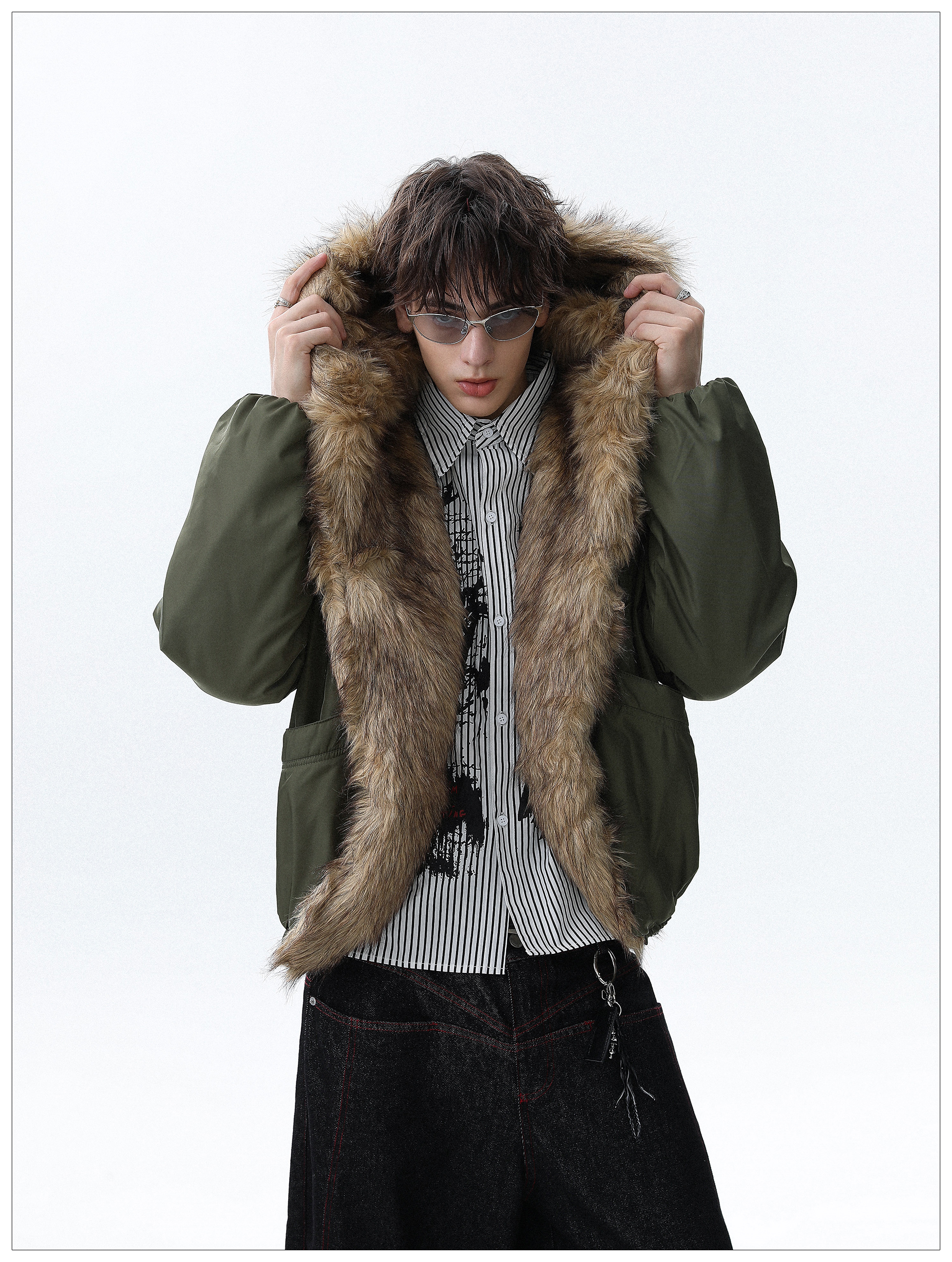 Fake Fur-Collar Thick Hooded Padded Jacket WN22090