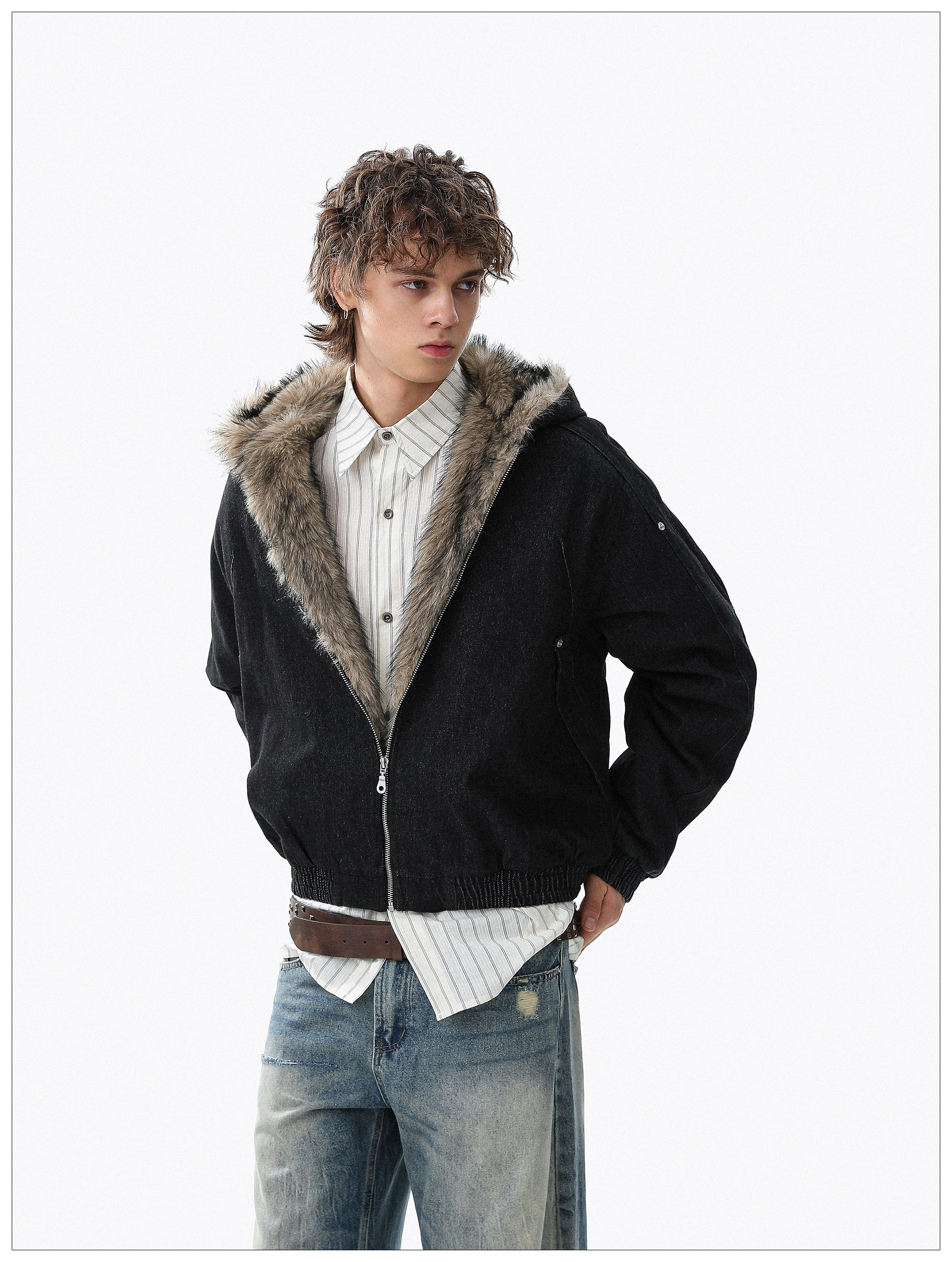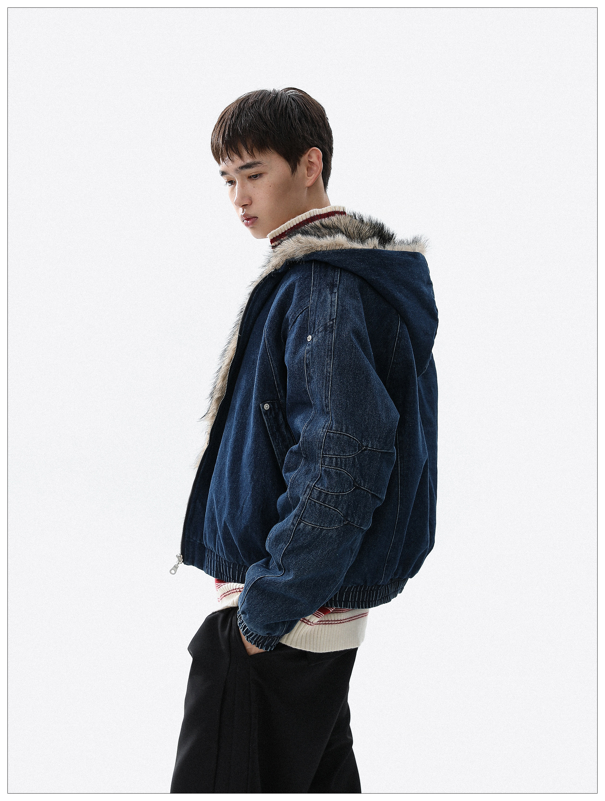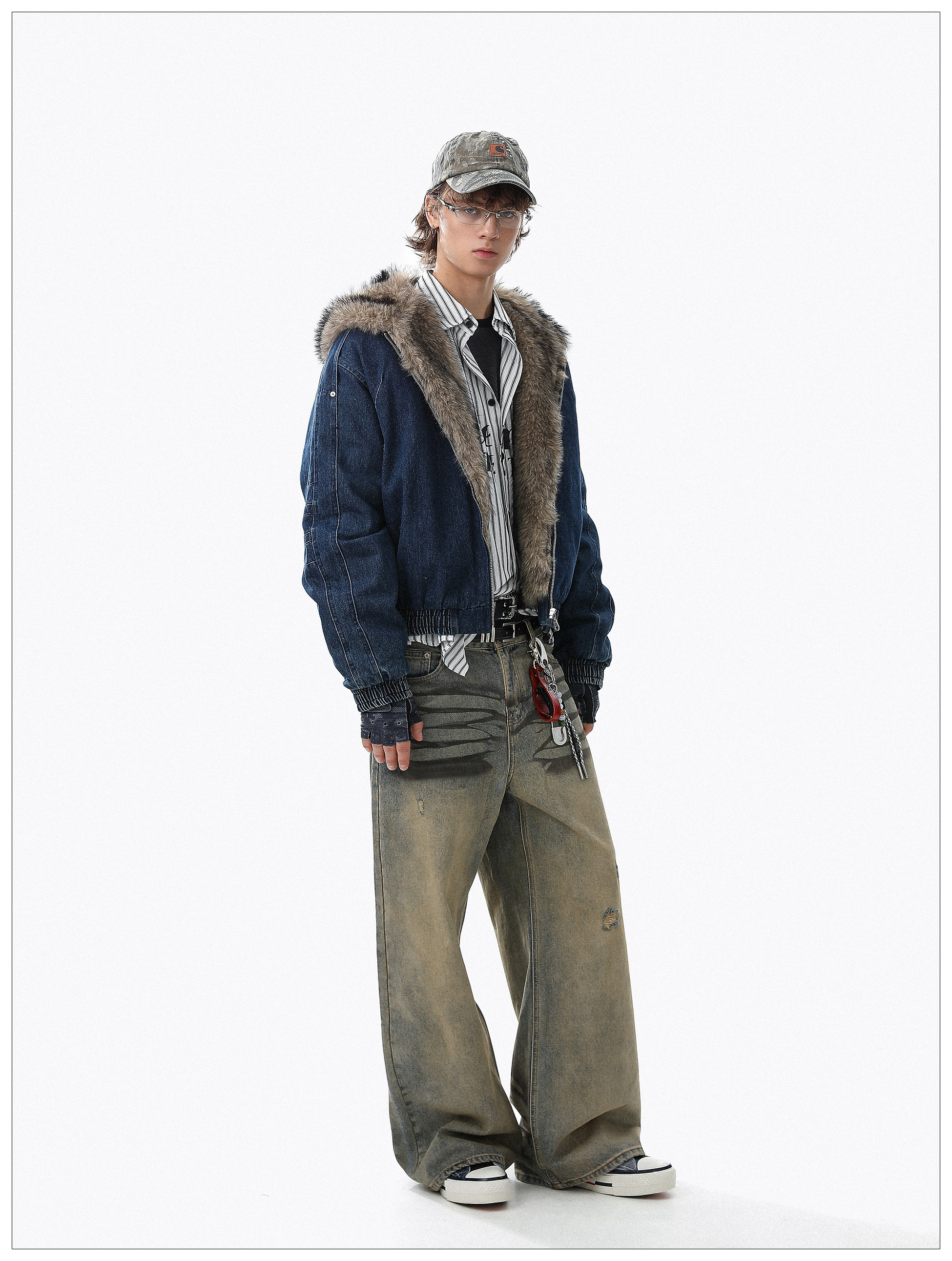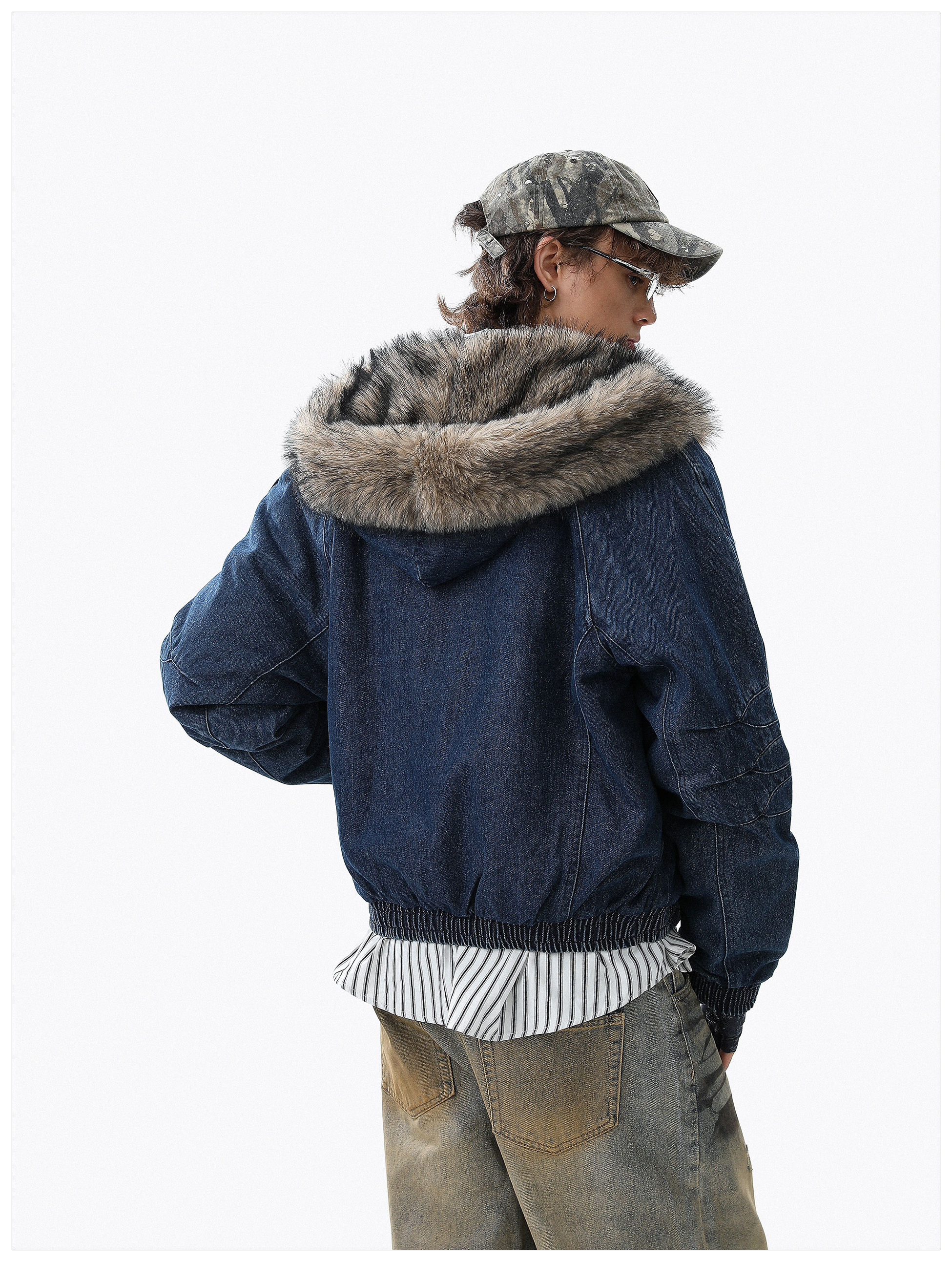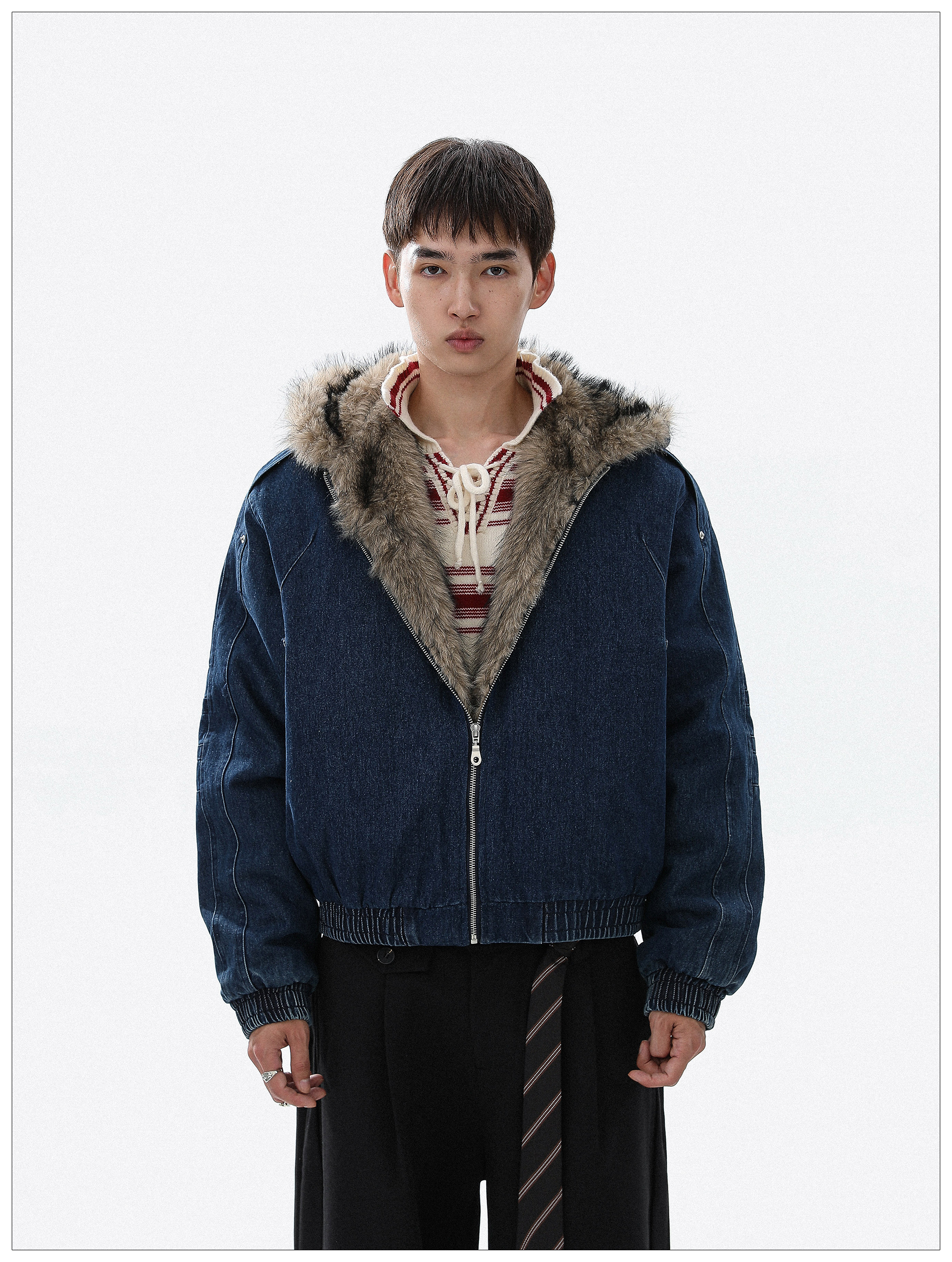 Fake Fur-Collar Deconstructed Thick Denim Jacket WN22110