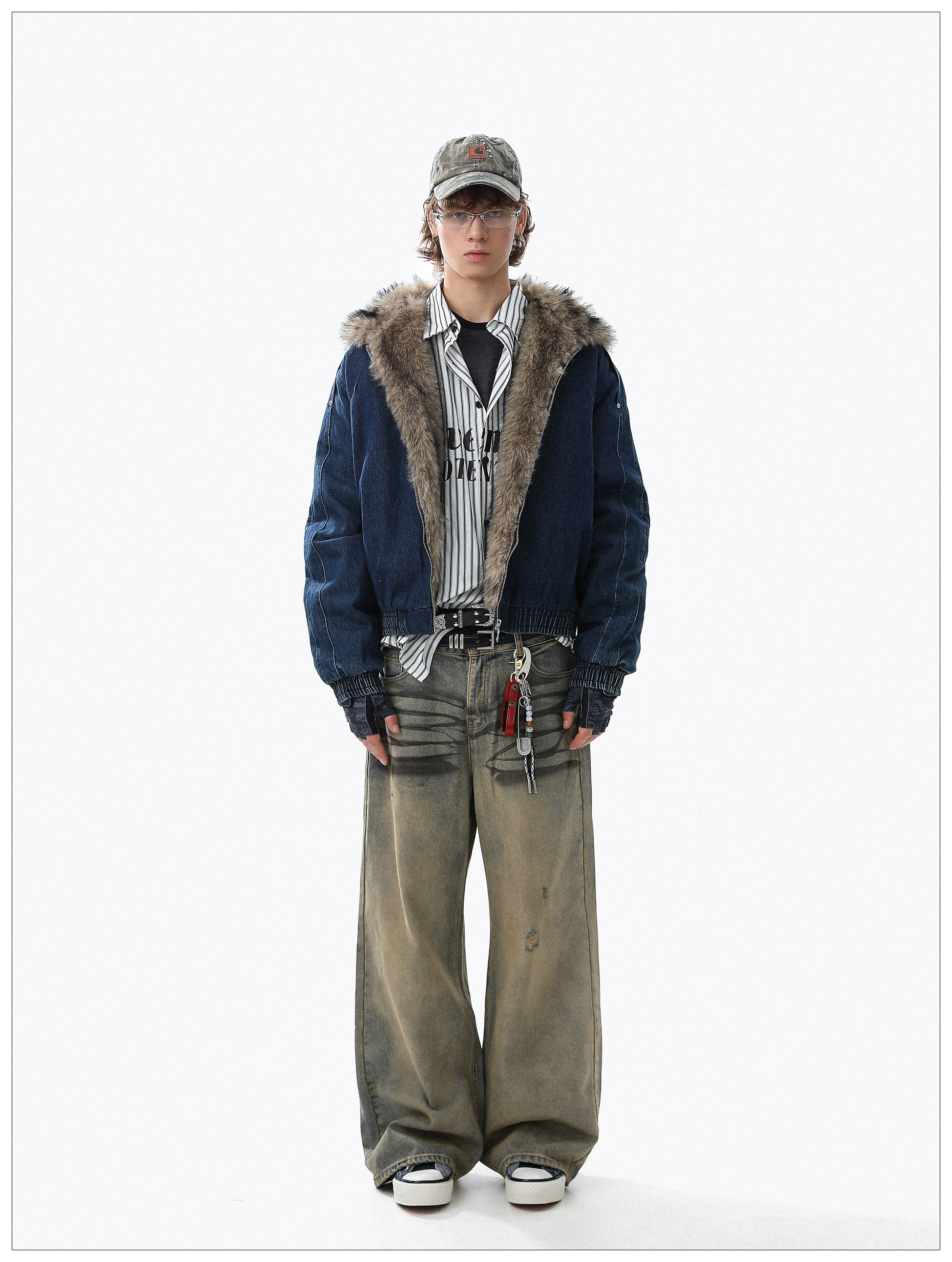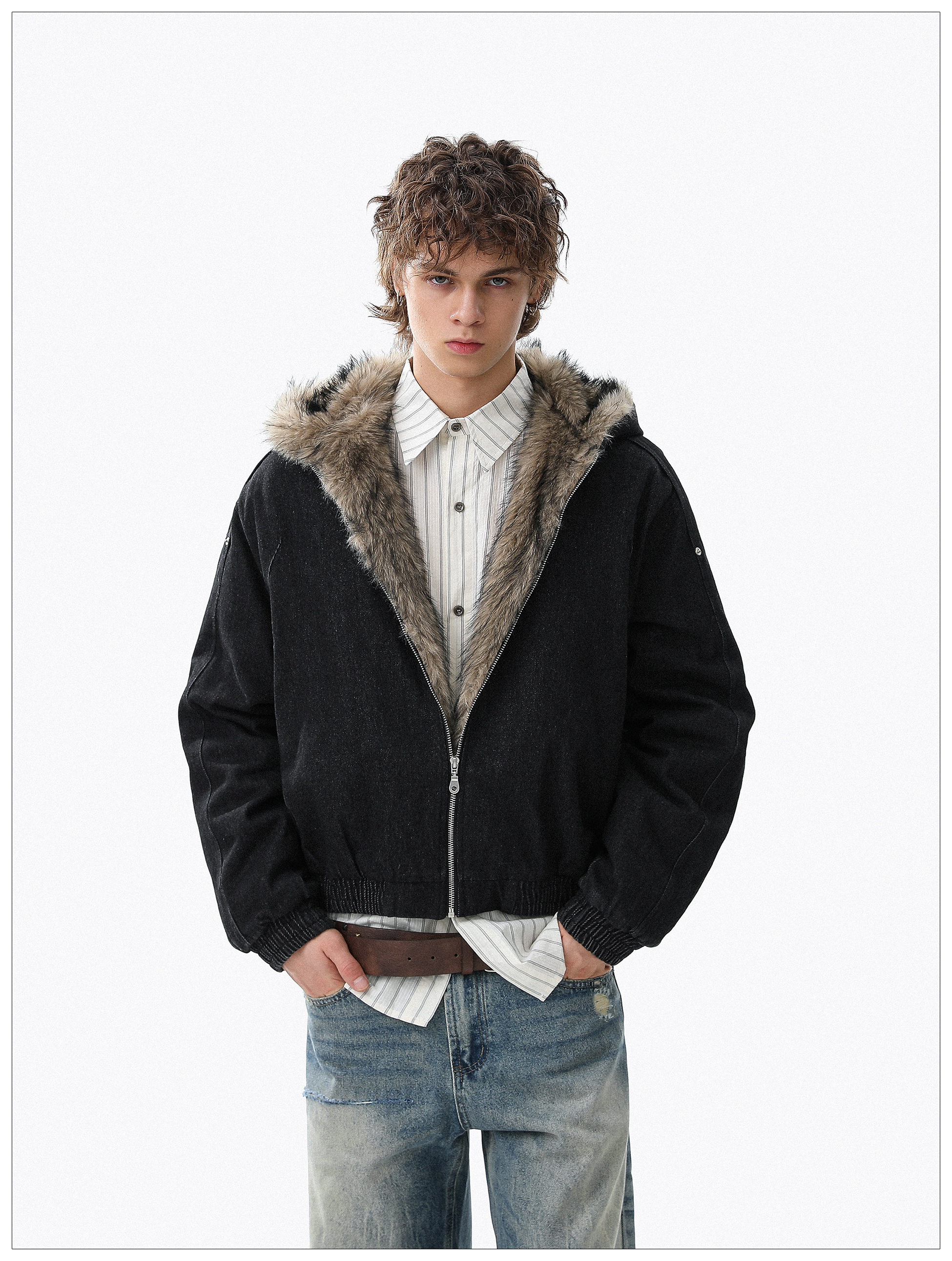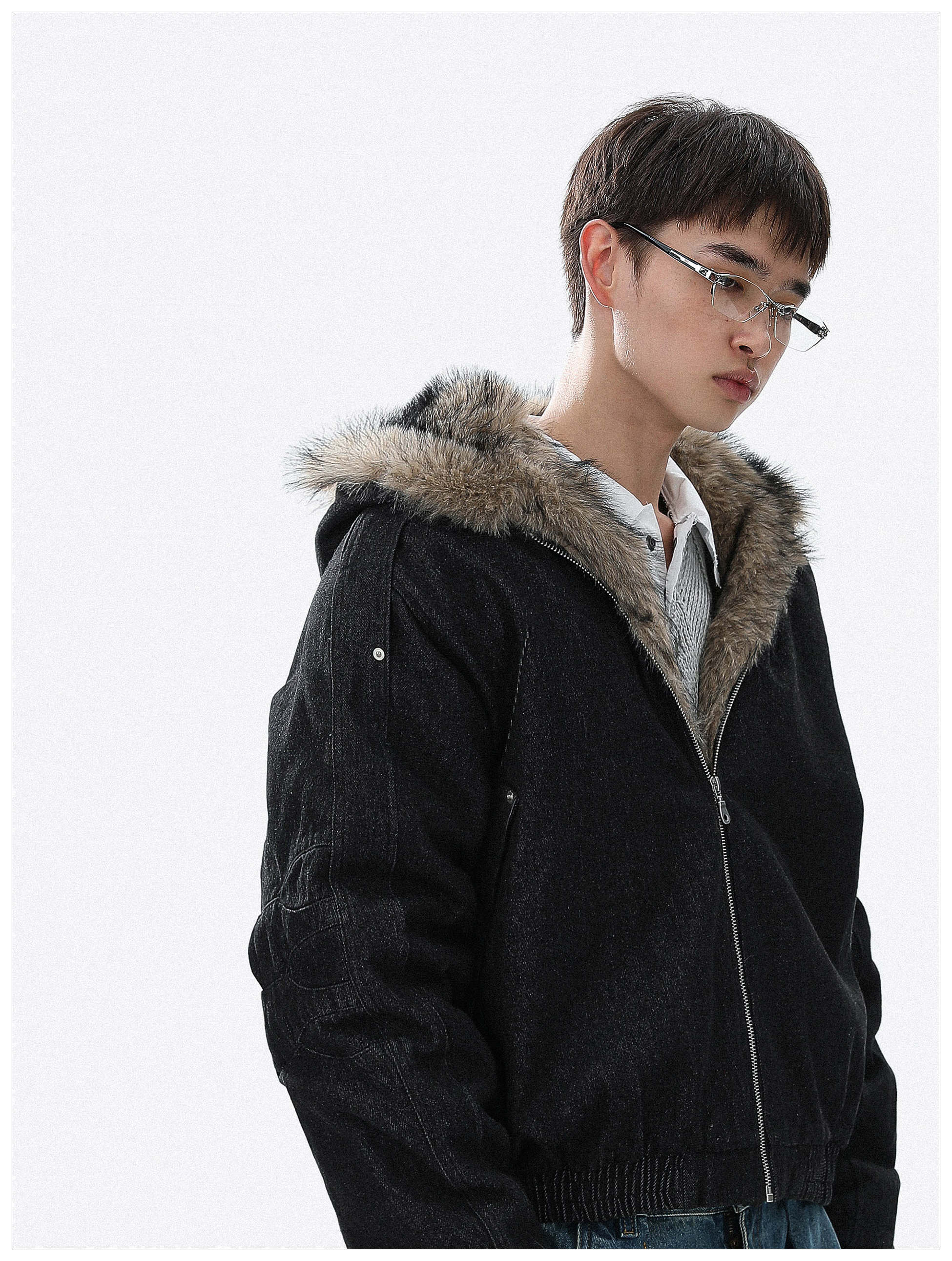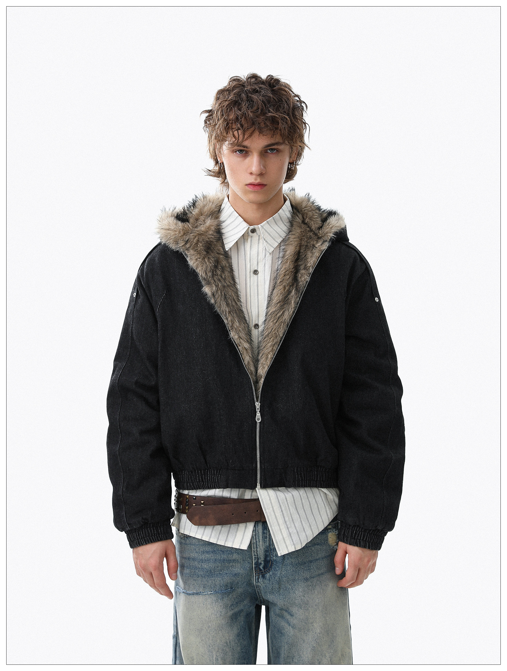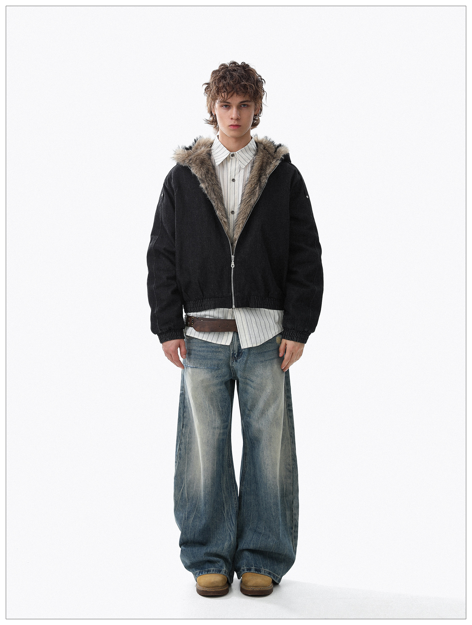 Fake Fur-Collar Deconstructed Thick Denim Jacket WN22110