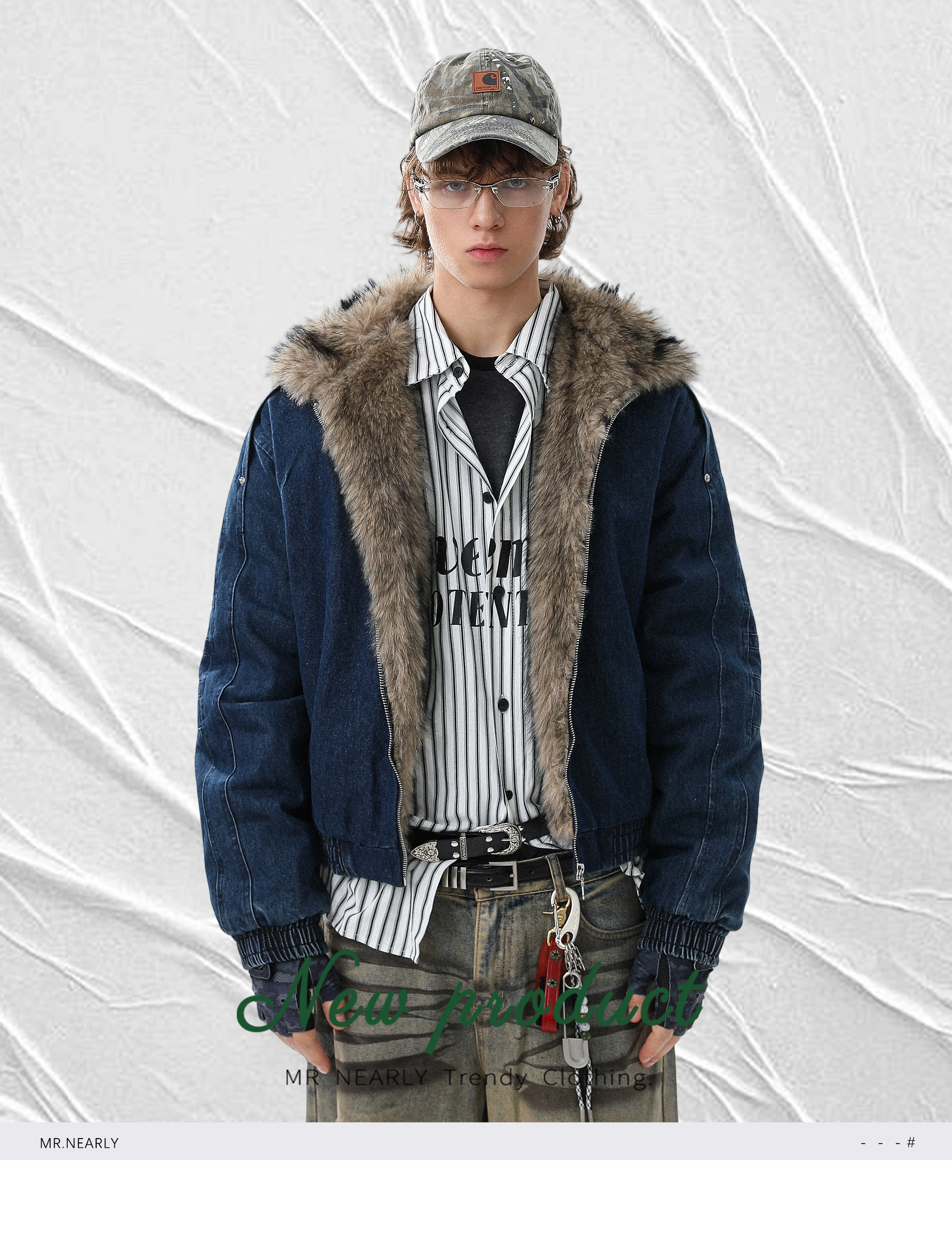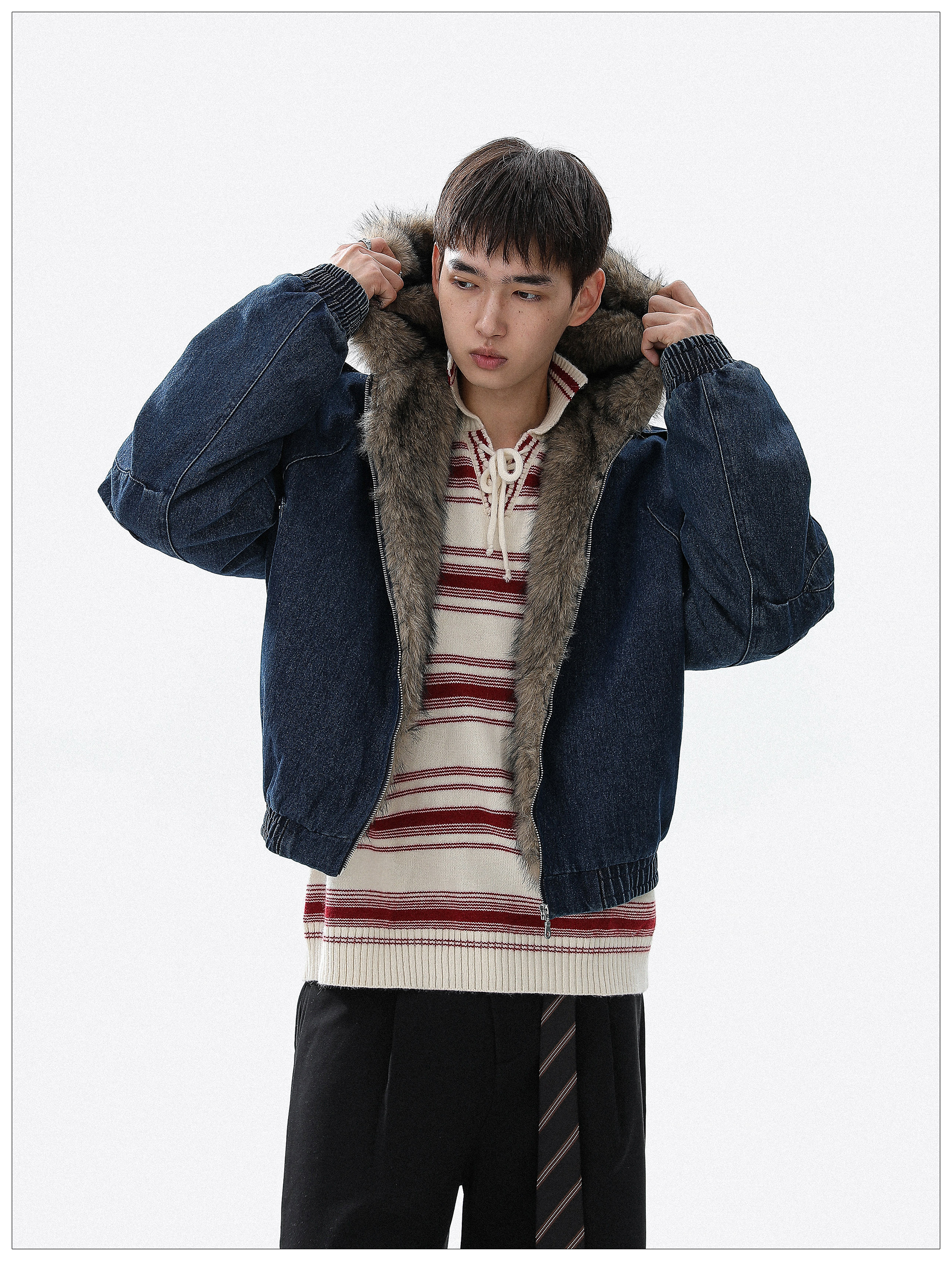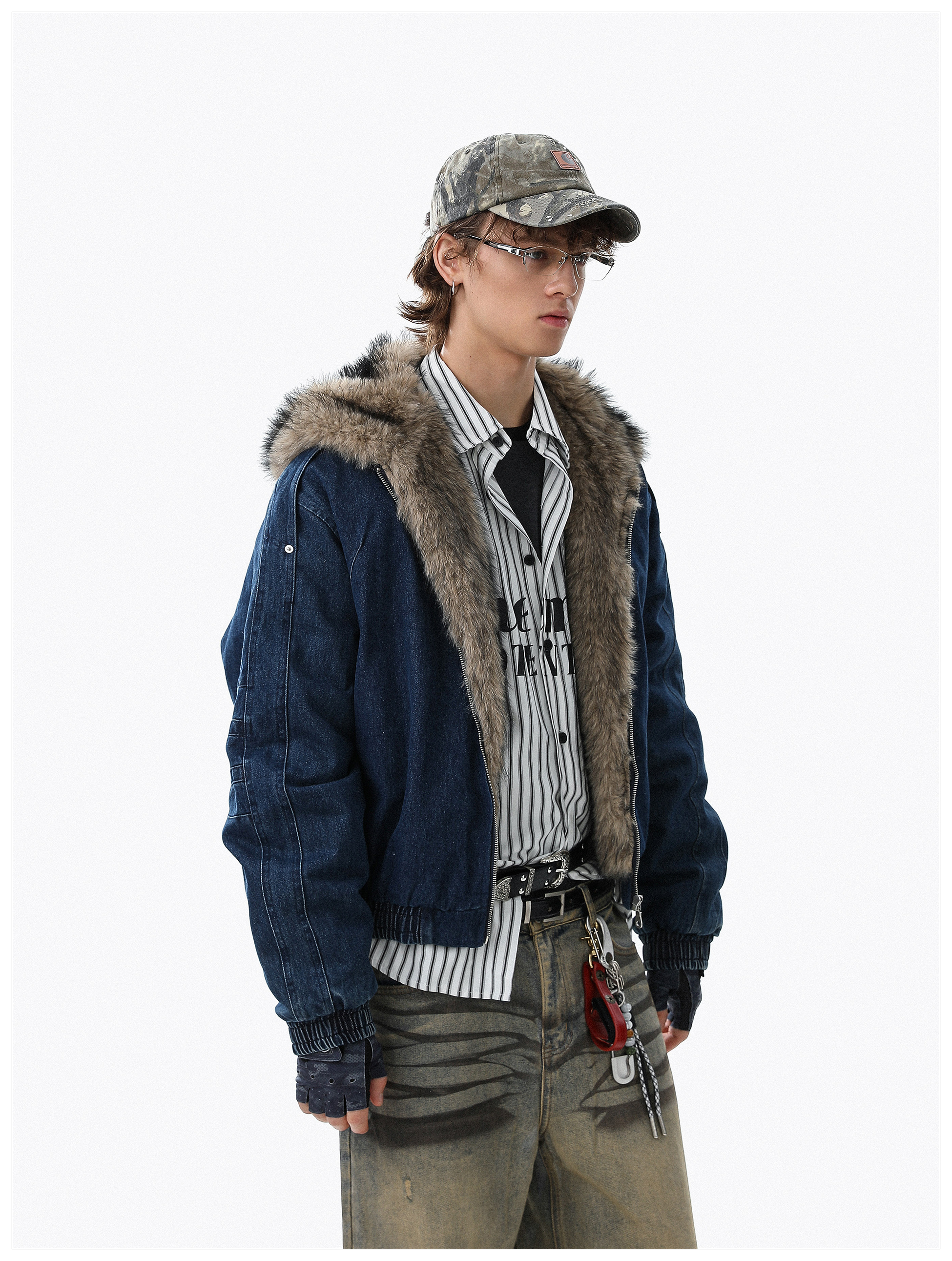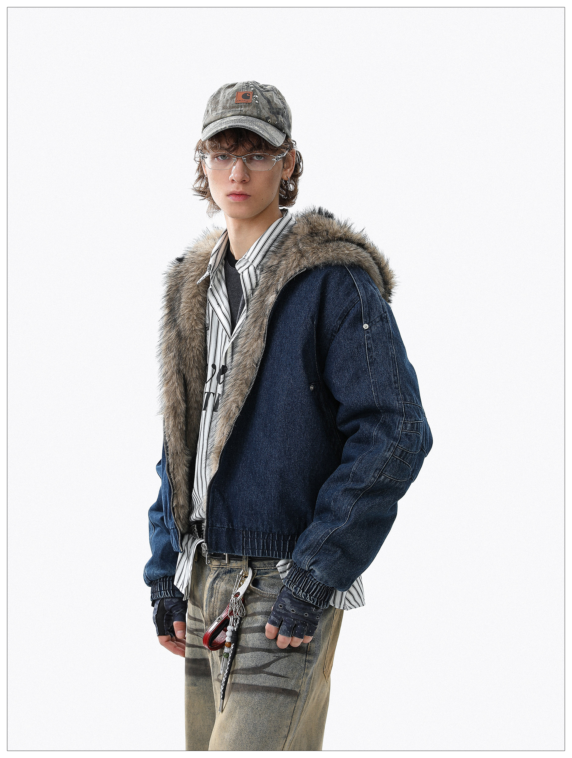 Fake Fur-Collar Deconstructed Thick Denim Jacket WN22110