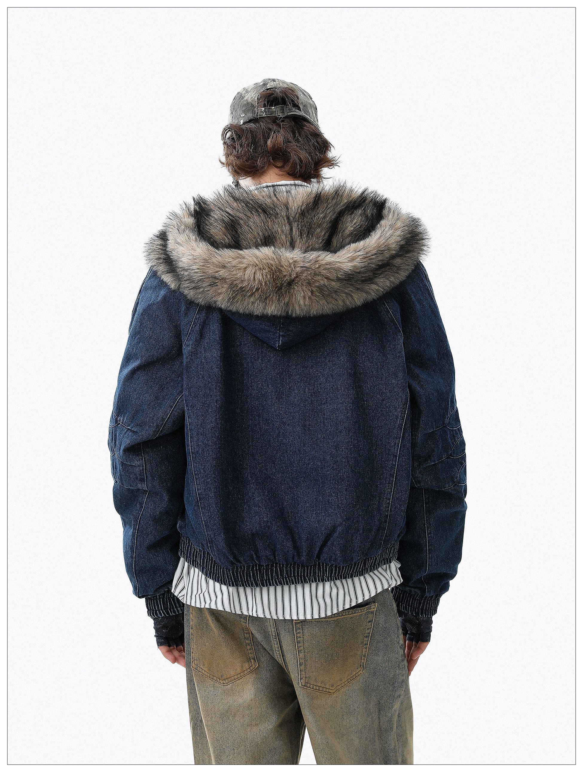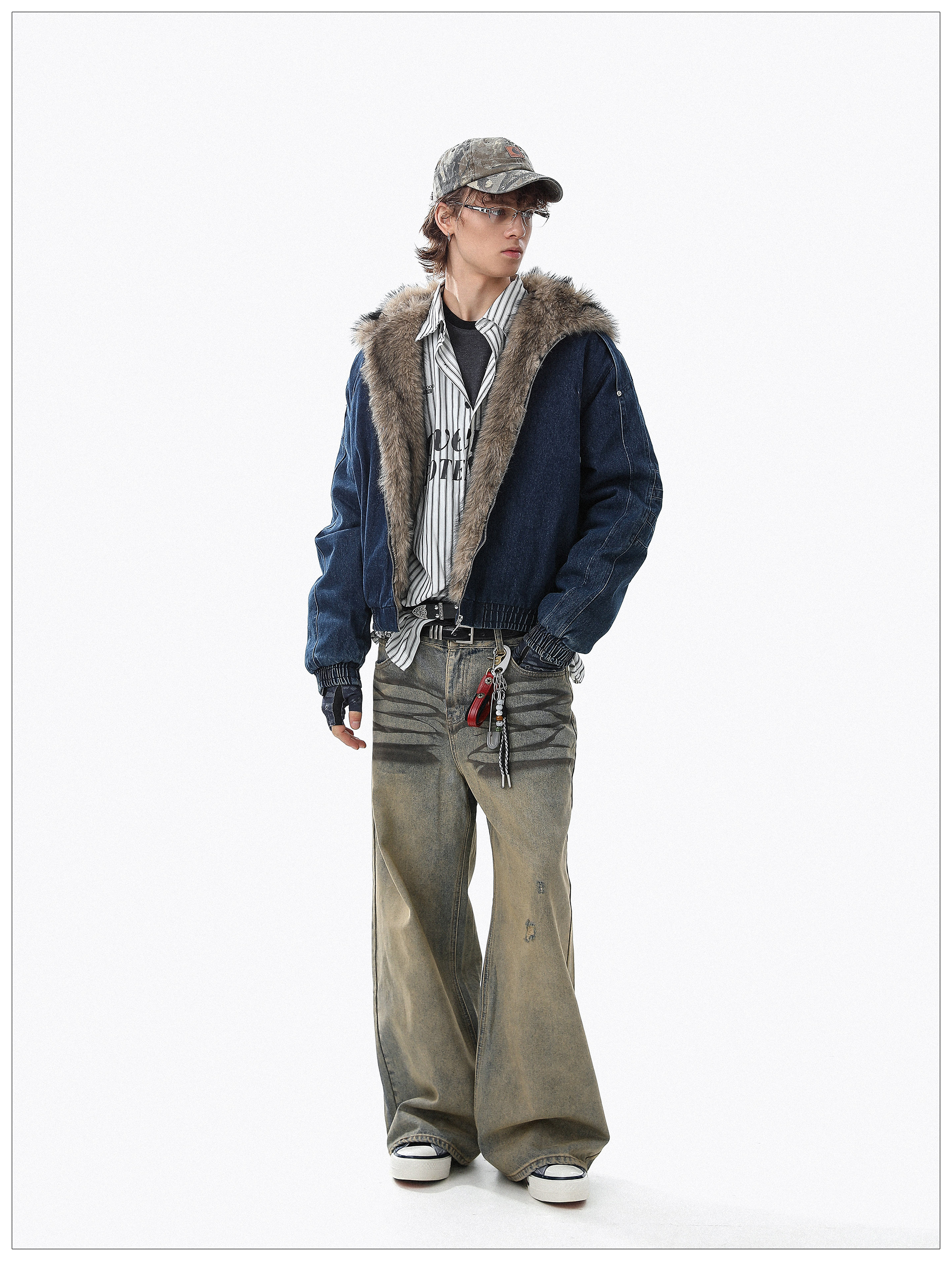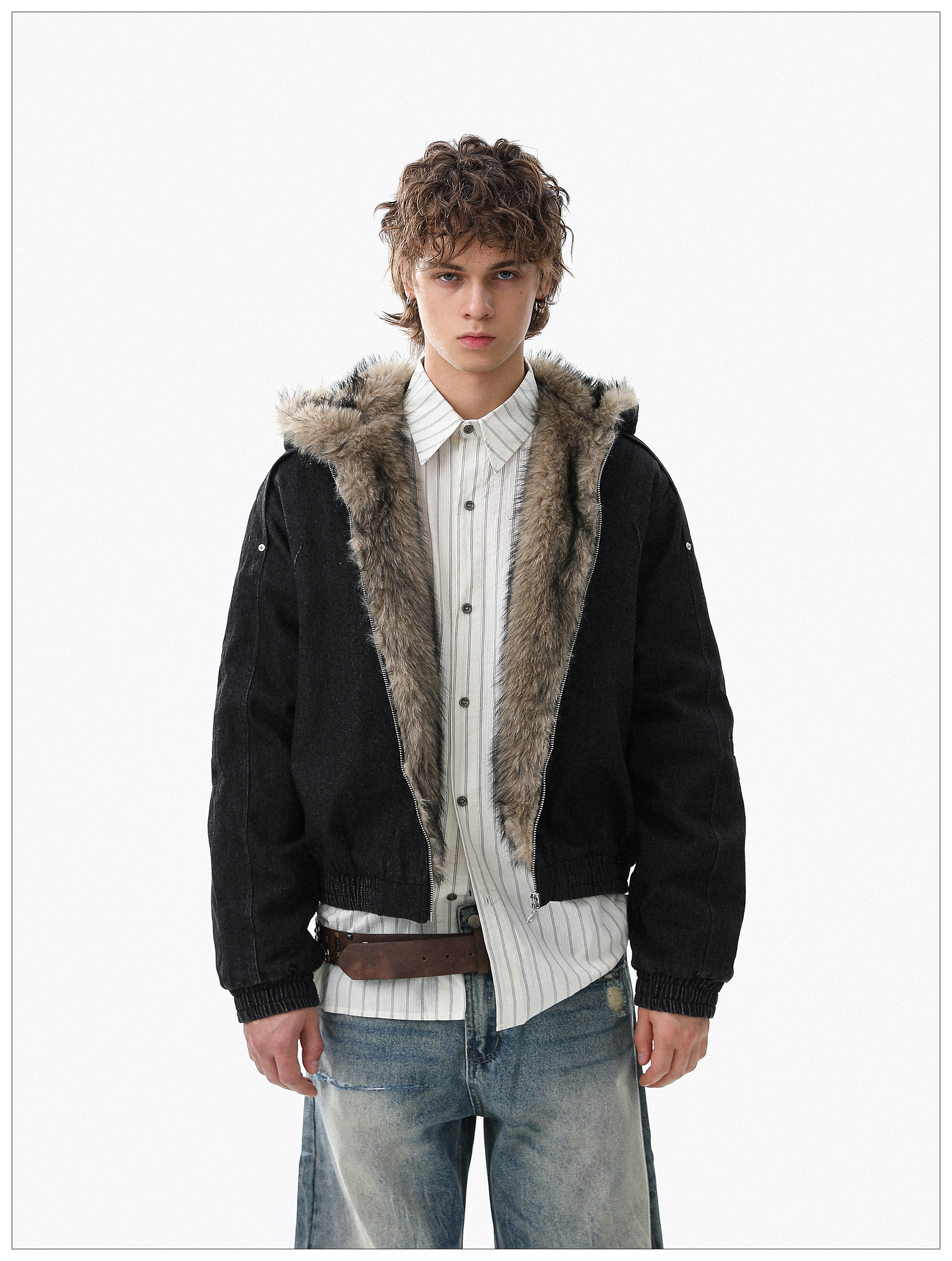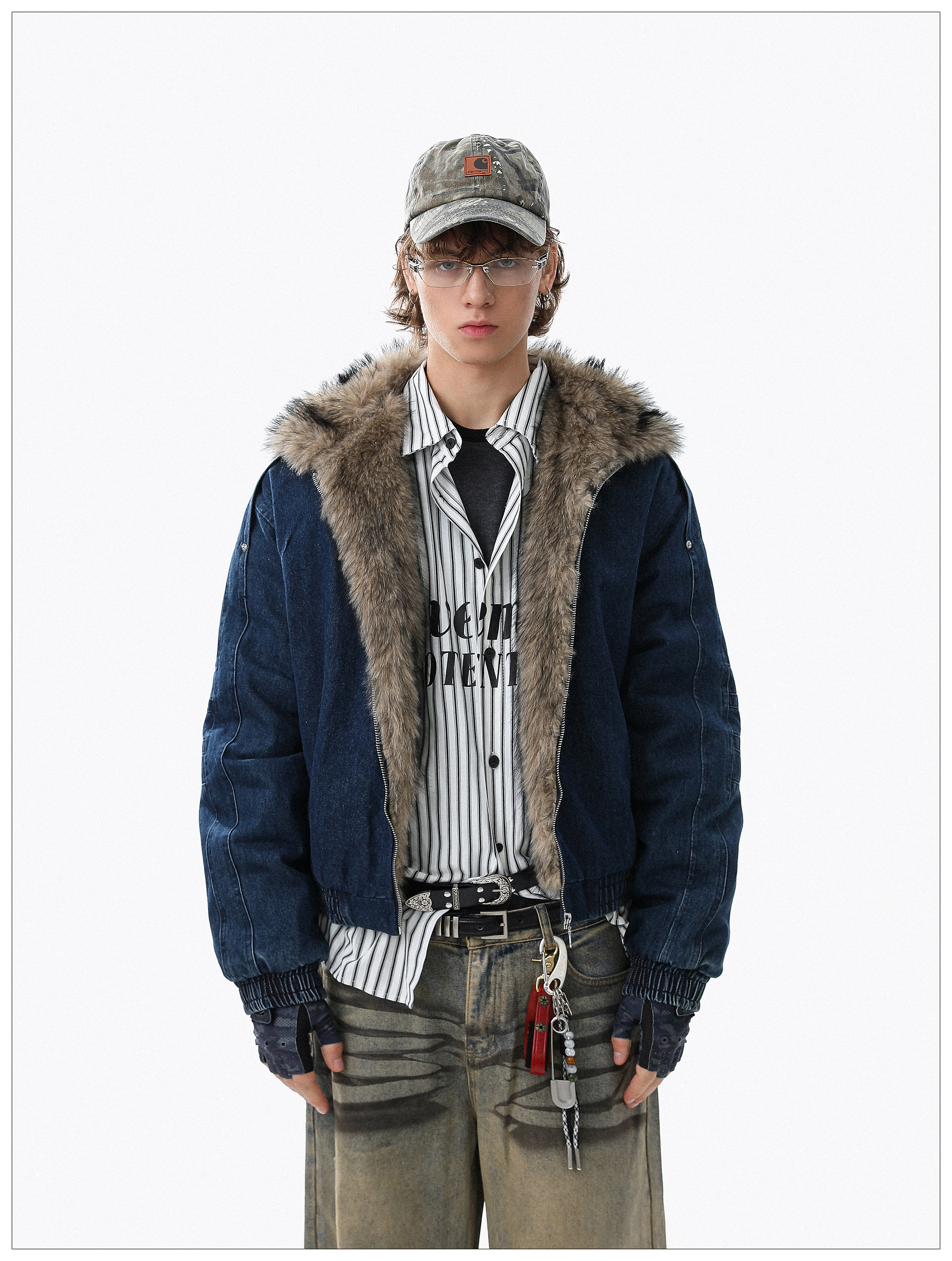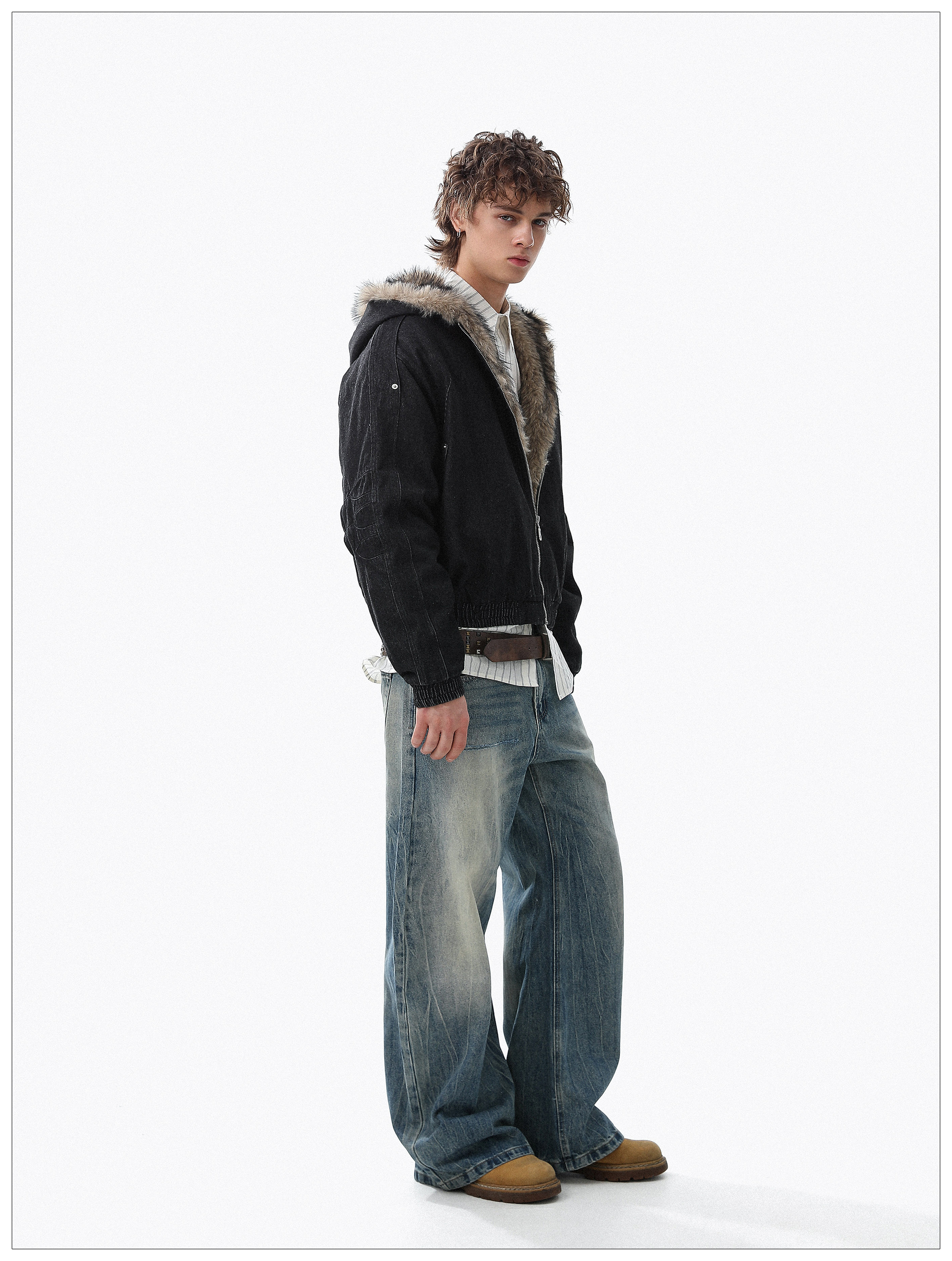 Fake Fur-Collar Deconstructed Thick Denim Jacket WN22110