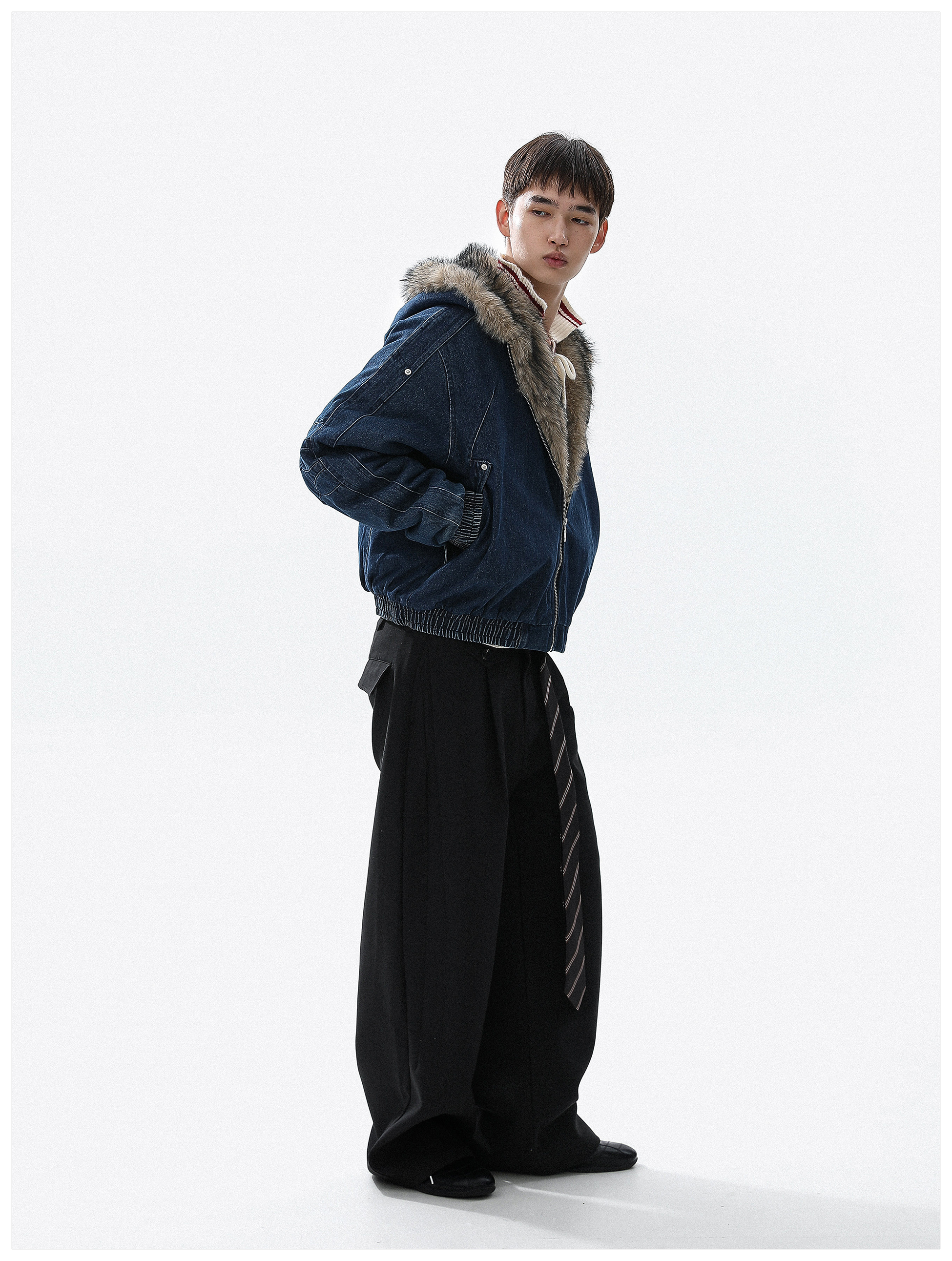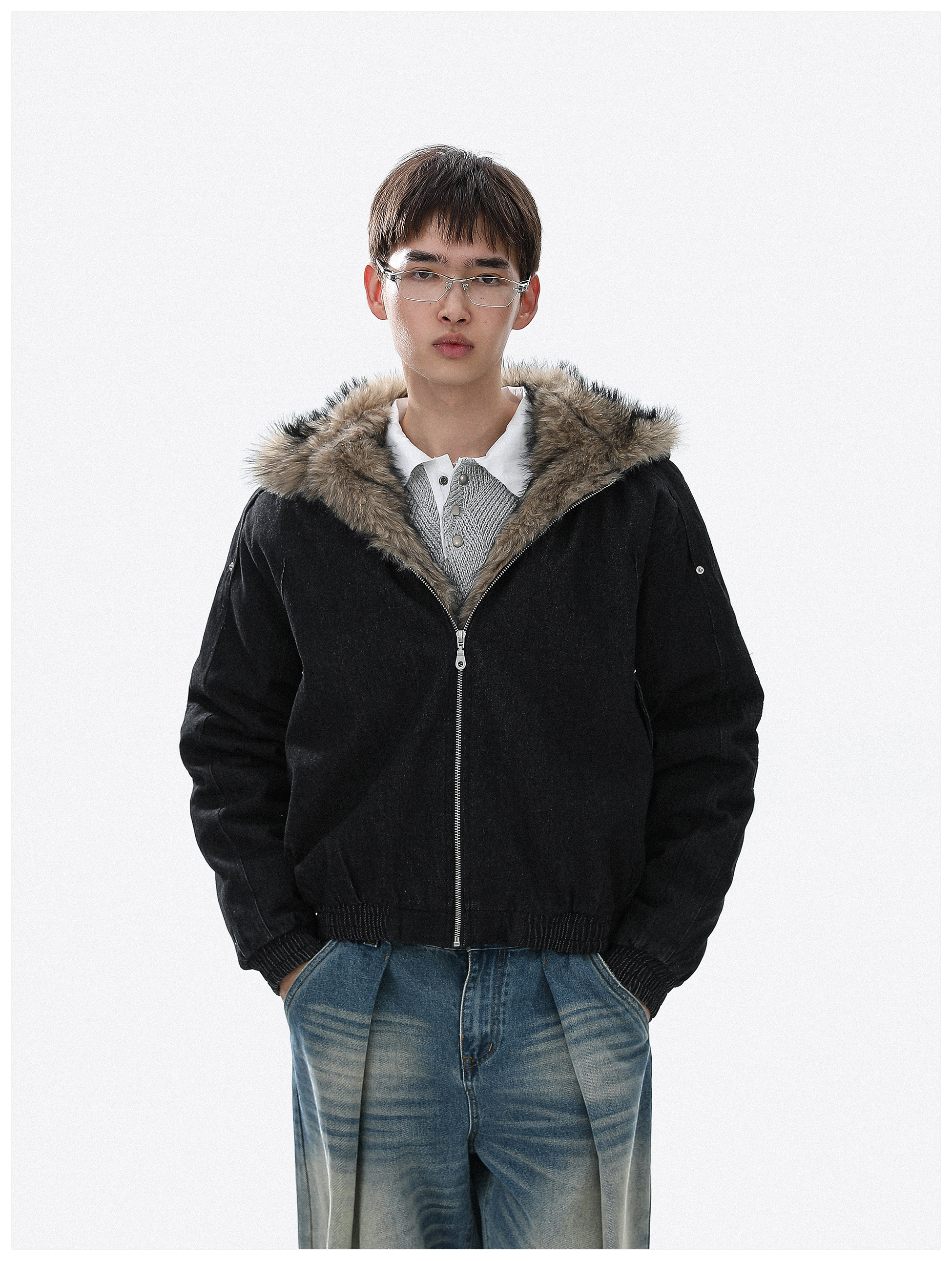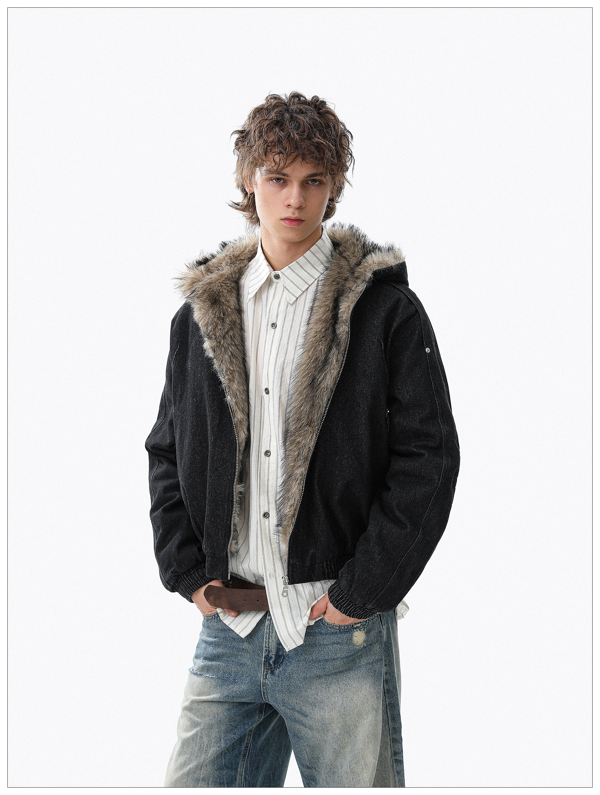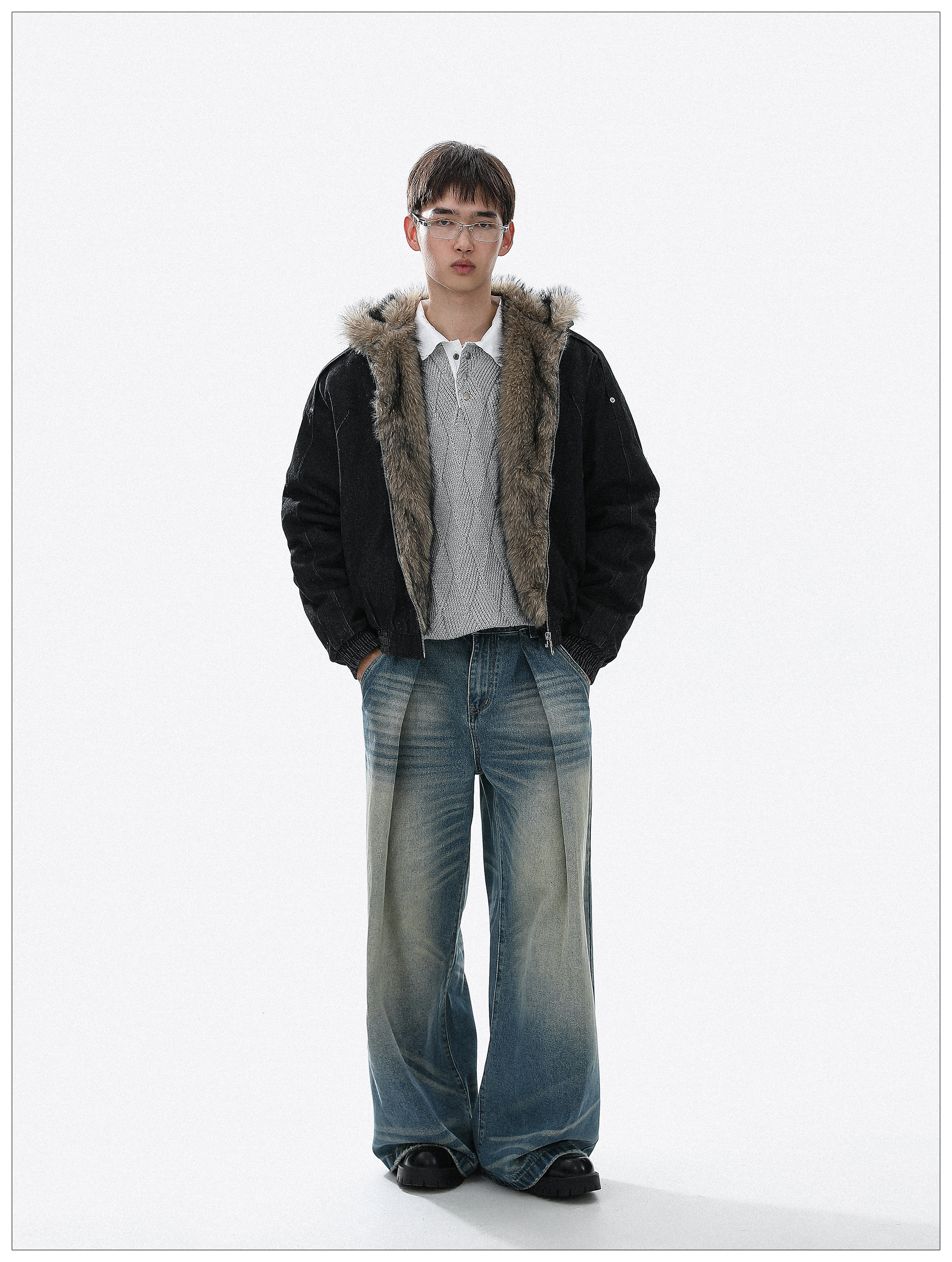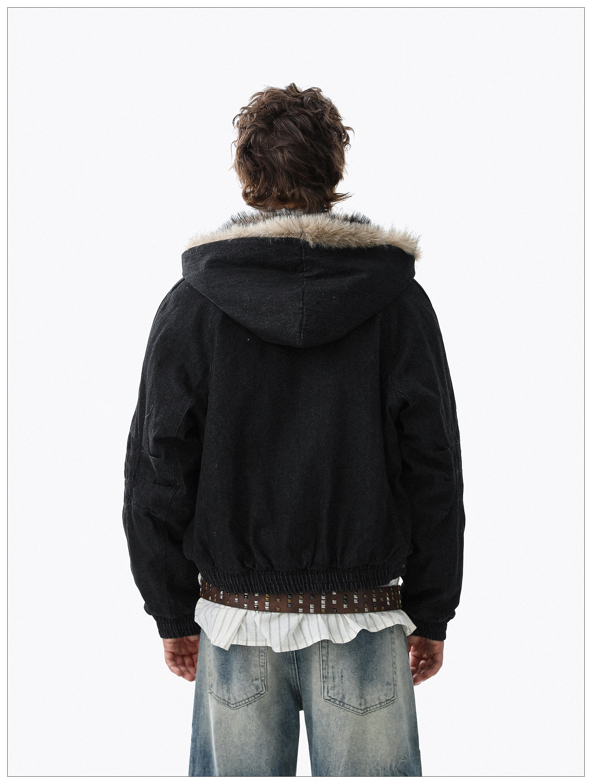 Fake Fur-Collar Deconstructed Thick Denim Jacket WN22110