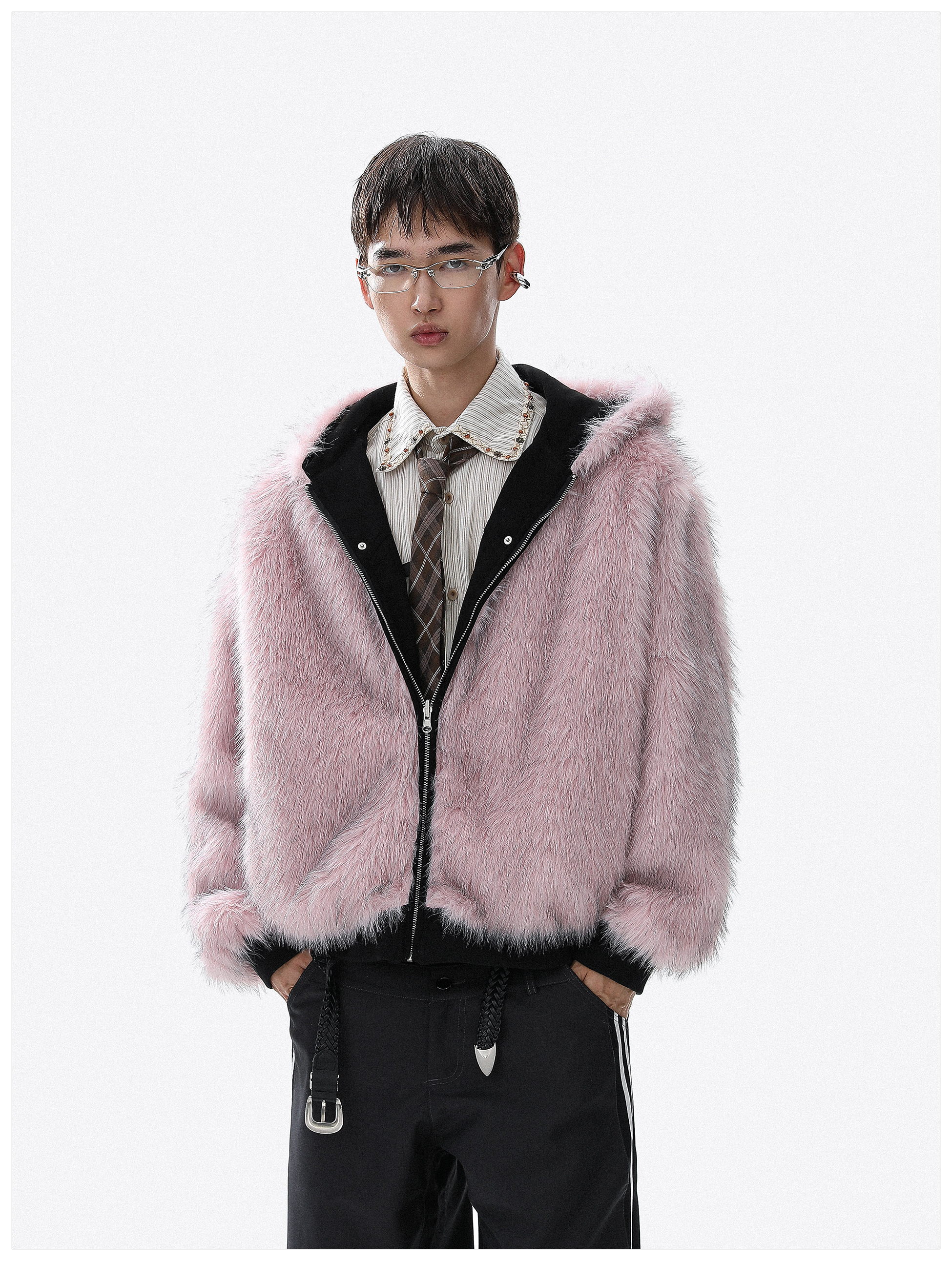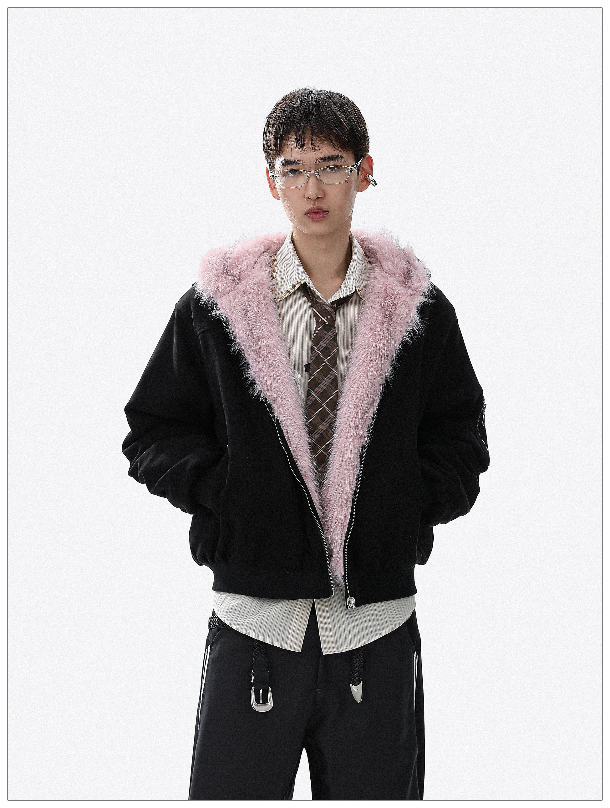 Reversible Fake Fur-Collar Warm Zipper Hooded Jacket WN22112