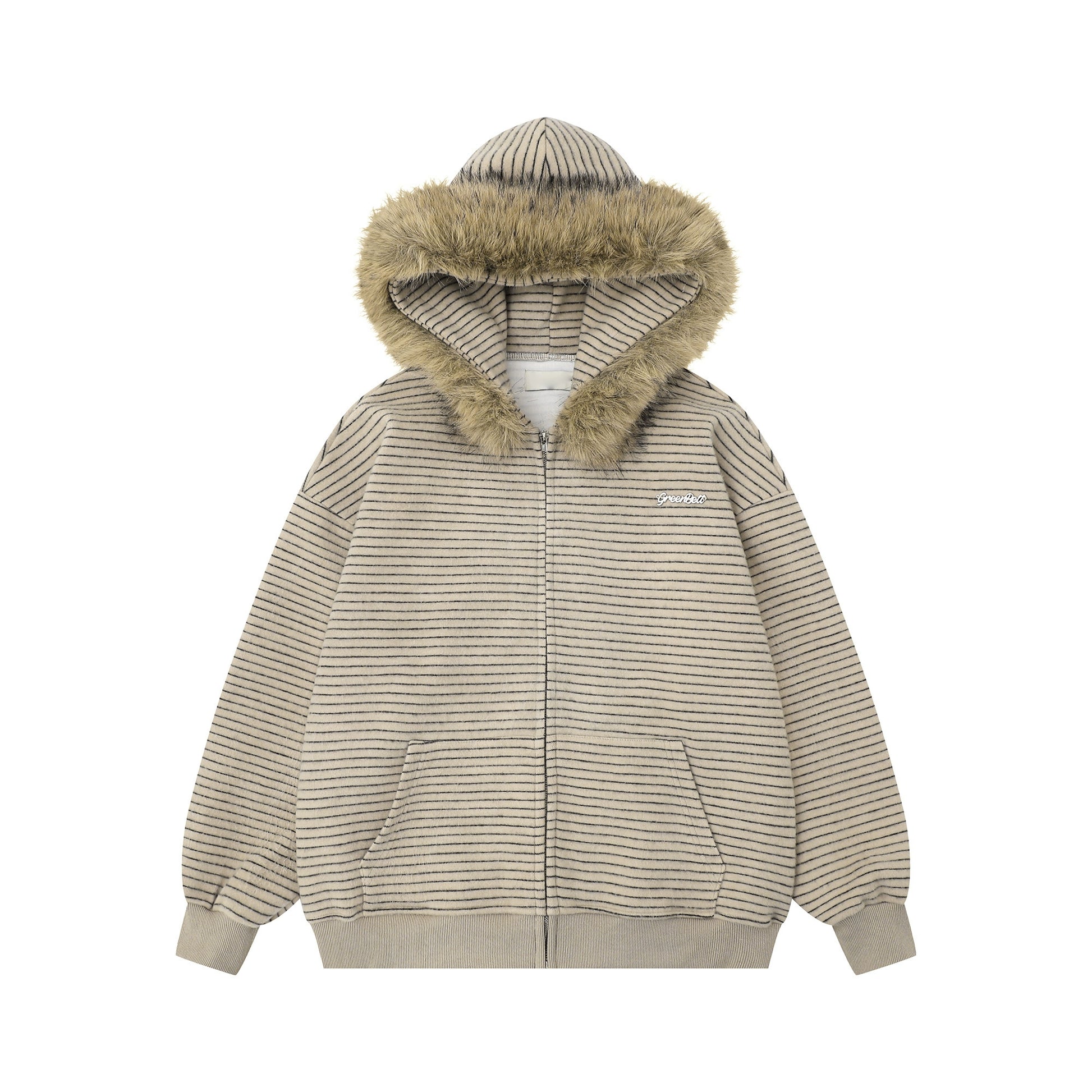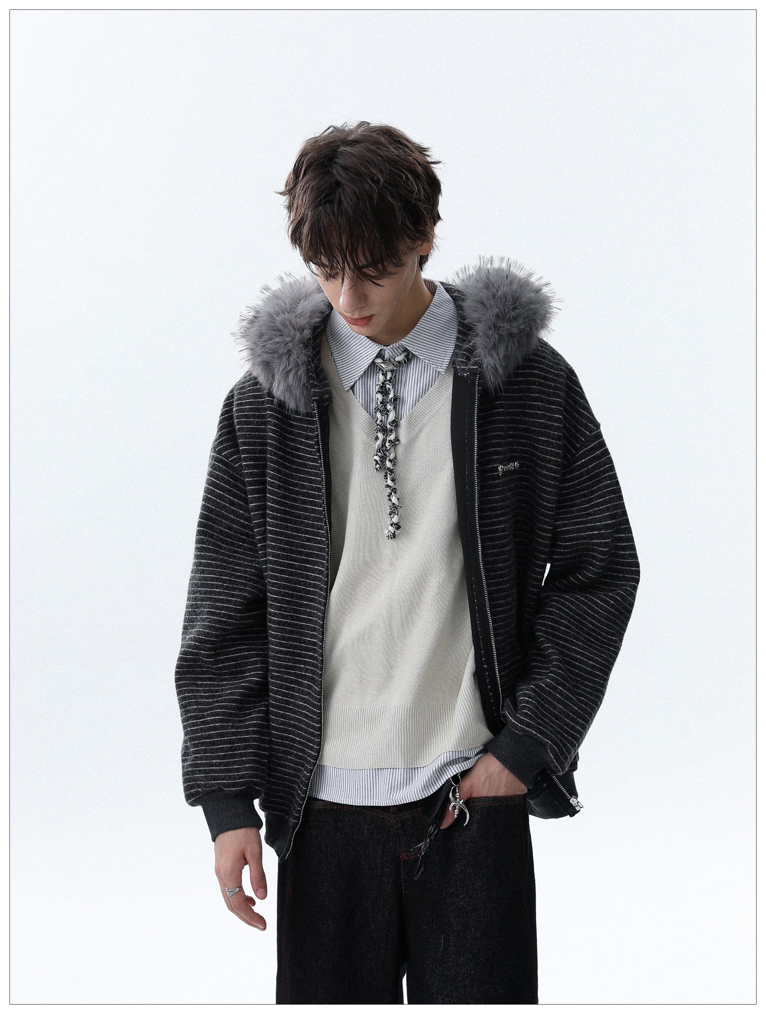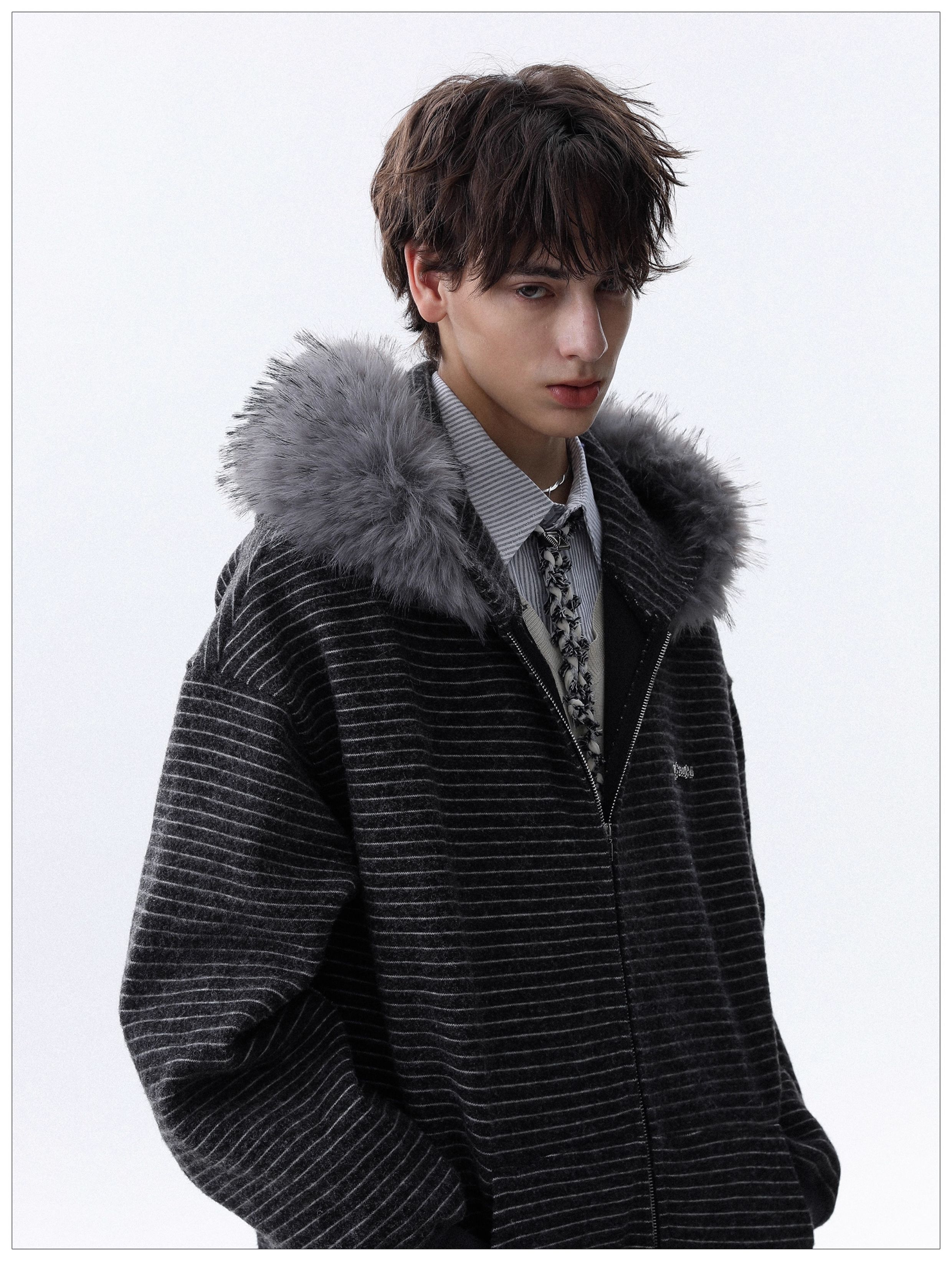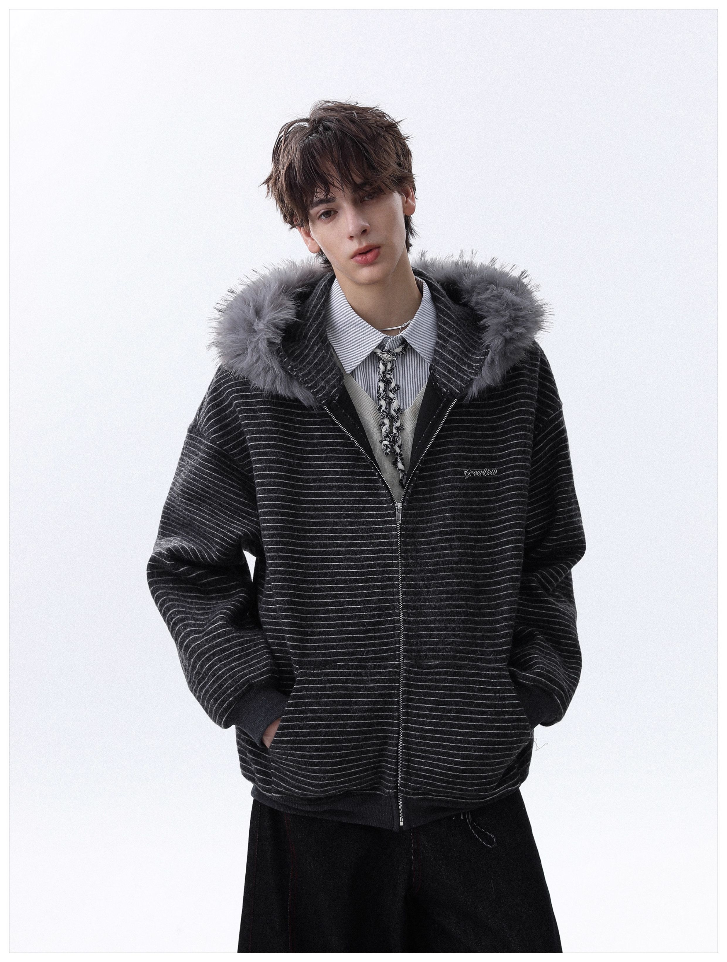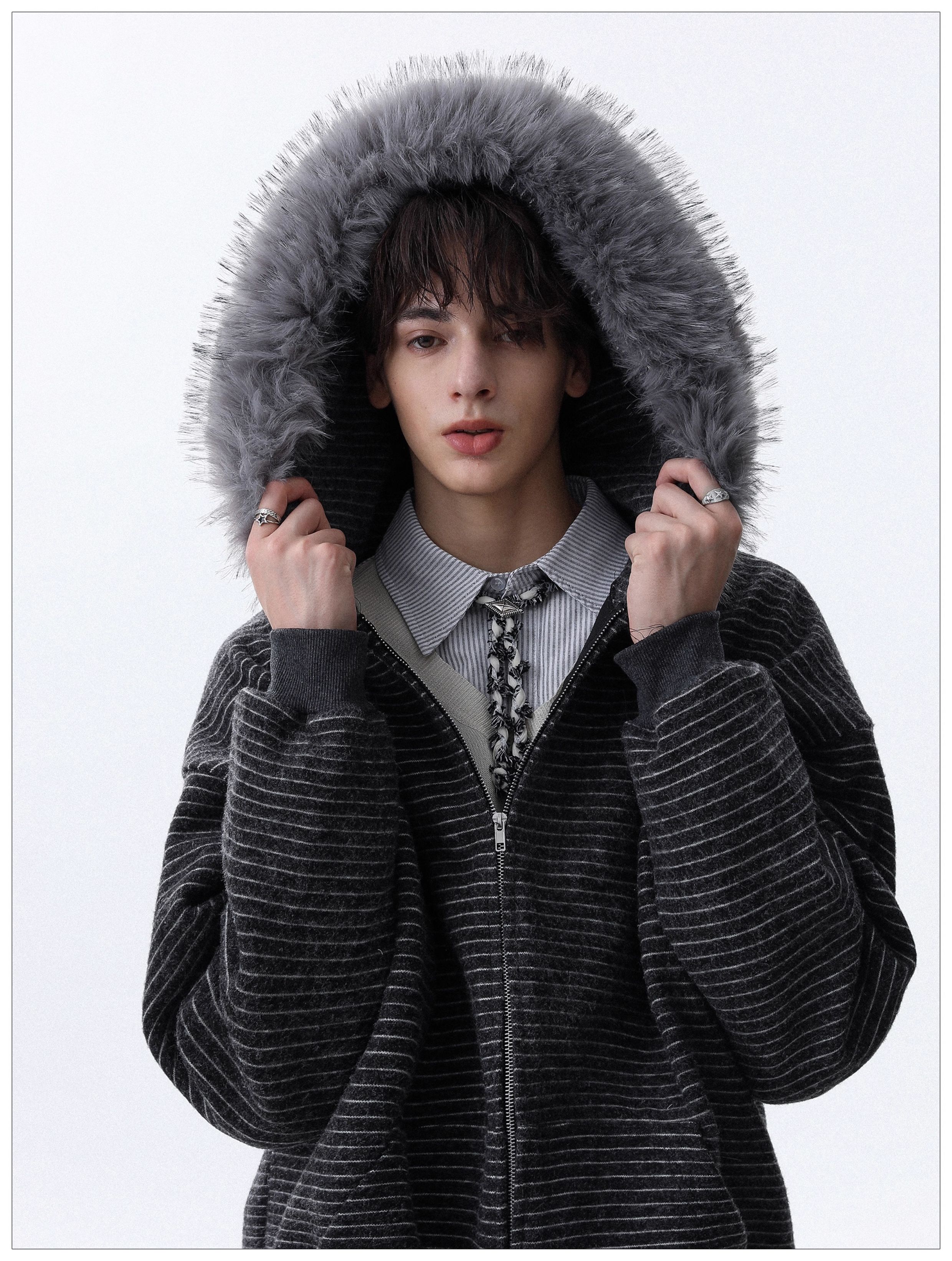 Detachable Fake Fur-Collar Zipper Hooded Jacket WN22120