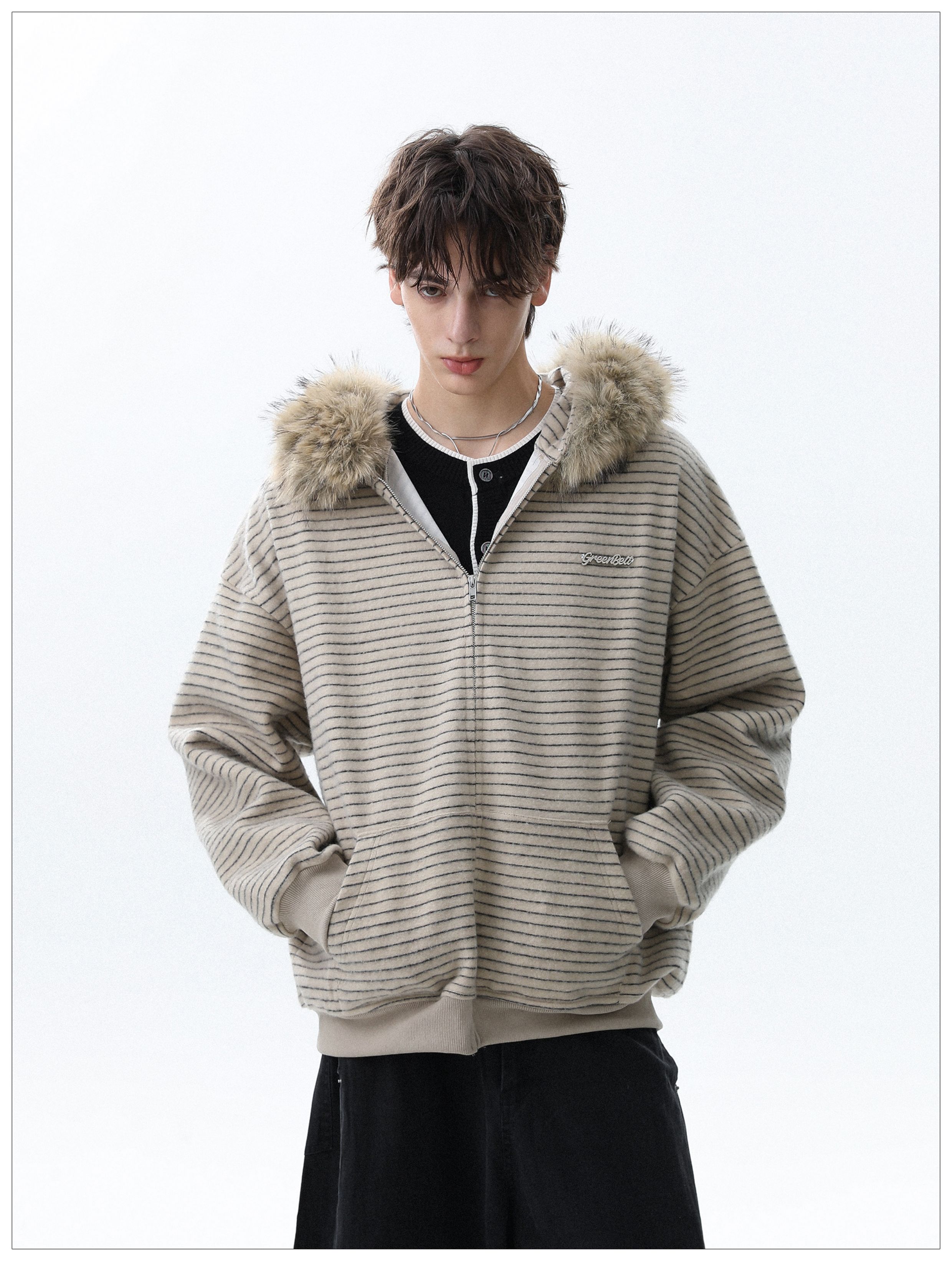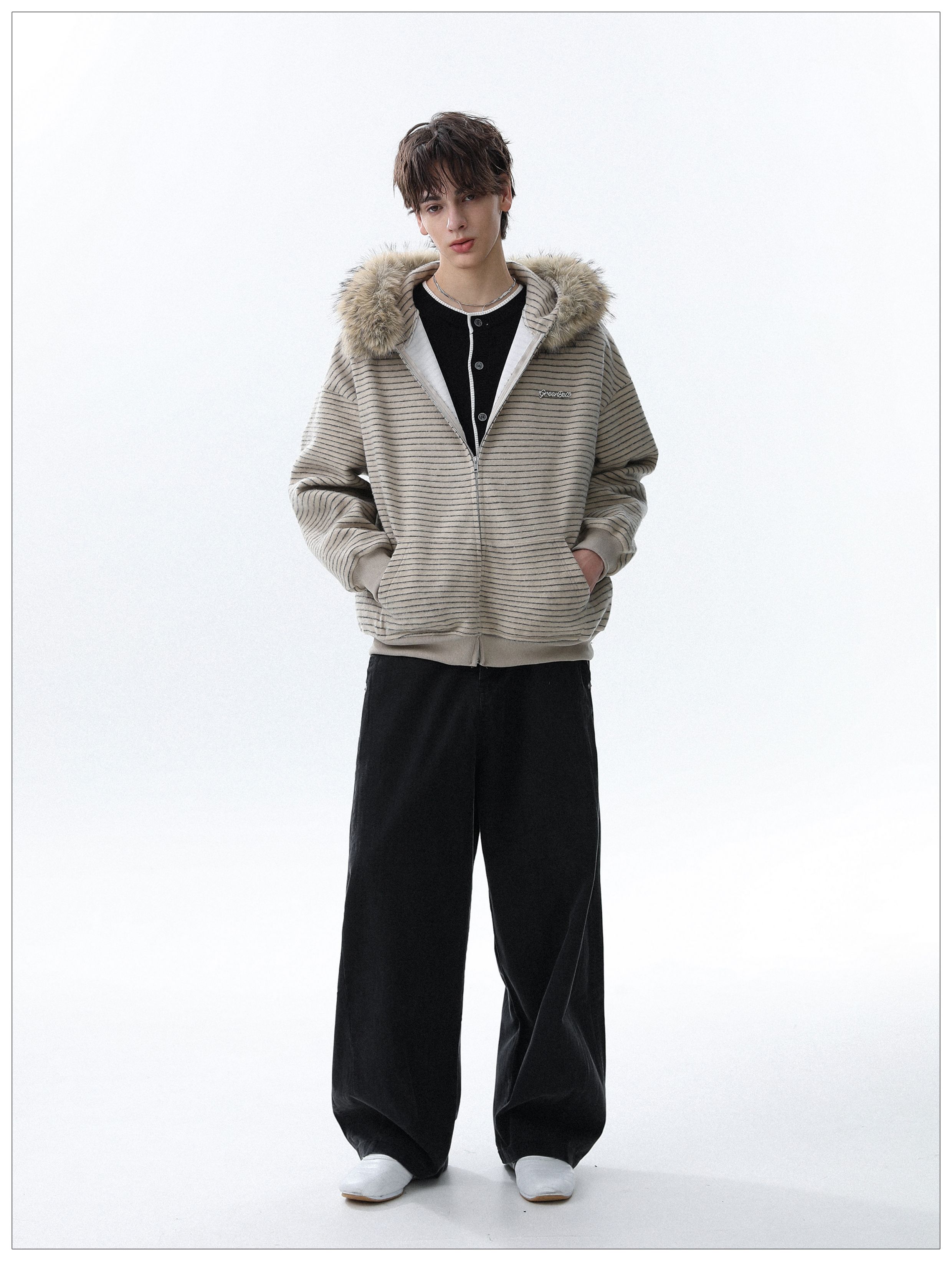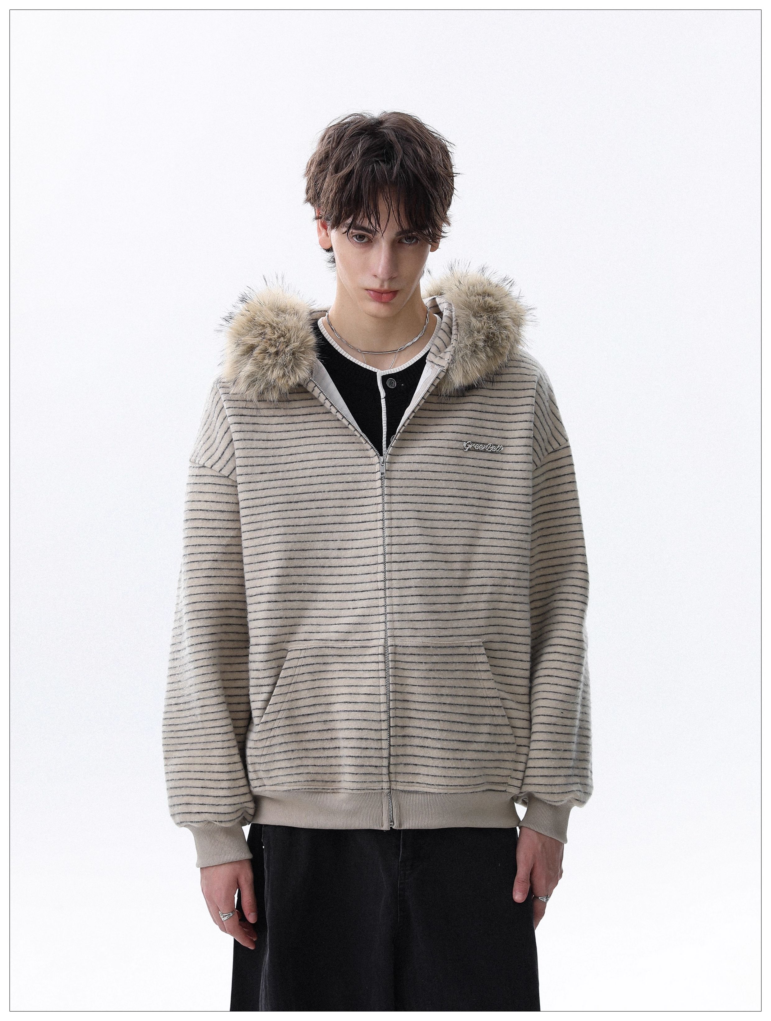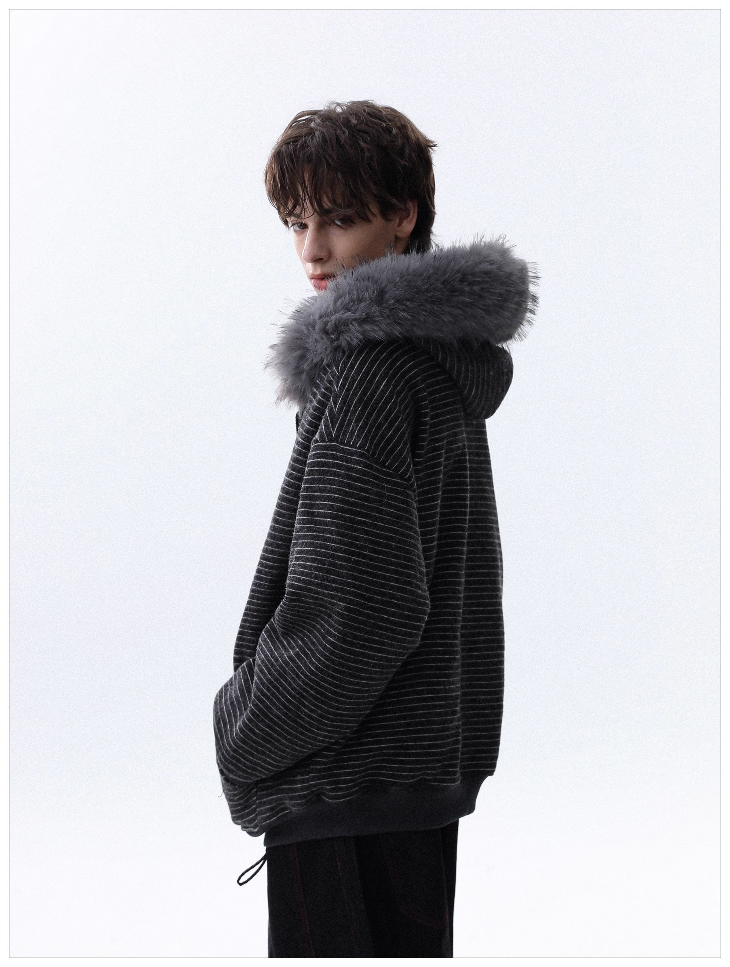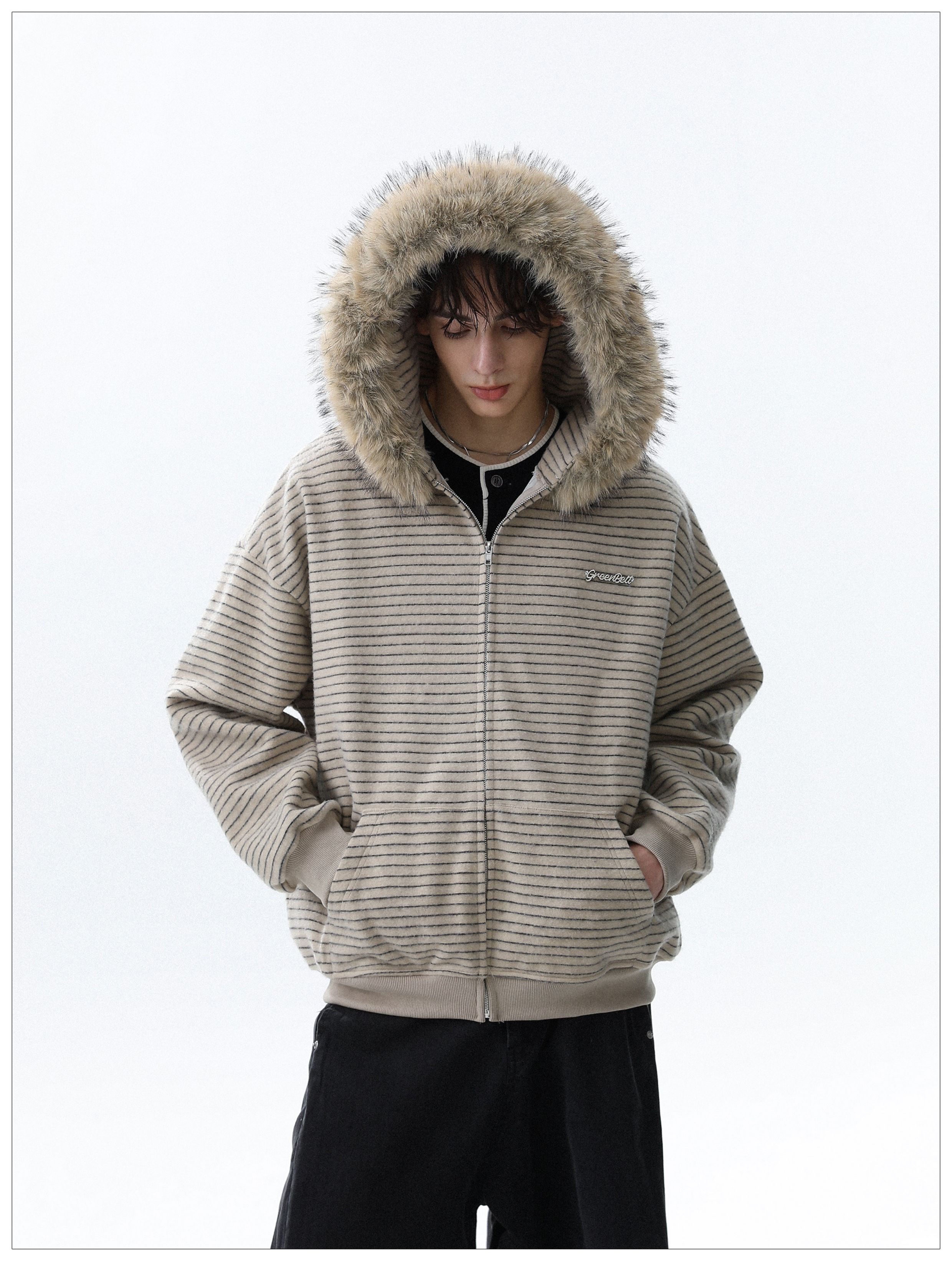 Detachable Fake Fur-Collar Zipper Hooded Jacket WN22120