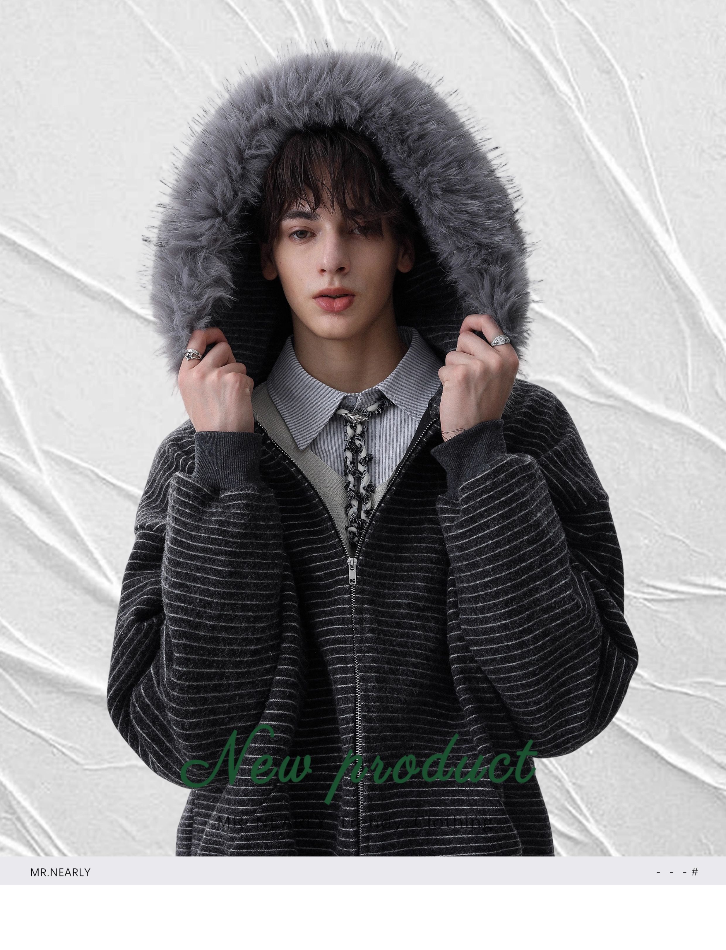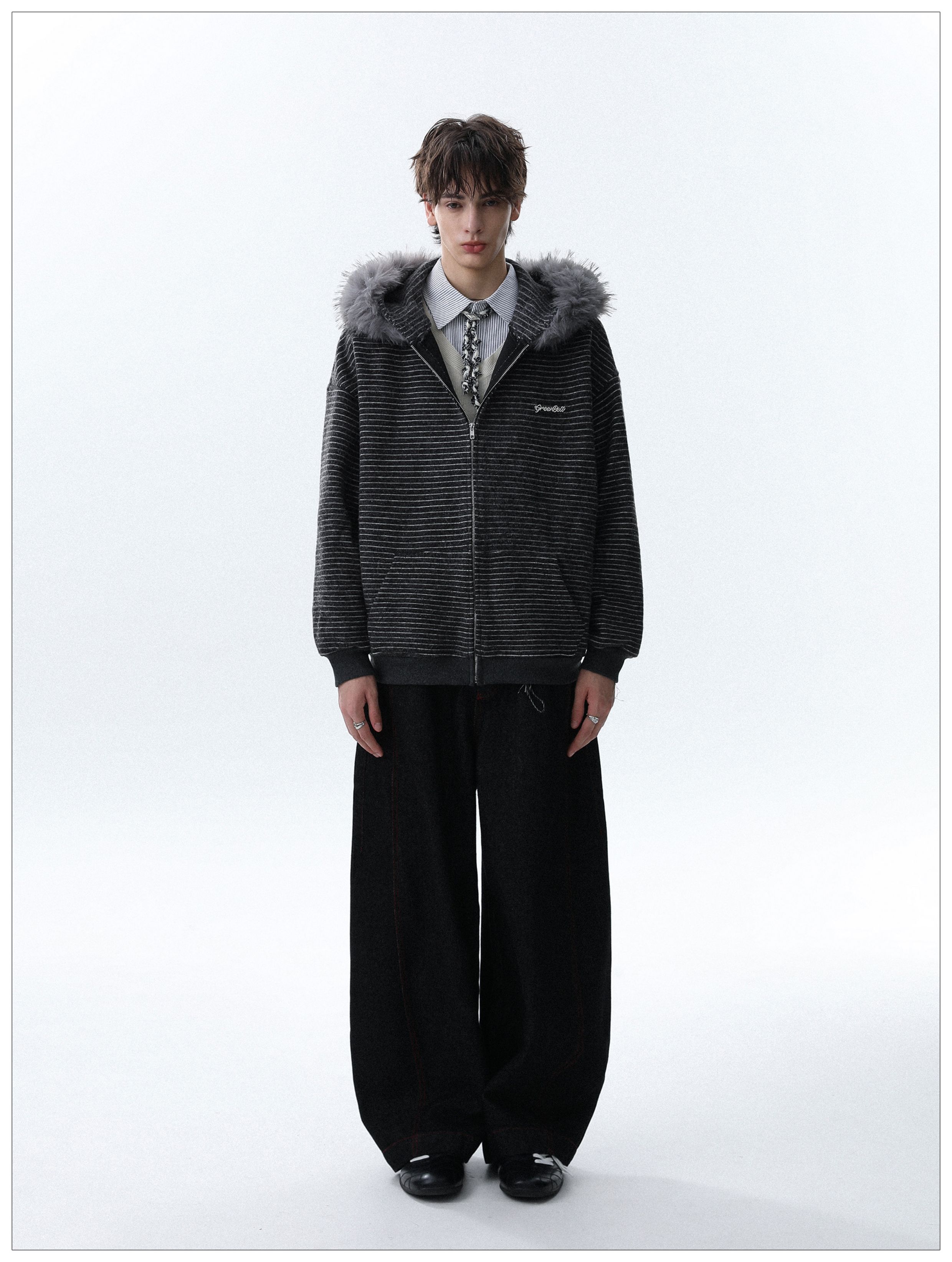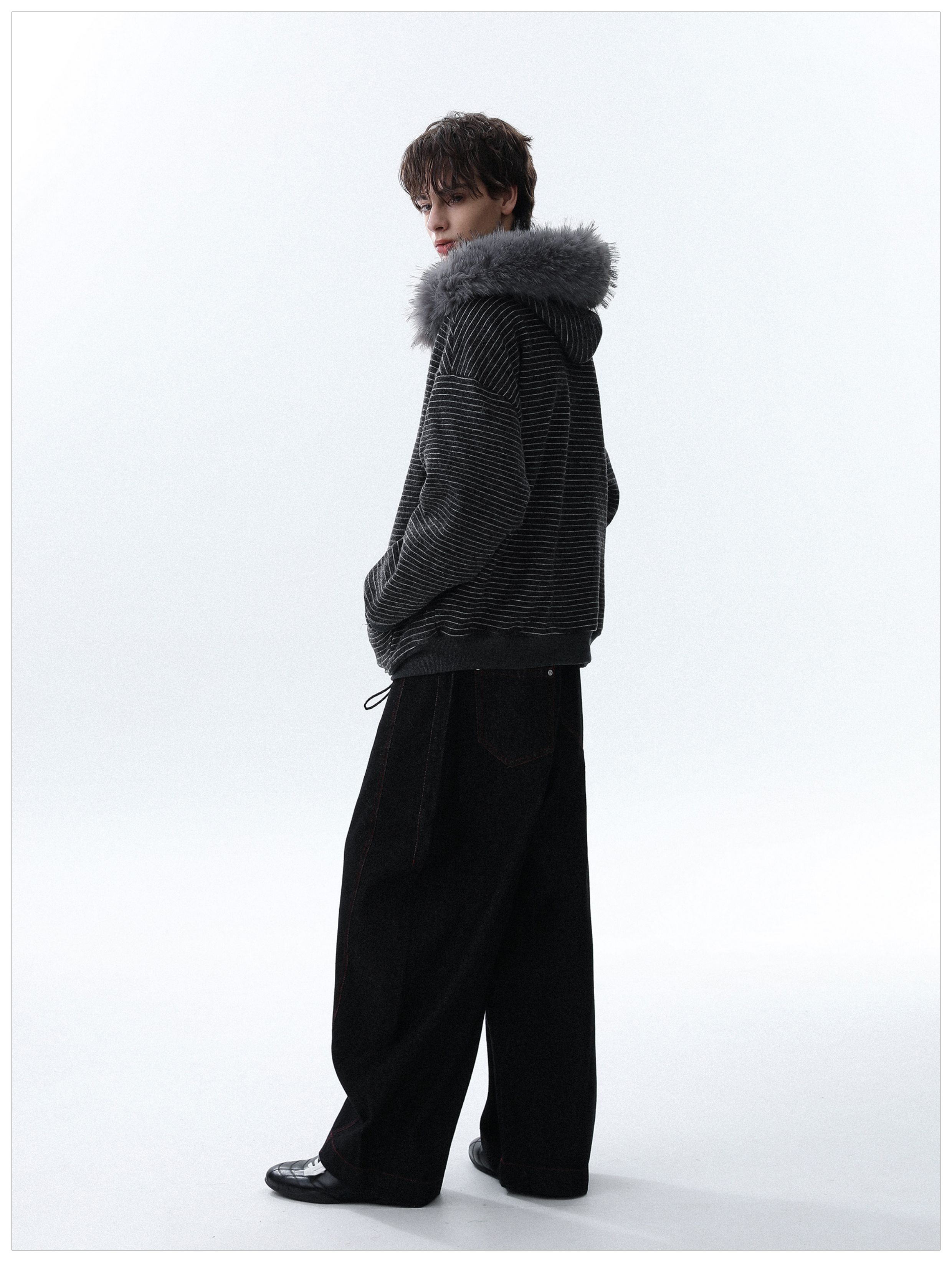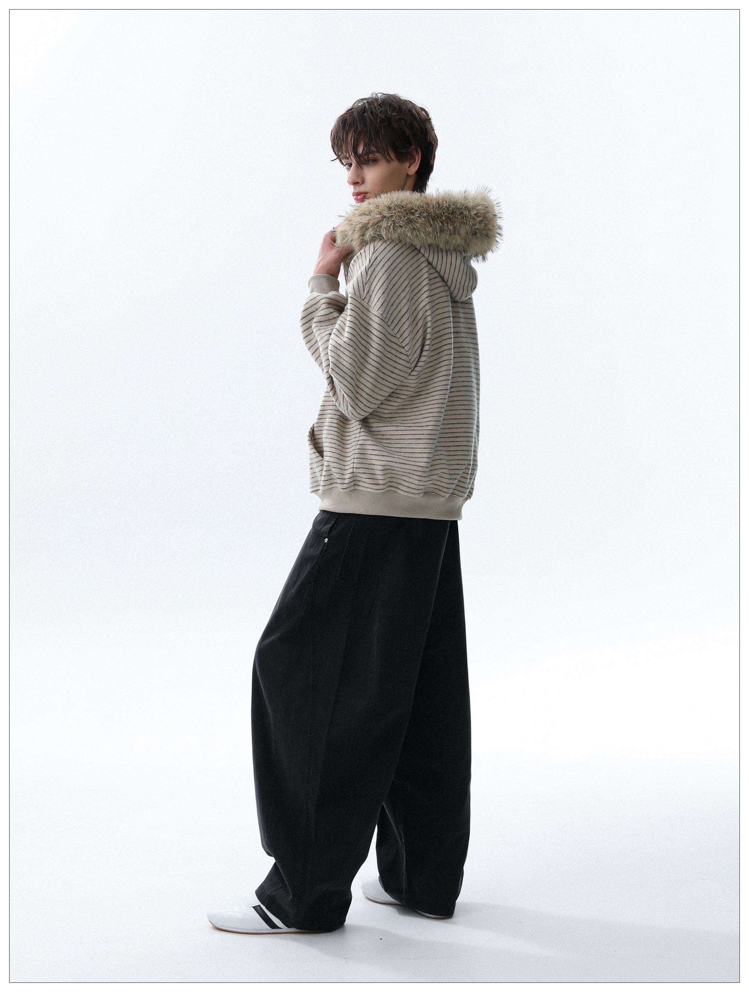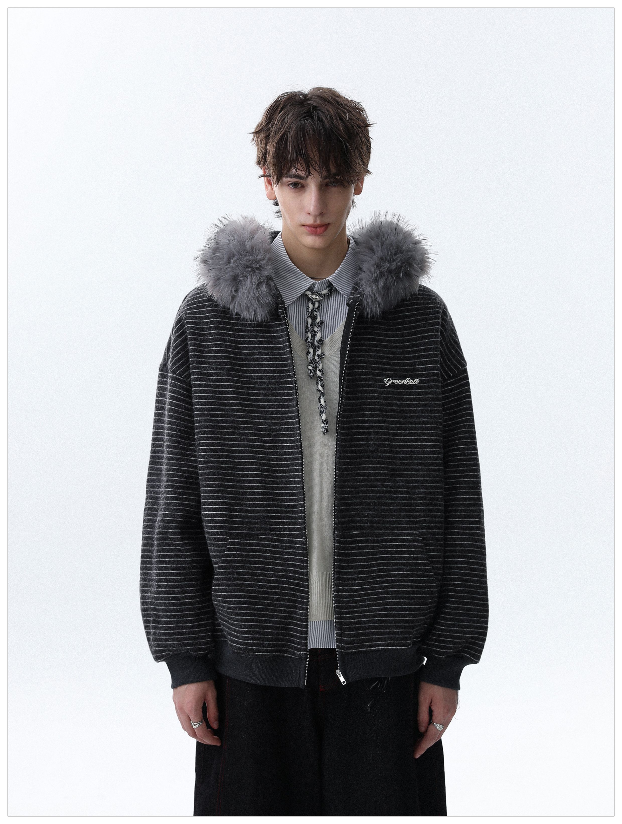 Detachable Fake Fur-Collar Zipper Hooded Jacket WN22120