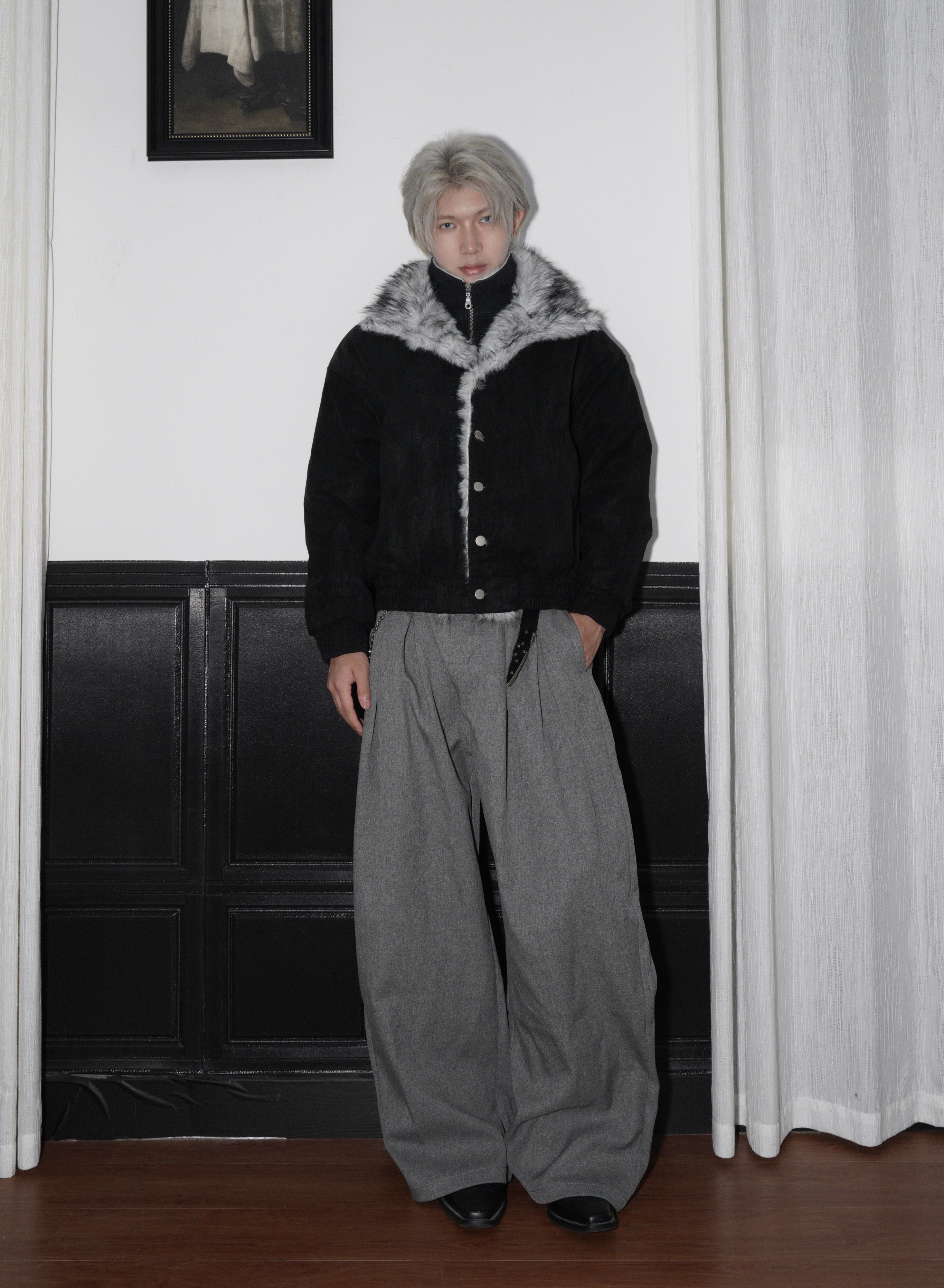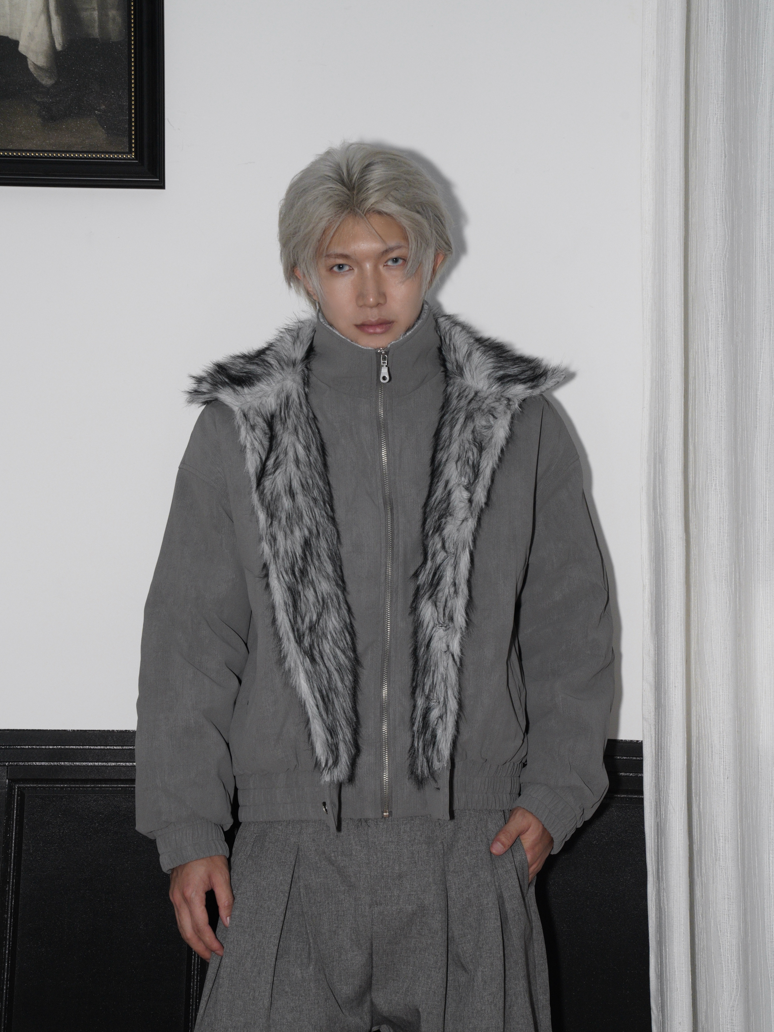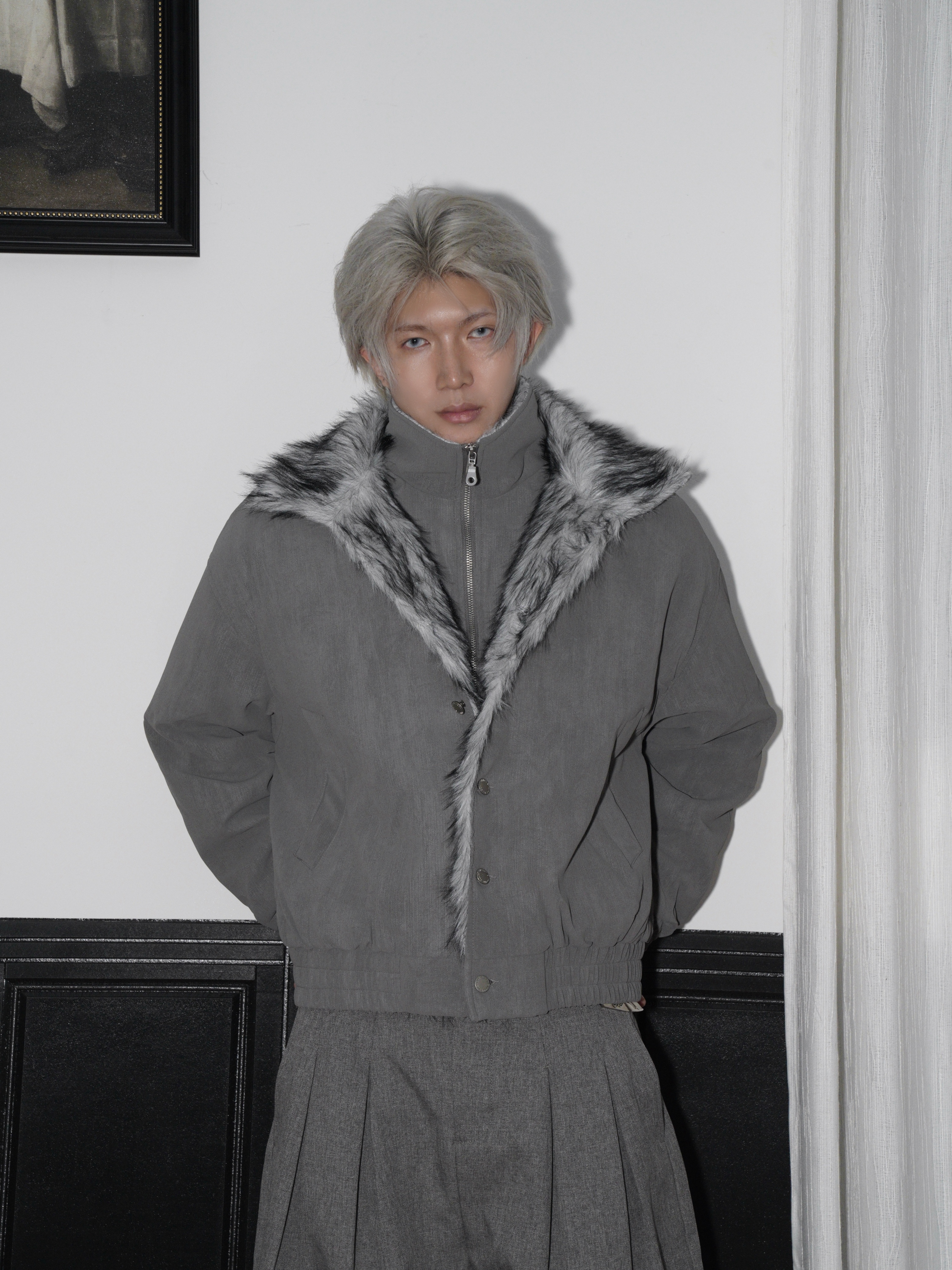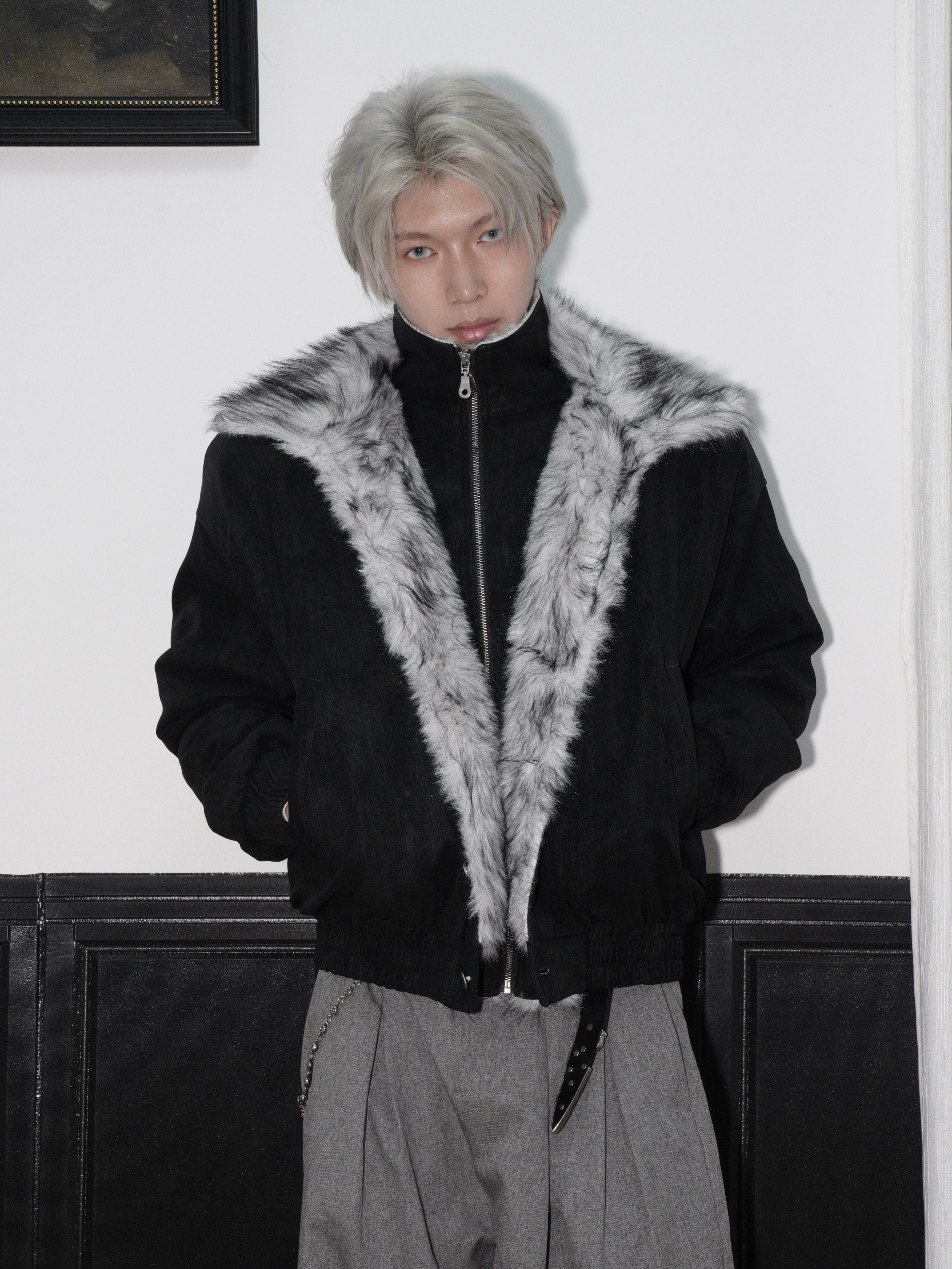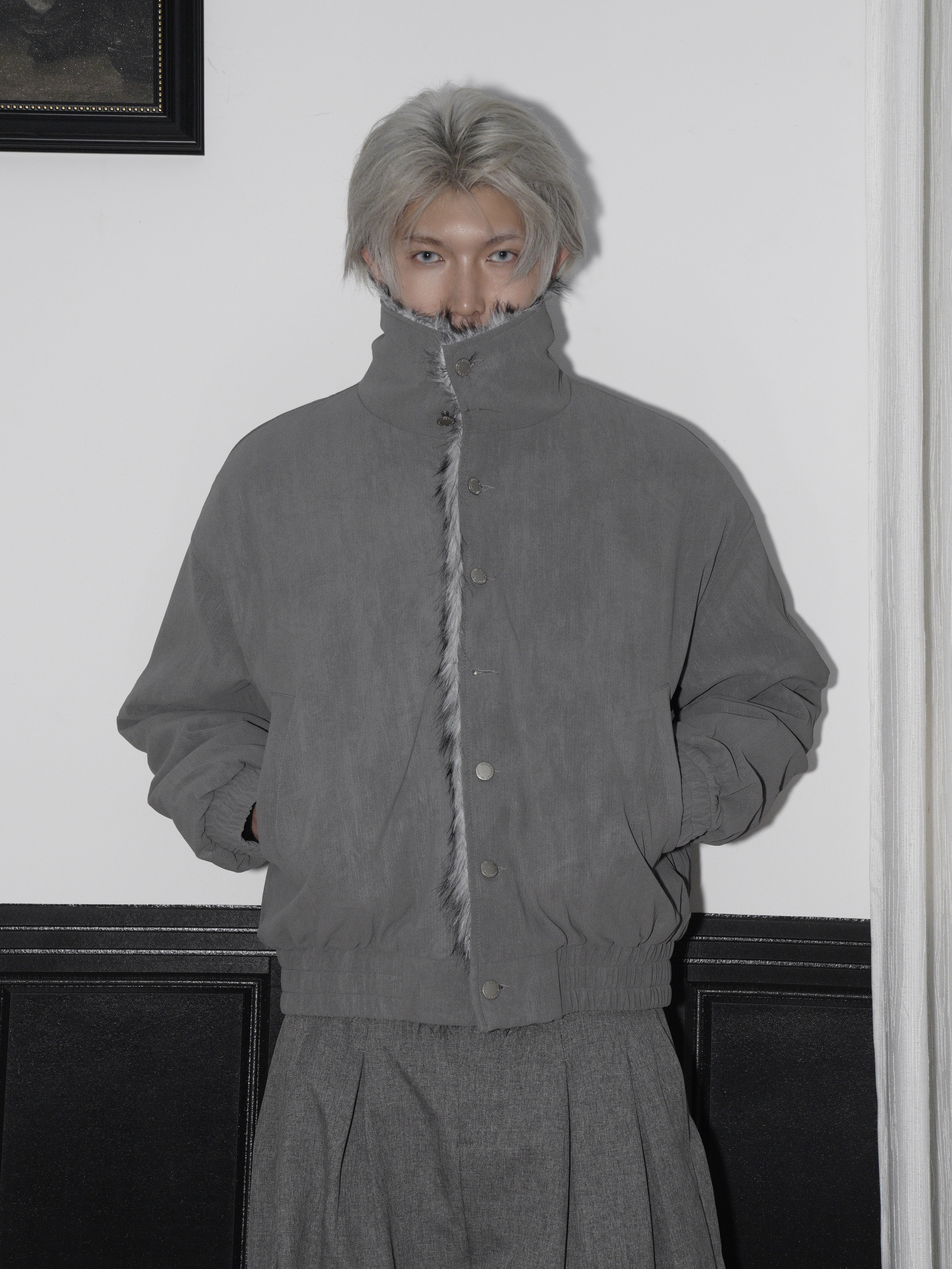 Double-Layer Fake Fur Standing-Collar Short Padded Jacket WN22186