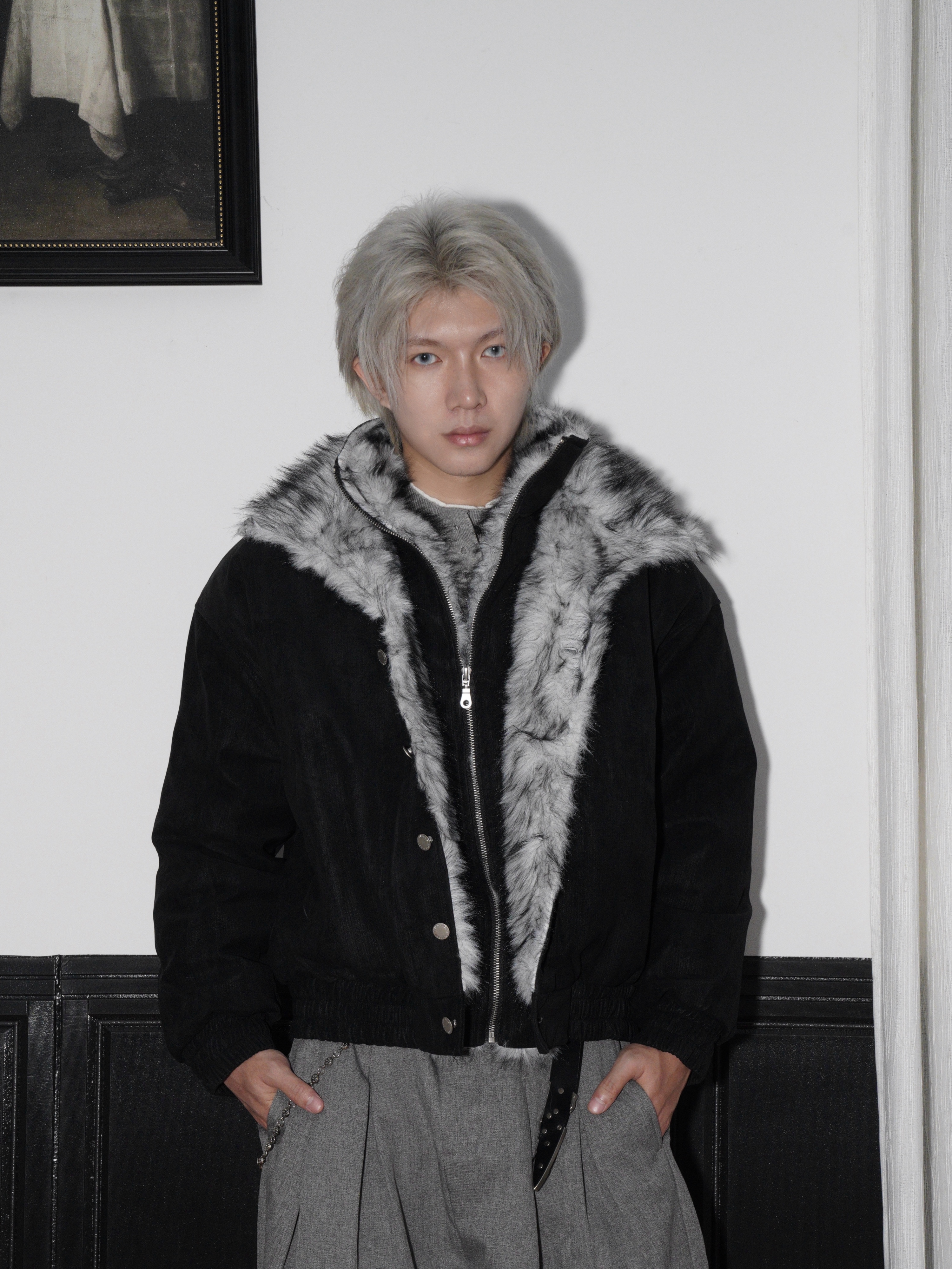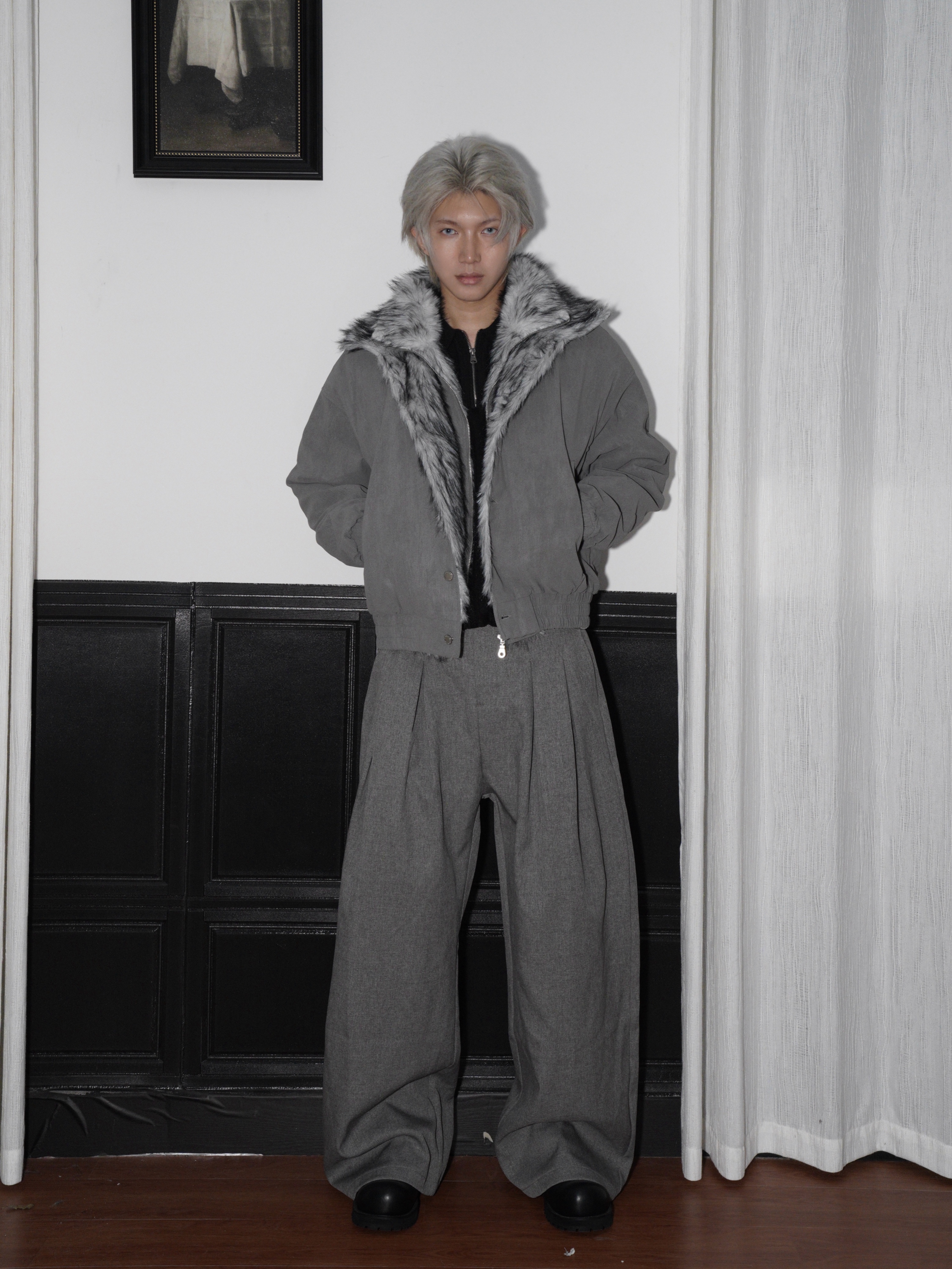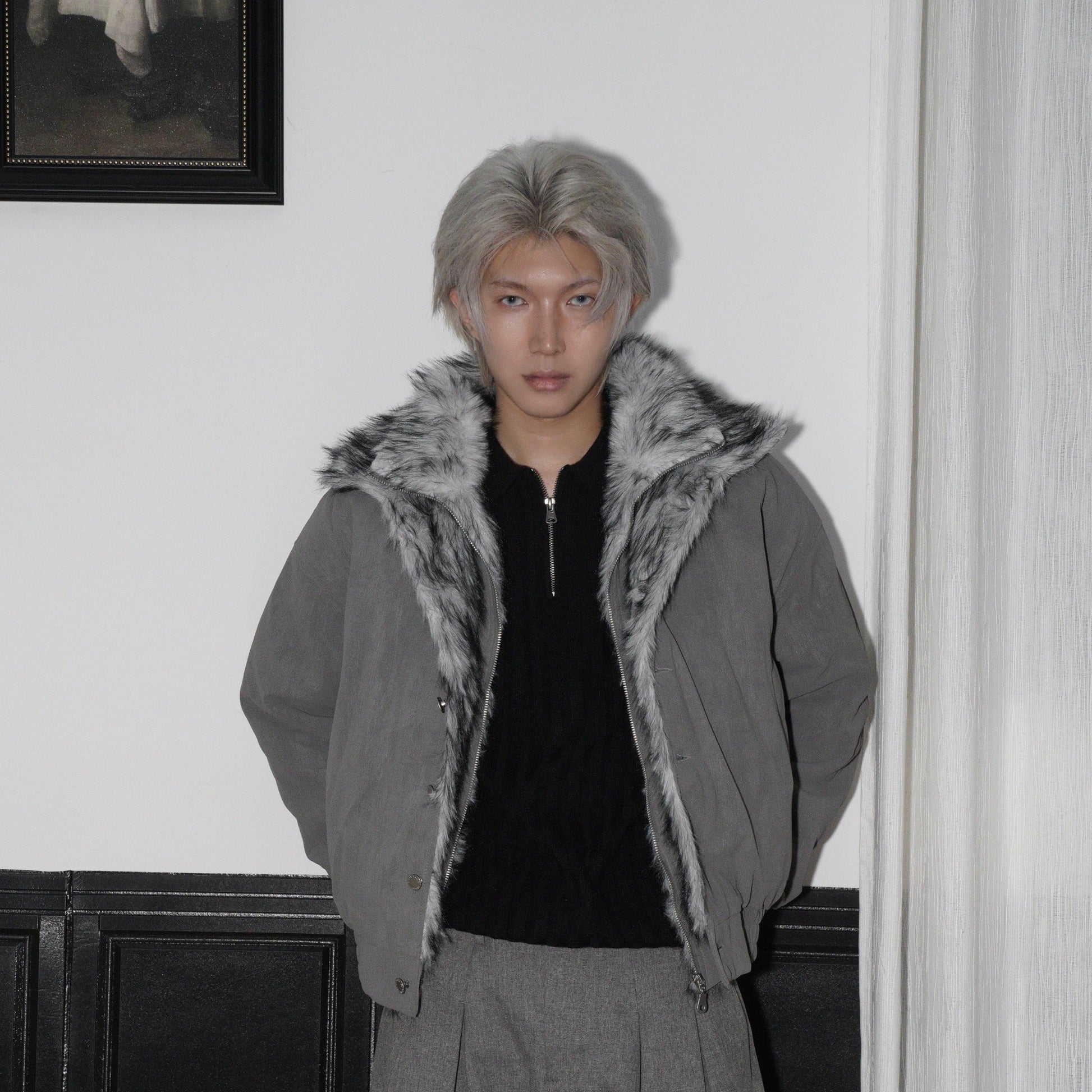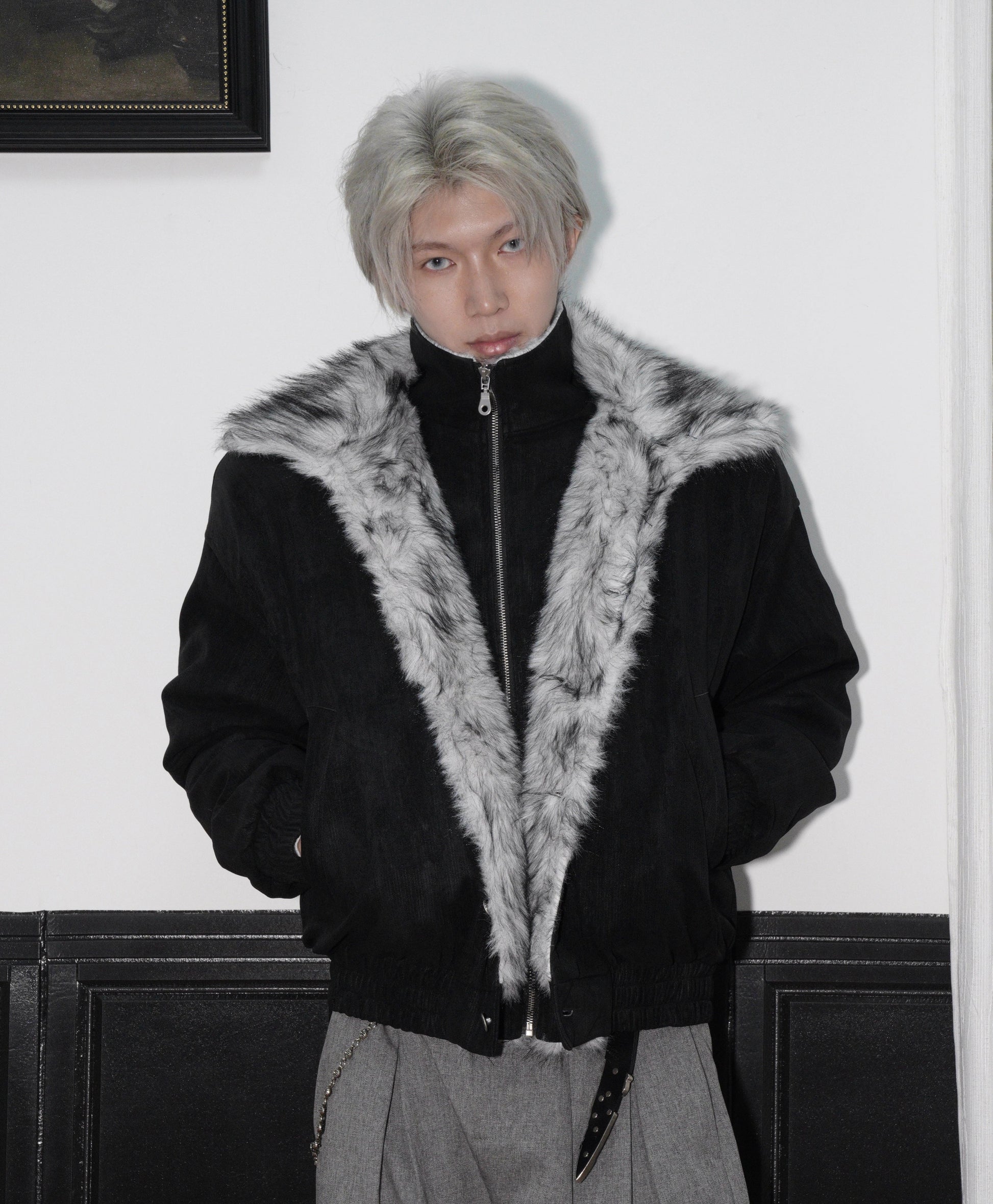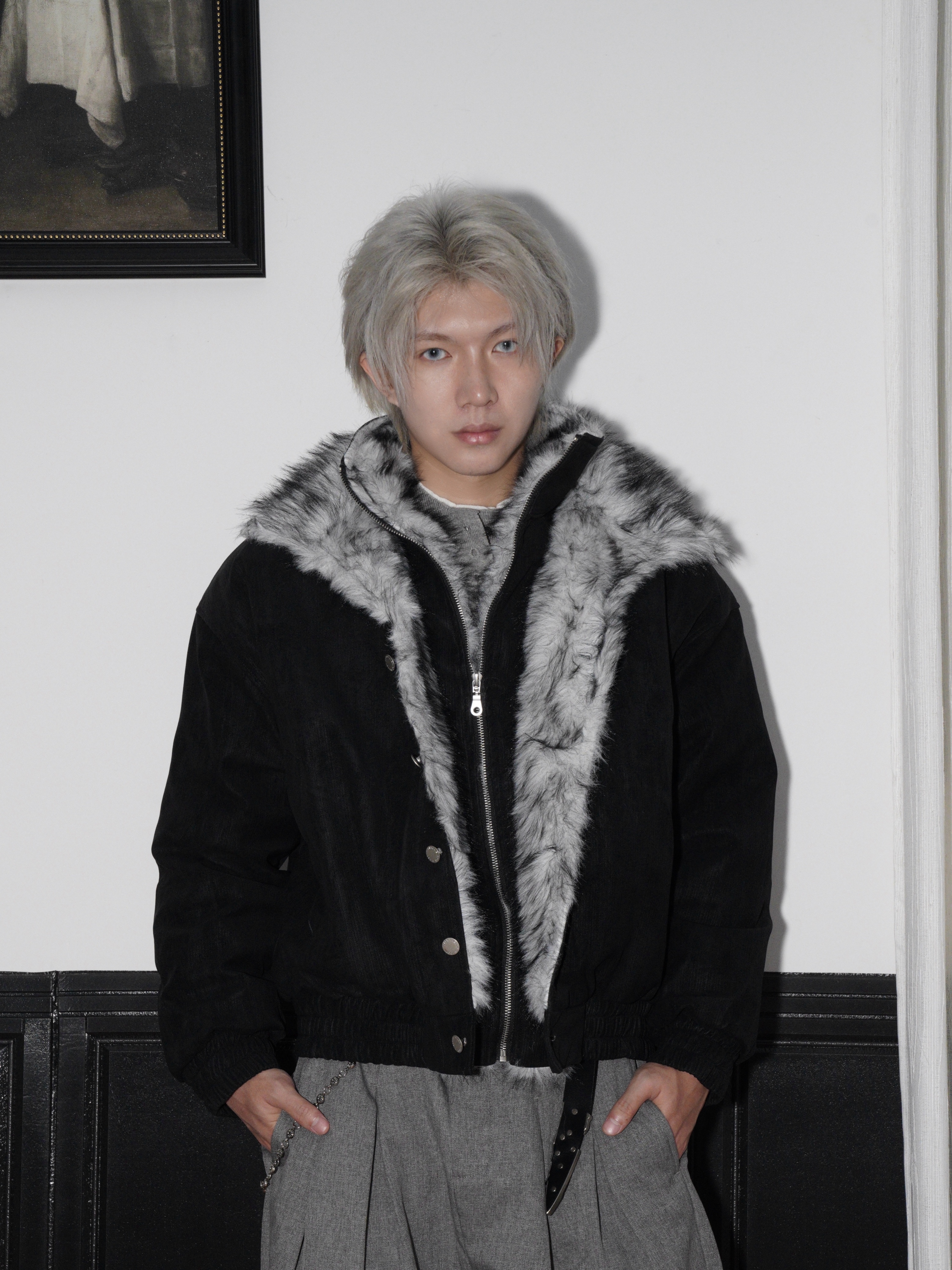 Double-Layer Fake Fur Standing-Collar Short Padded Jacket WN22186