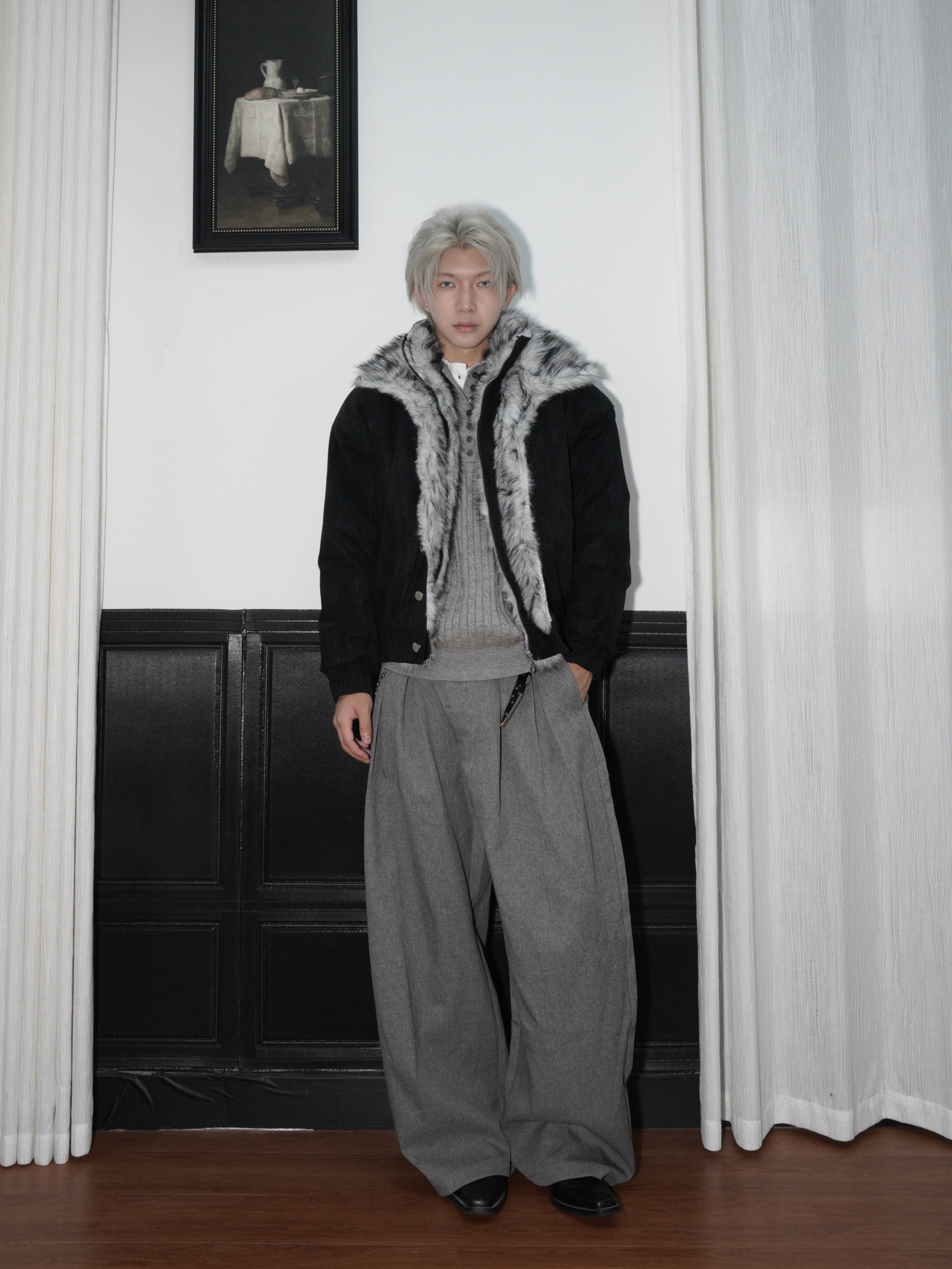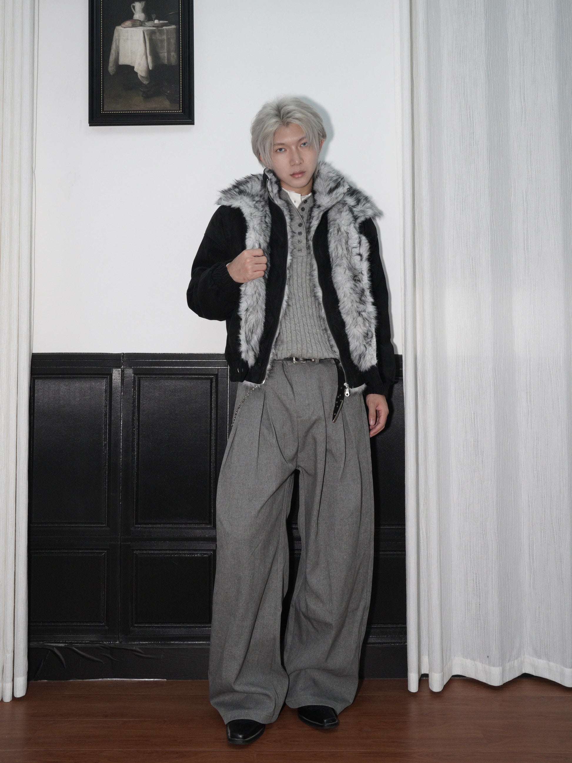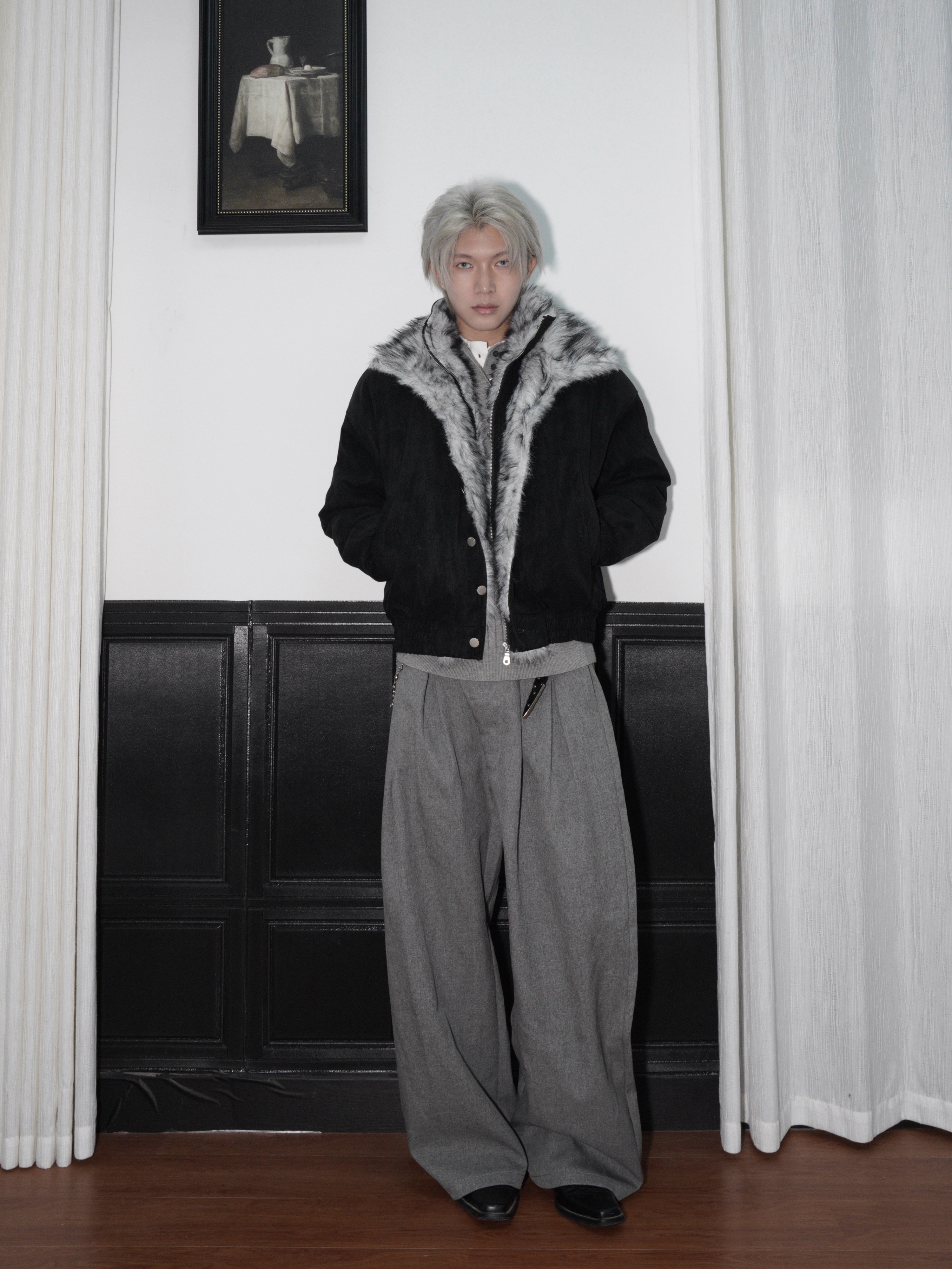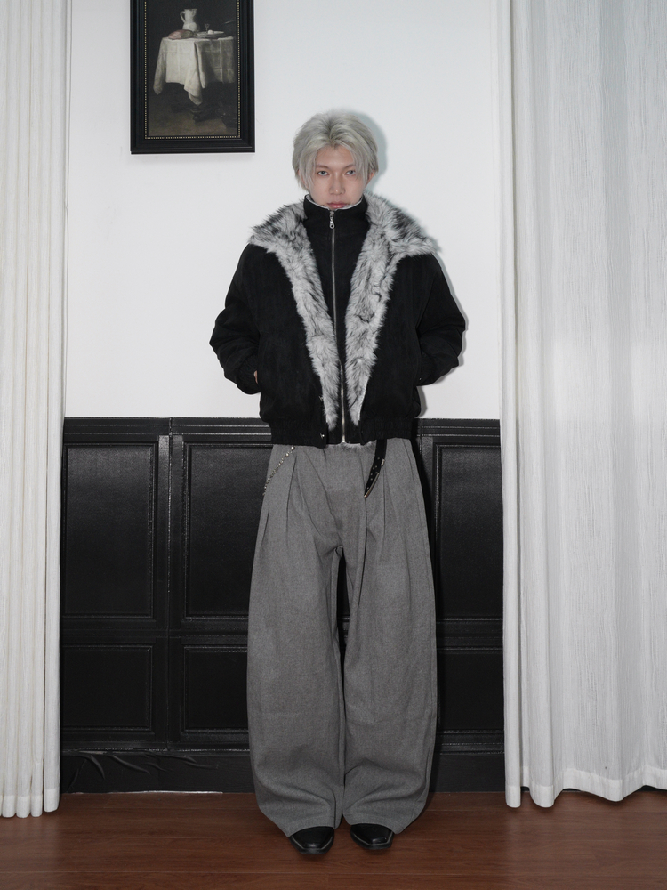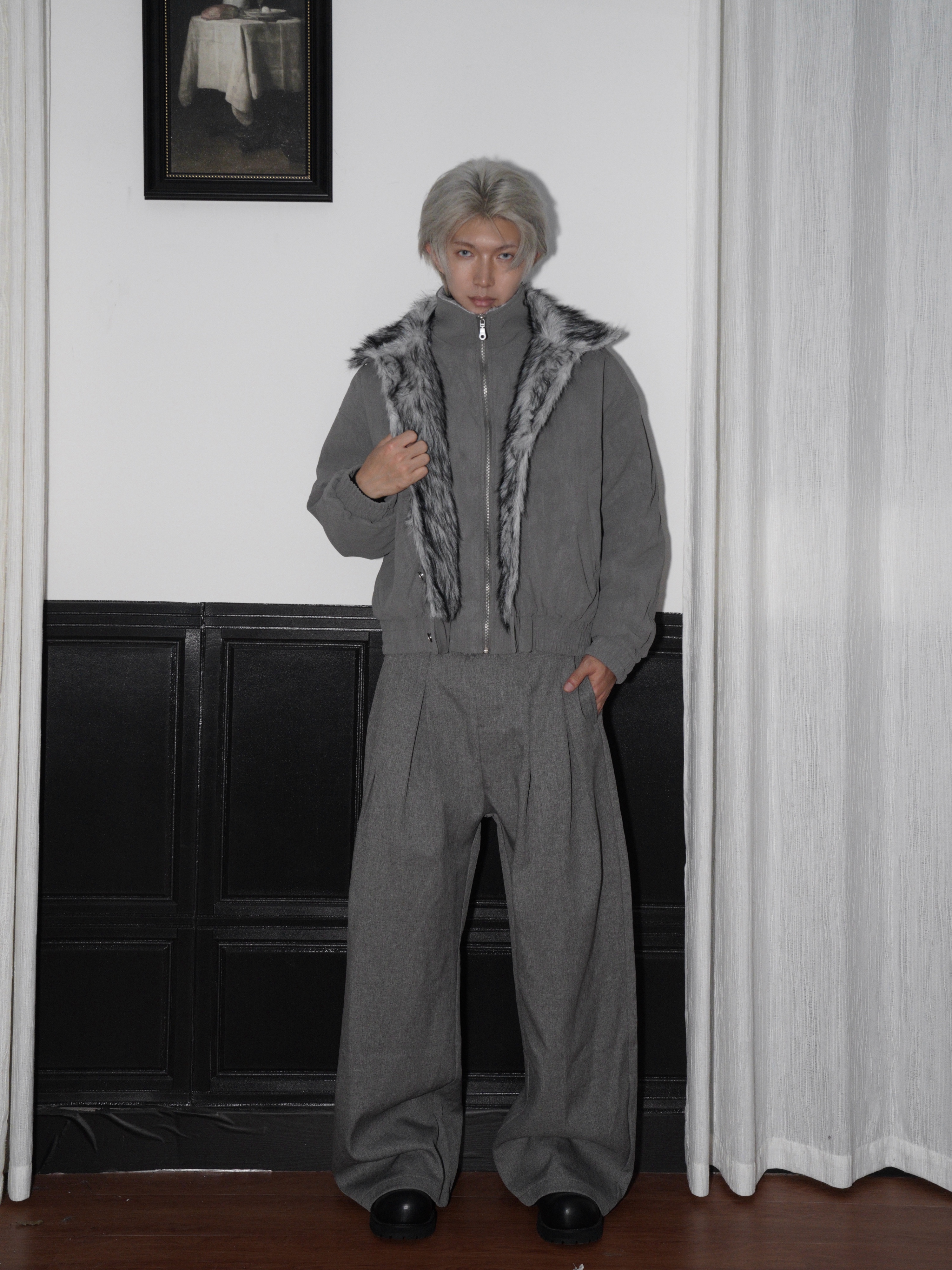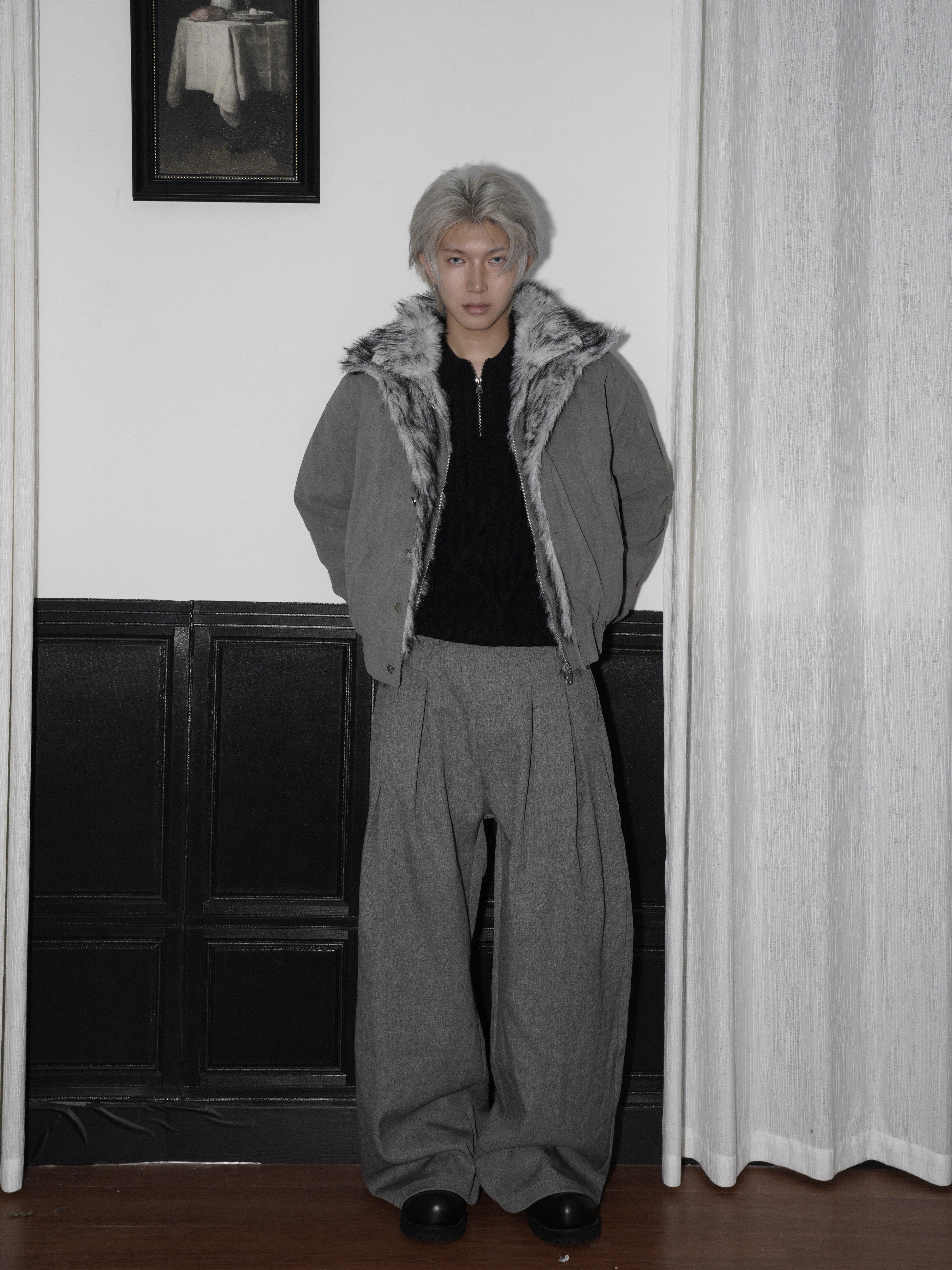 Double-Layer Fake Fur Standing-Collar Short Padded Jacket WN22186