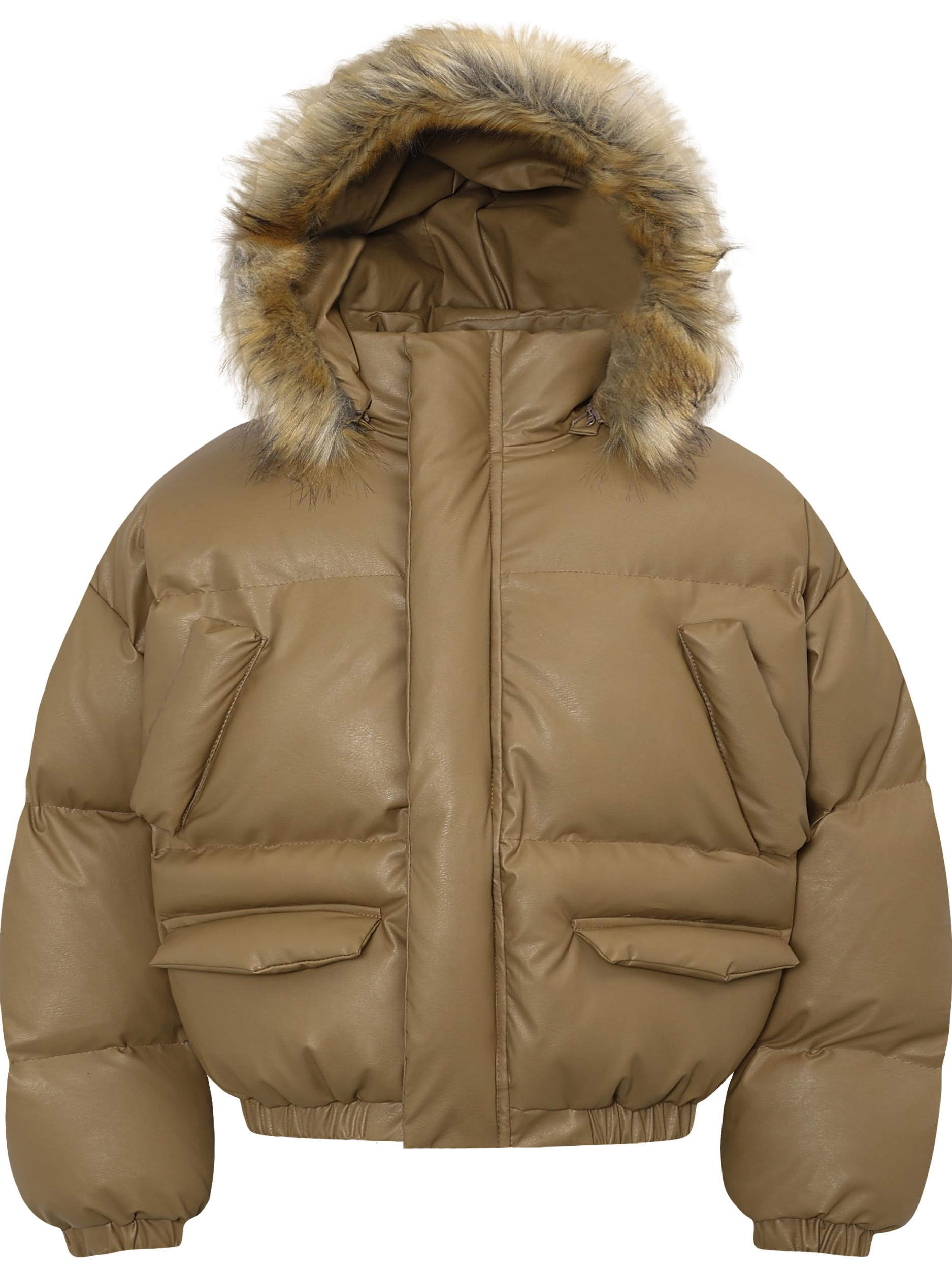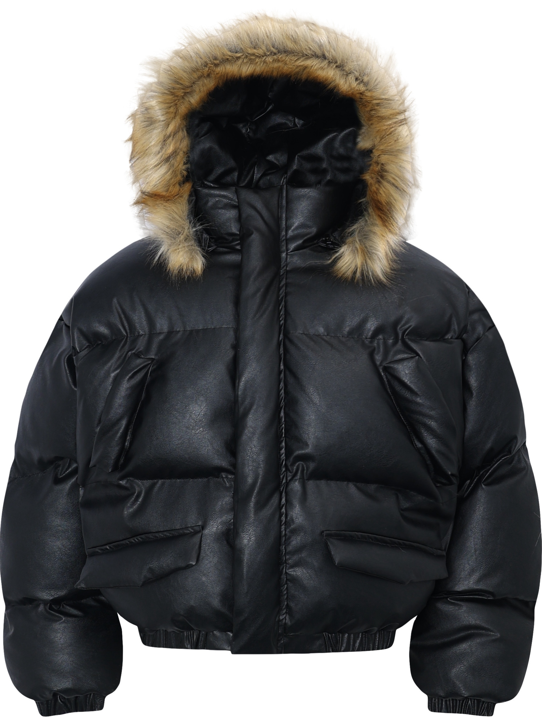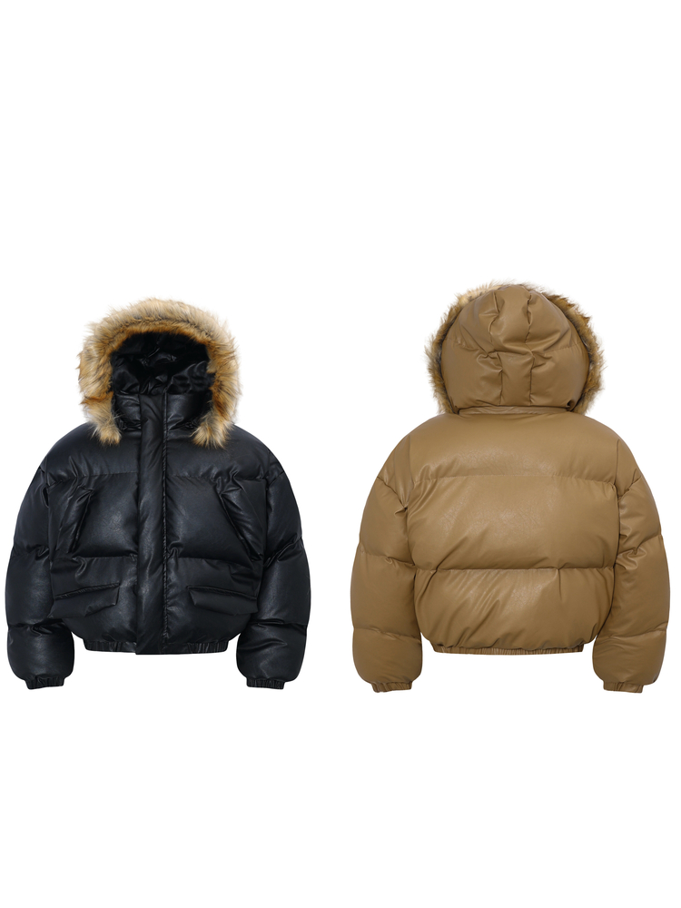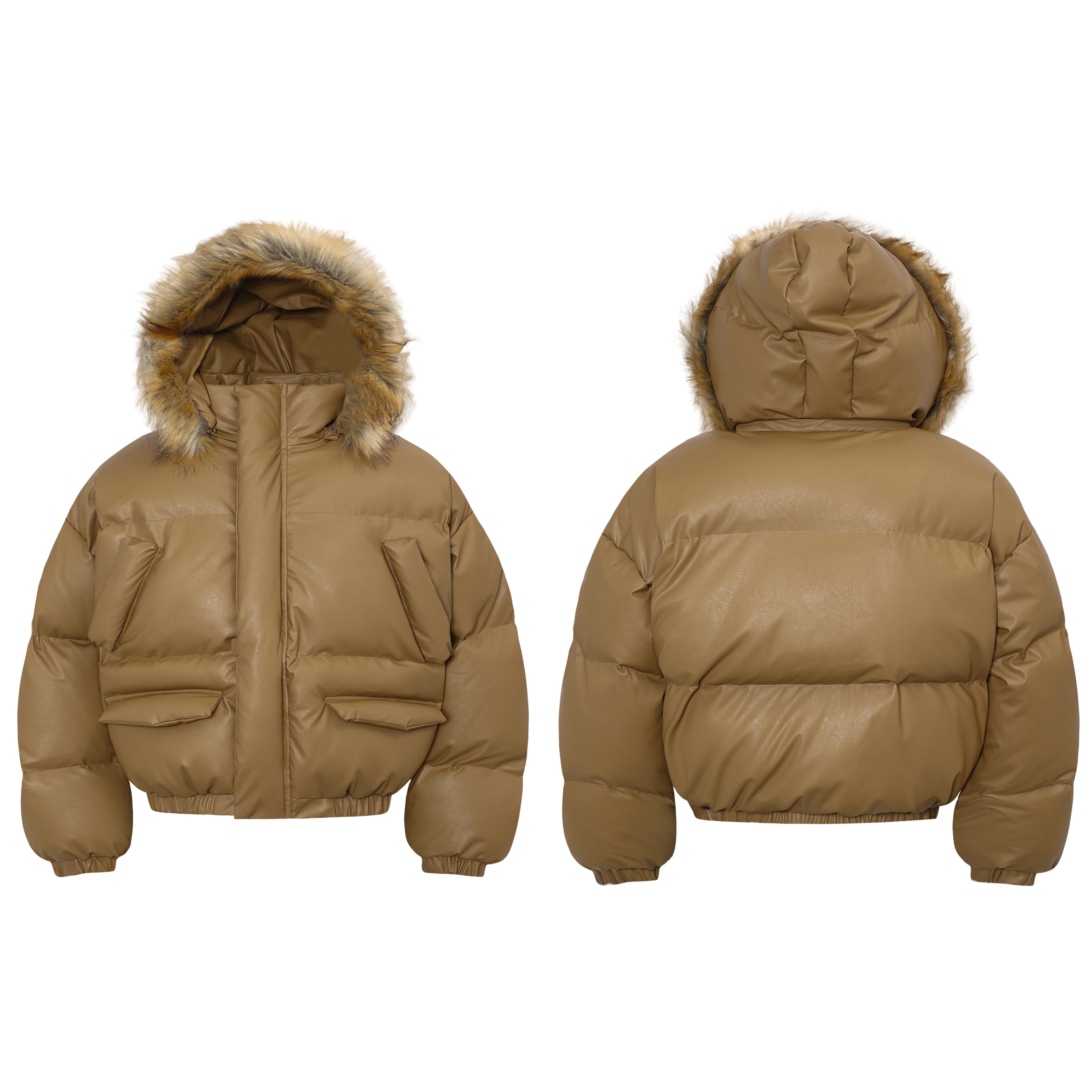 Hooded Fake Fur Plush Padded Jacket WN22191