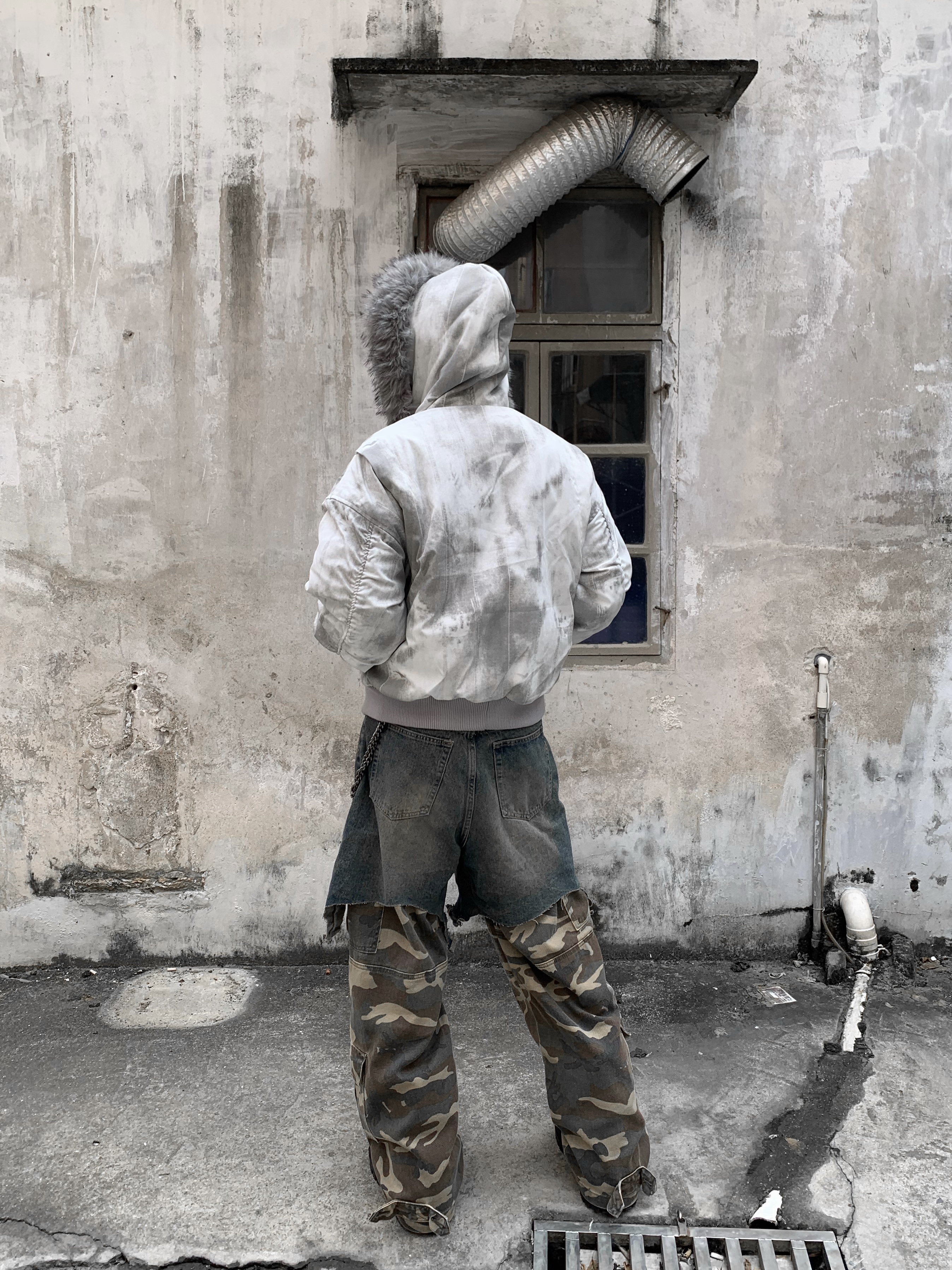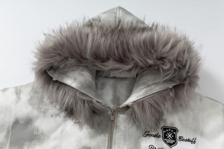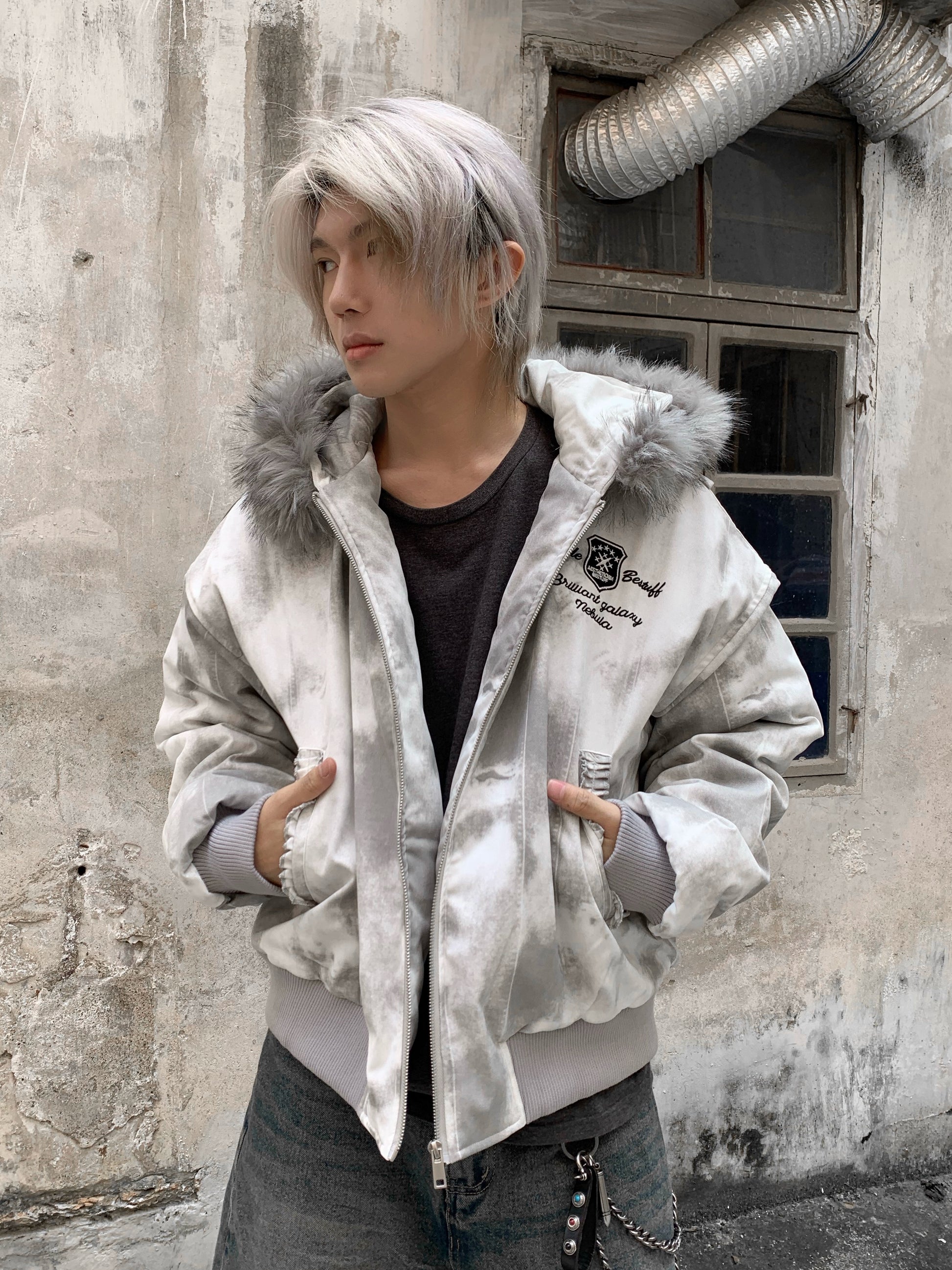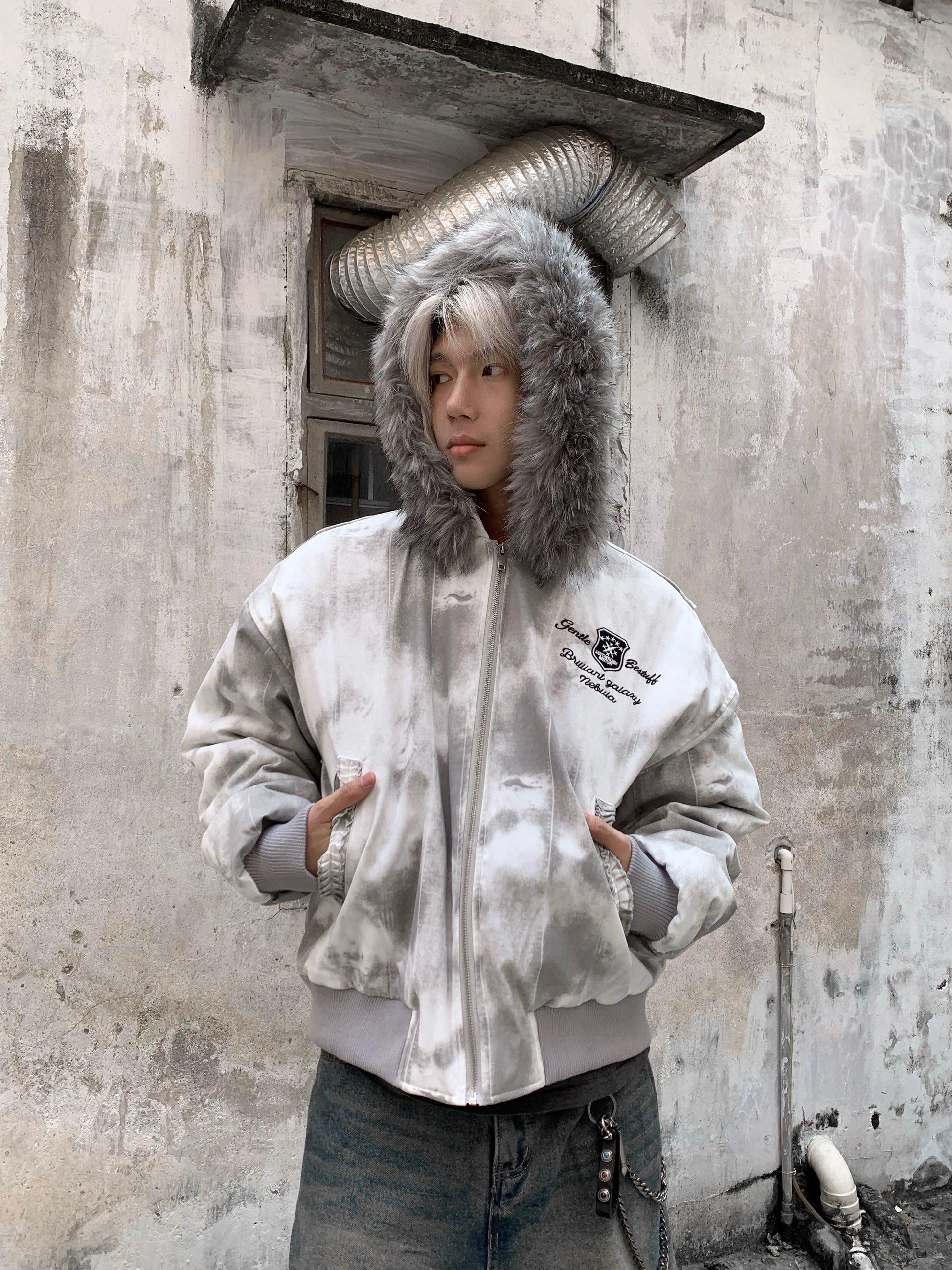 Tie-Dye Fake Fur-Collar Hooded Fleece-Lining Jacket WN22203