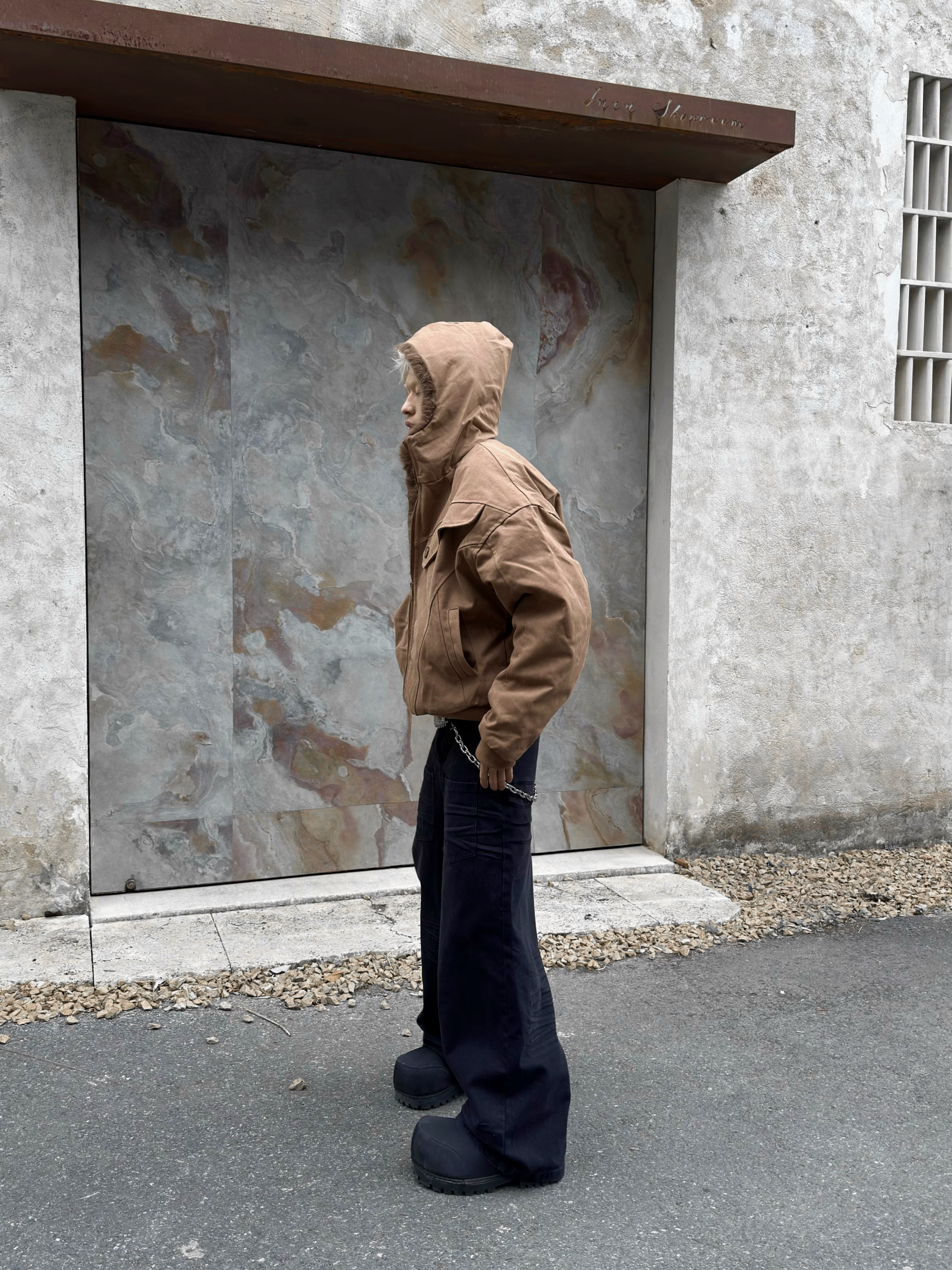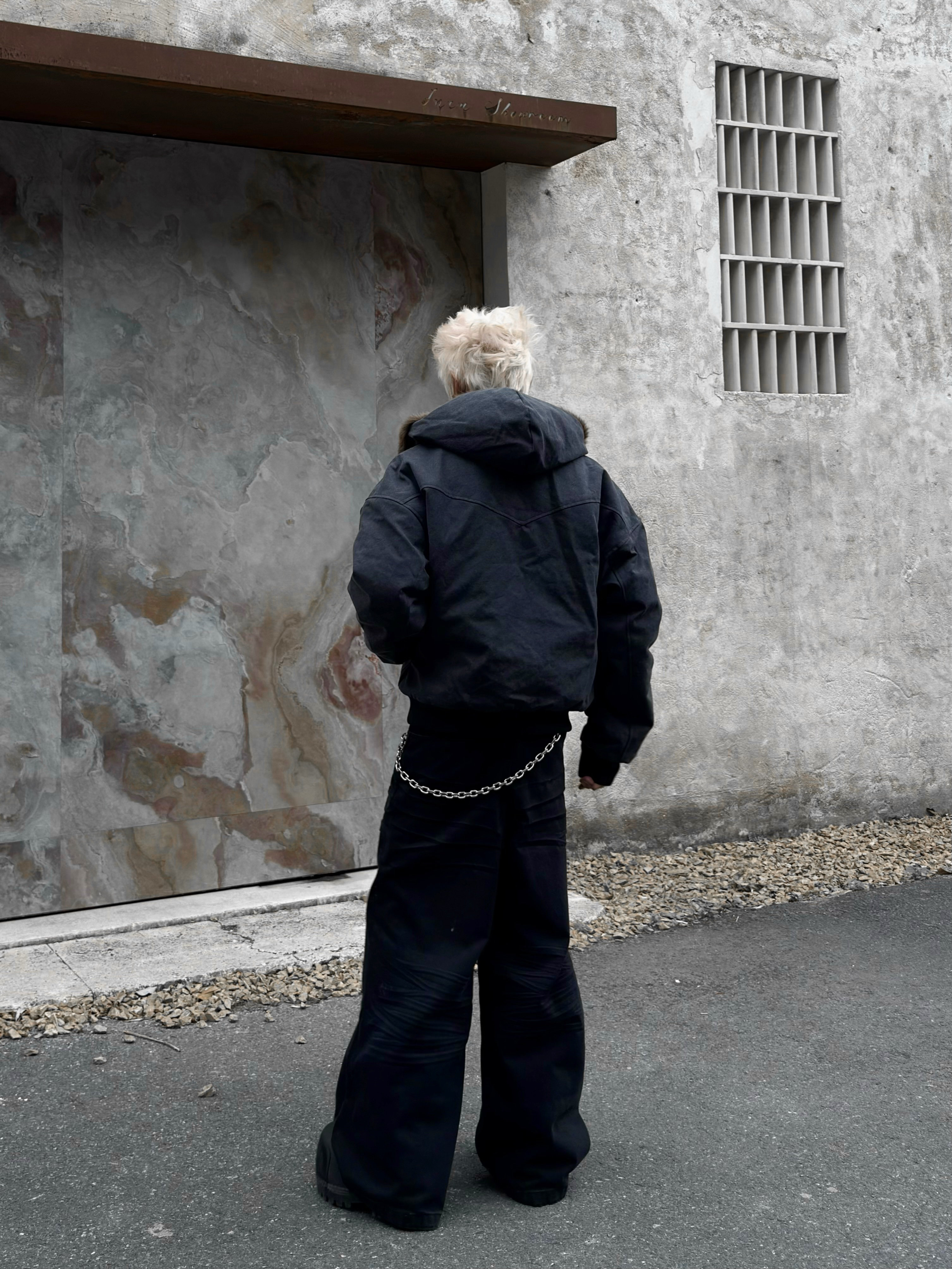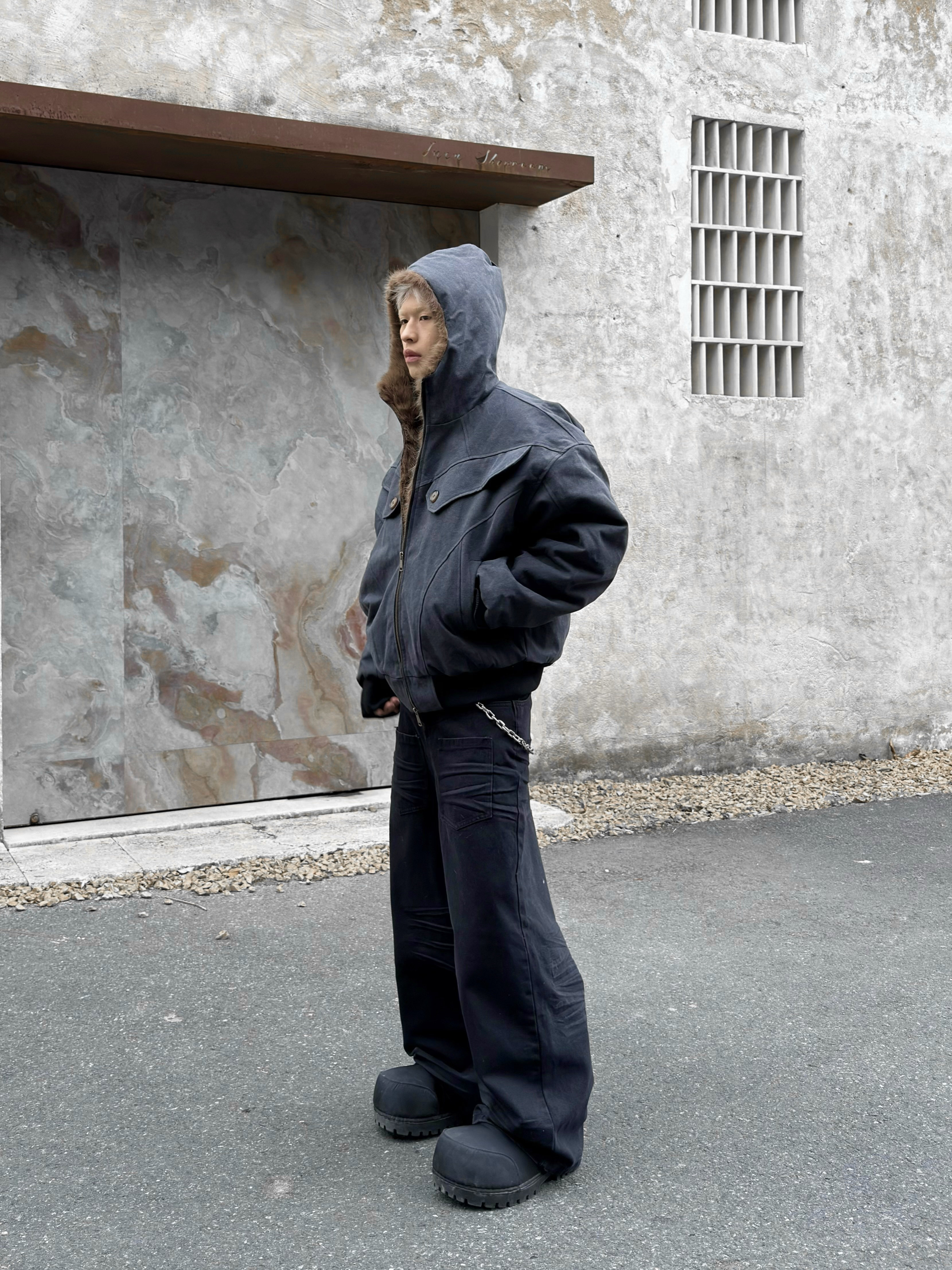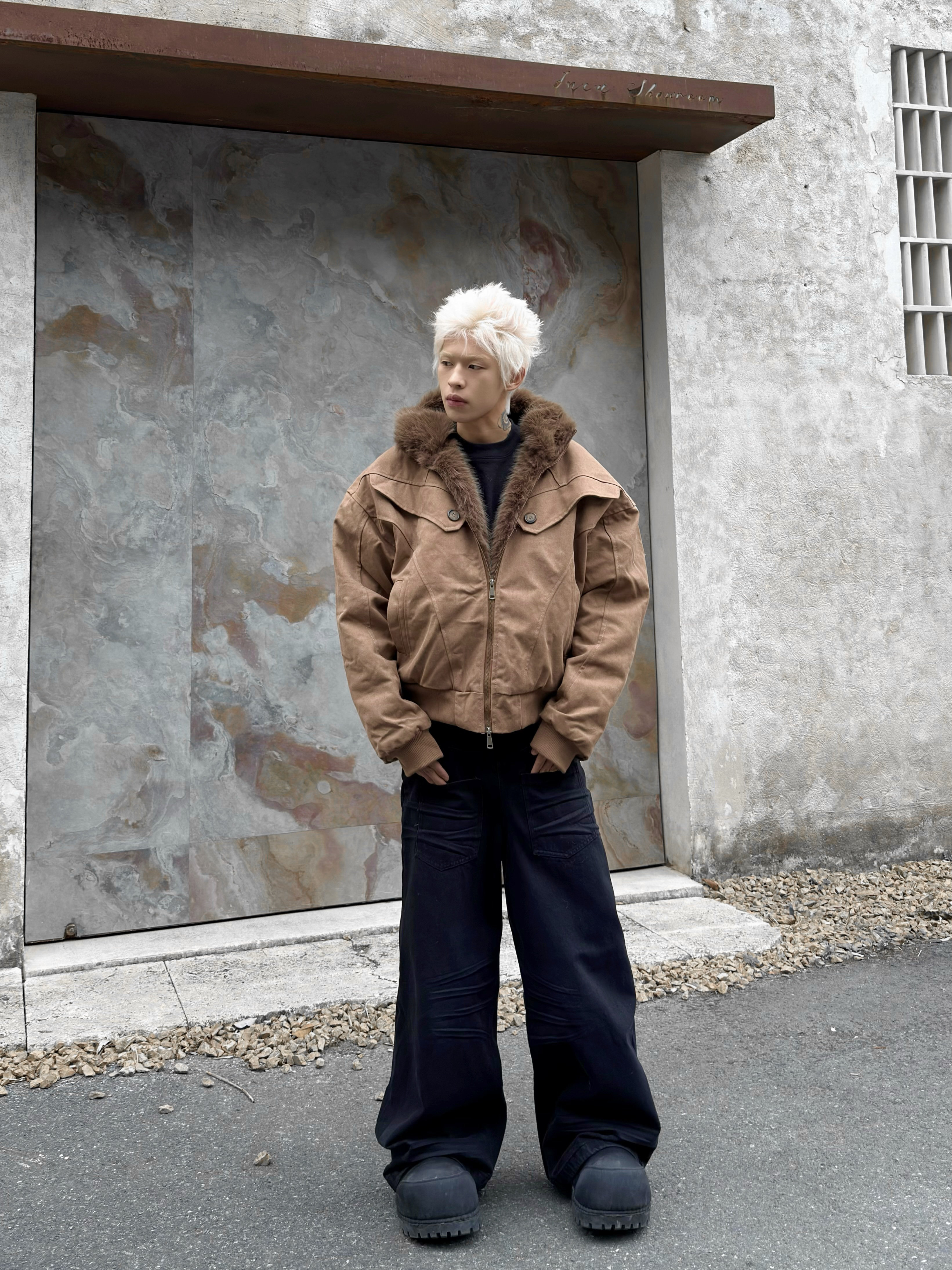 Armored Structured Hooded FakeFur-Collar Short Jacket WN22211