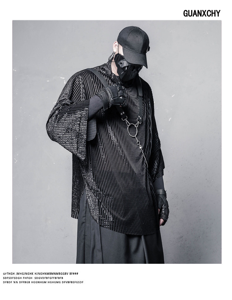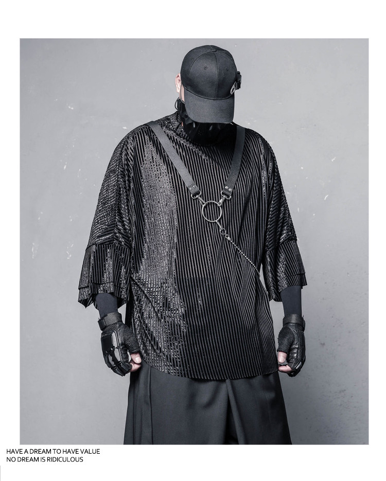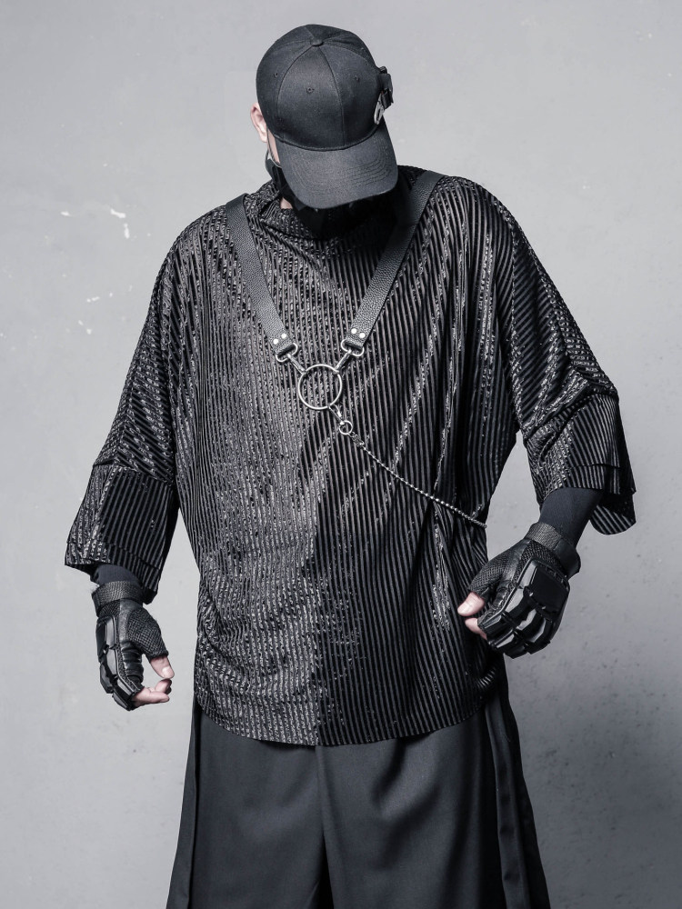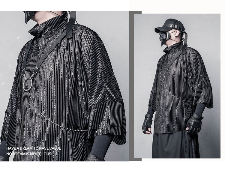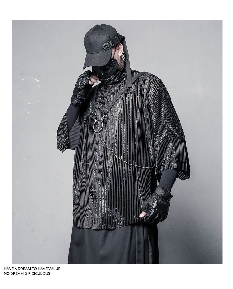 Texture High-Neck Oversize Long Sleeve T-Shirt & Chain WN22370