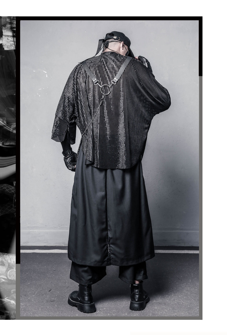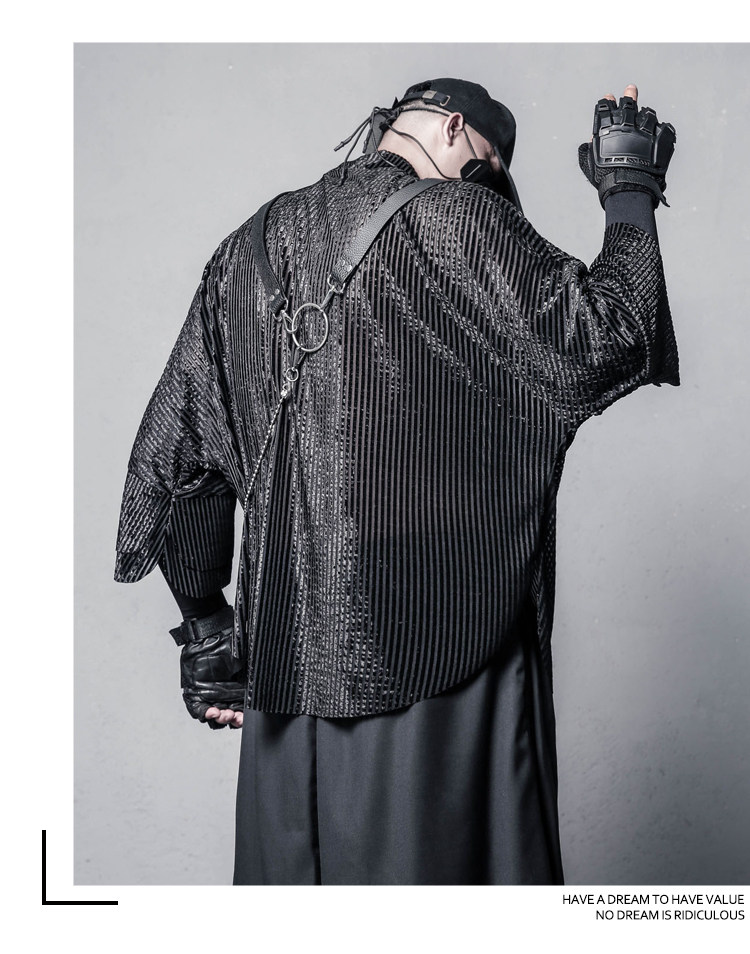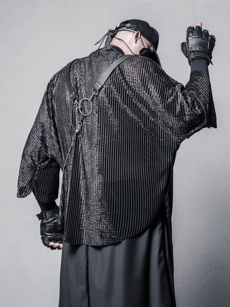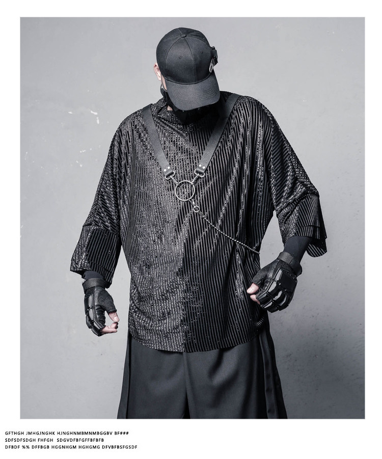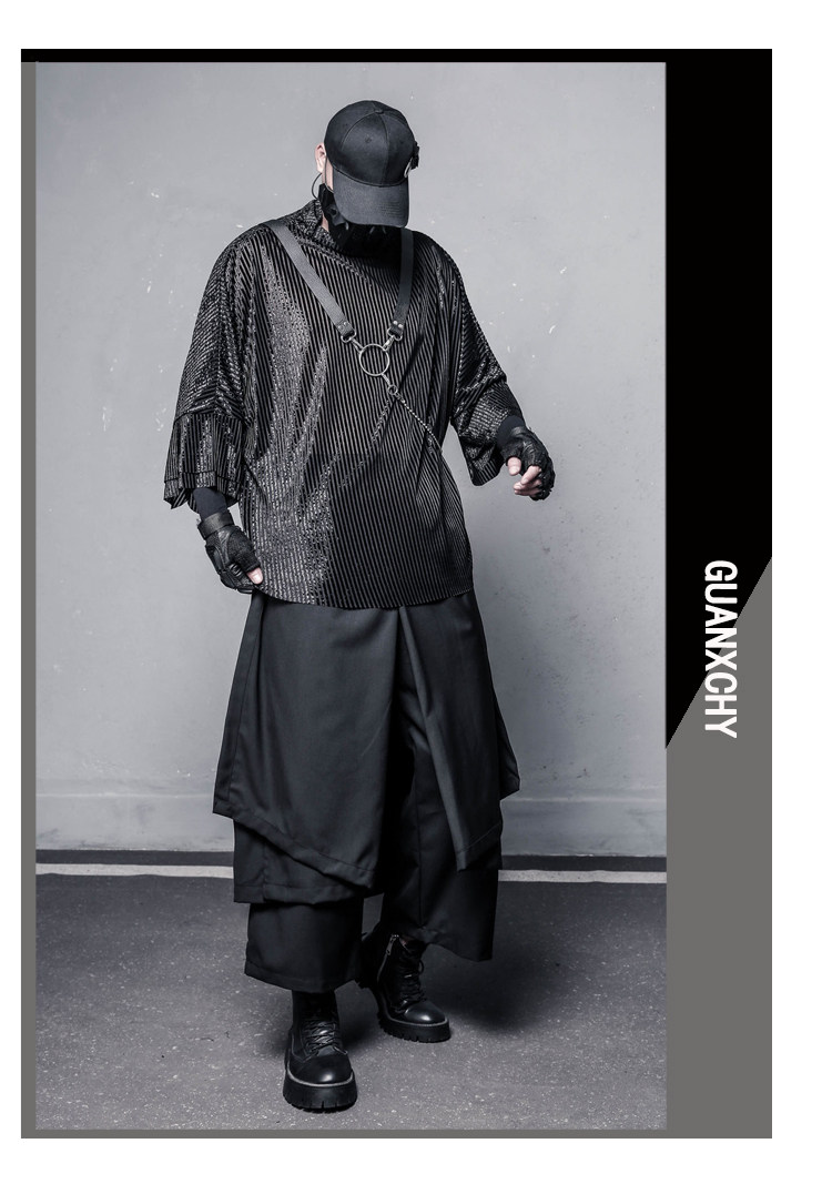 Texture High-Neck Oversize Long Sleeve T-Shirt & Chain WN22370