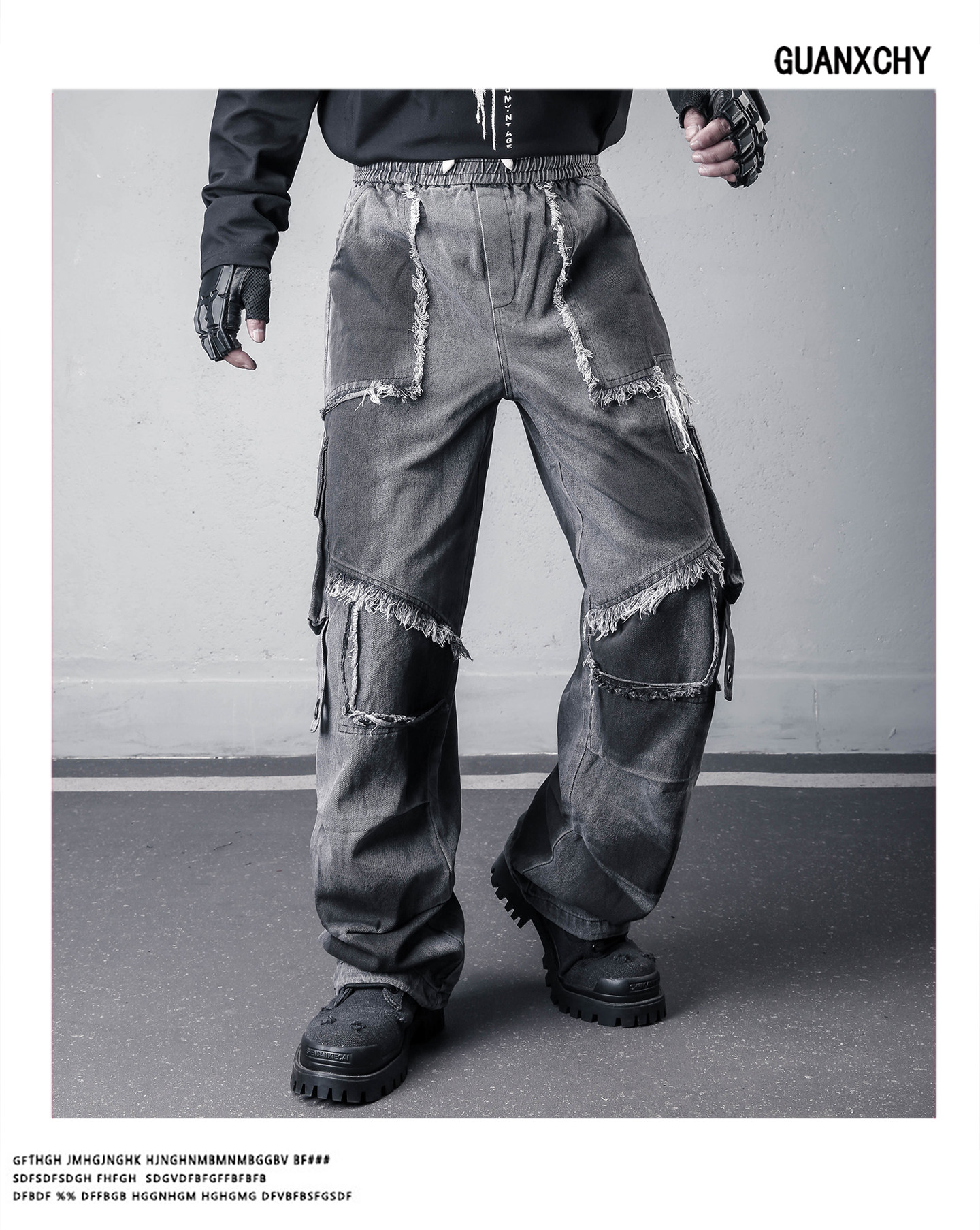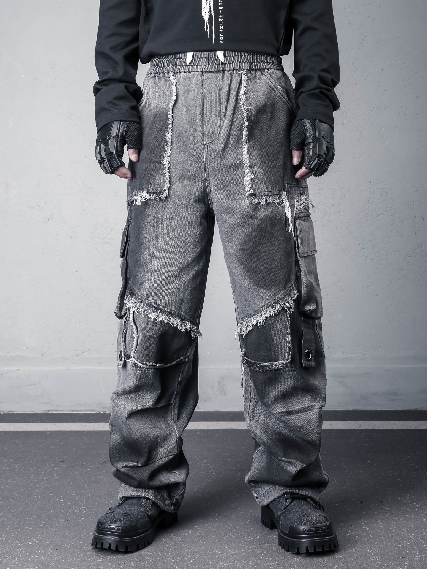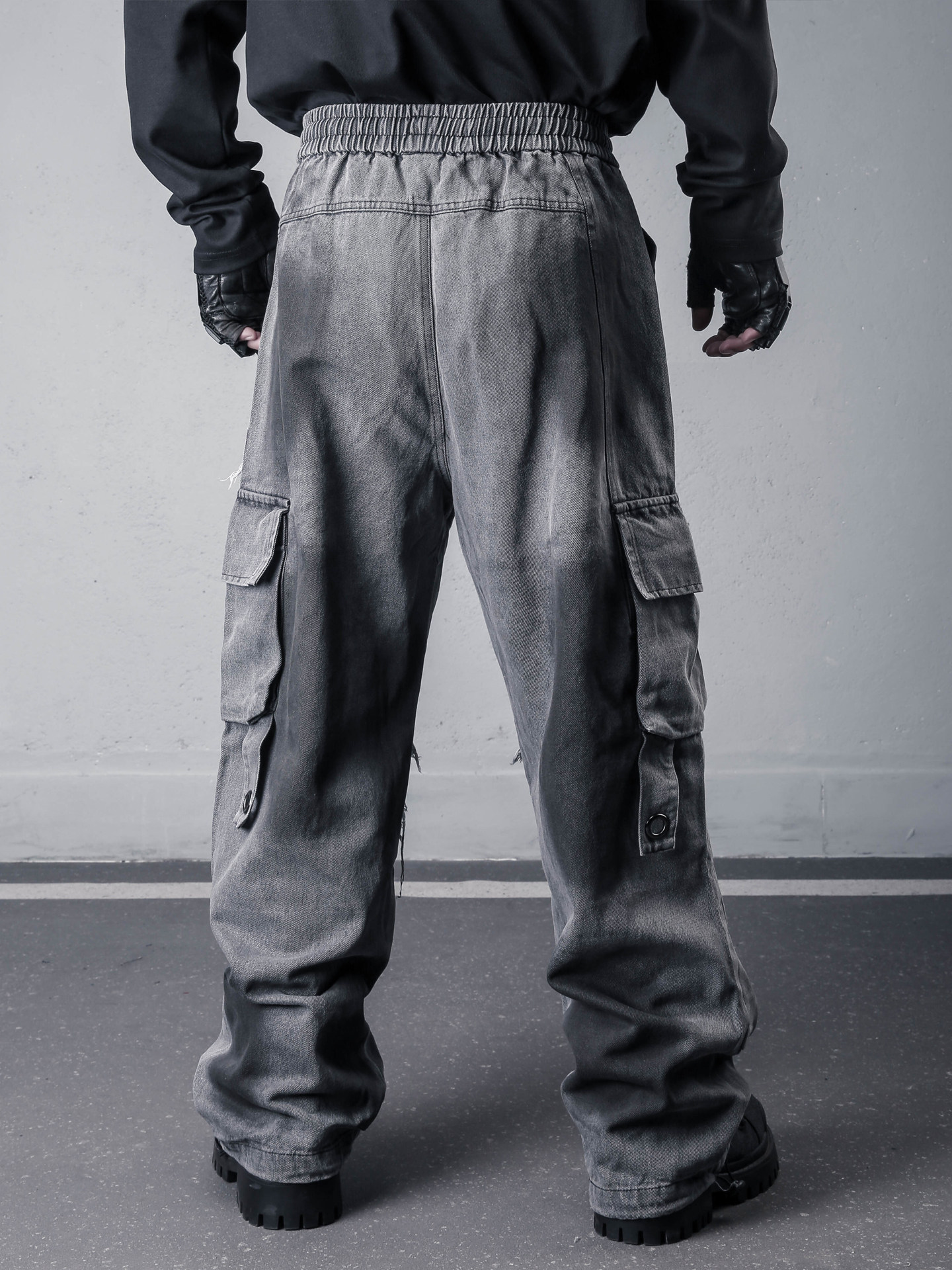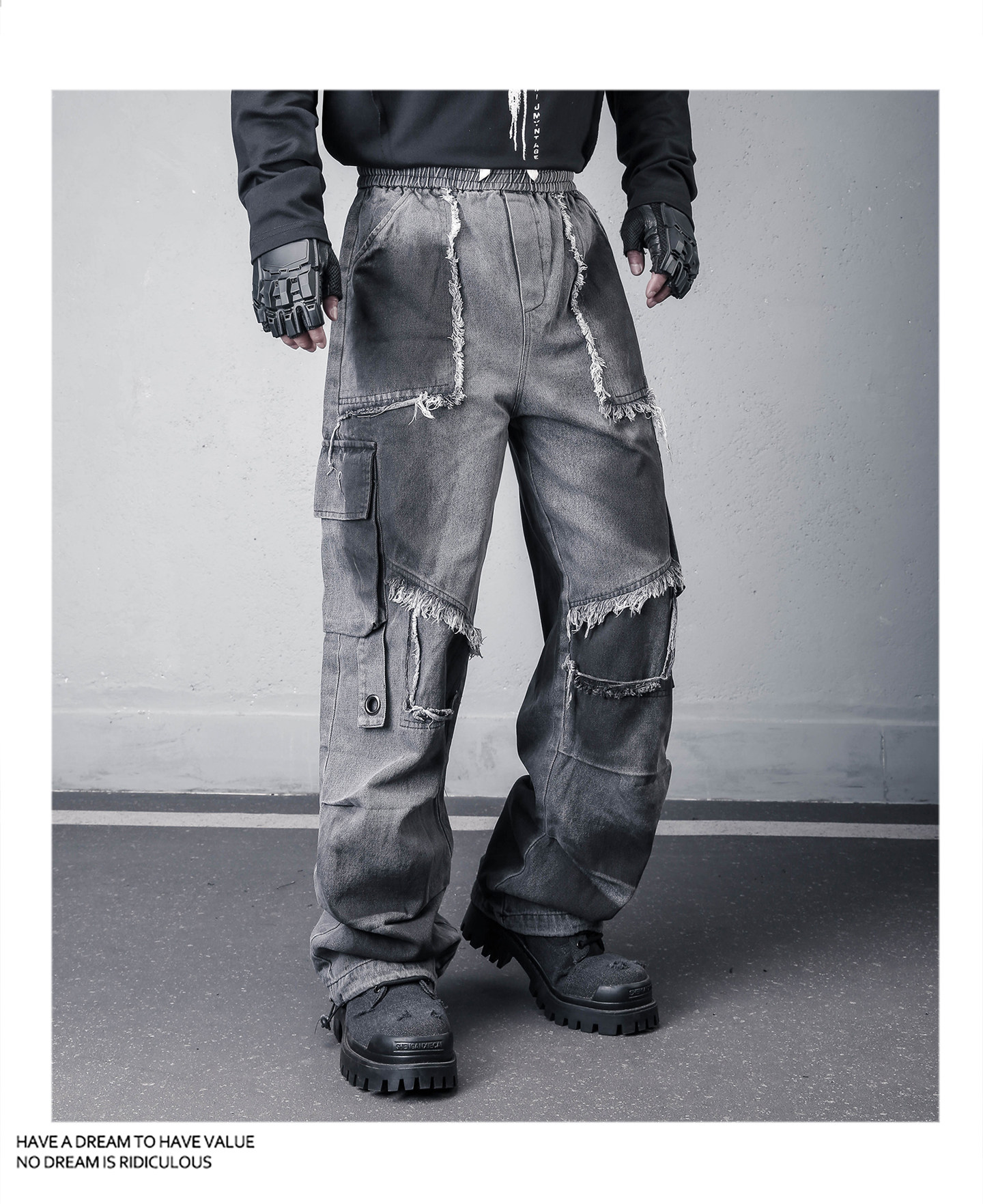 Tactical Mix Graphic Tie-Dye Wide Leg Denim Jeans WN22476