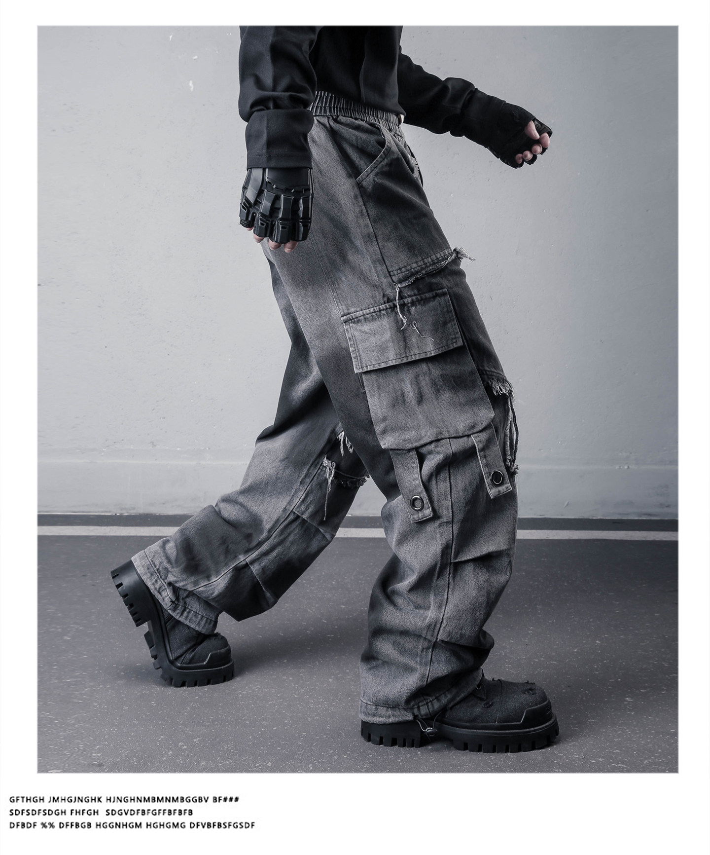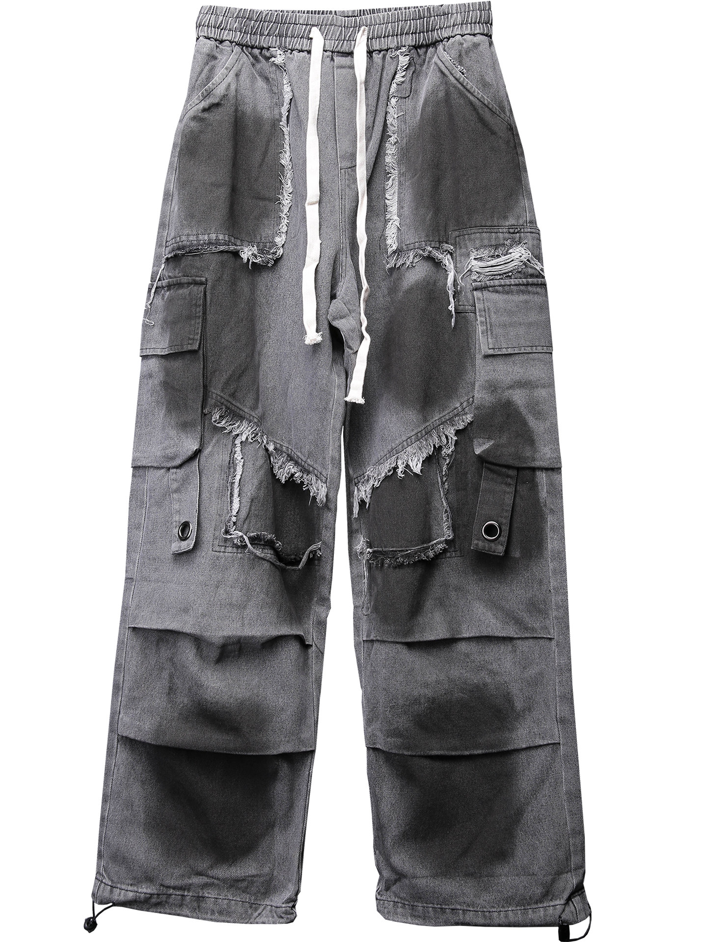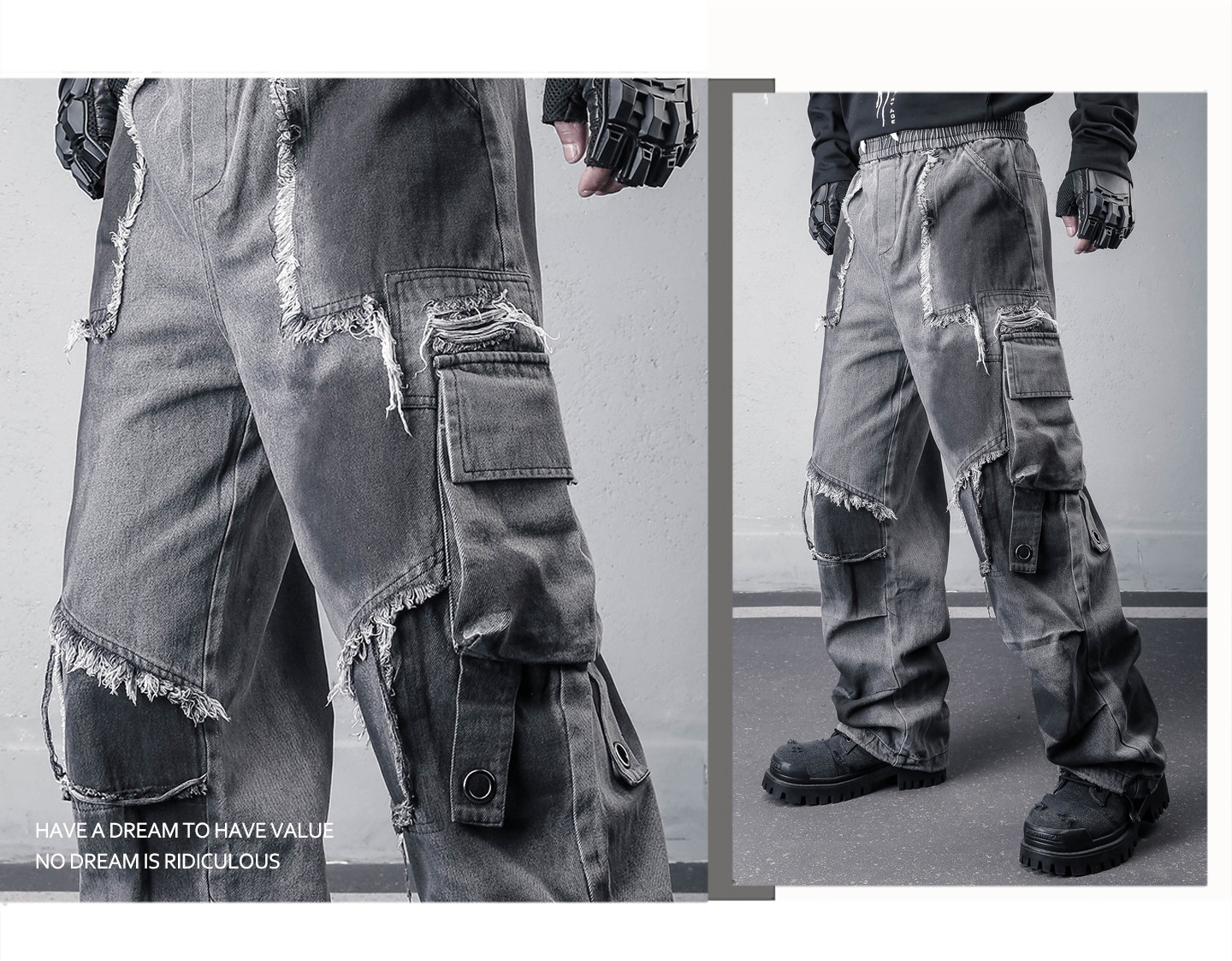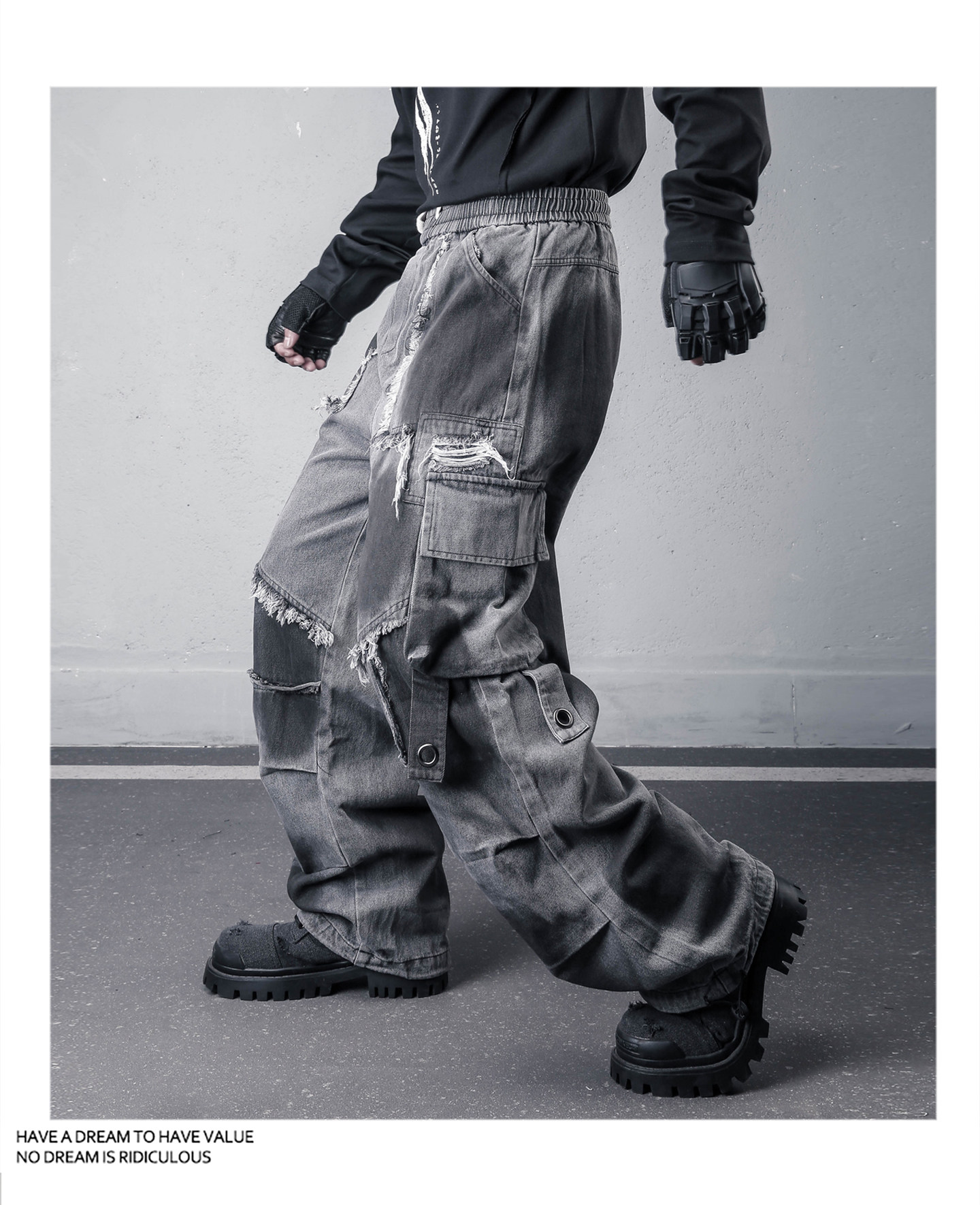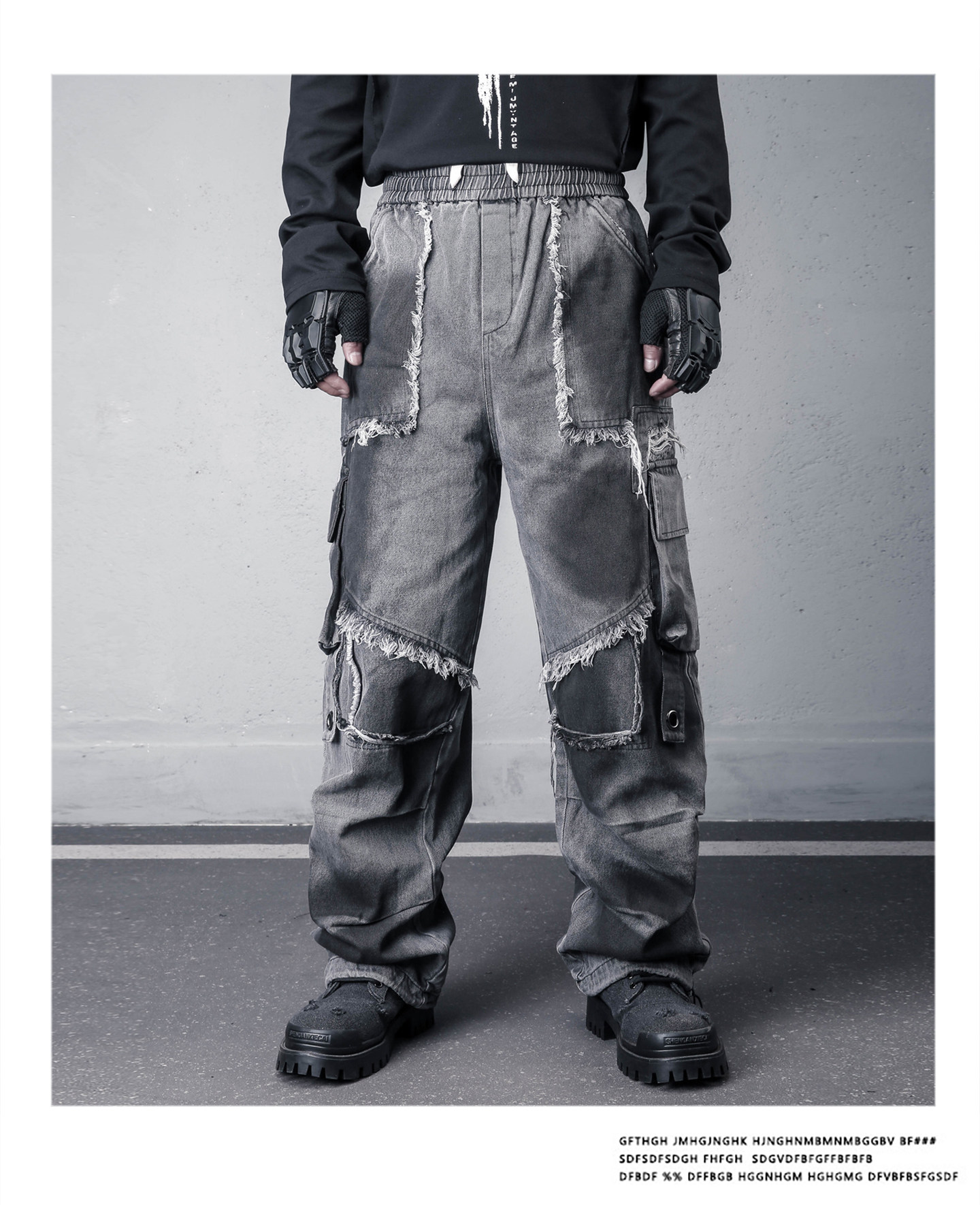 Tactical Mix Graphic Tie-Dye Wide Leg Denim Jeans WN22476