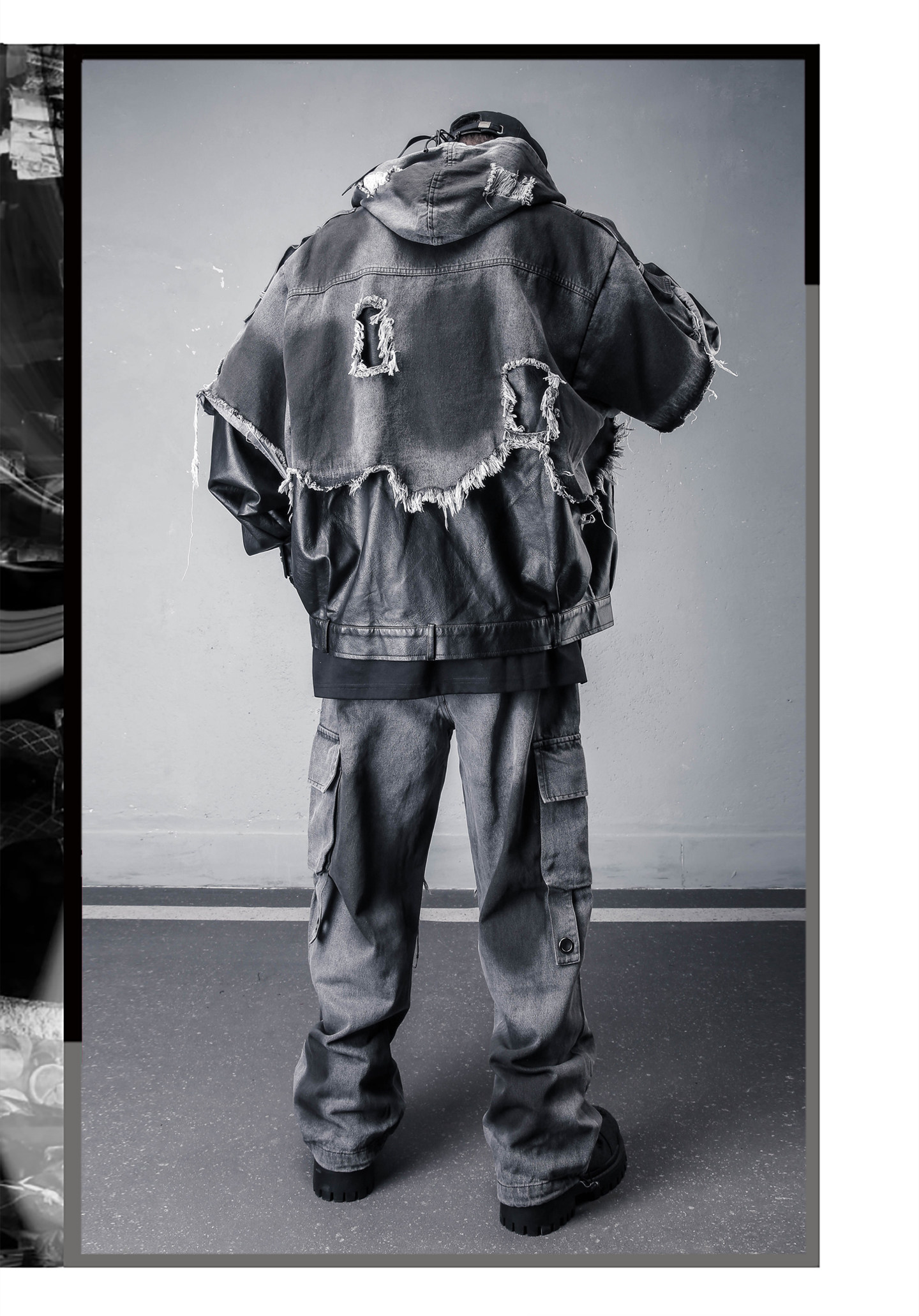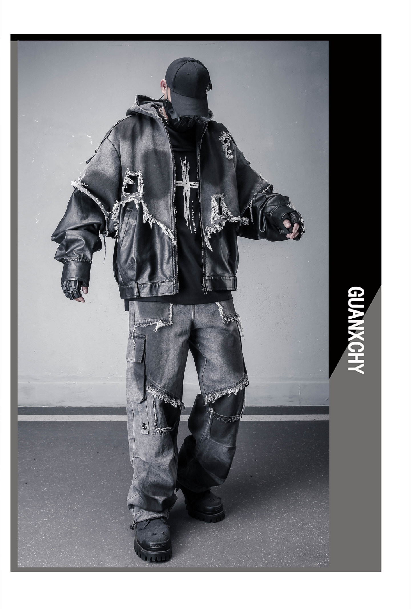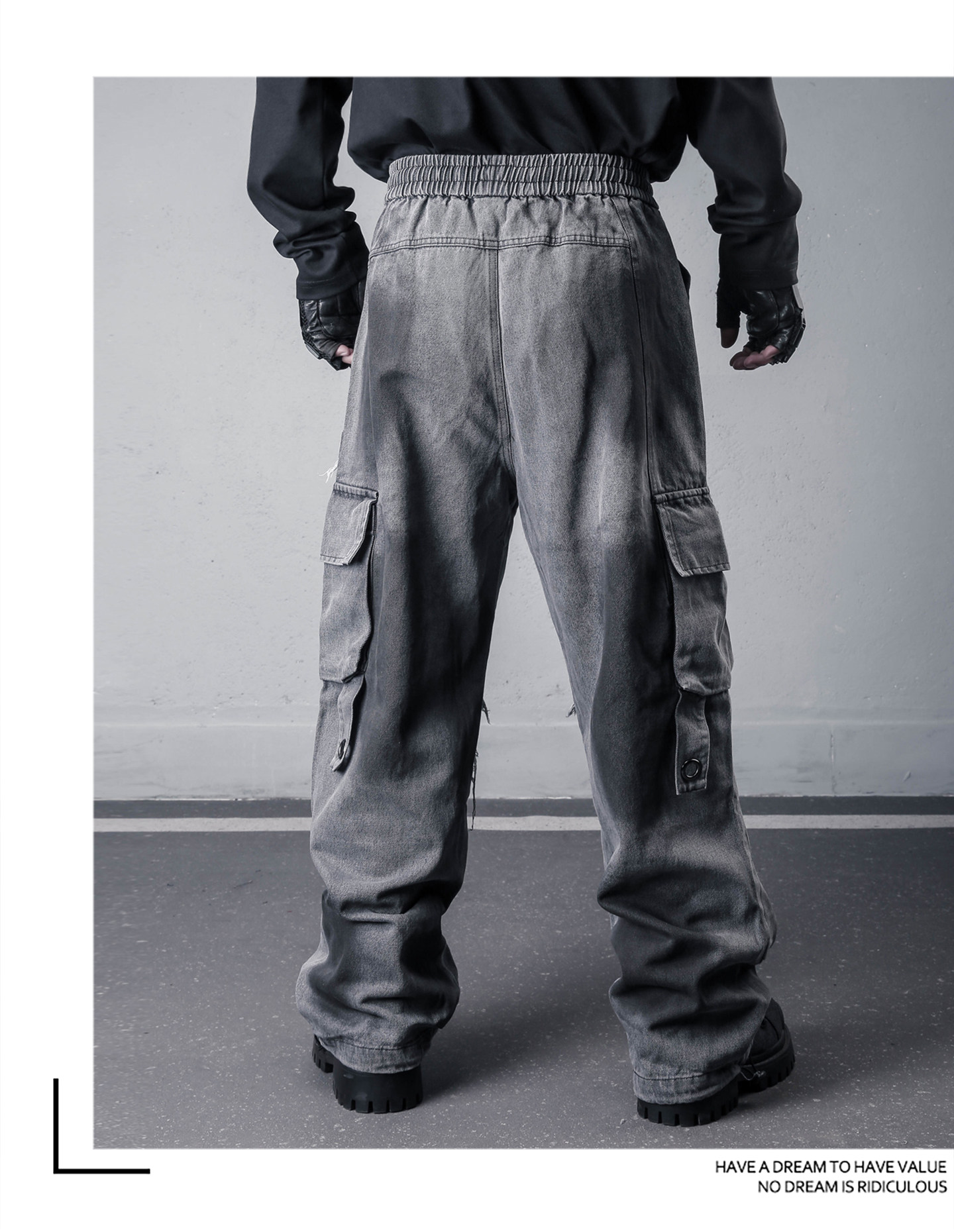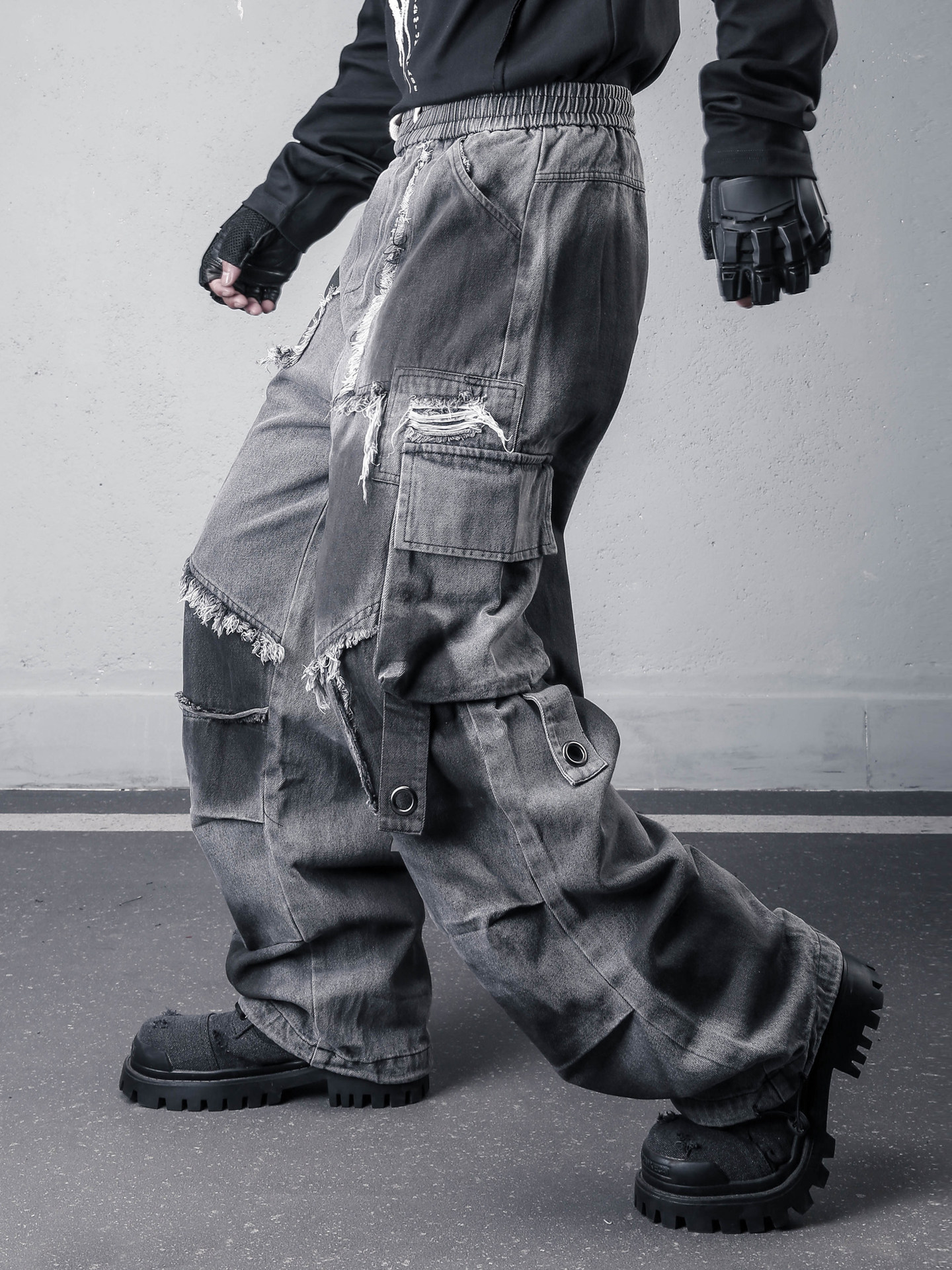 Tactical Mix Graphic Tie-Dye Wide Leg Denim Jeans WN22476