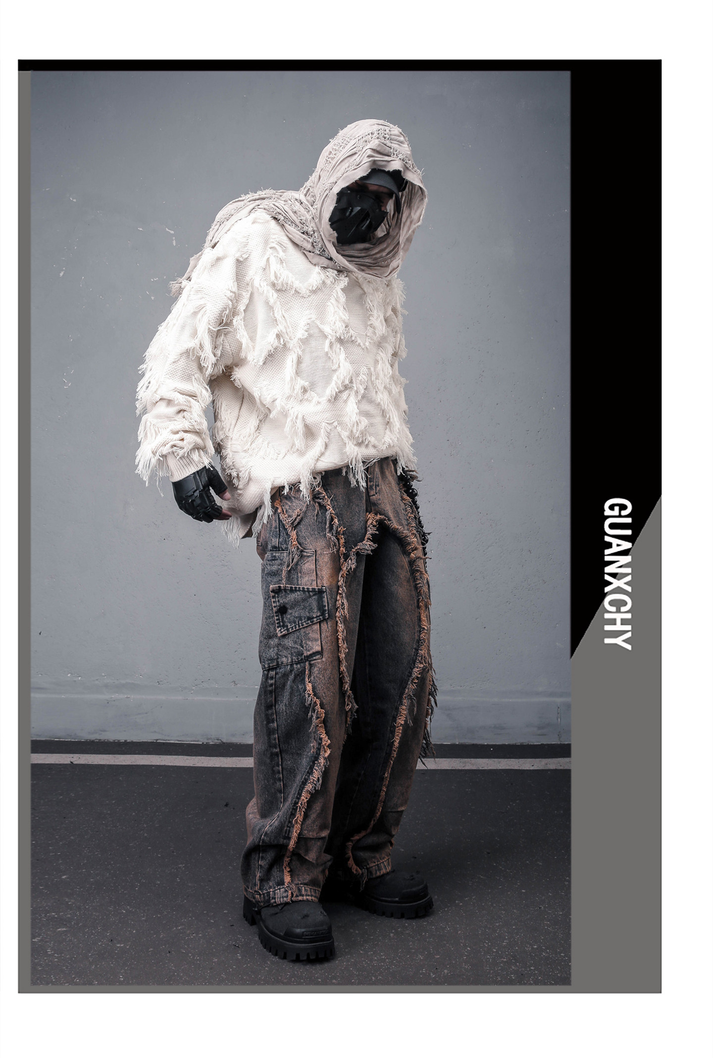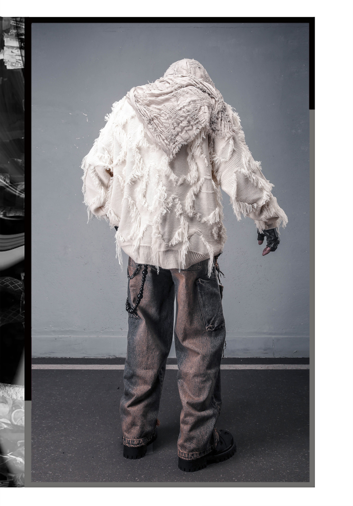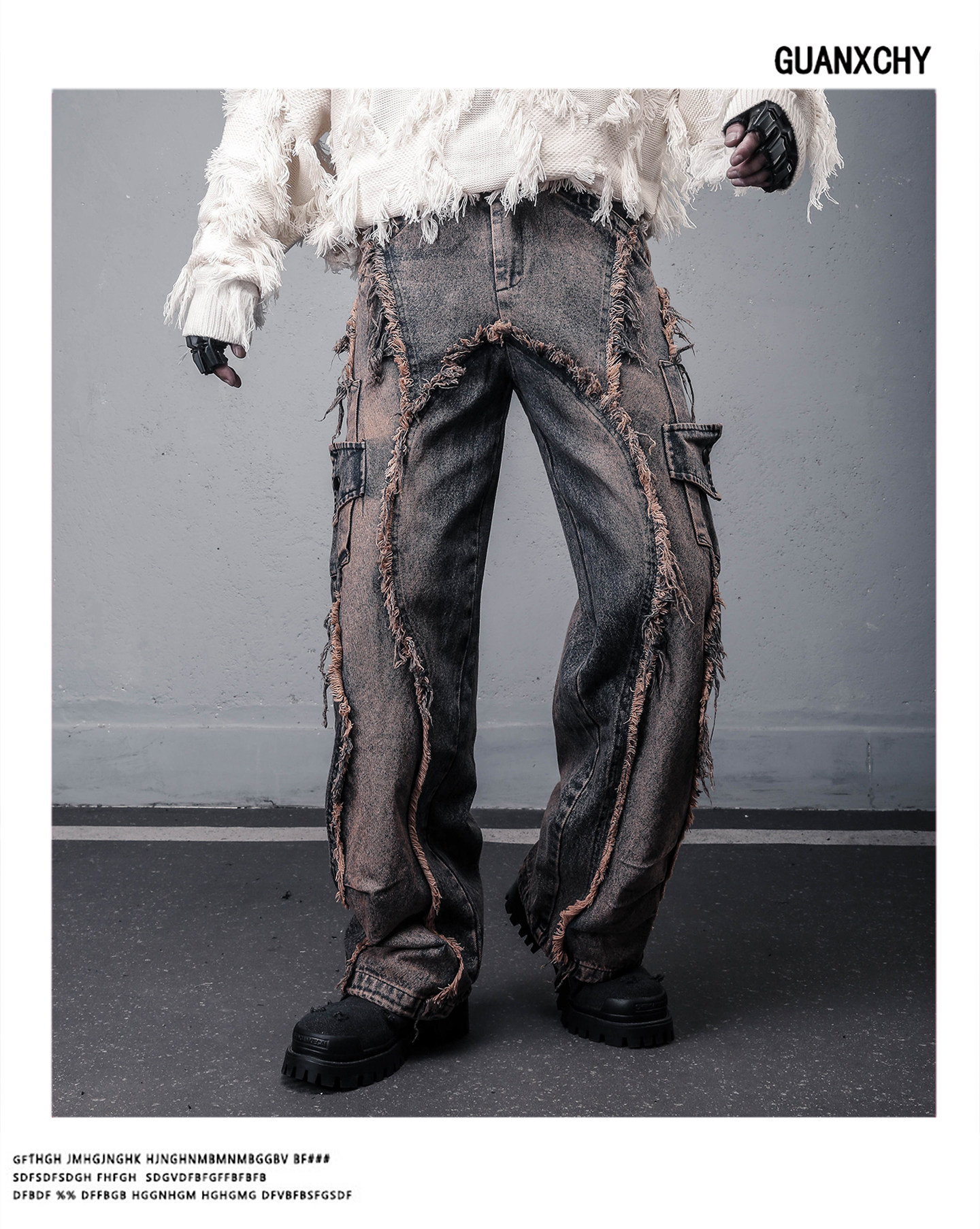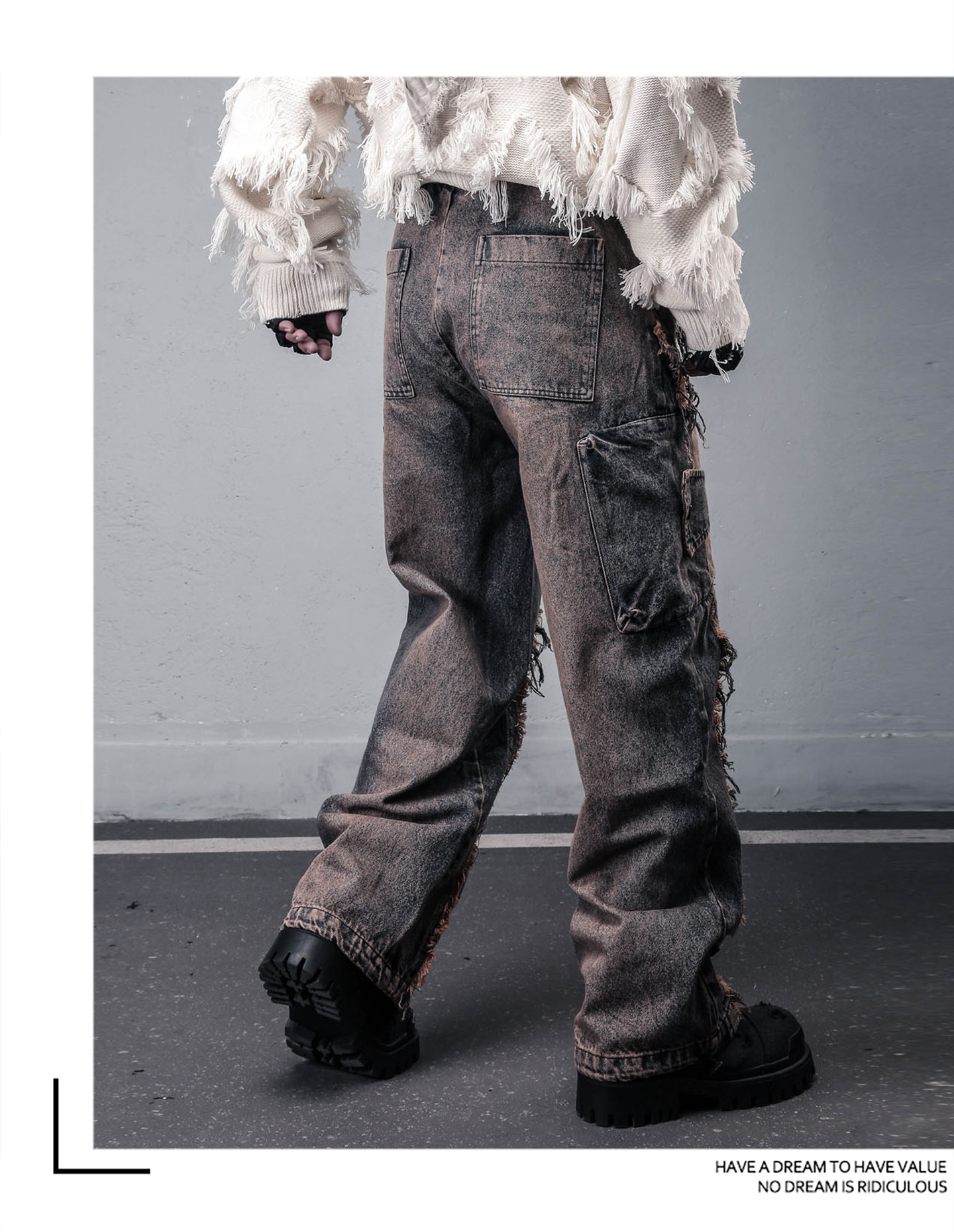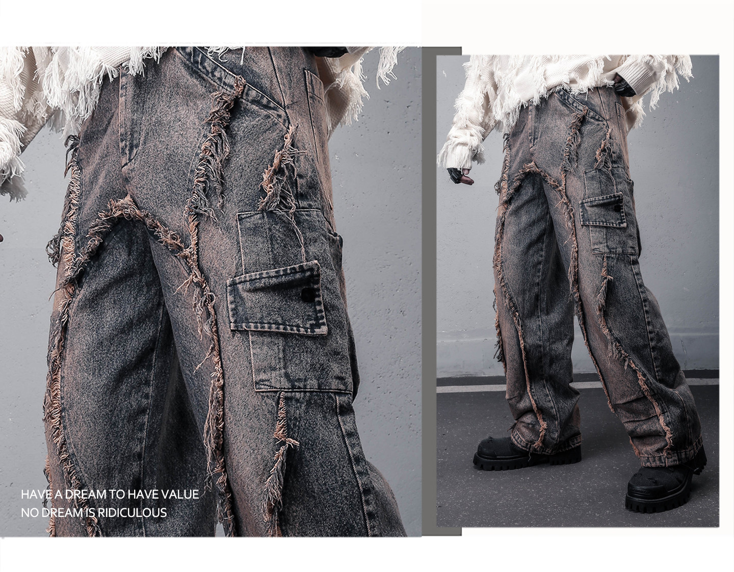 Damage Wash Mix Fringe Wide Leg Denim Jeans WN22503