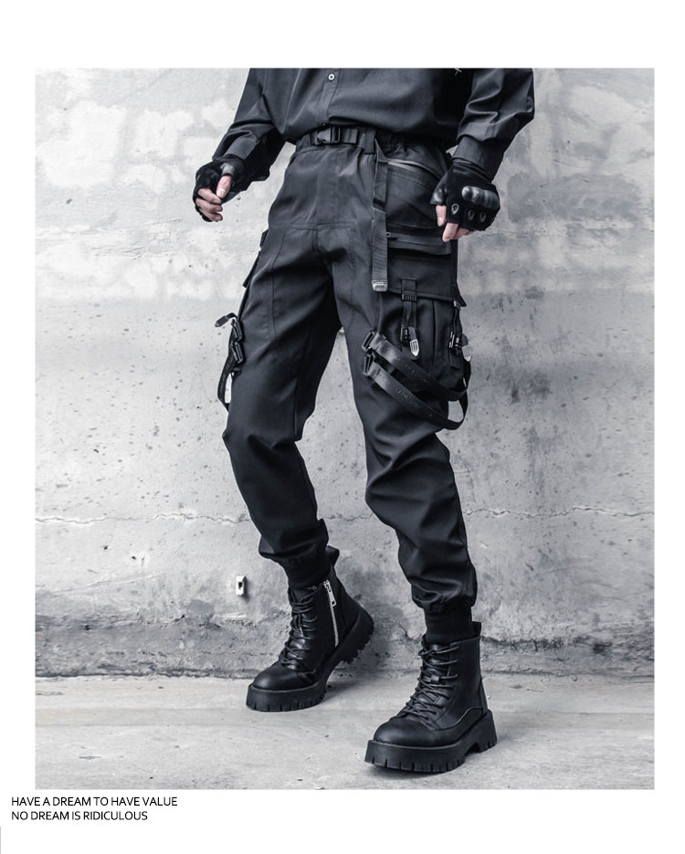 Tactical Ribbon Strap Cuffed Cargo Pants WN22504