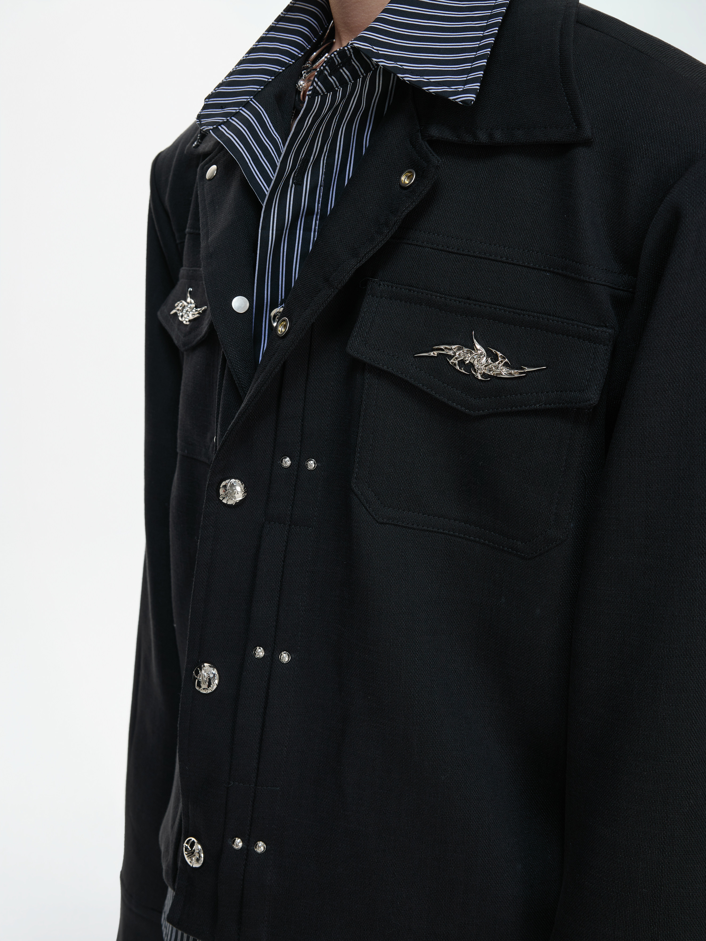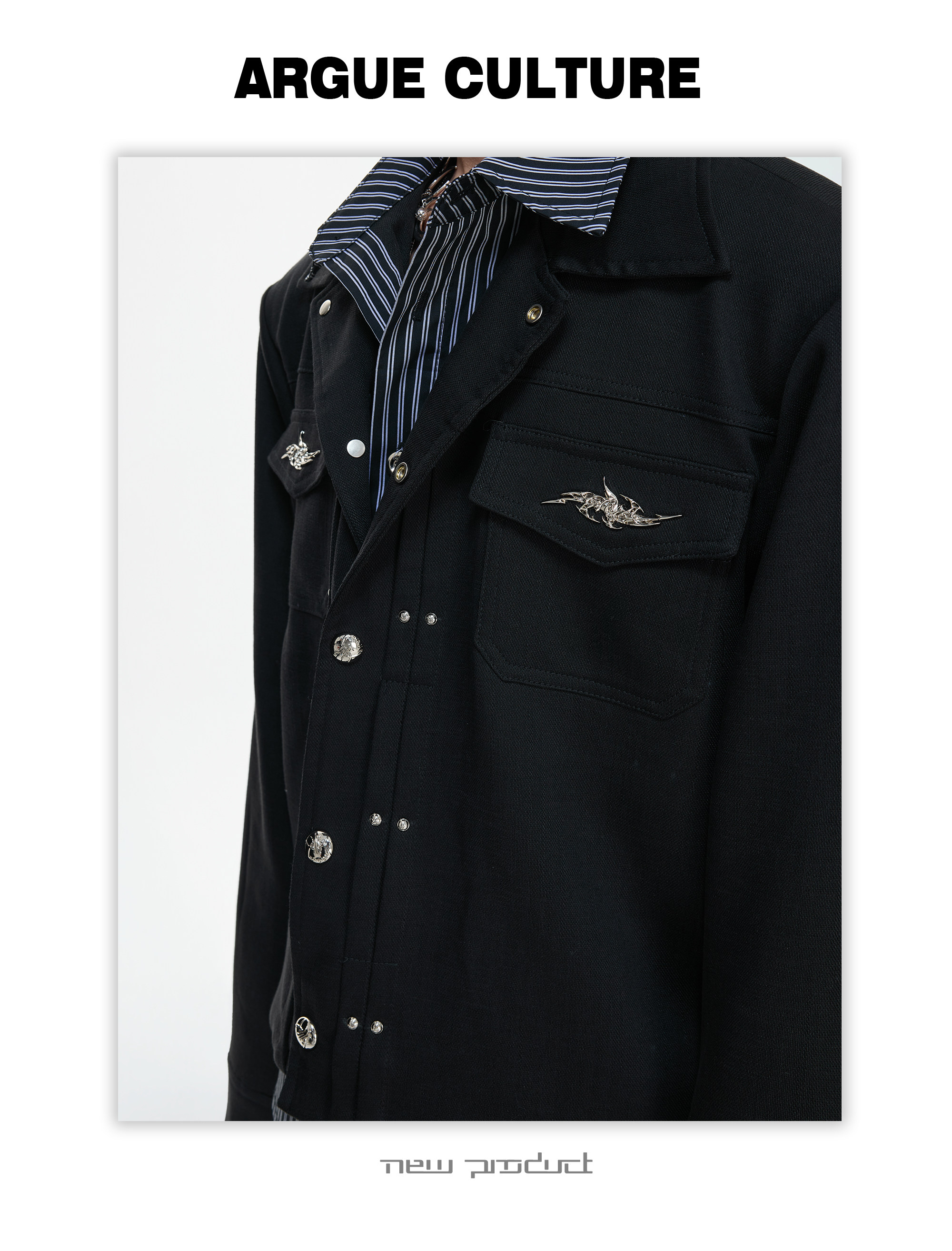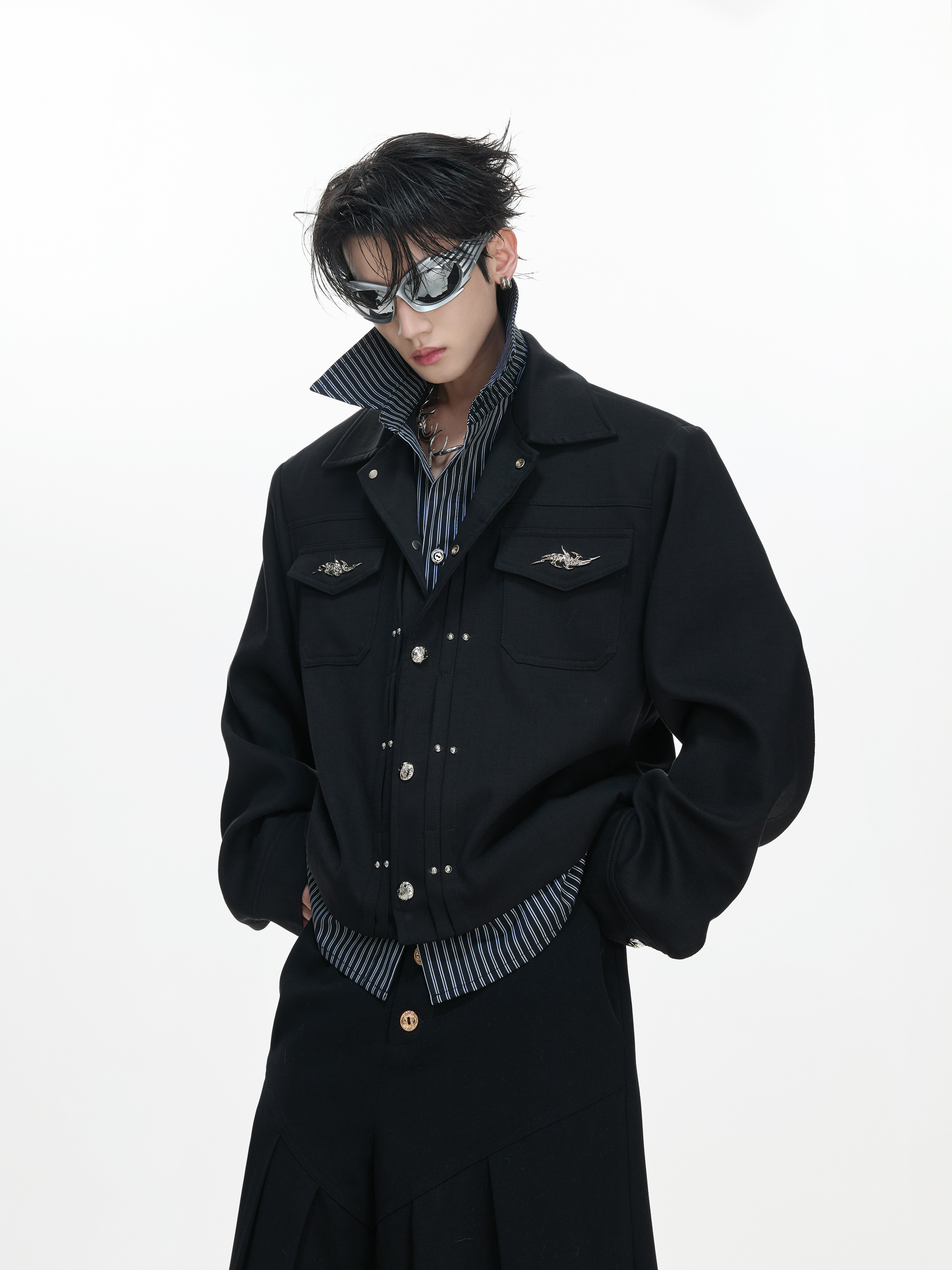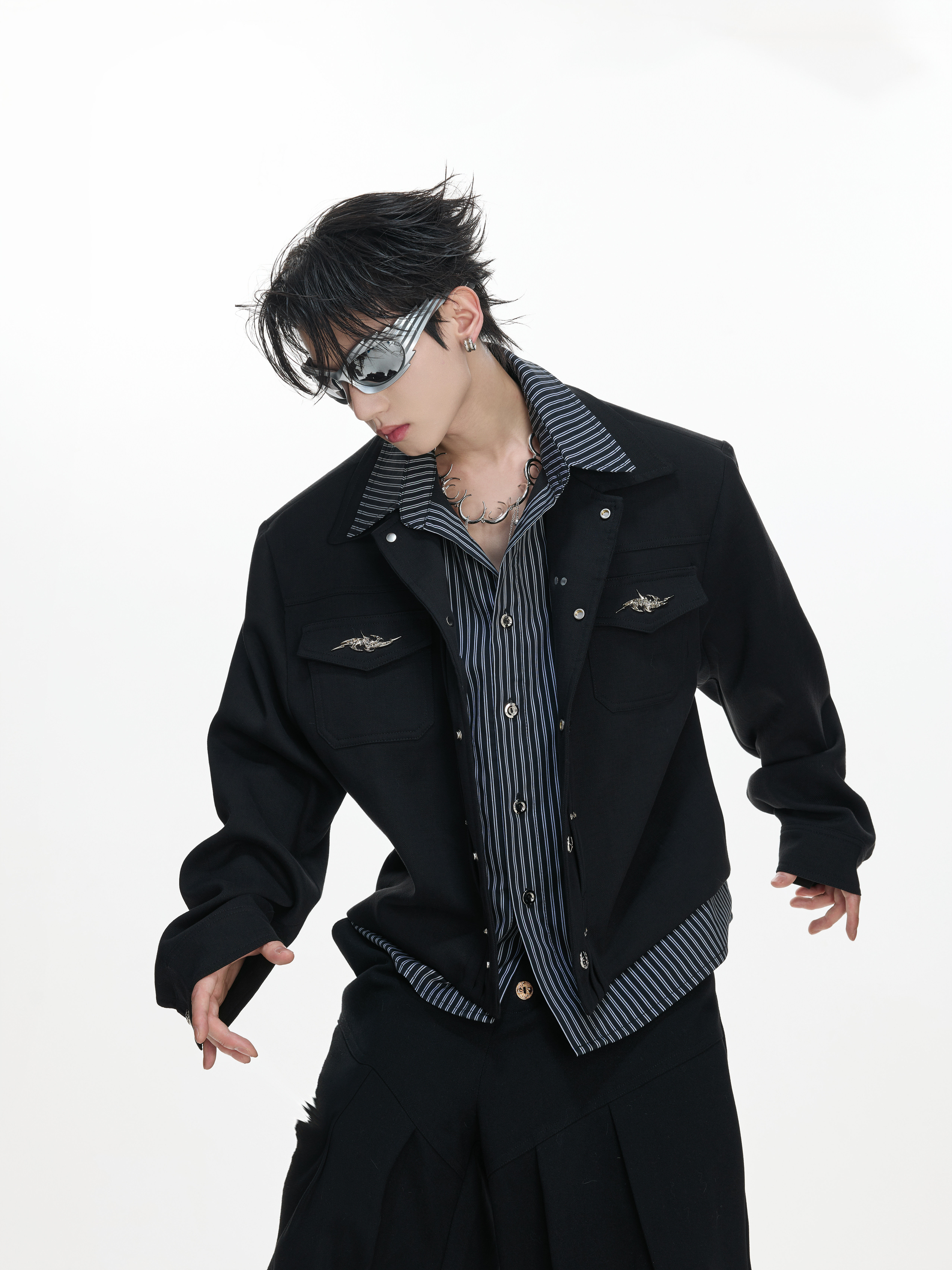 Stripe Fake Layered Metal Button Short Jacket WN23308