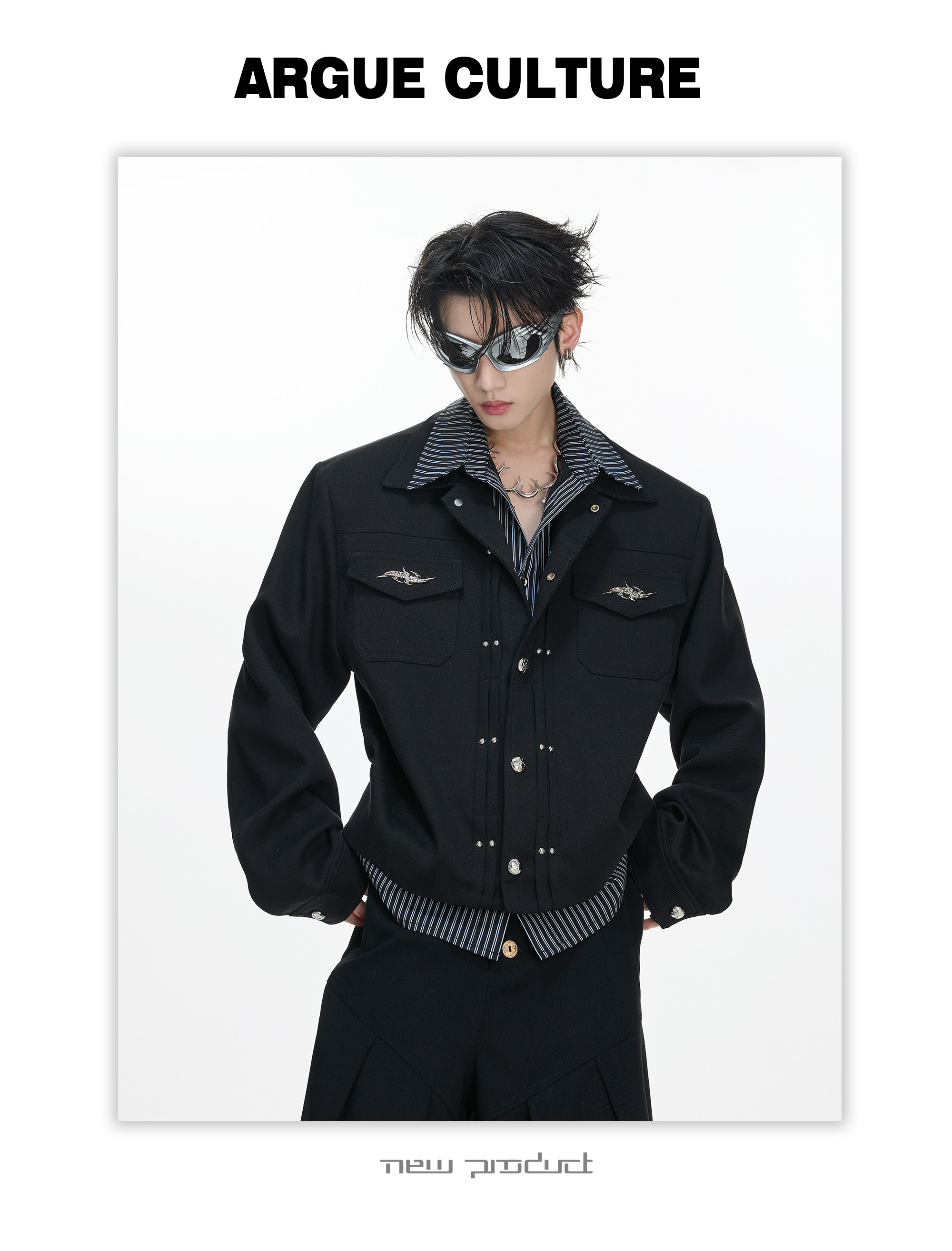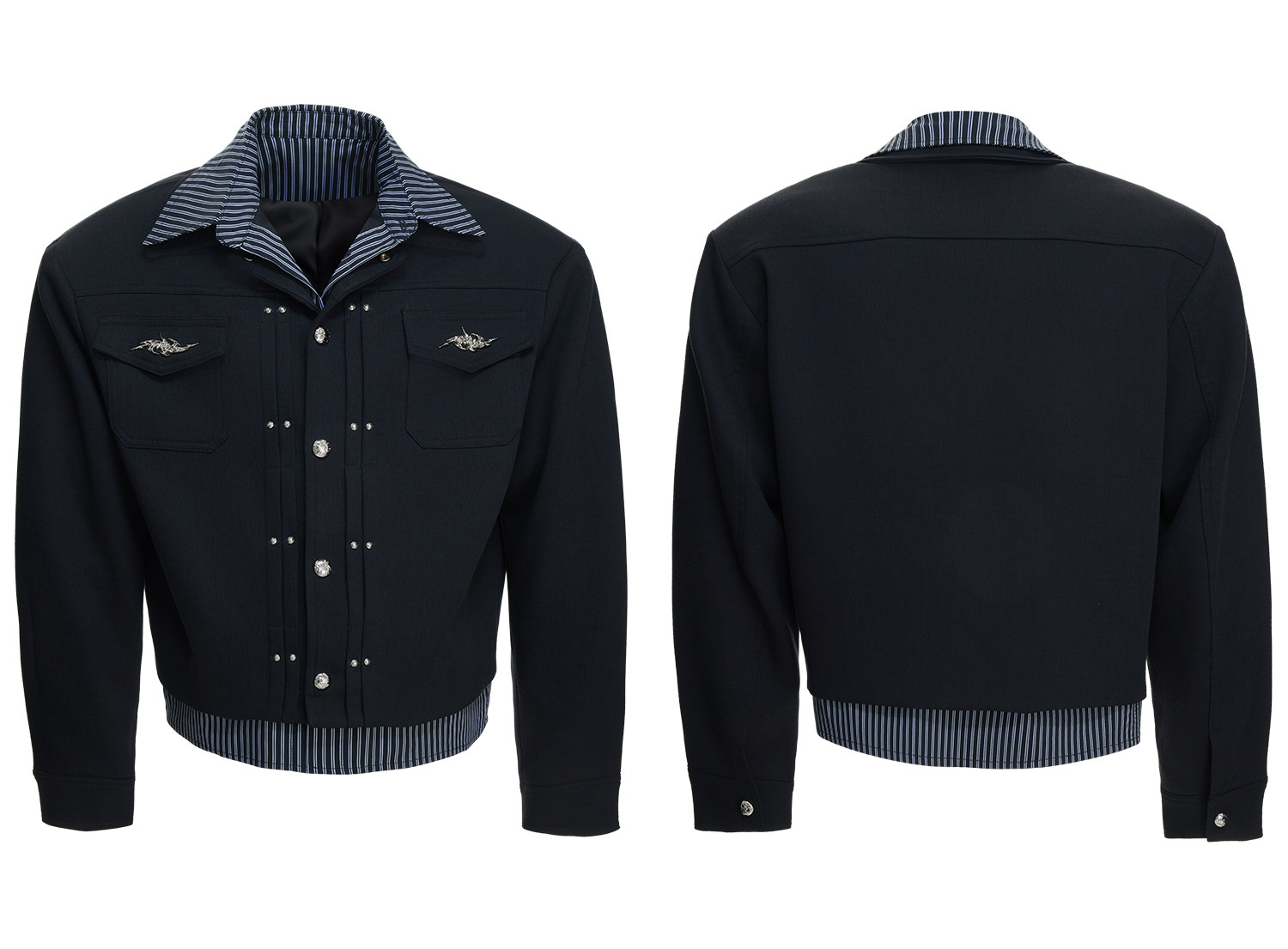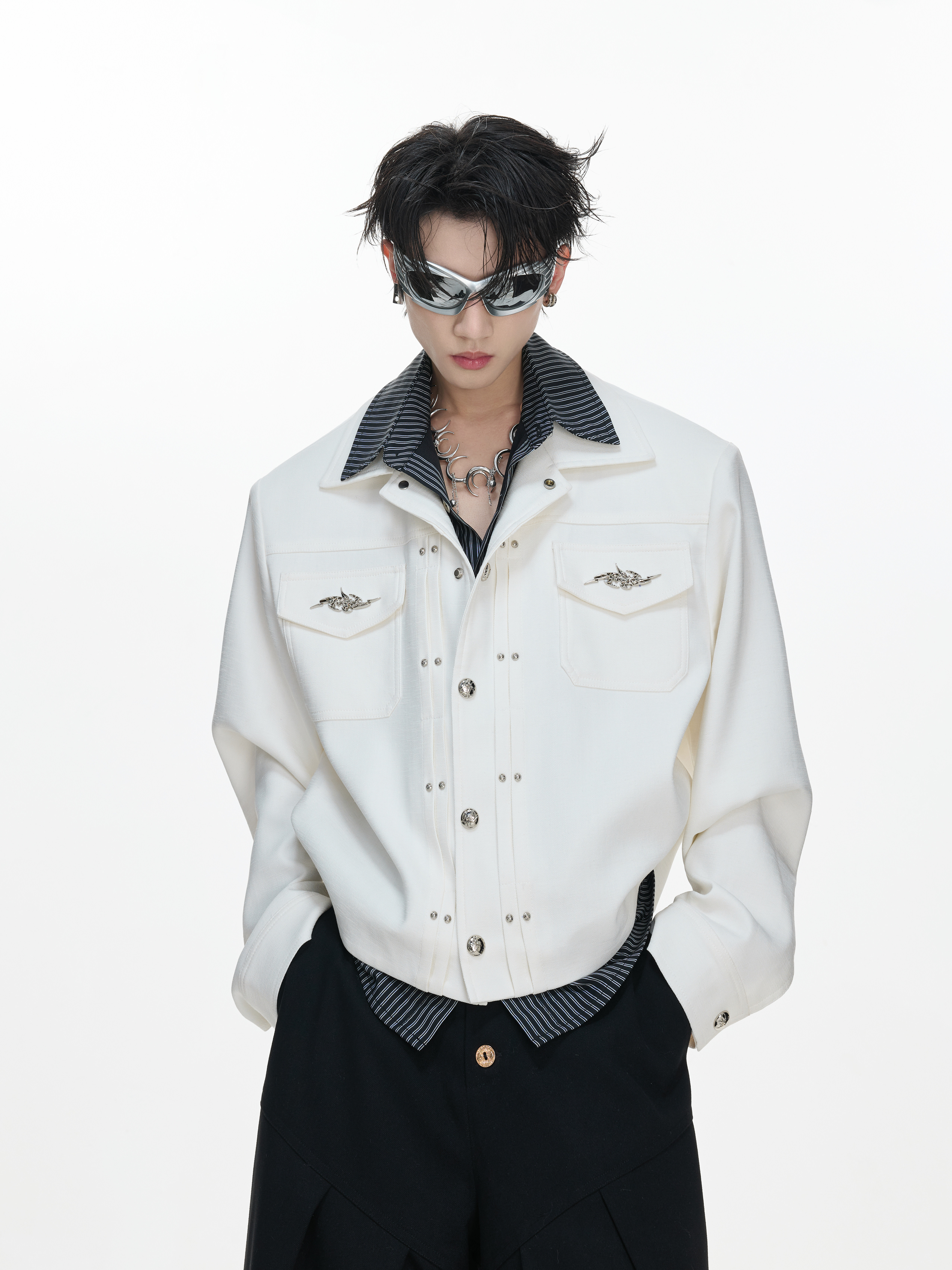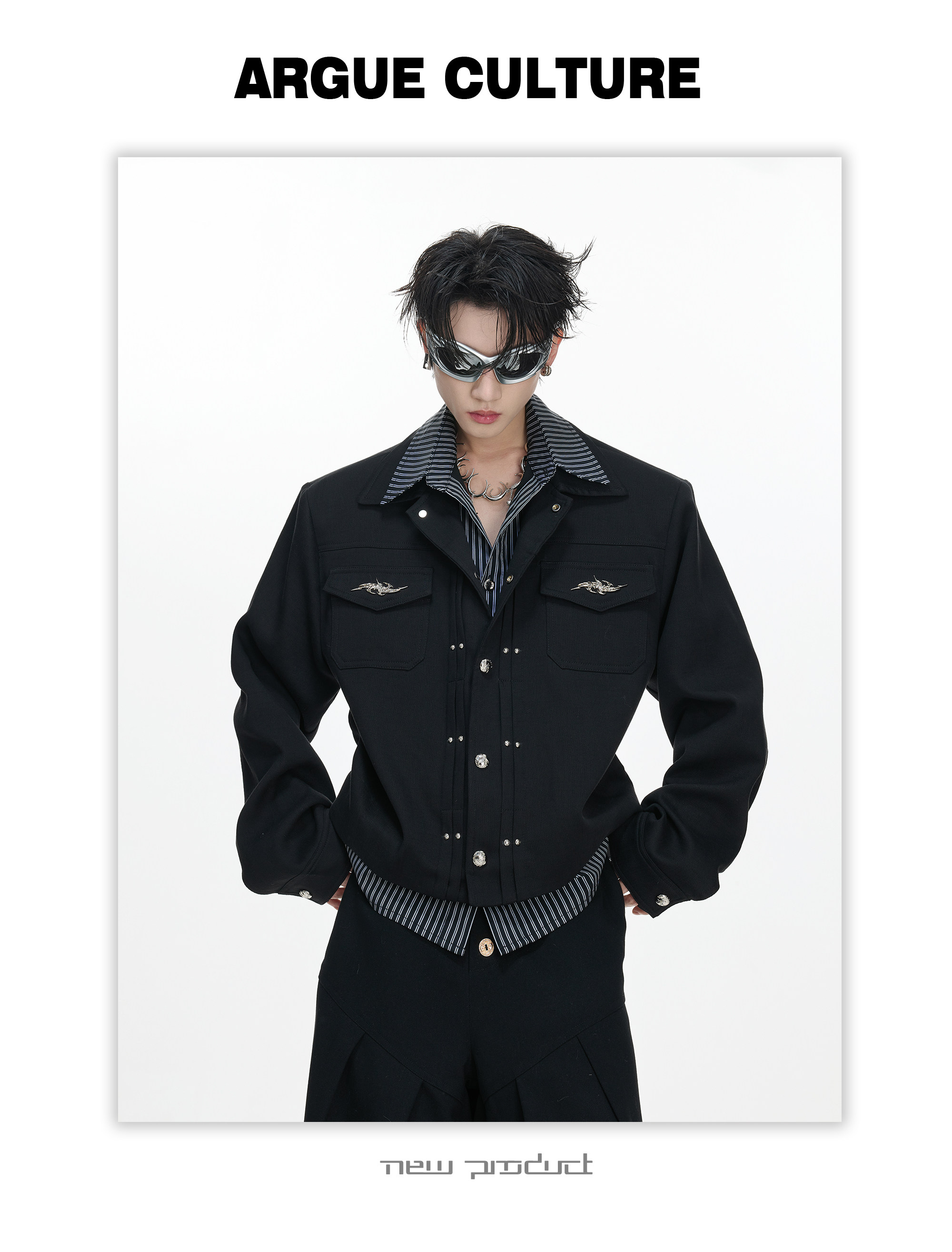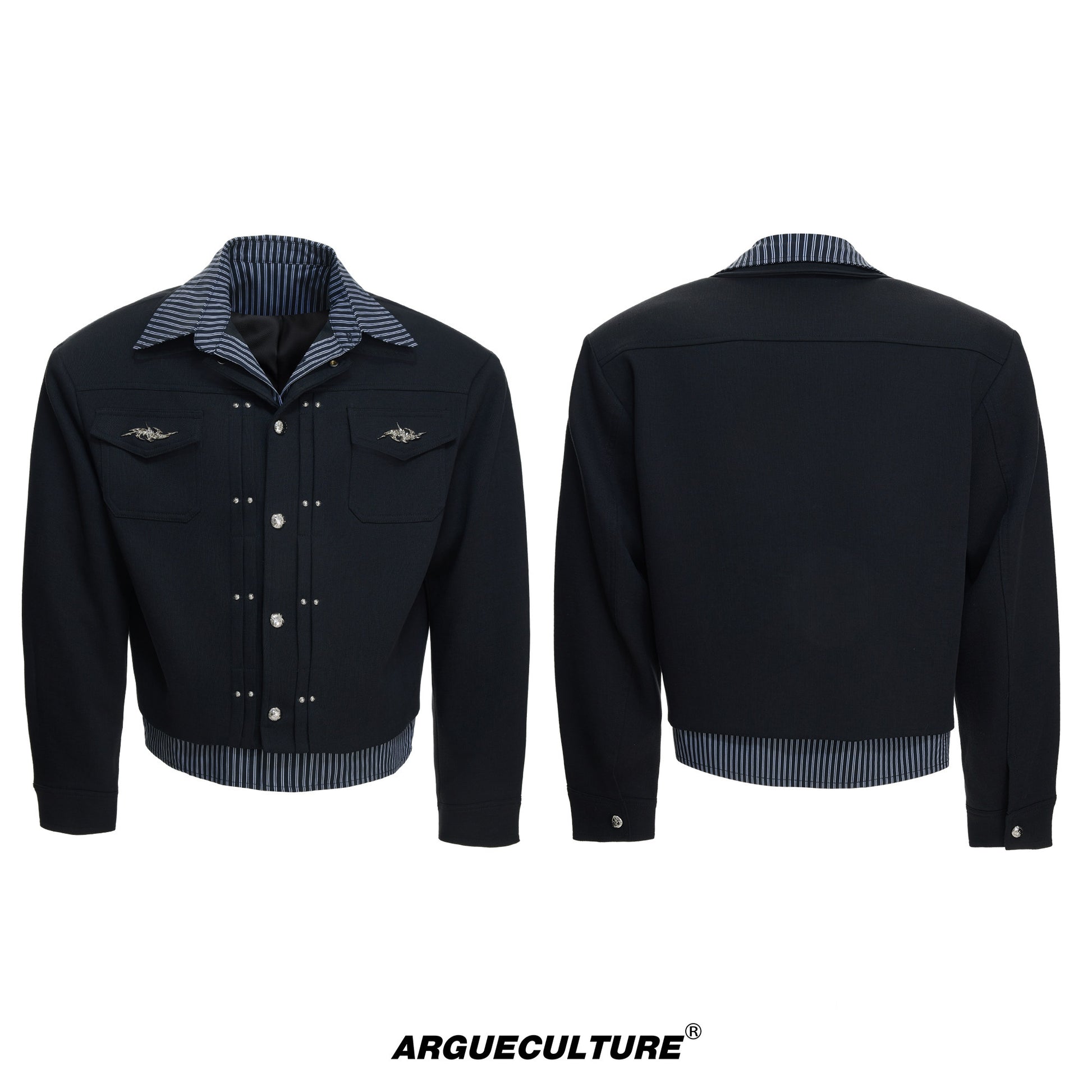 Stripe Fake Layered Metal Button Short Jacket WN23308