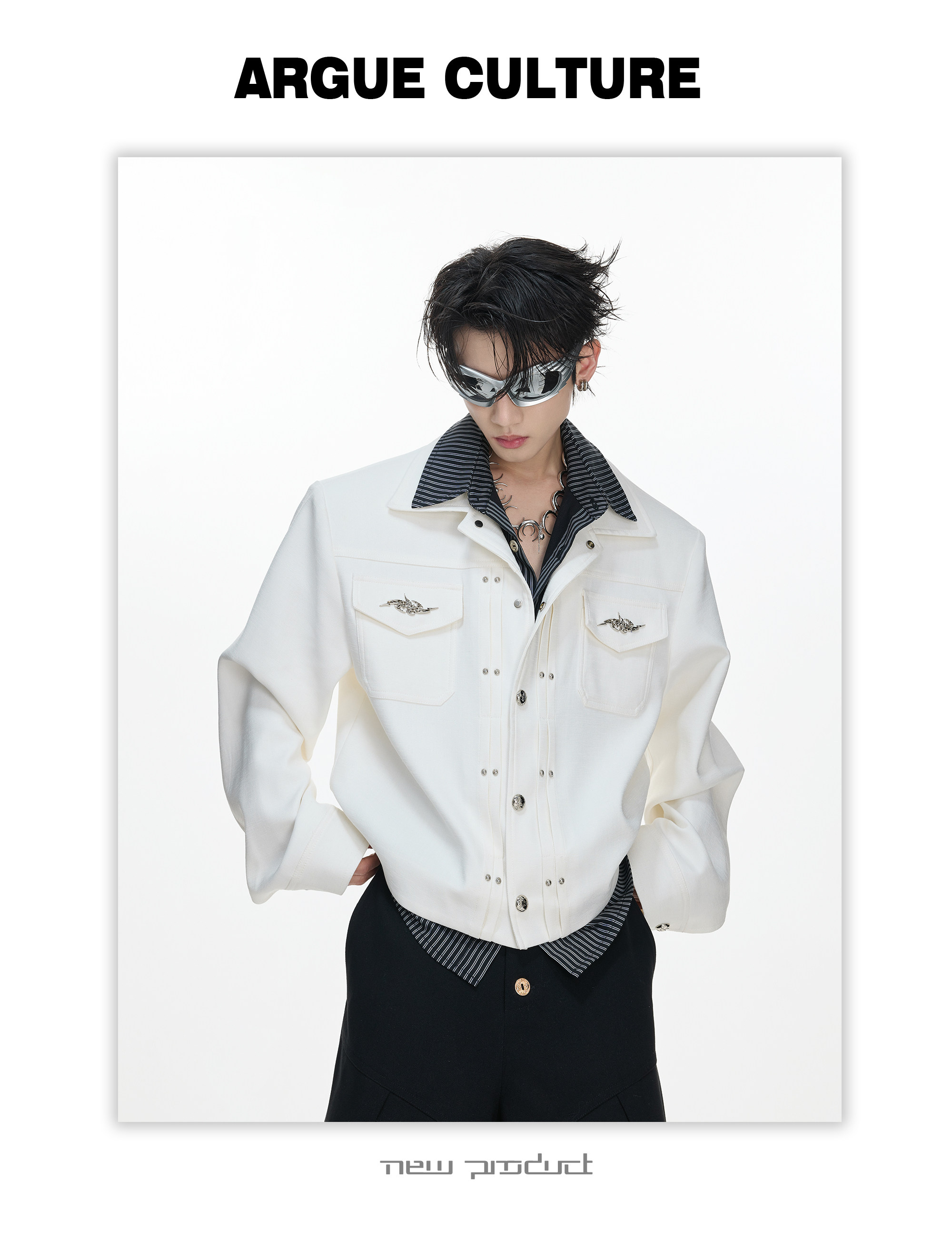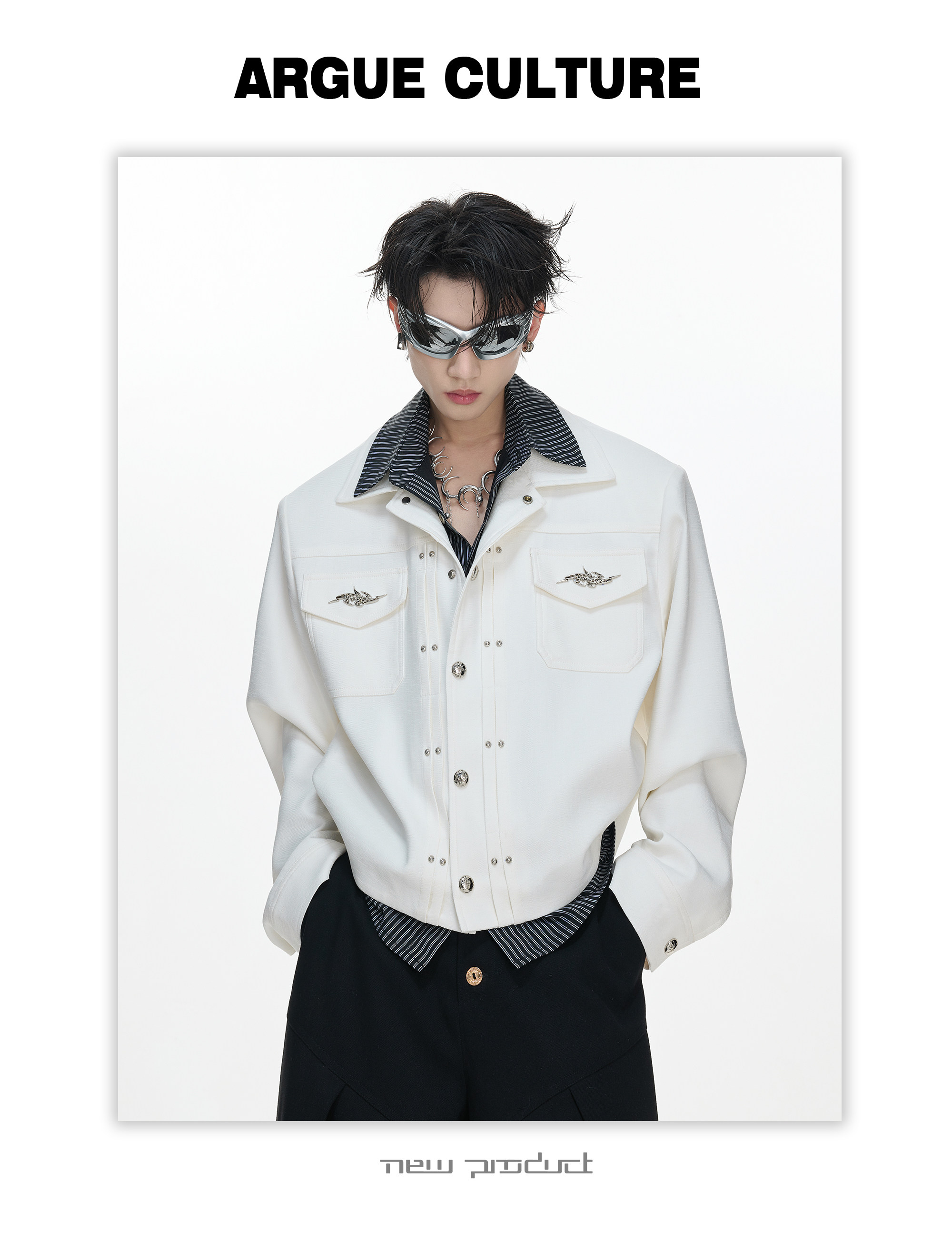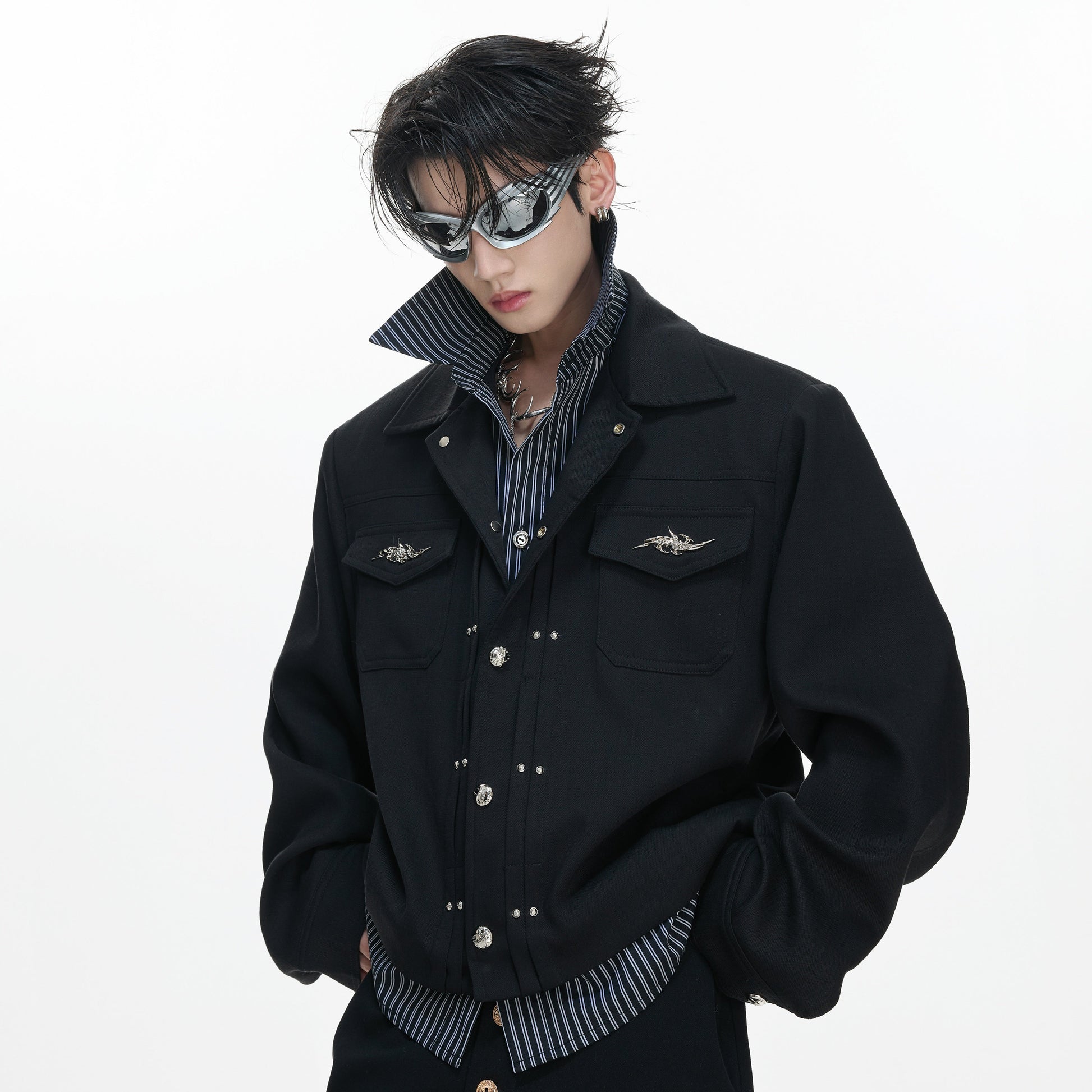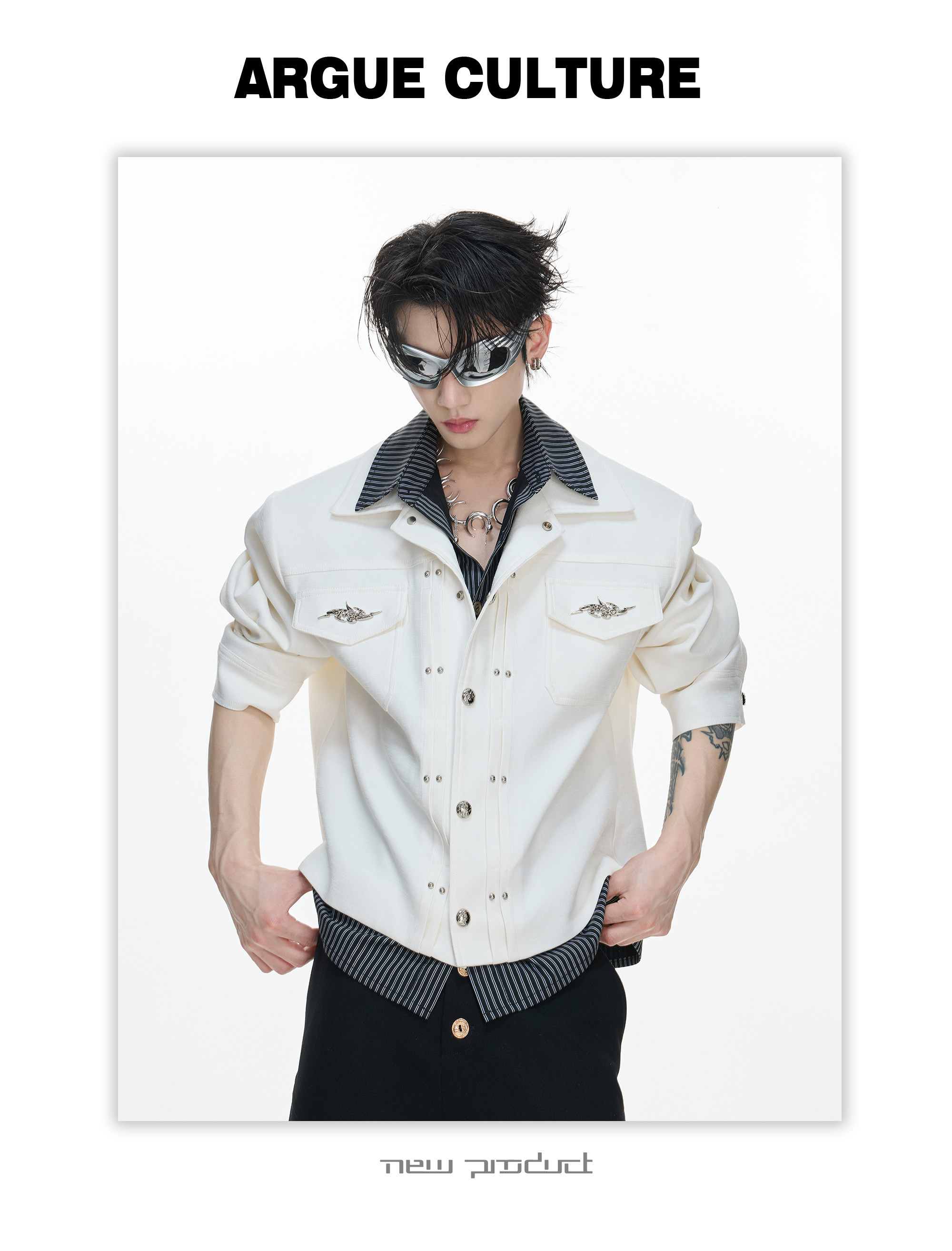 Stripe Fake Layered Metal Button Short Jacket WN23308