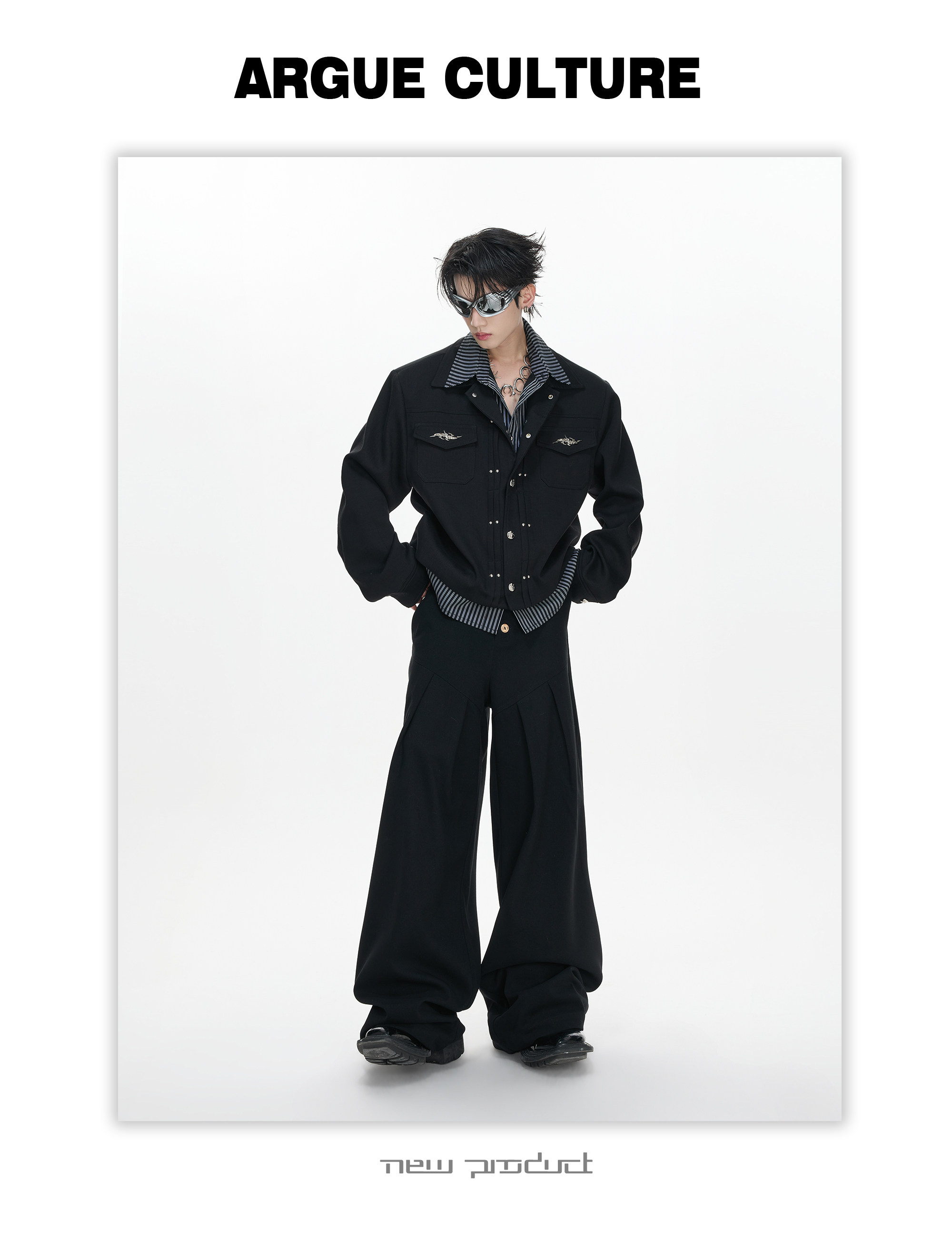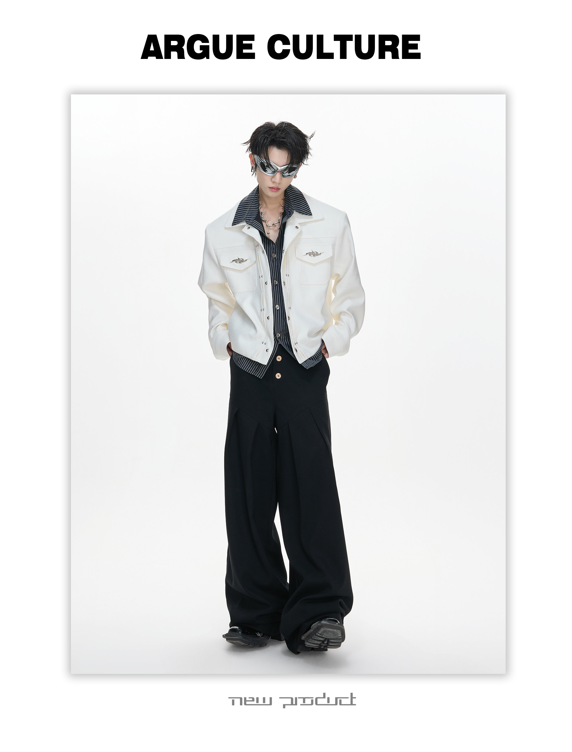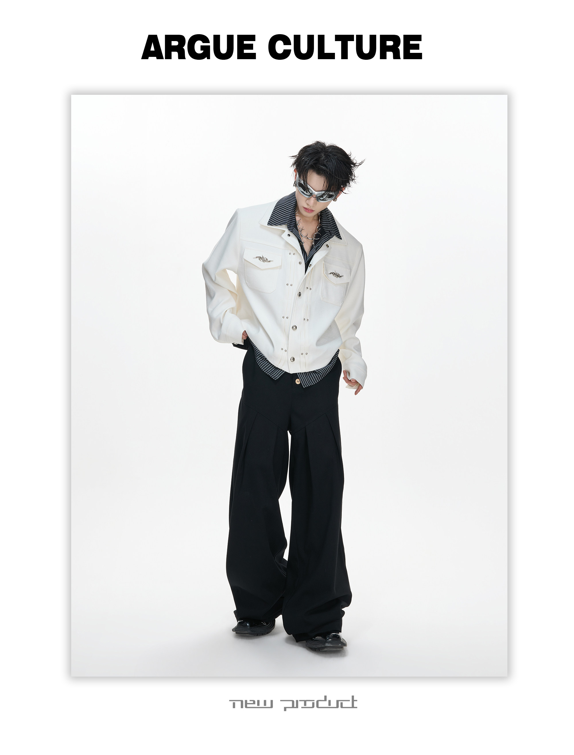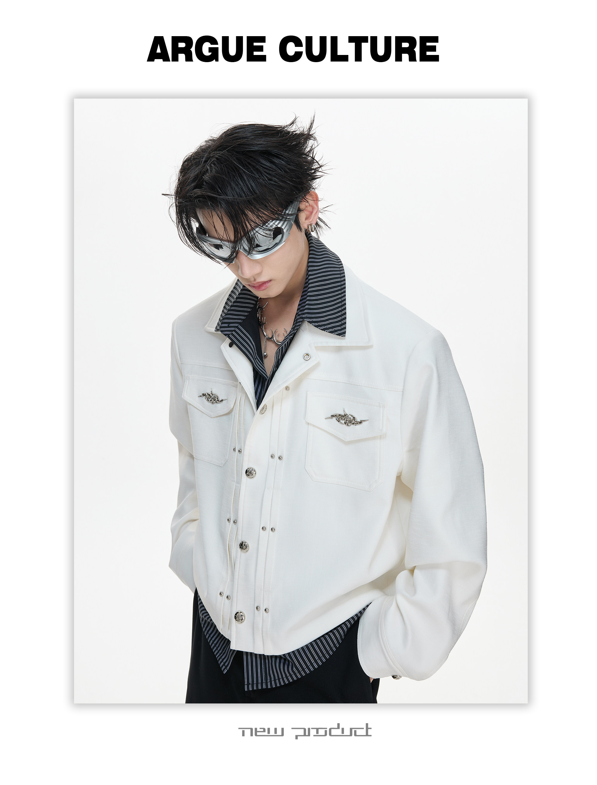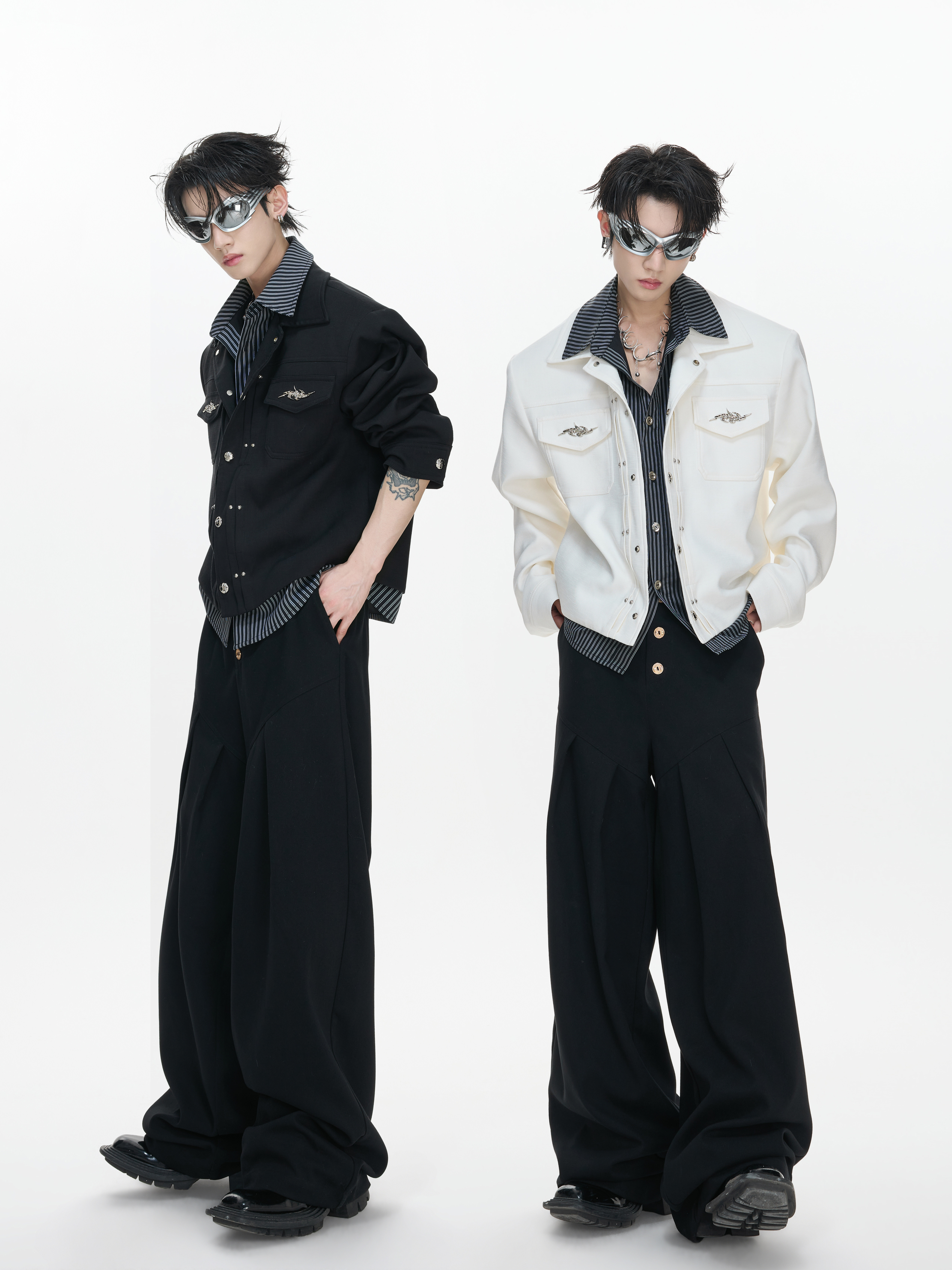 Stripe Fake Layered Metal Button Short Jacket WN23308
