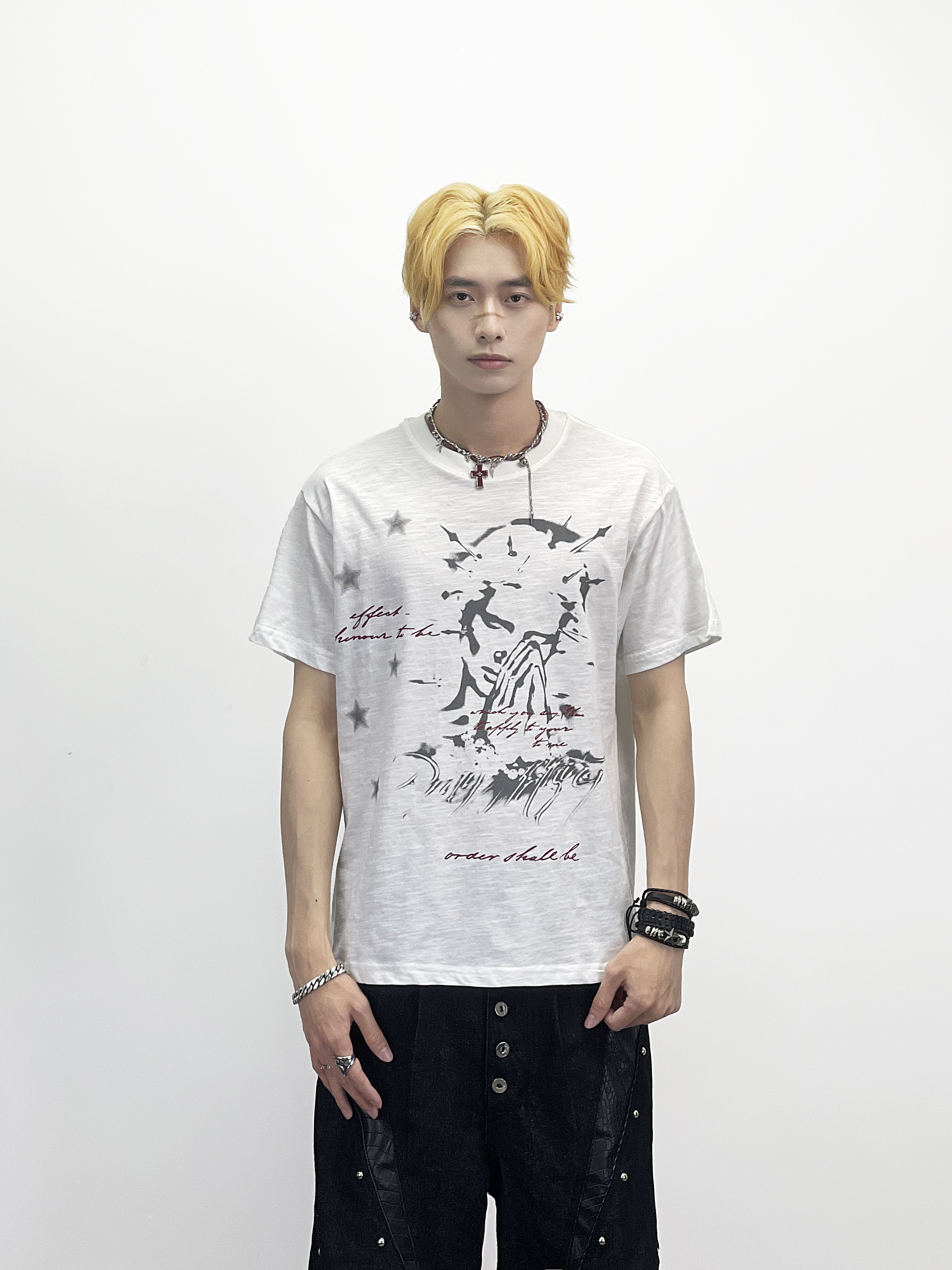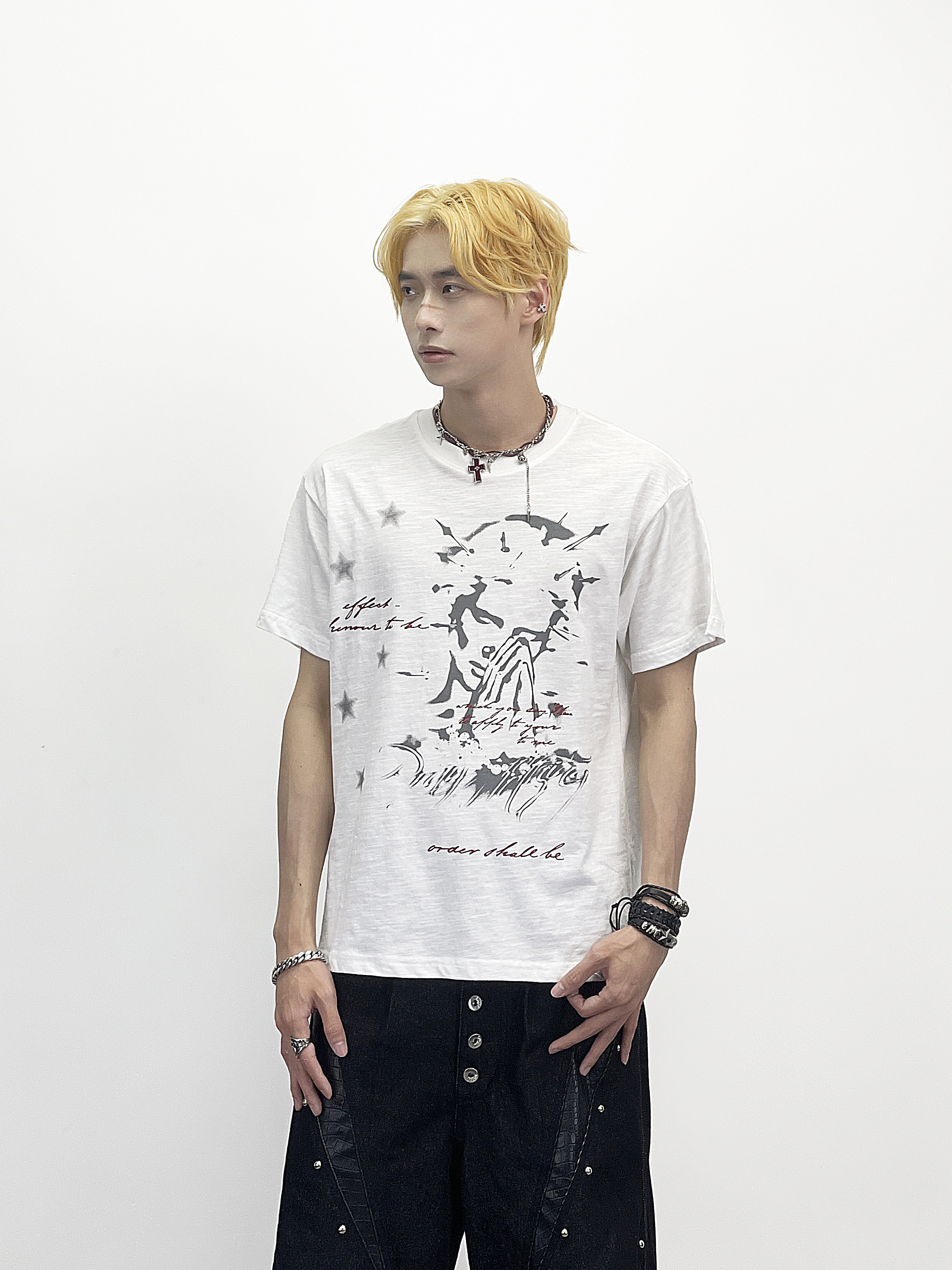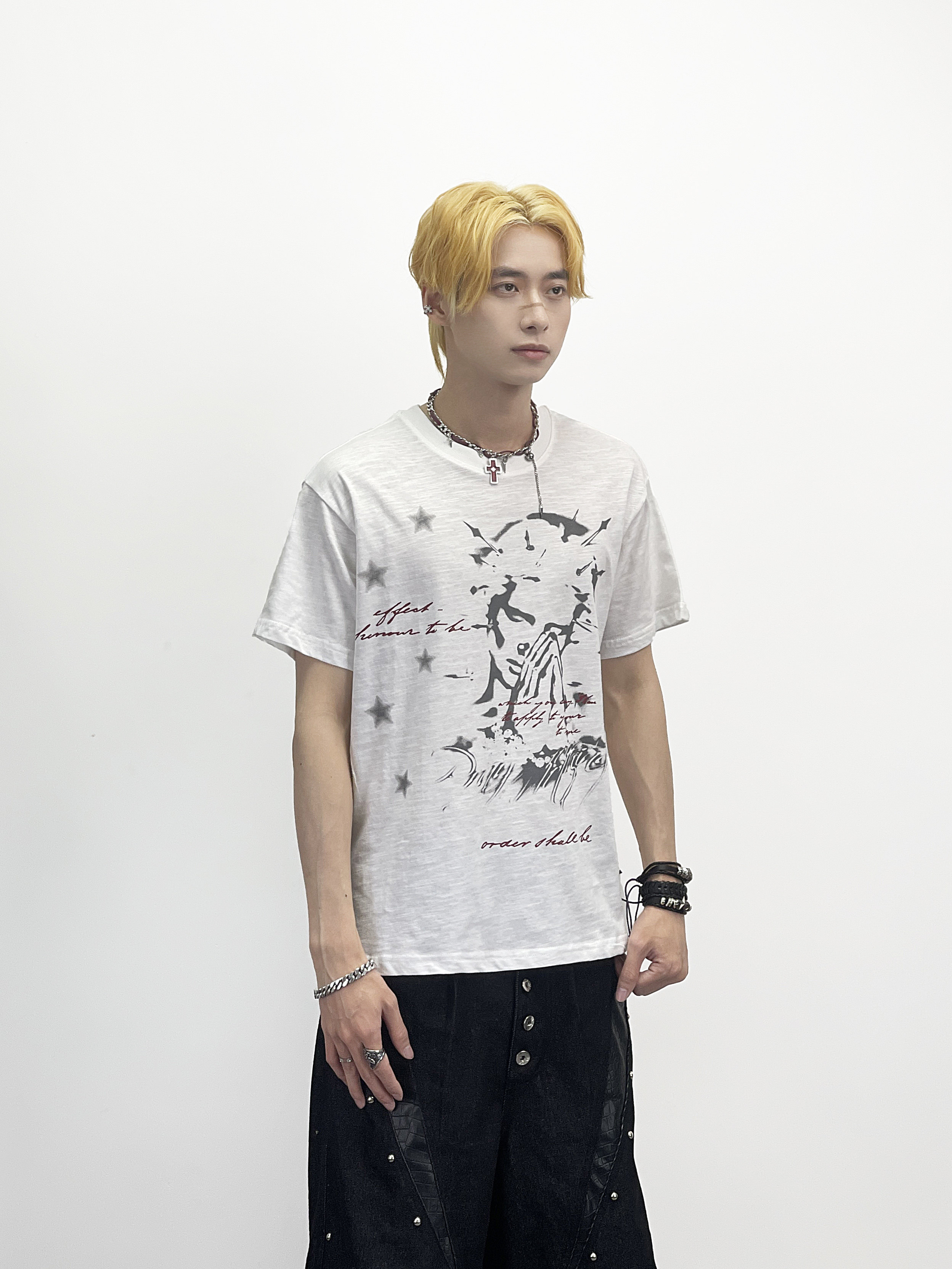 Portrait Print Structured Shoulder Short Sleeve T-Shirt WN24244
