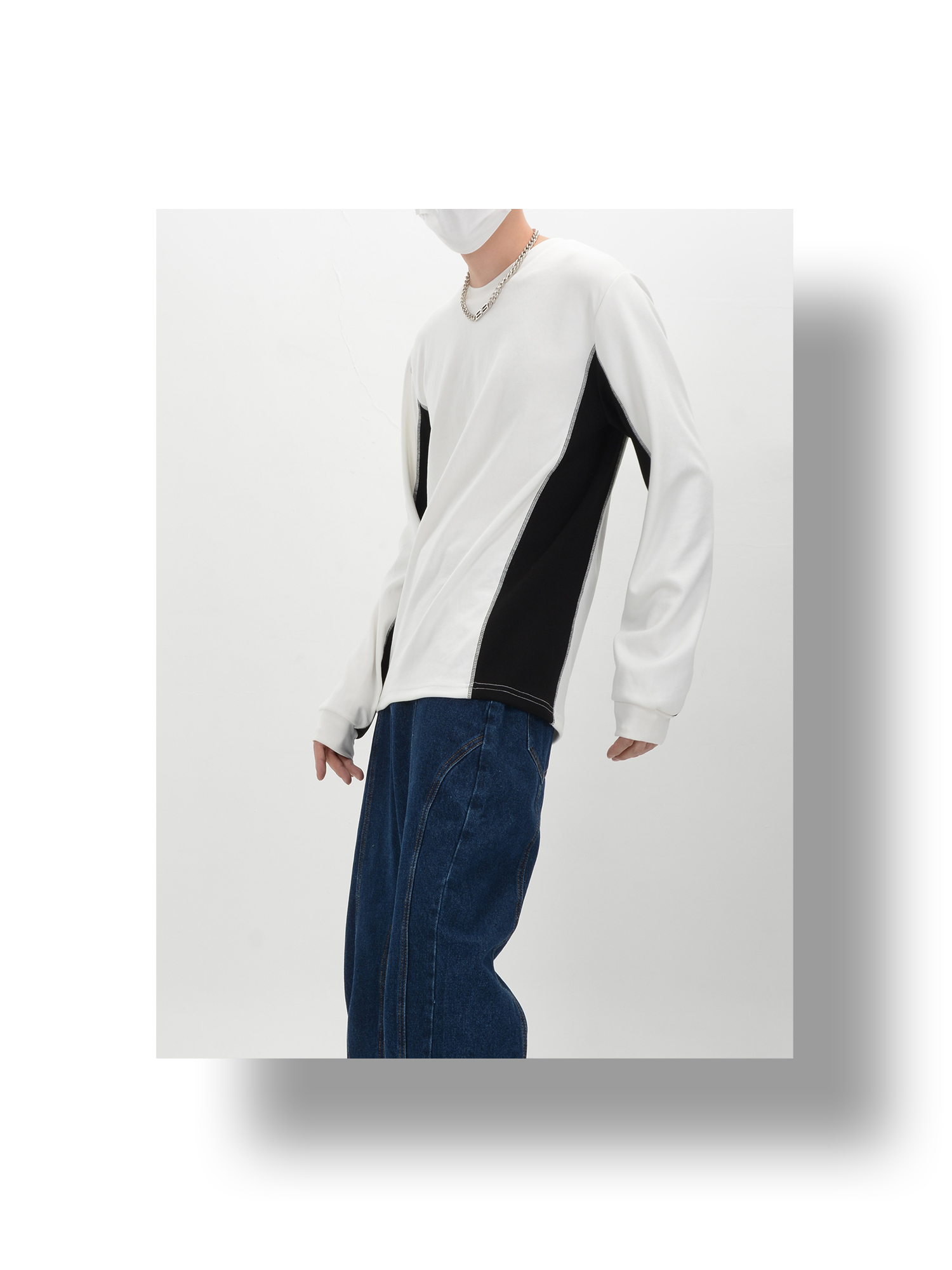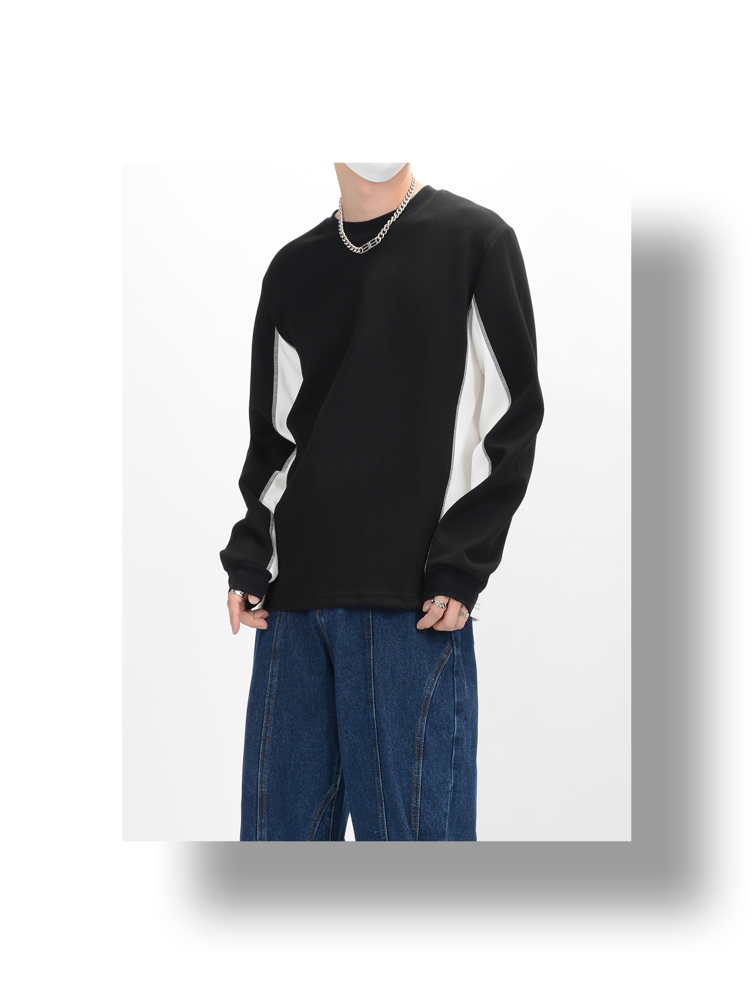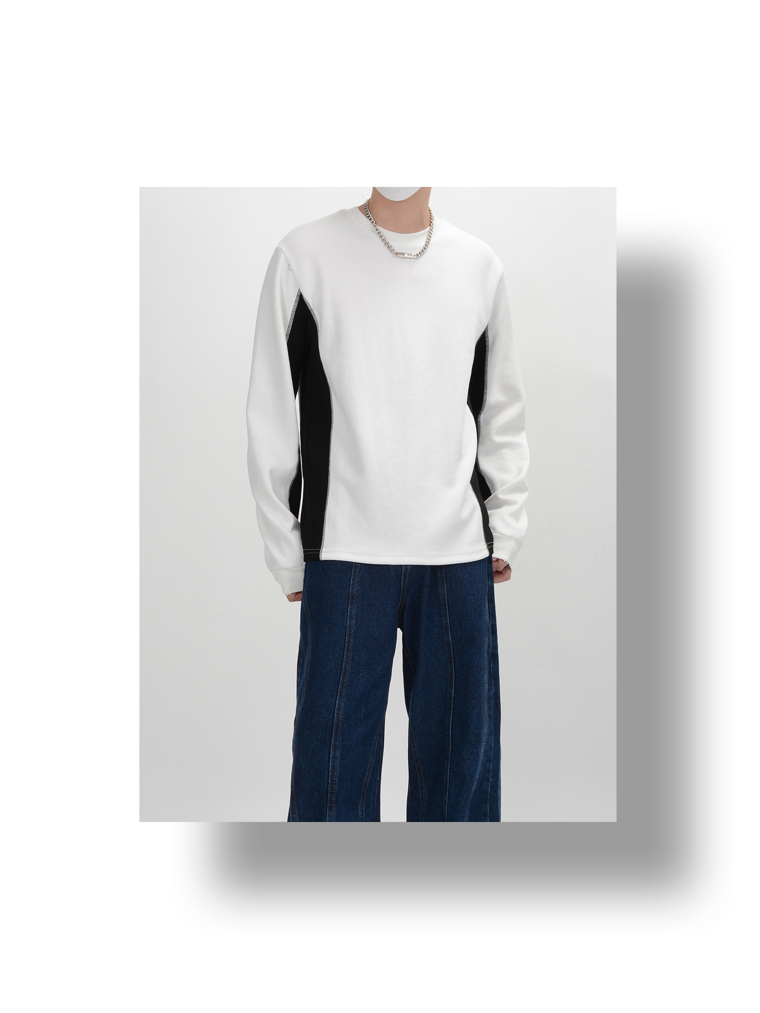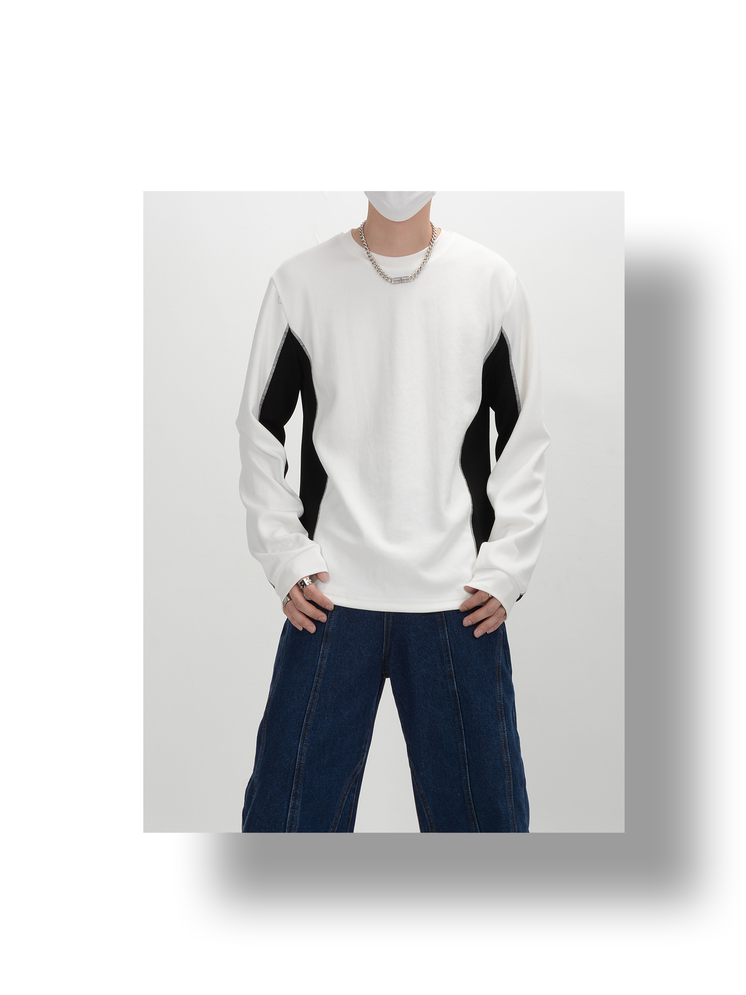 Contrast Color Round Neck Long Sleeve T-Shirt WN4407