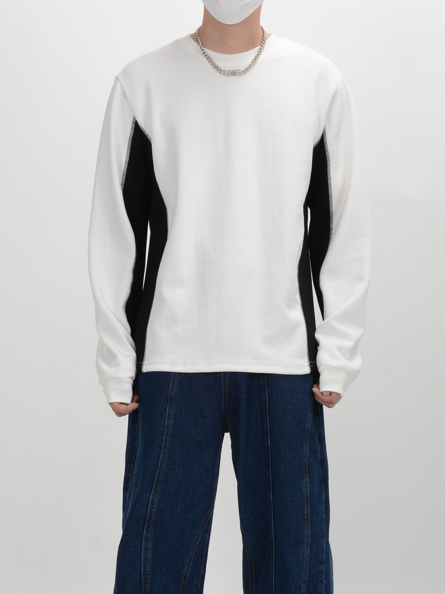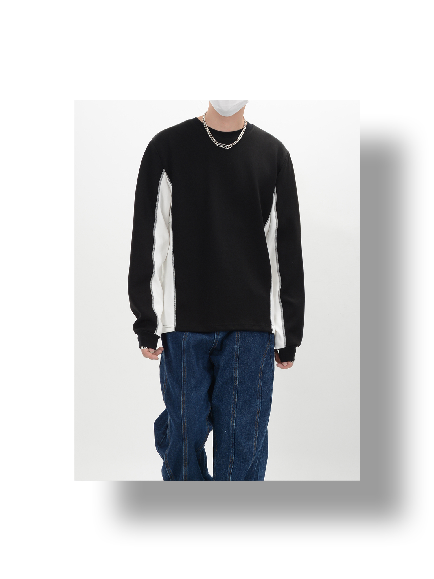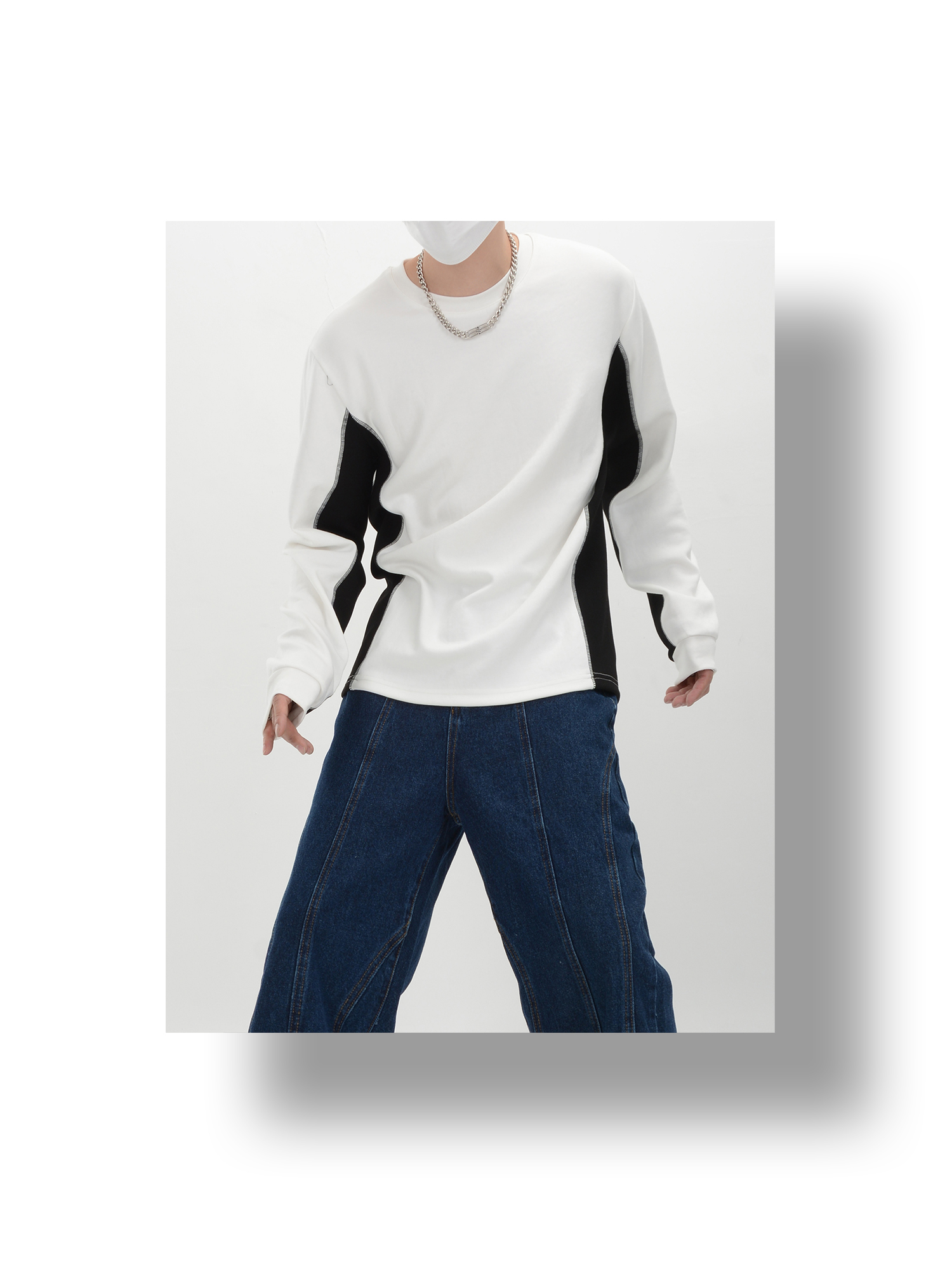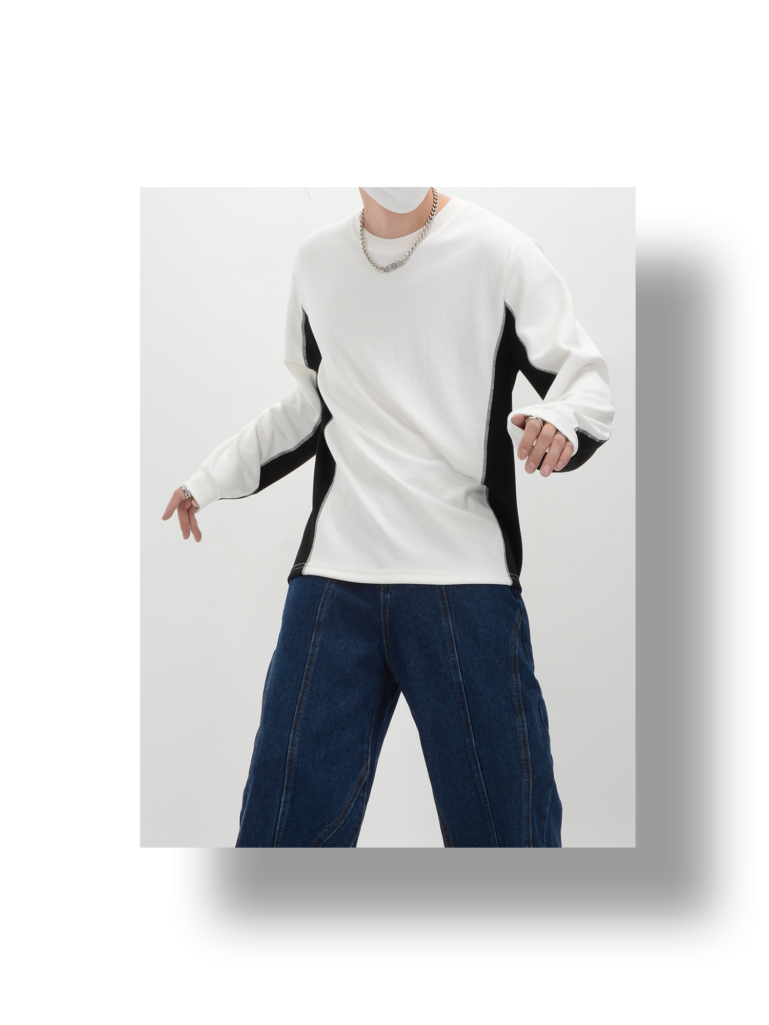 Contrast Color Round Neck Long Sleeve T-Shirt WN4407