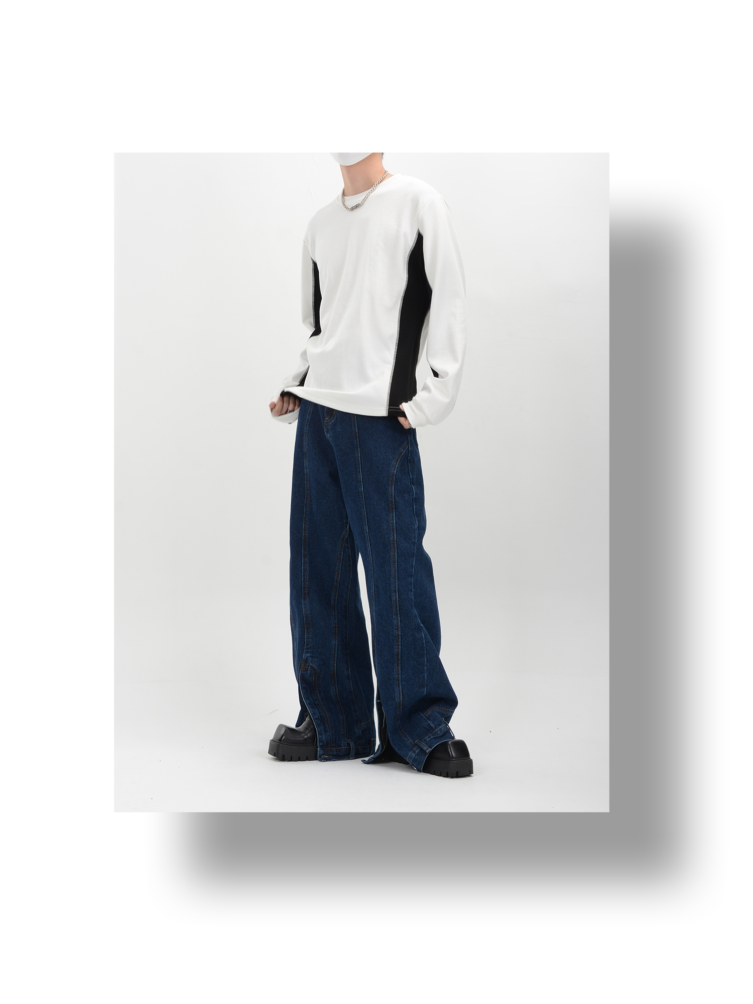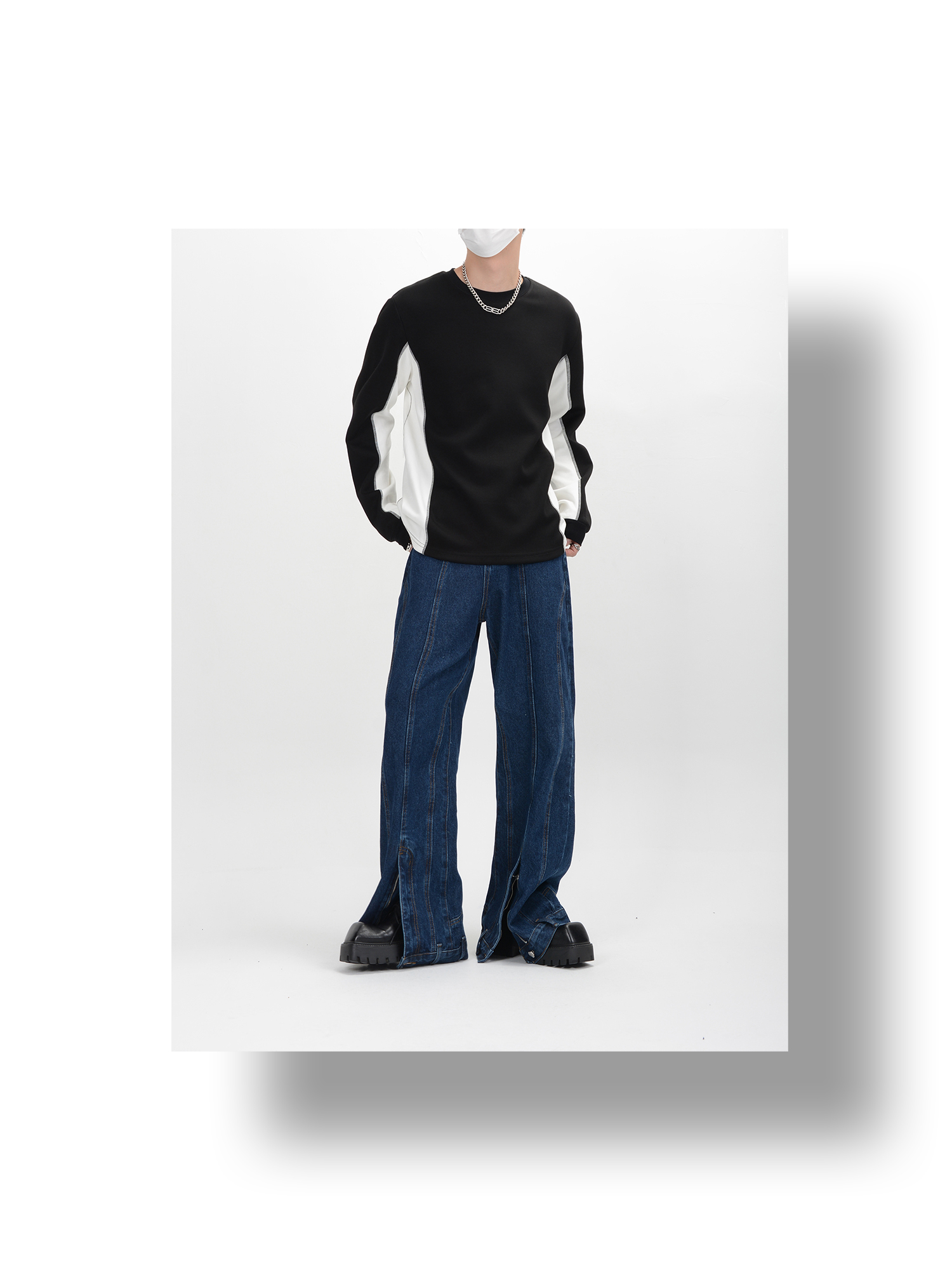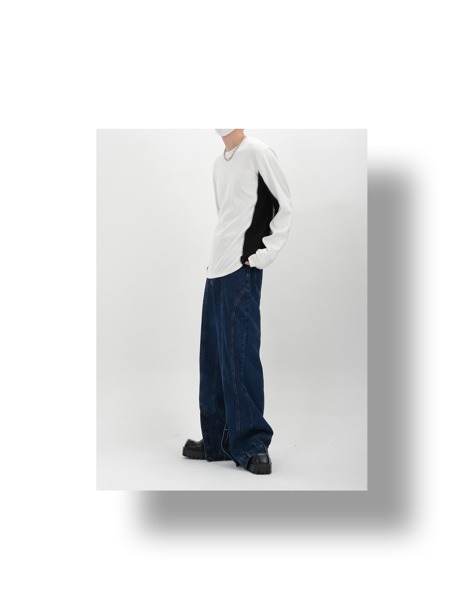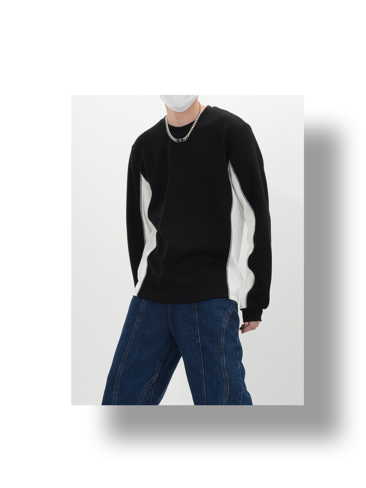 Contrast Color Round Neck Long Sleeve T-Shirt WN4407